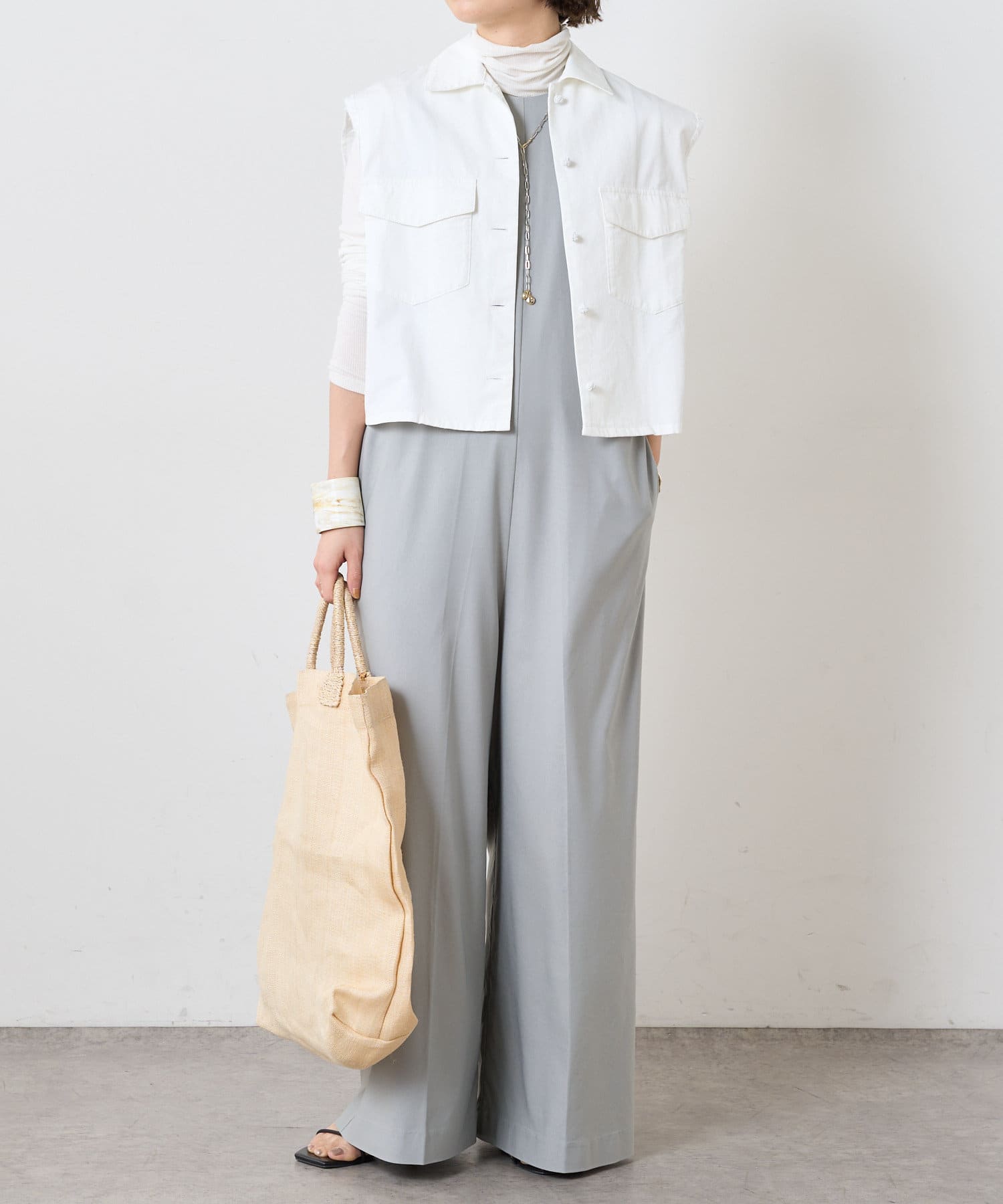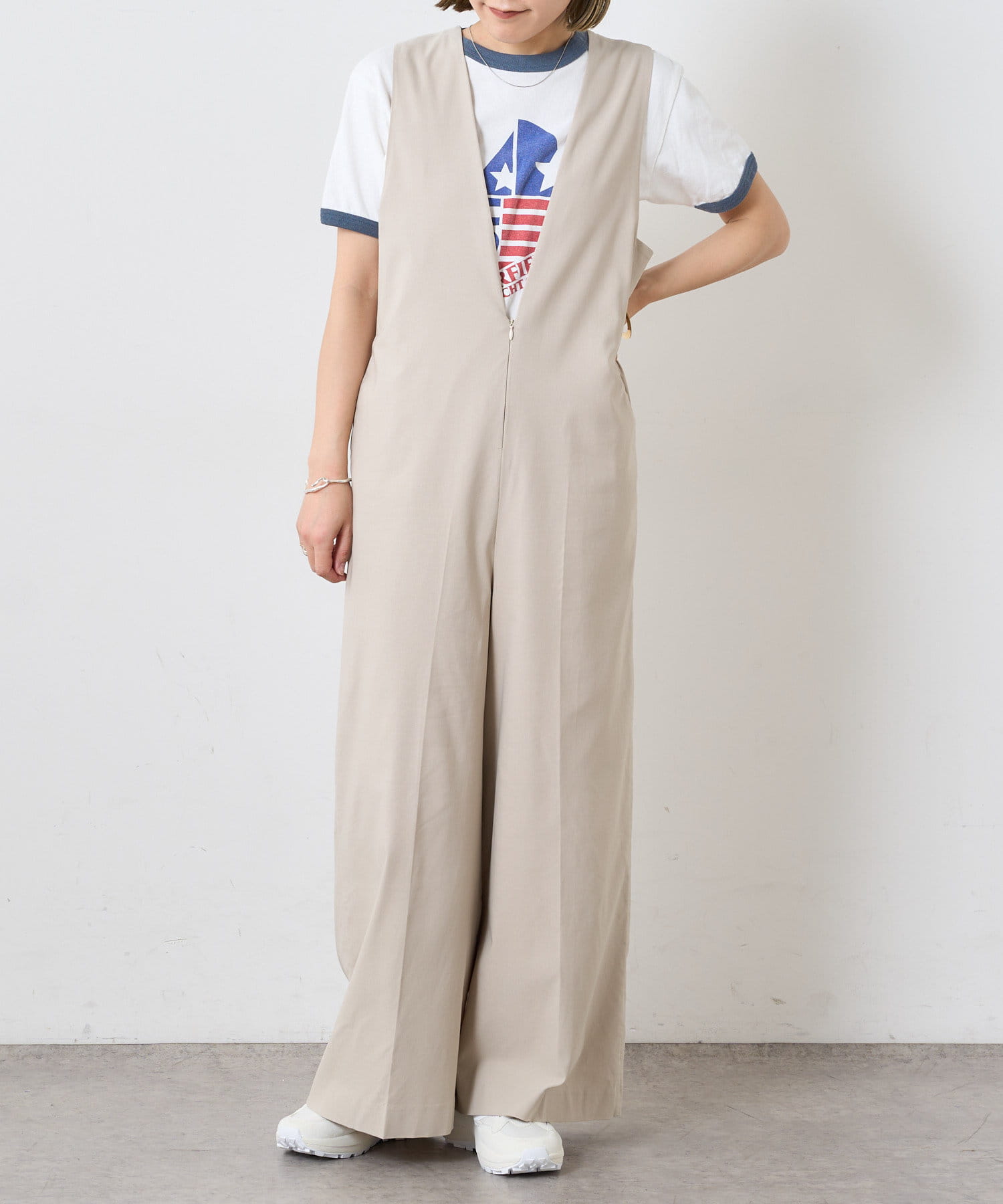 TOP > OUTLET > レディース > オールインワン/サロペット > サロペット/オーバーオール > 【Omekashi】ストレッチノースリーブオールインワン