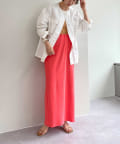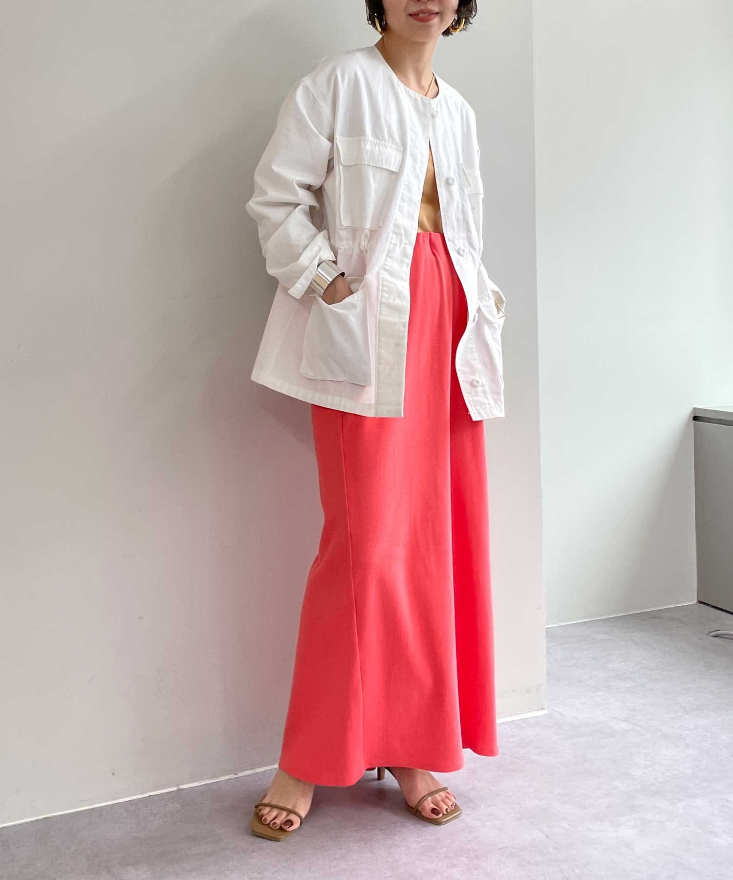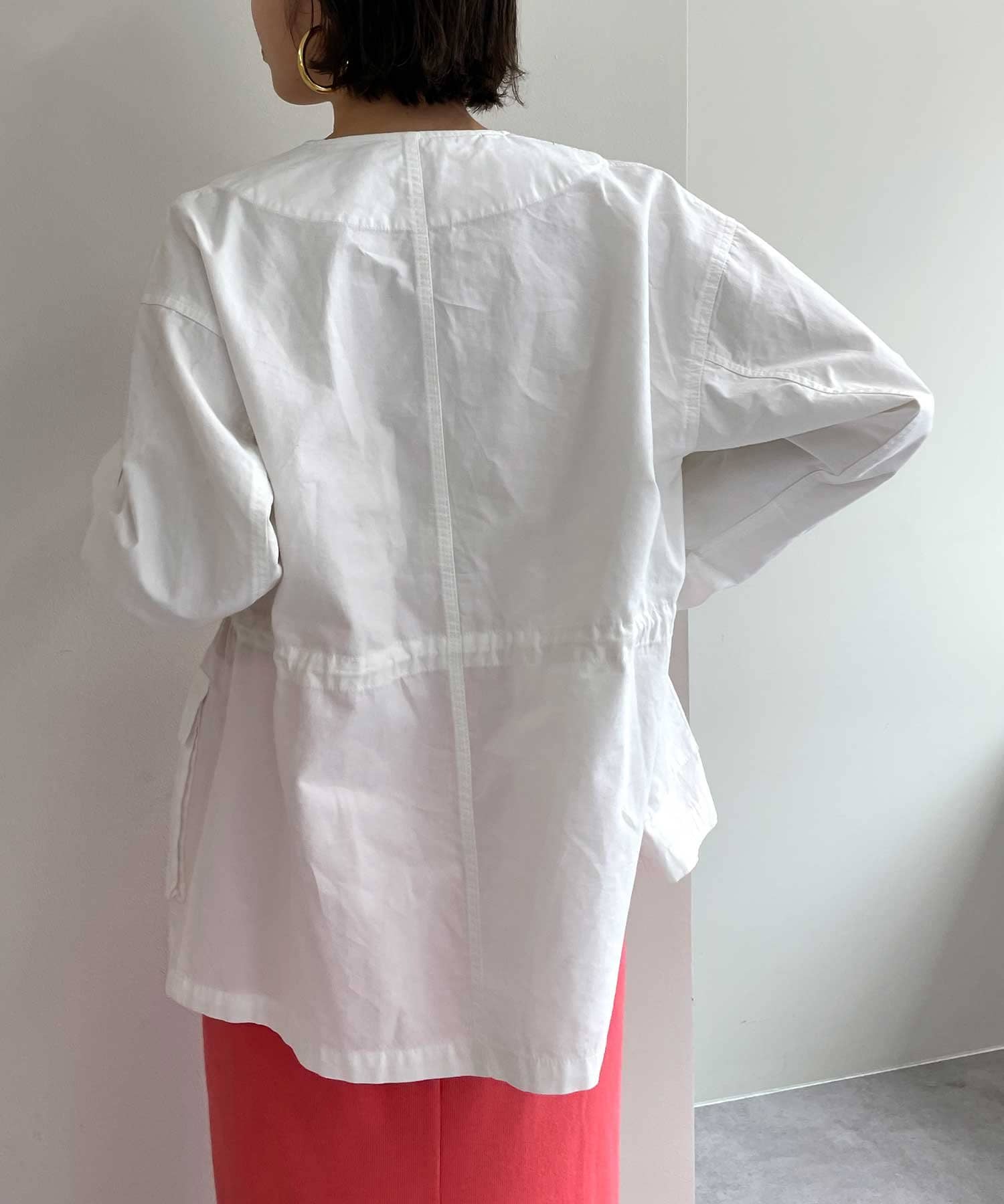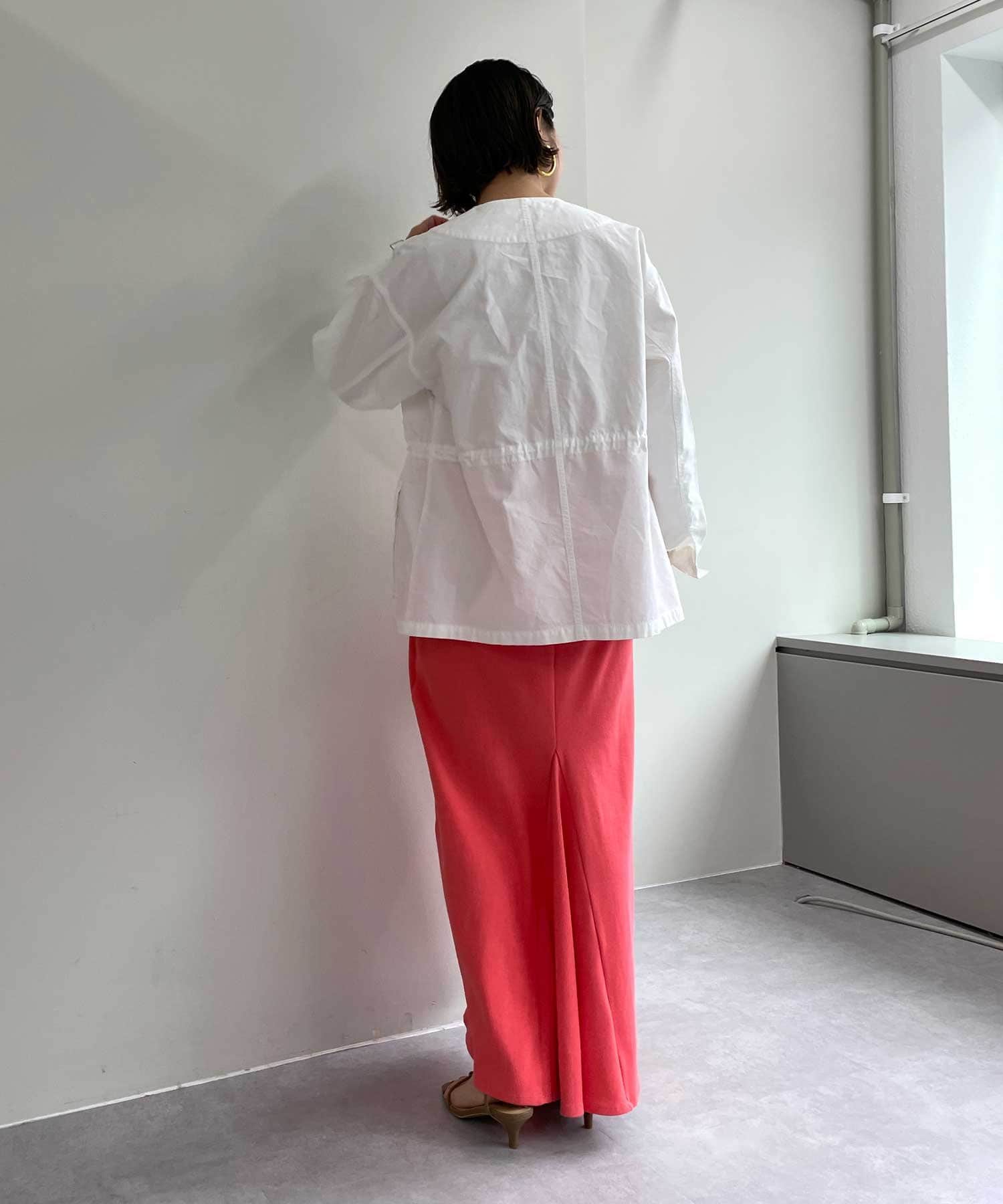 ・ウエストを絞れるよう内側に紐を通していて、着こなし次第で雰囲気を変えてお楽しみ頂けます。
