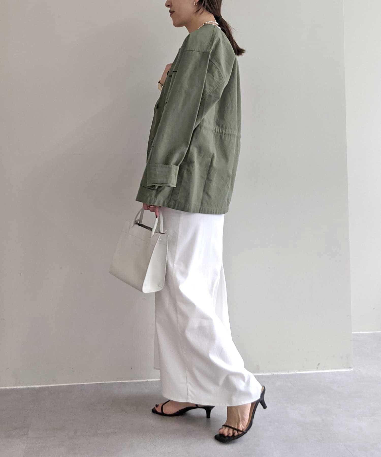 ・ヴィンテージ感のある色味でカジュアルになりすぎず、デニムはもちろん、スカートやワンピースにも合わせやすいのが魅力です。