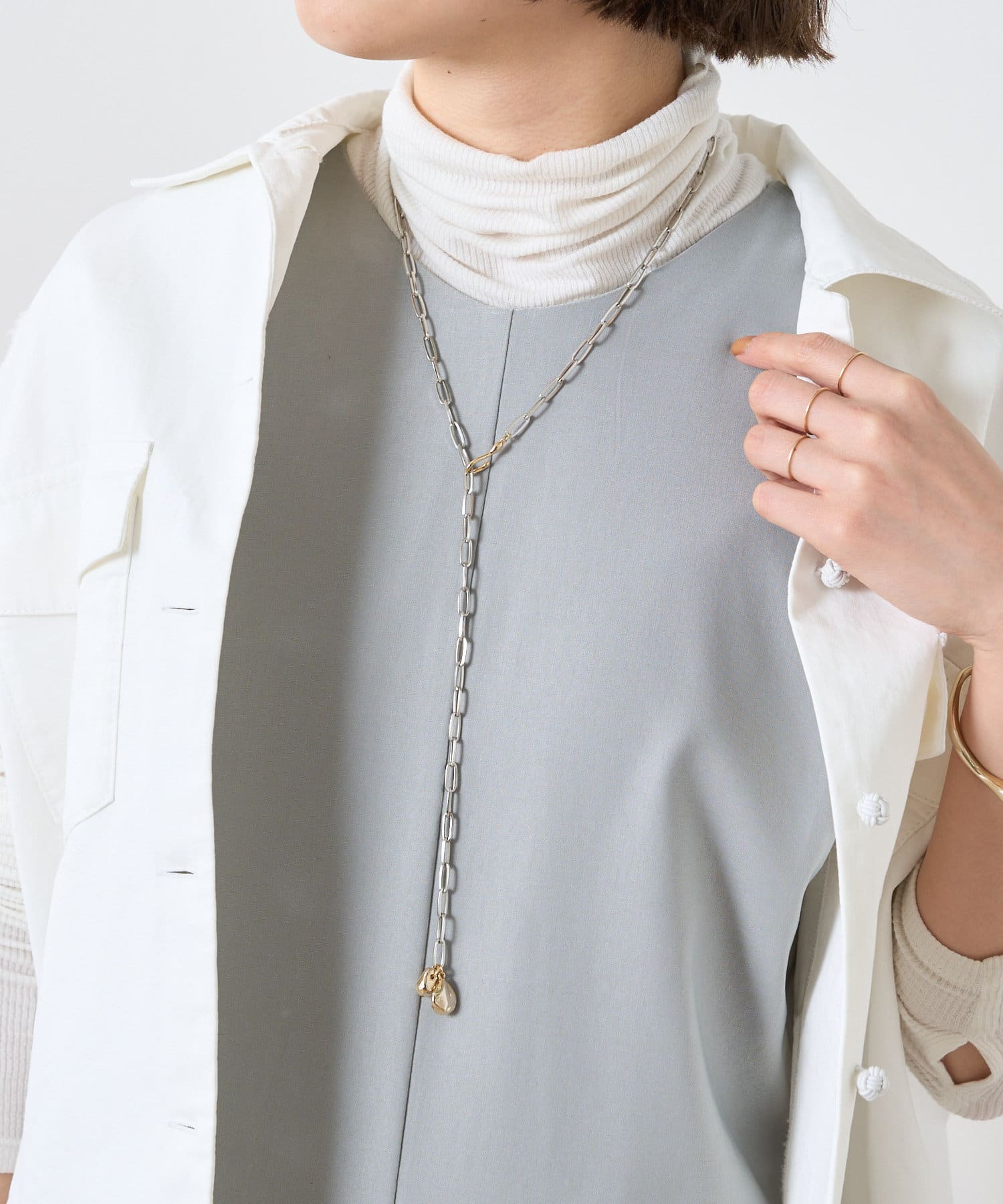 ・長さを2段階で調節できる留め具がポイントのネックレス。