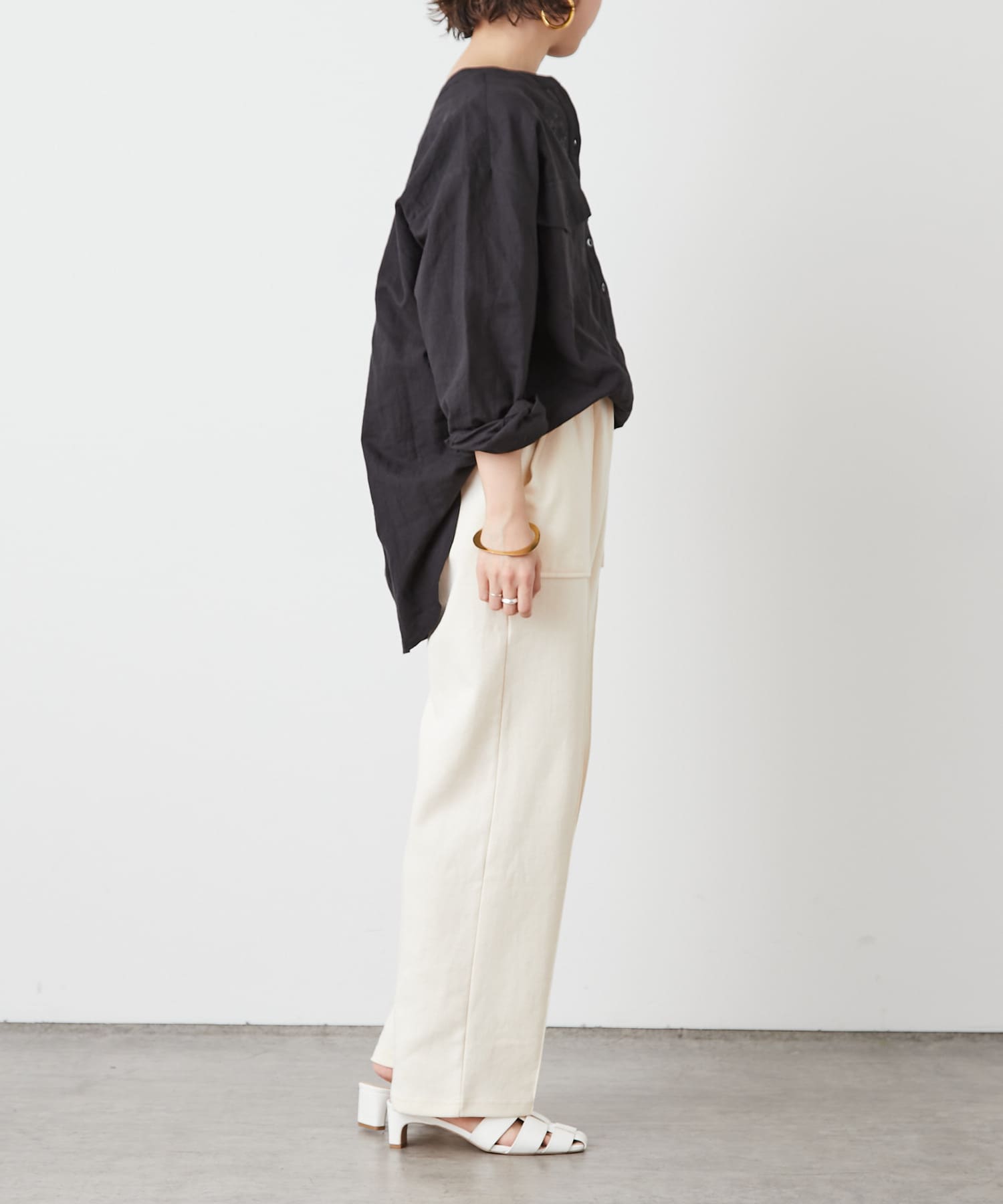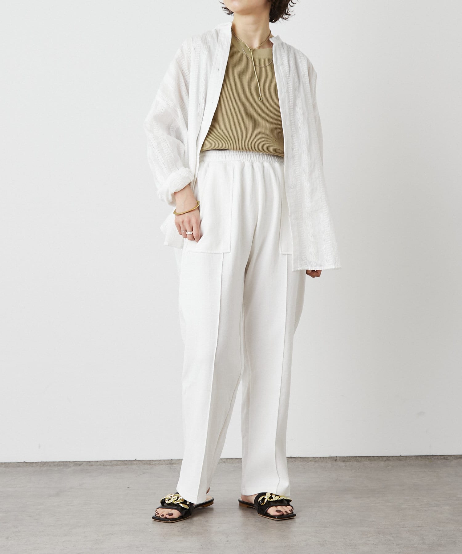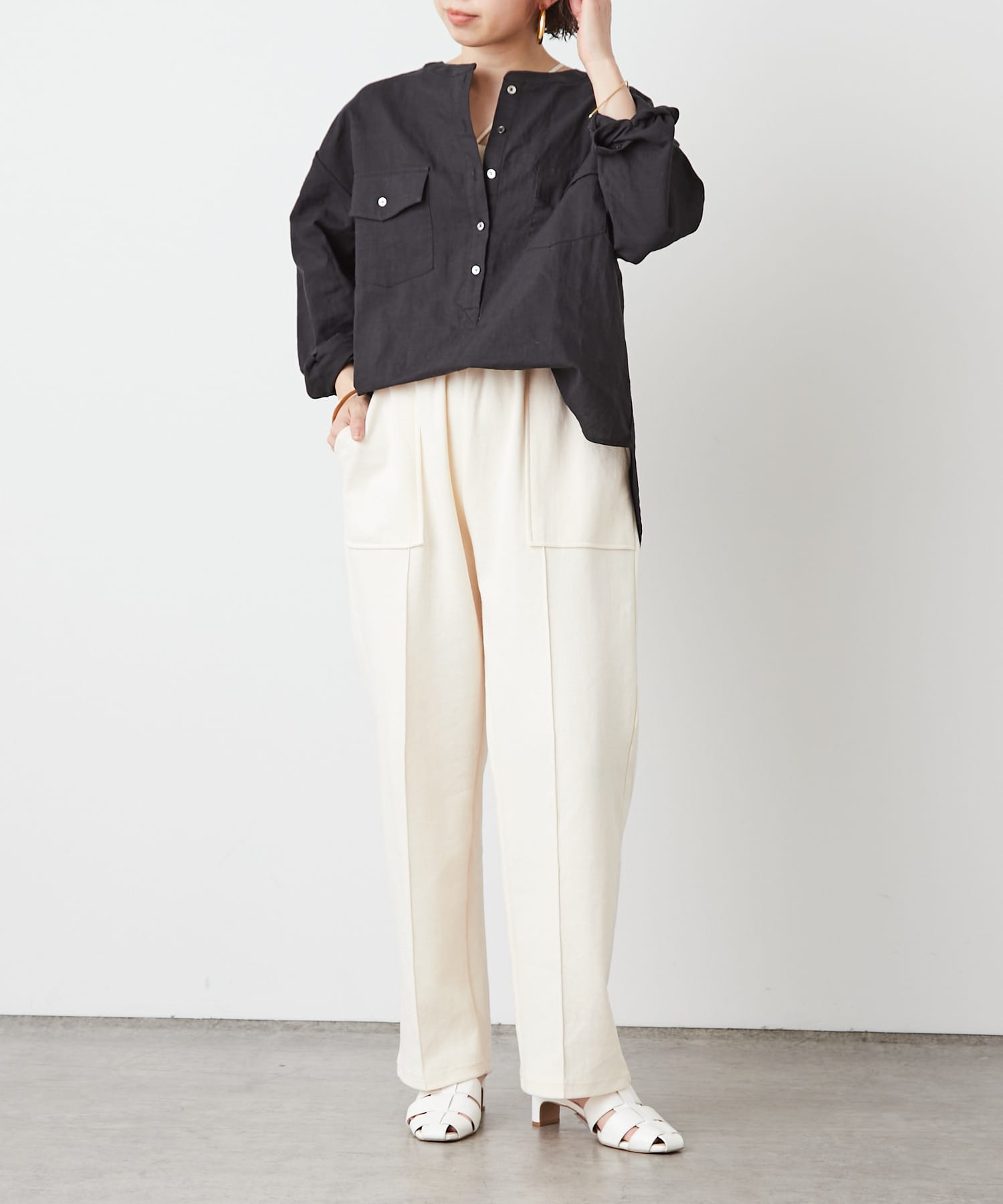 ・ストレスフリーなスウェット素材ですが、キレイめなシルエットなので、オンでもオフでも着て頂けます。