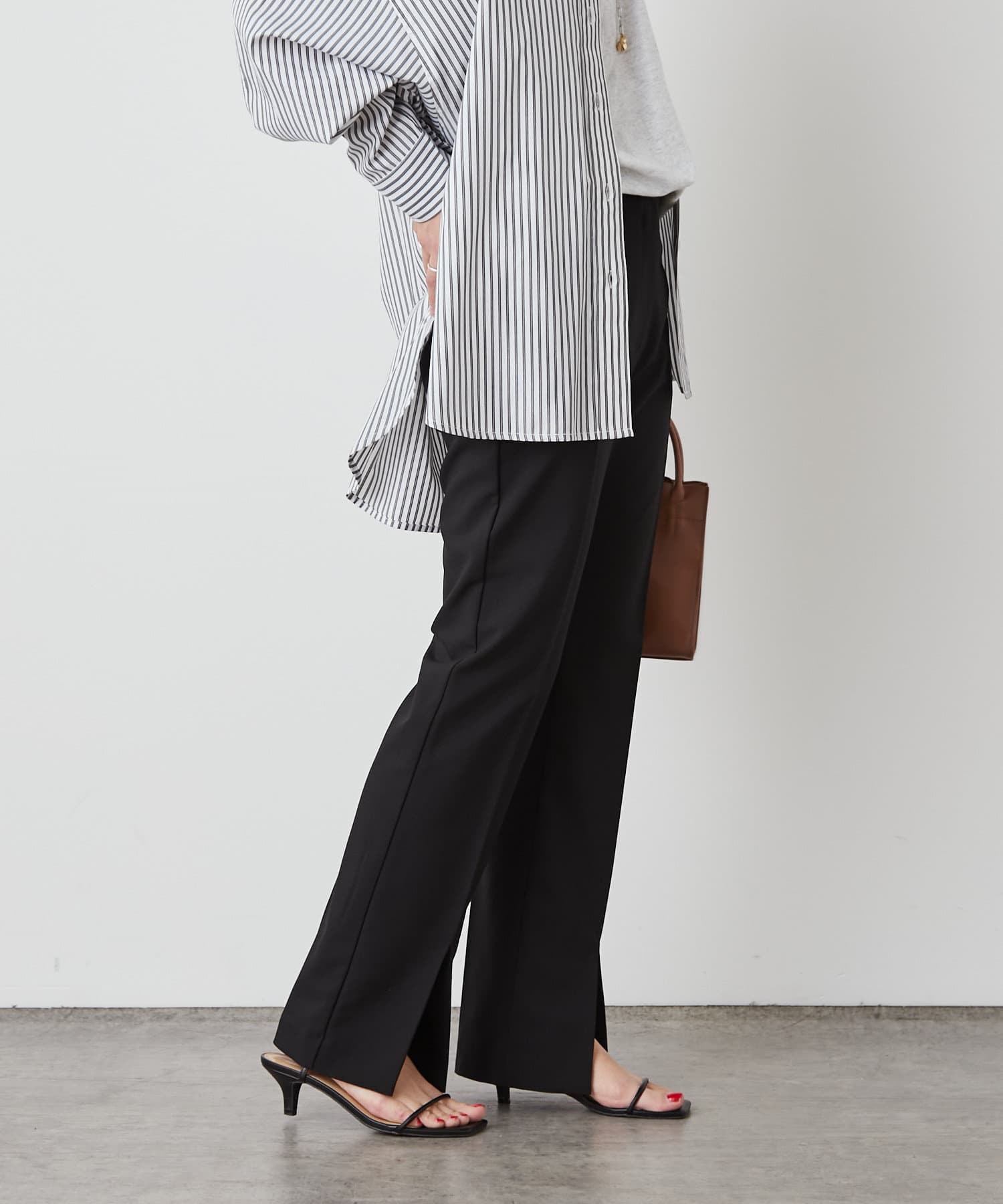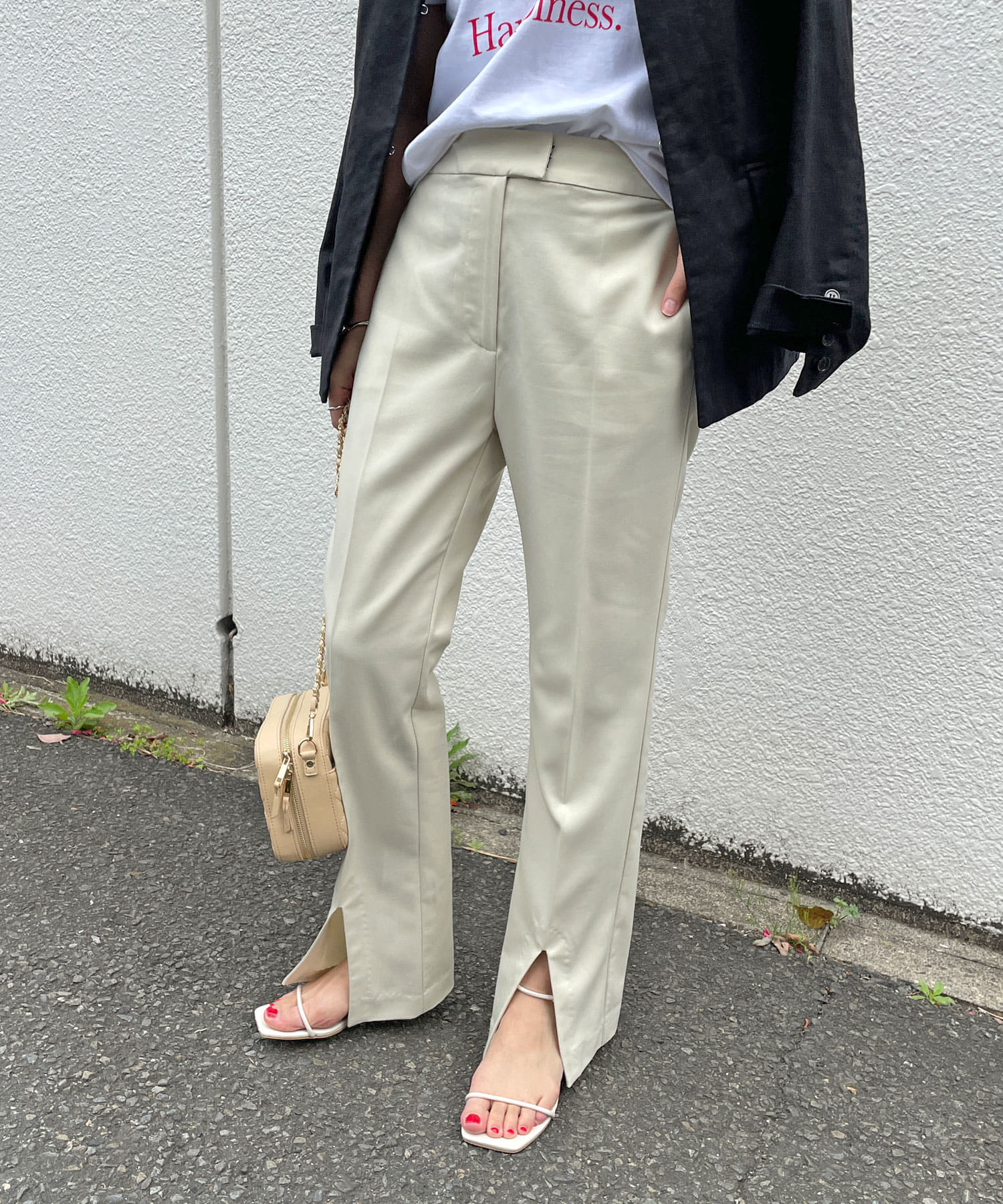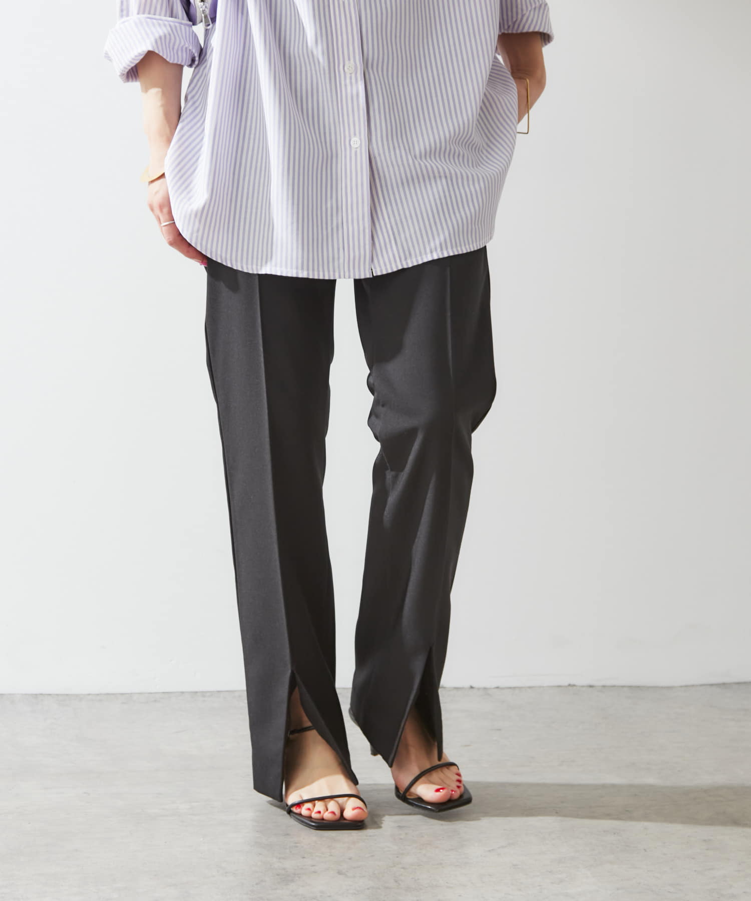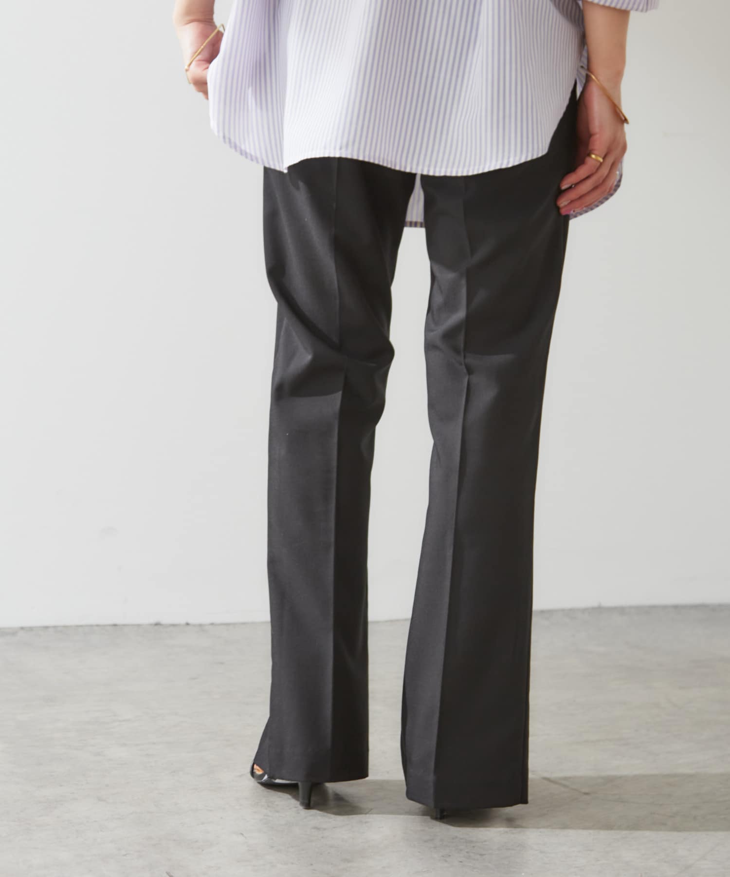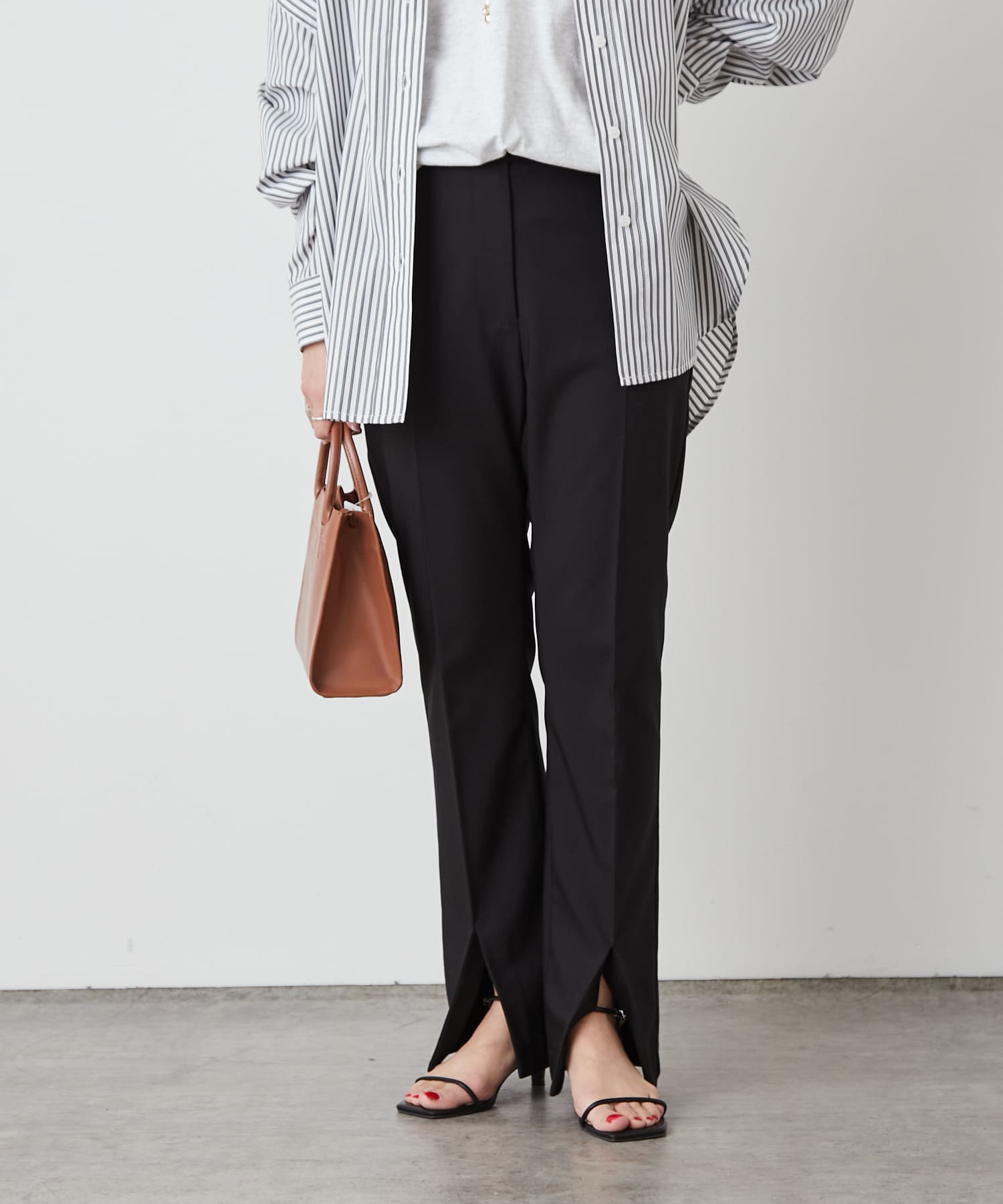・裾のスリットが抜け感があり、センターのラインとフレアのシルエットが脚長効果抜群