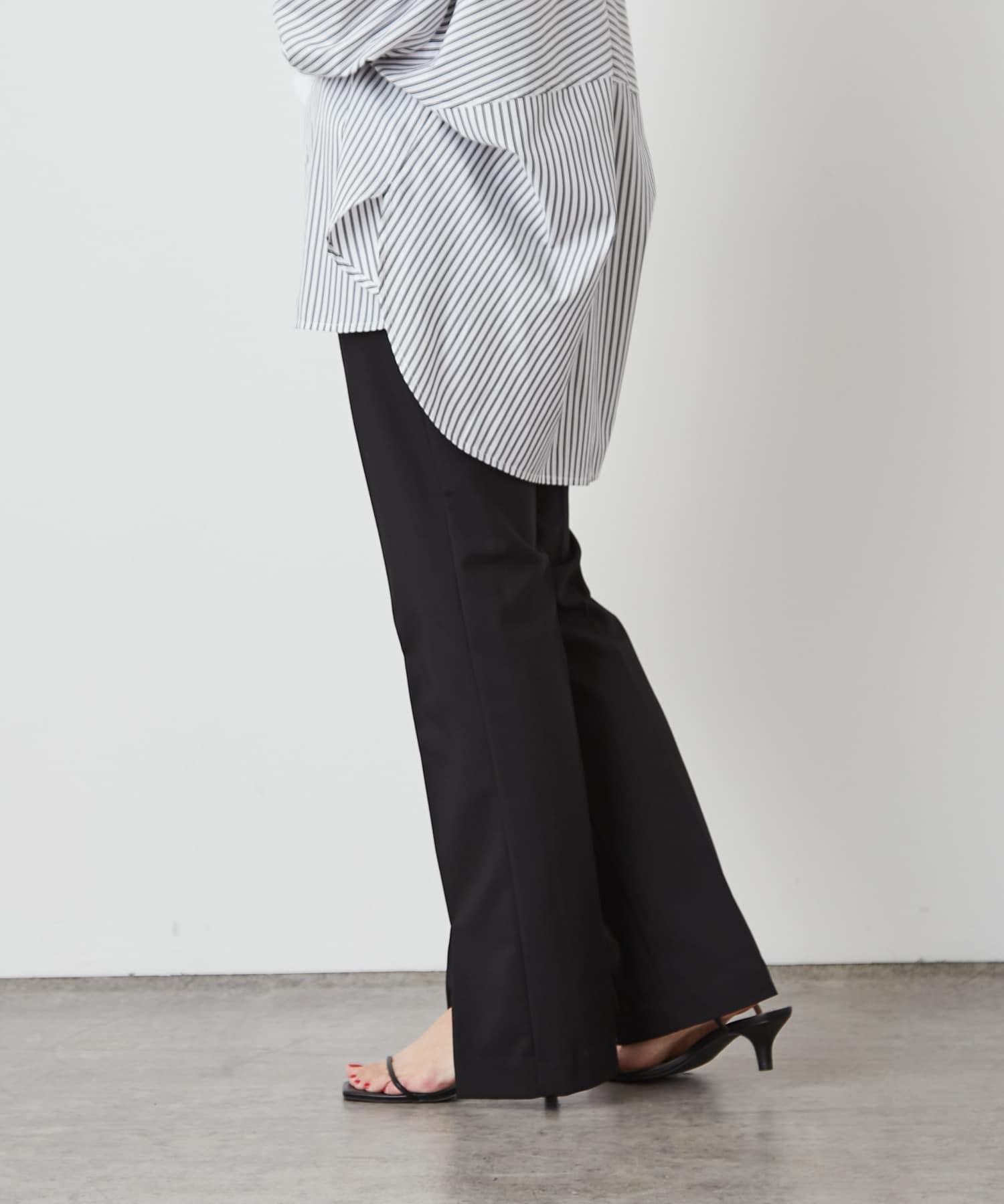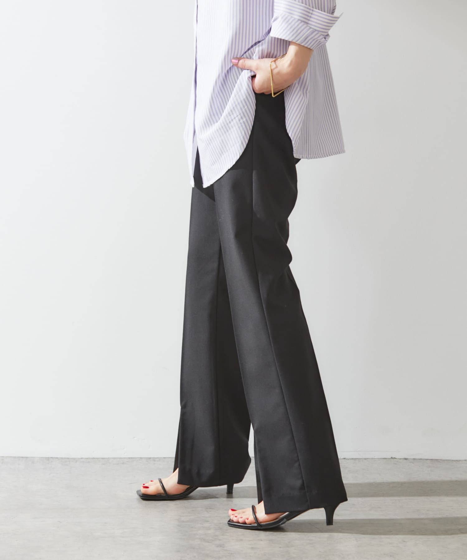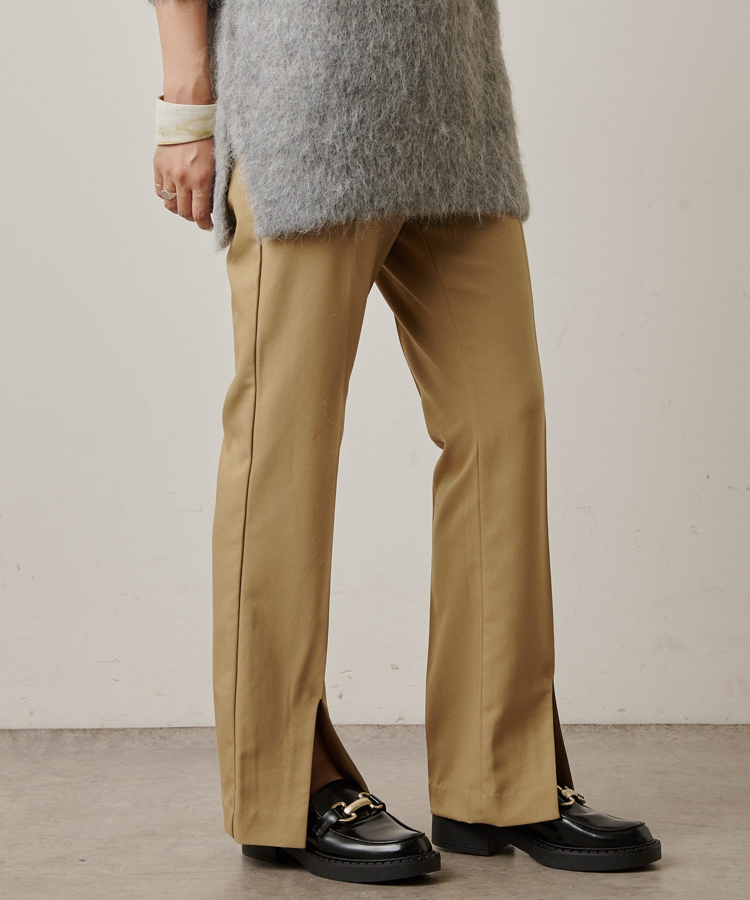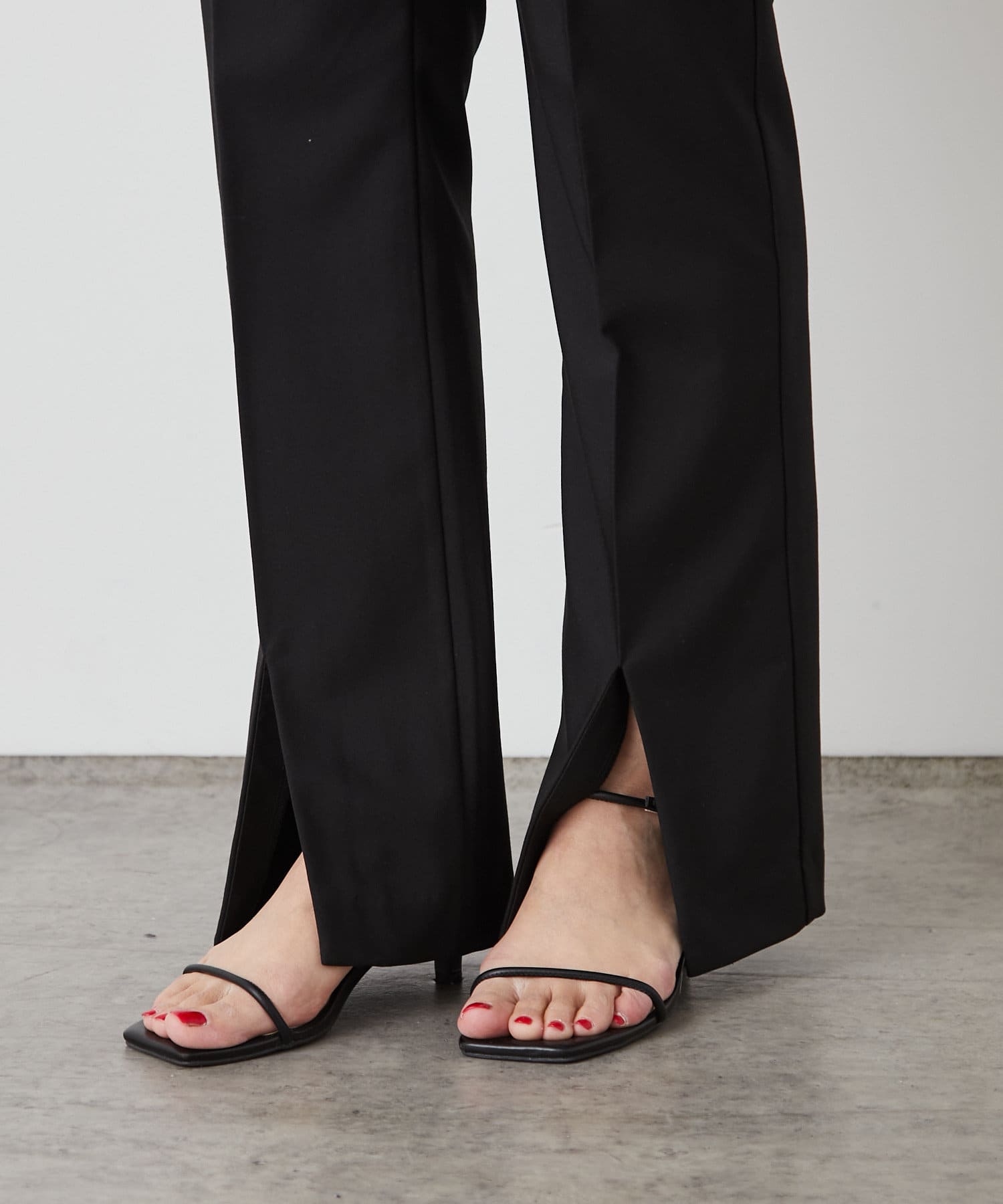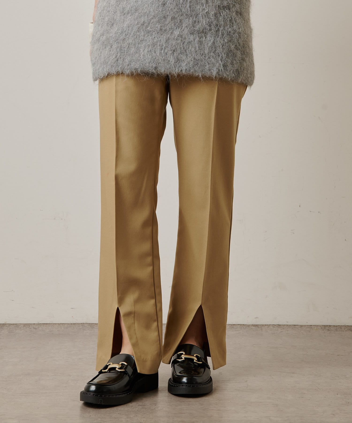 ・裾のスリットが抜け感があり、センターのラインとフレアのシルエットが脚長効果抜群