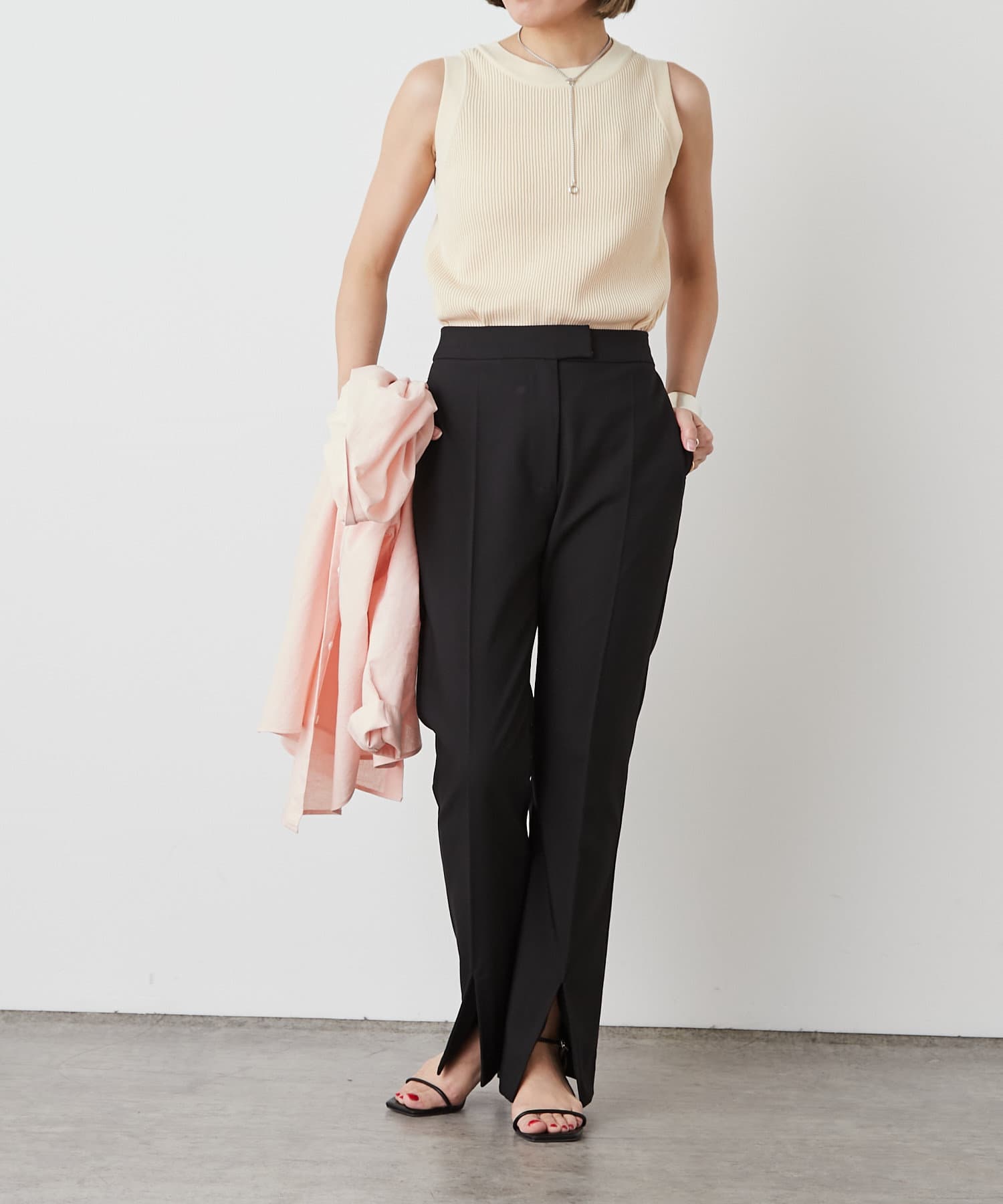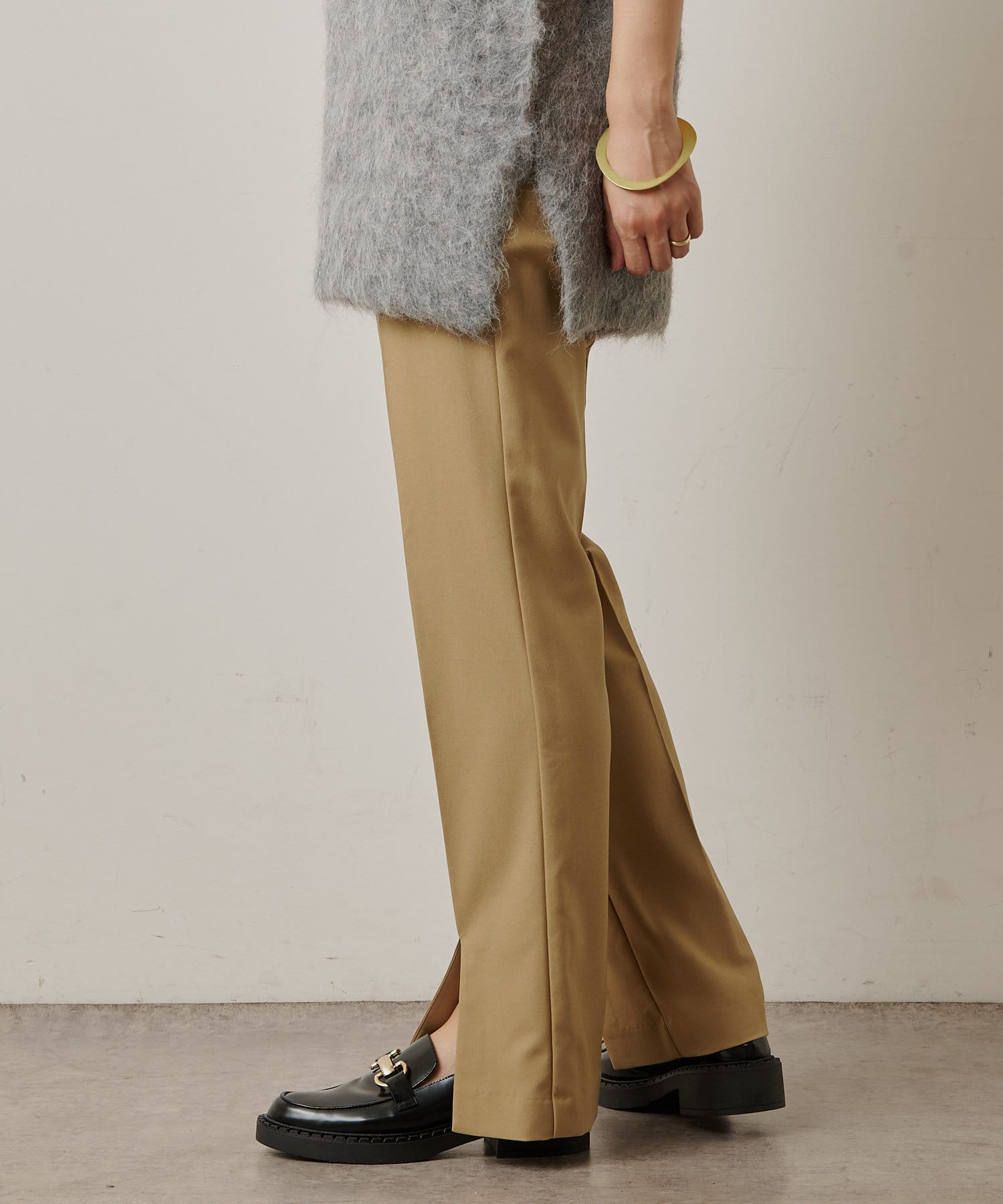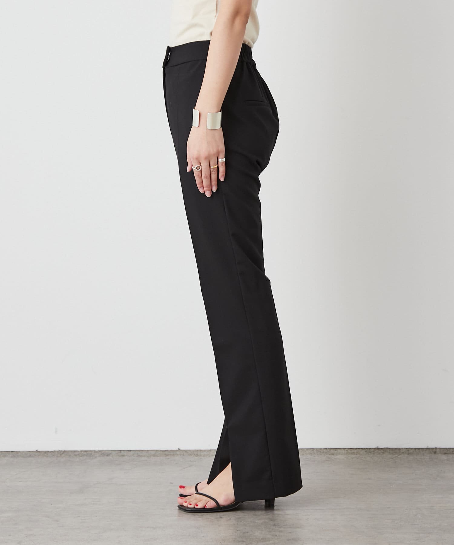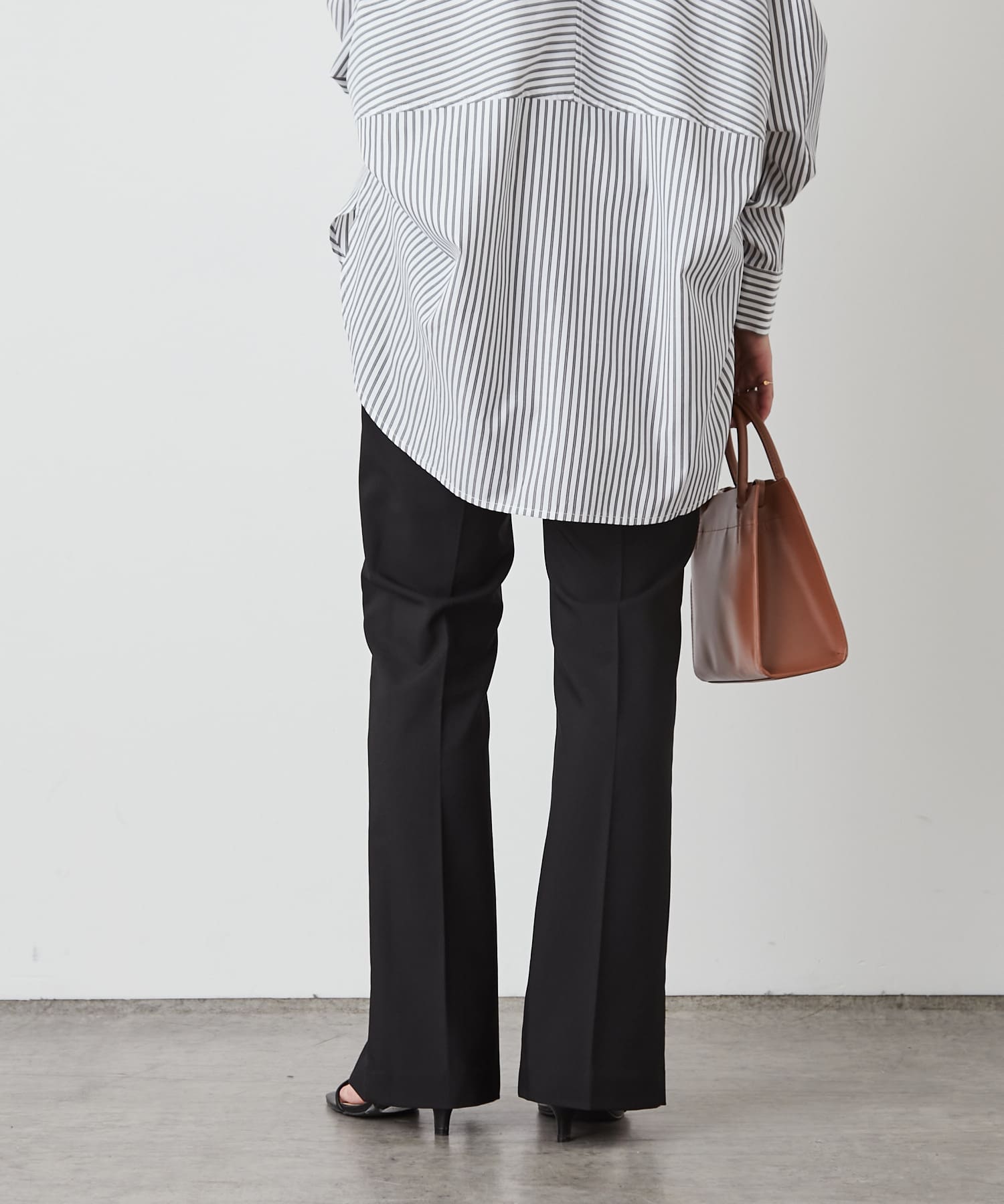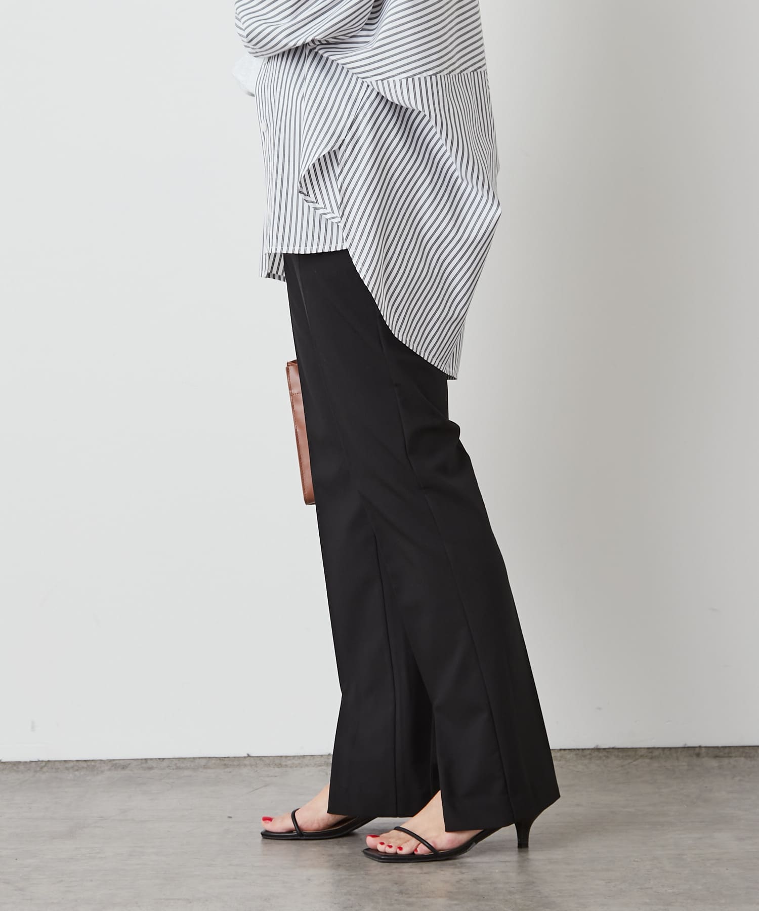 ・裾のスリットが抜け感があり、センターのラインとフレアのシルエットが脚長効果抜群