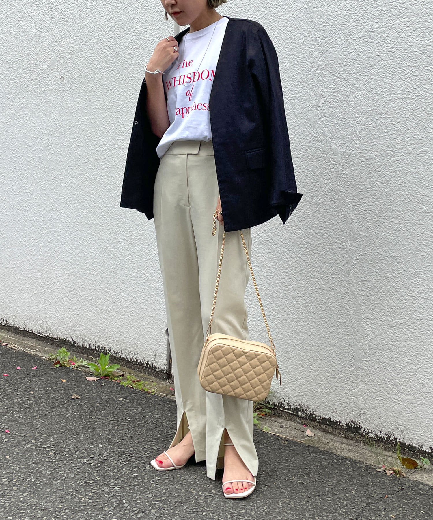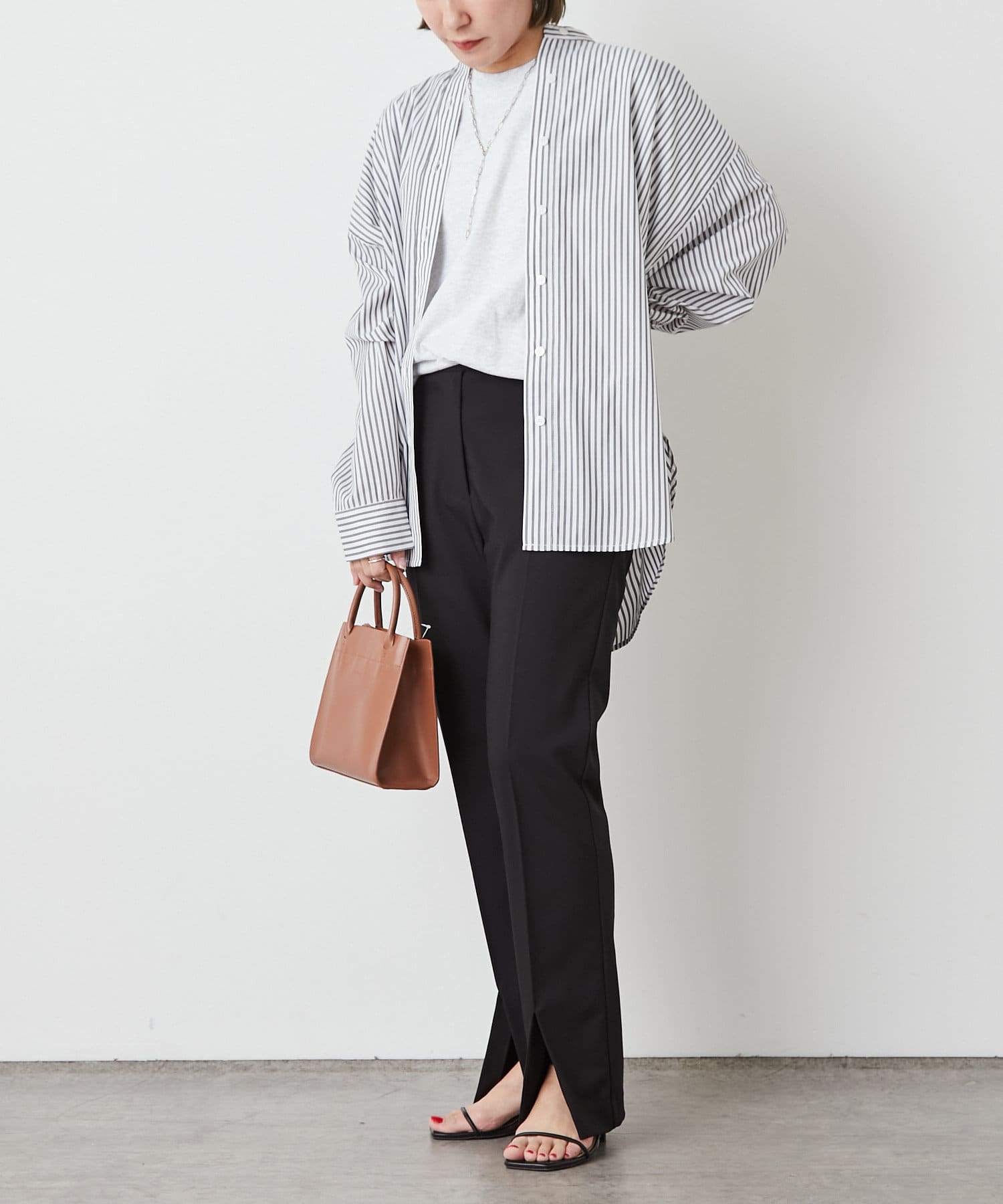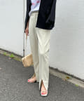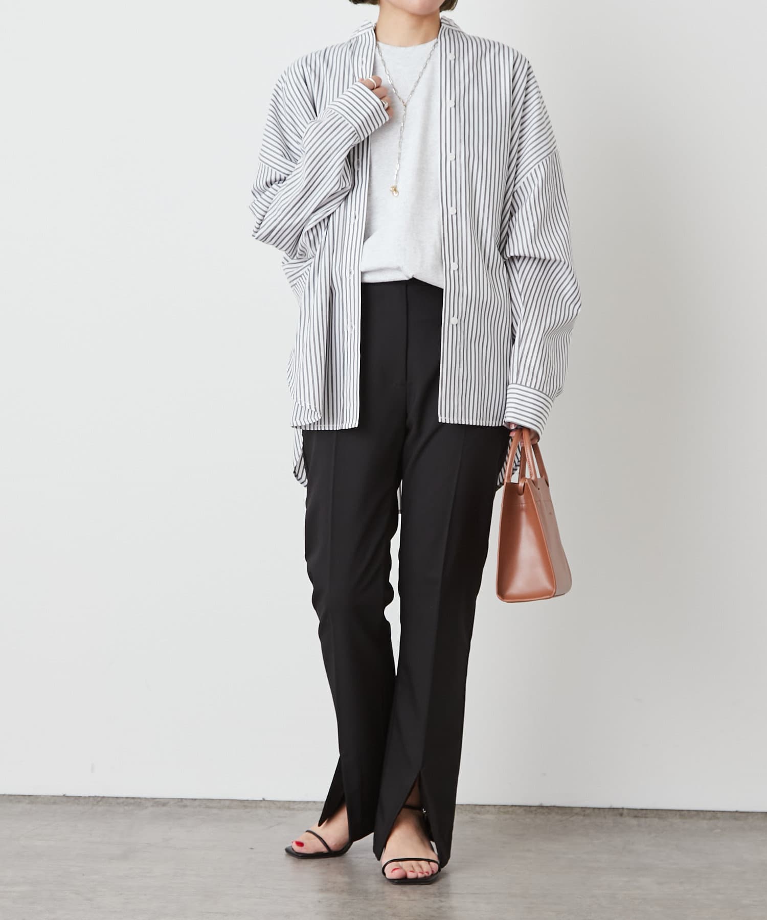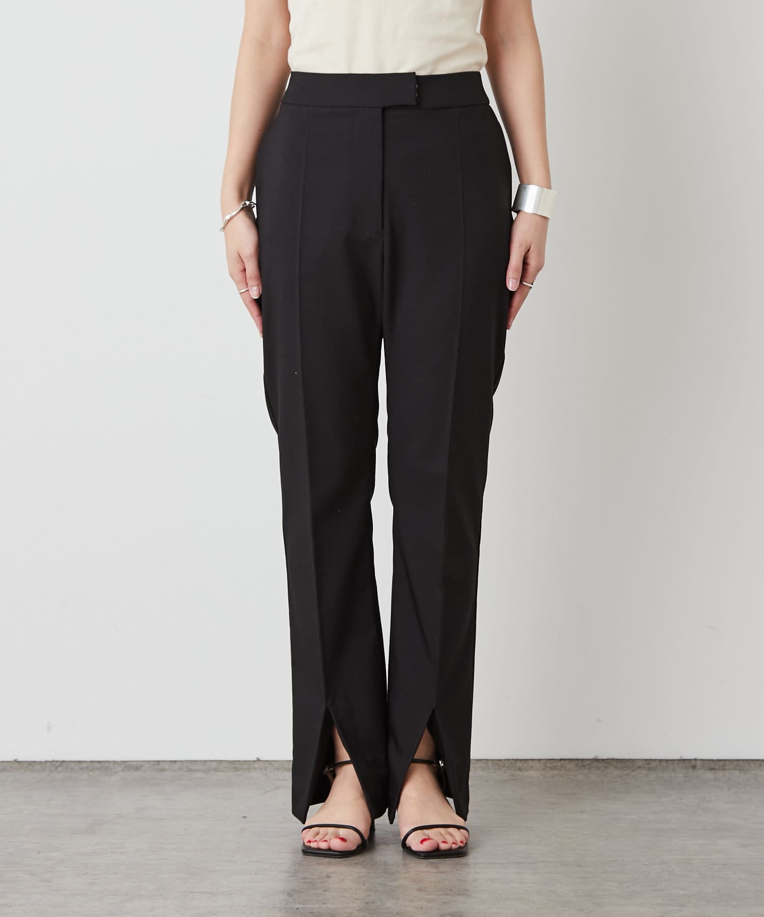 ・裾のスリットが抜け感があり、センターのラインとフレアのシルエットが脚長効果抜群
