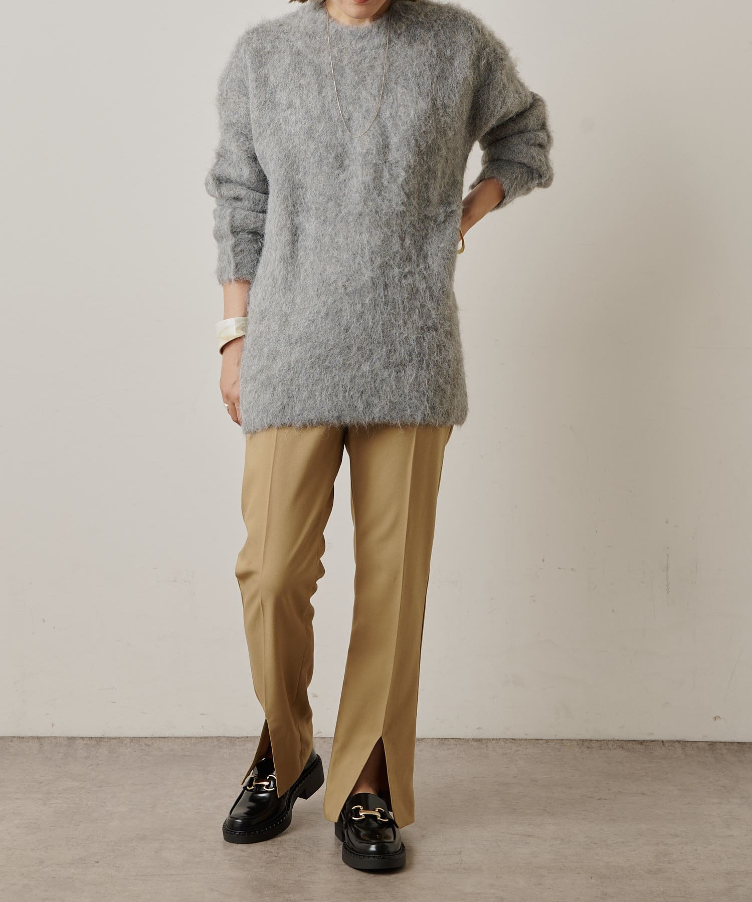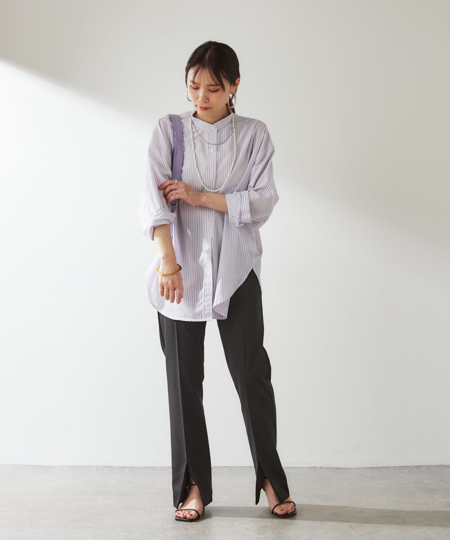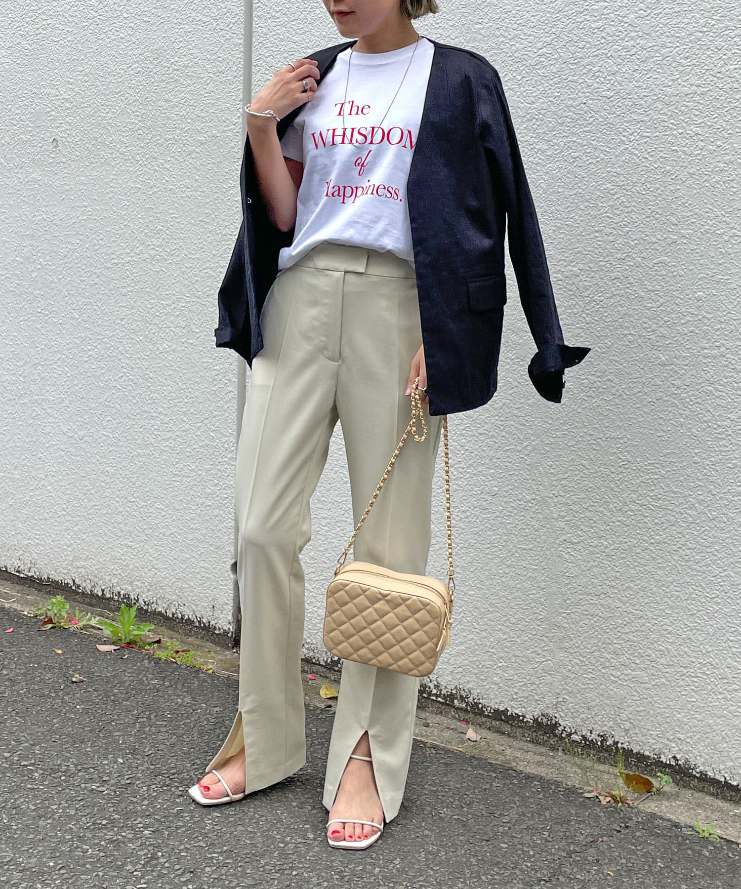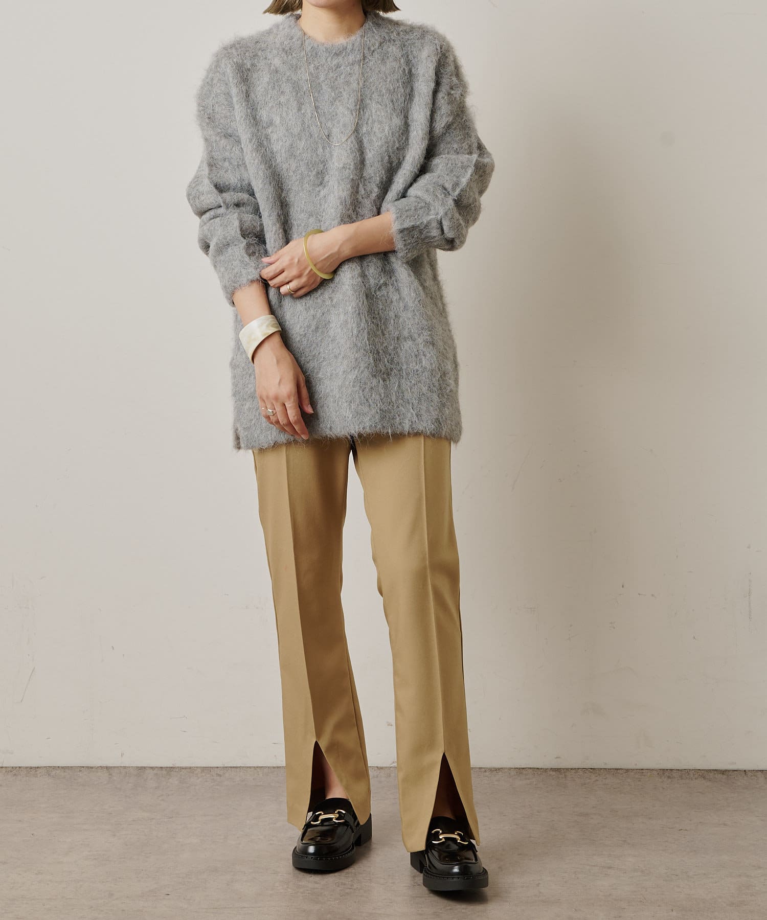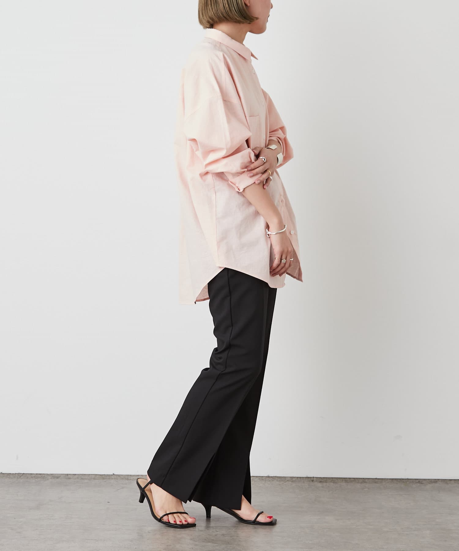 ・裾のスリットが抜け感があり、センターのラインとフレアのシルエットが脚長効果抜群