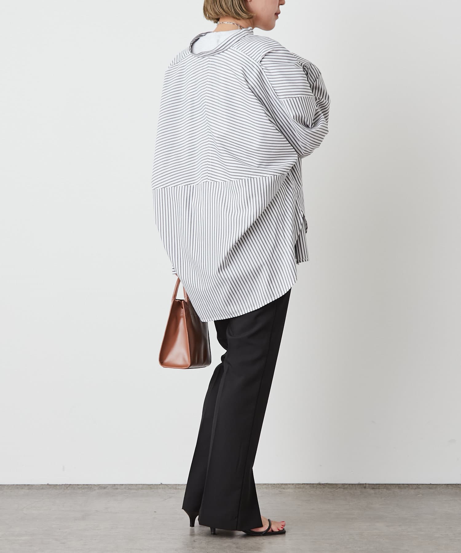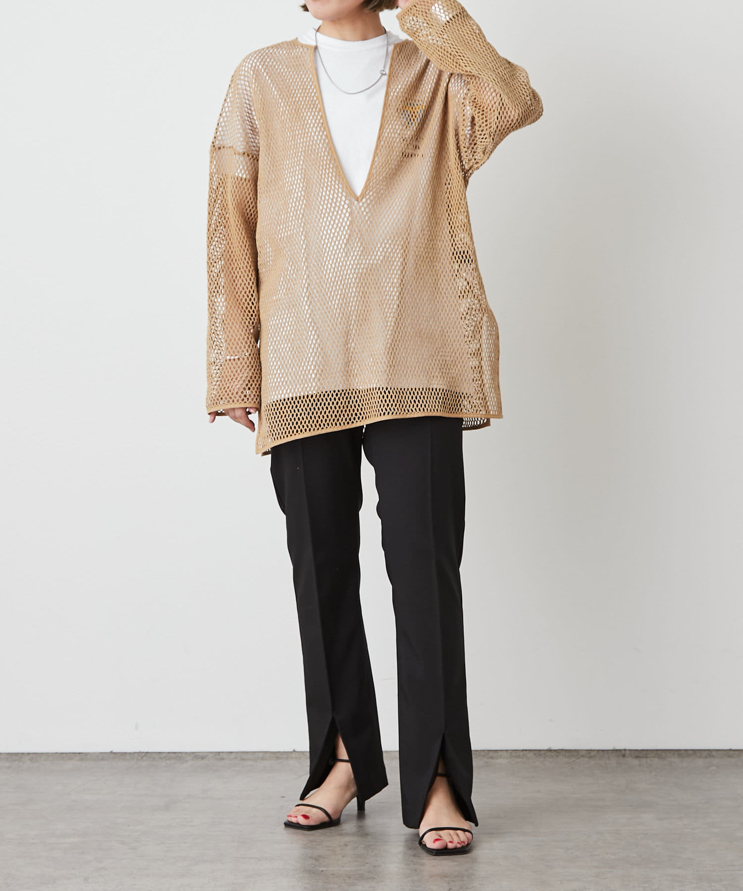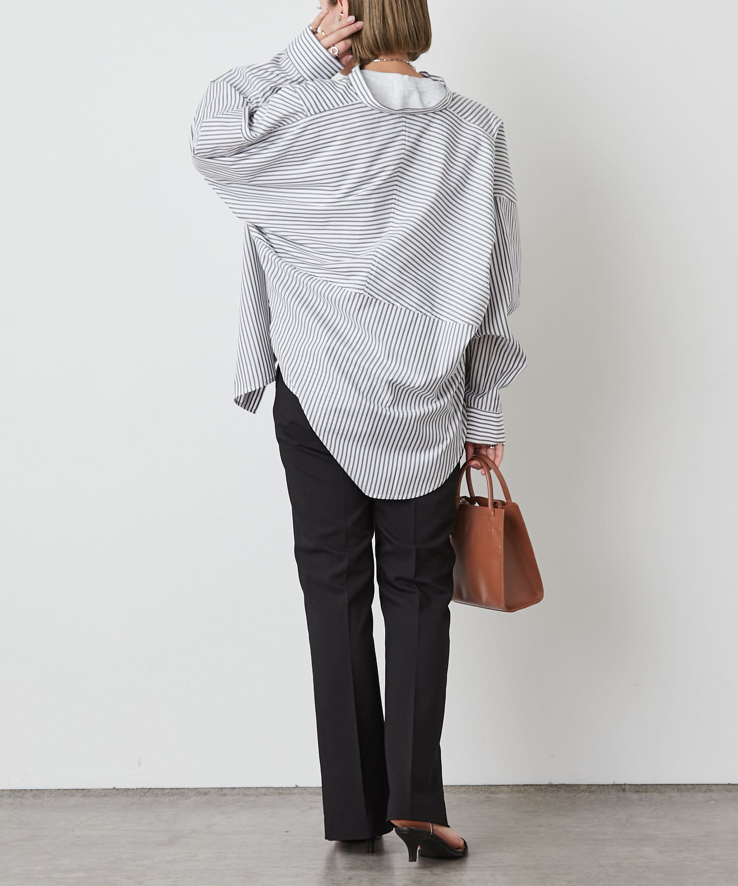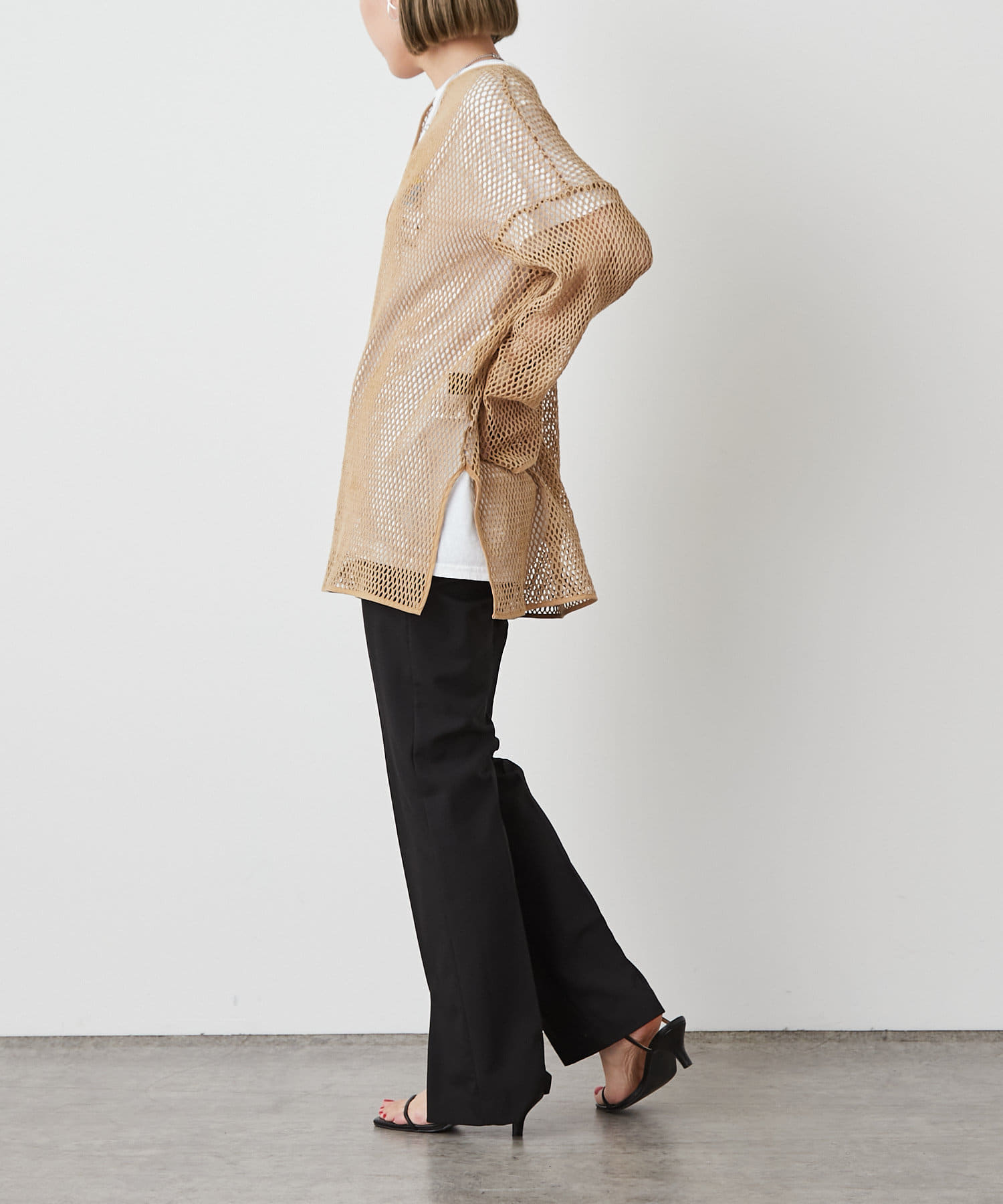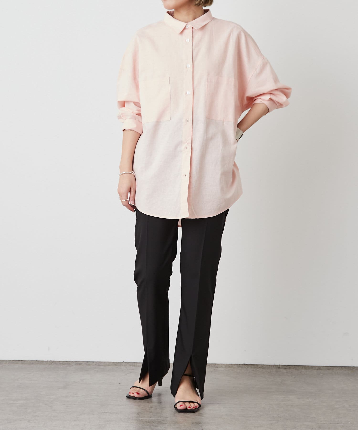 ・裾のスリットが抜け感があり、センターのラインとフレアのシルエットが脚長効果抜群
