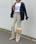 ・すっきりとしたシルエットですが、ウエストゴム仕様でノンストレな履き心地もうれしいポイント。