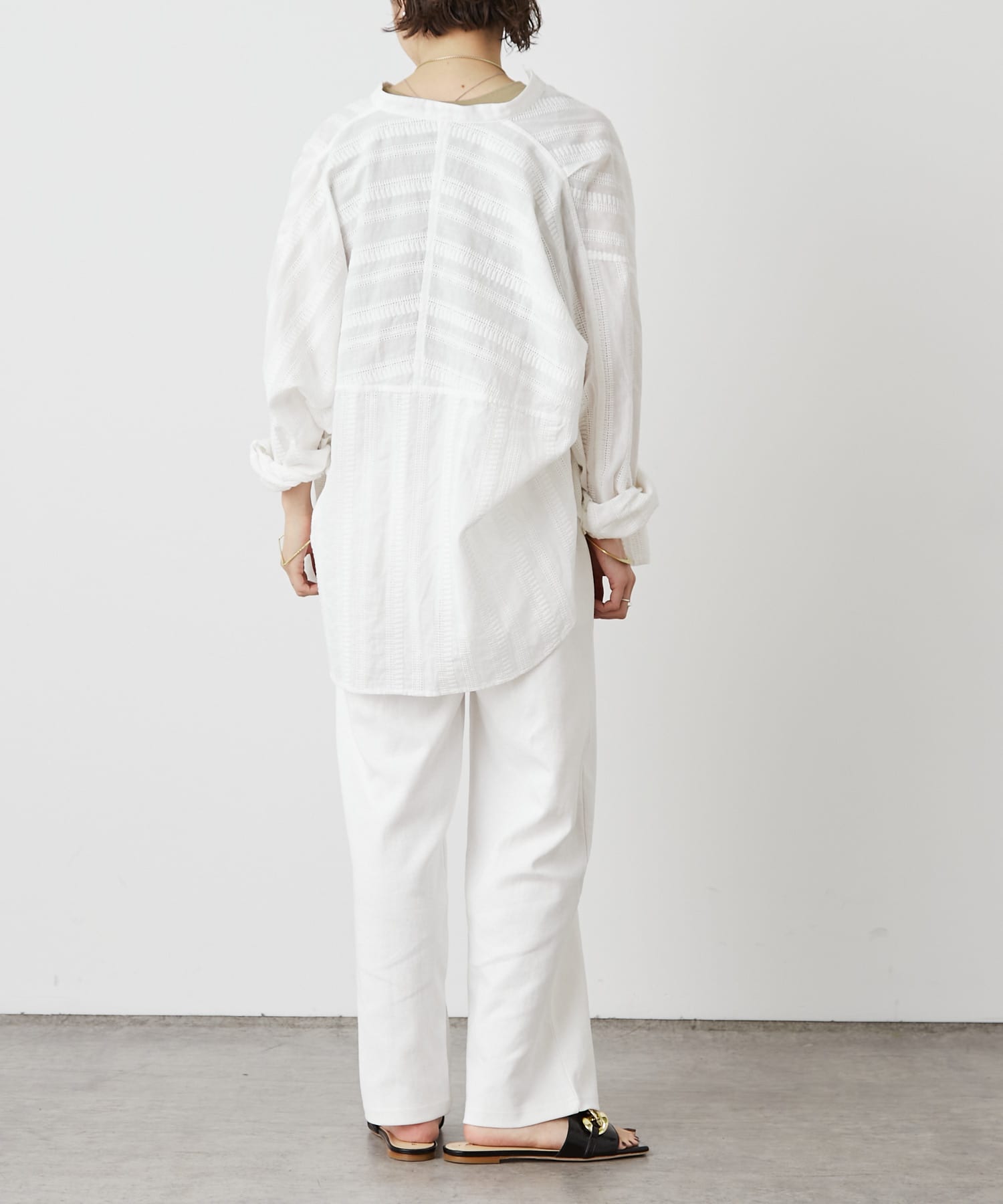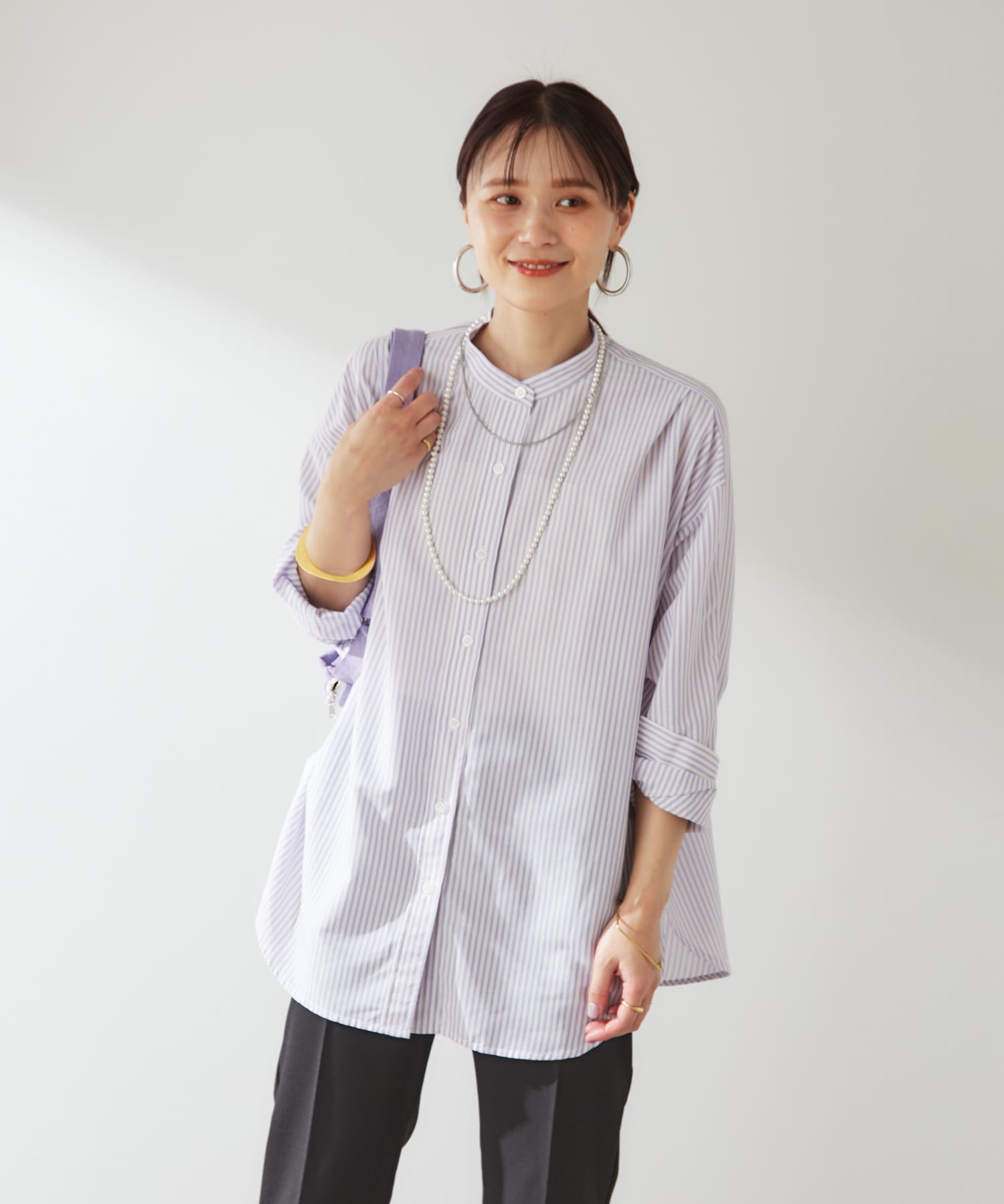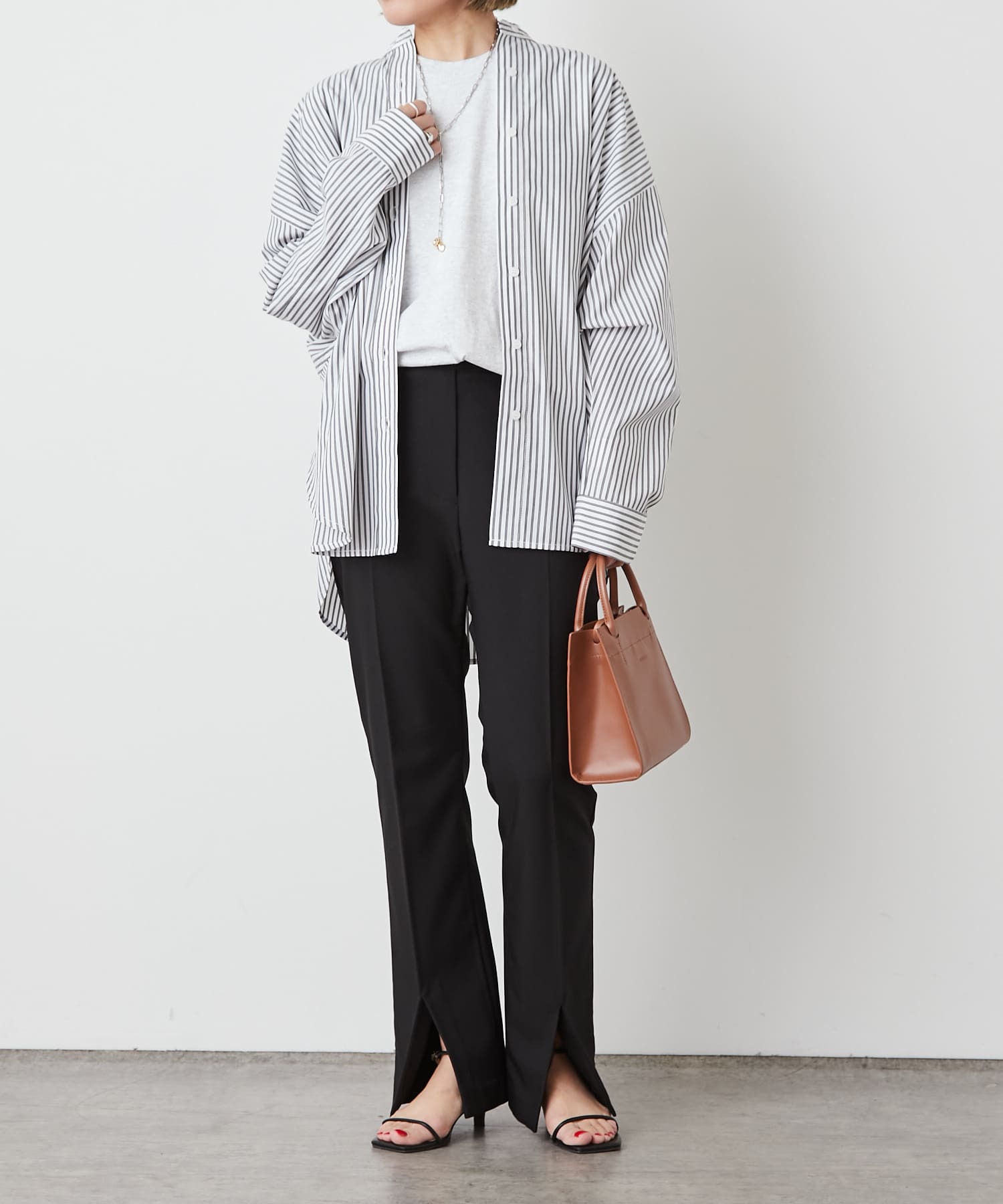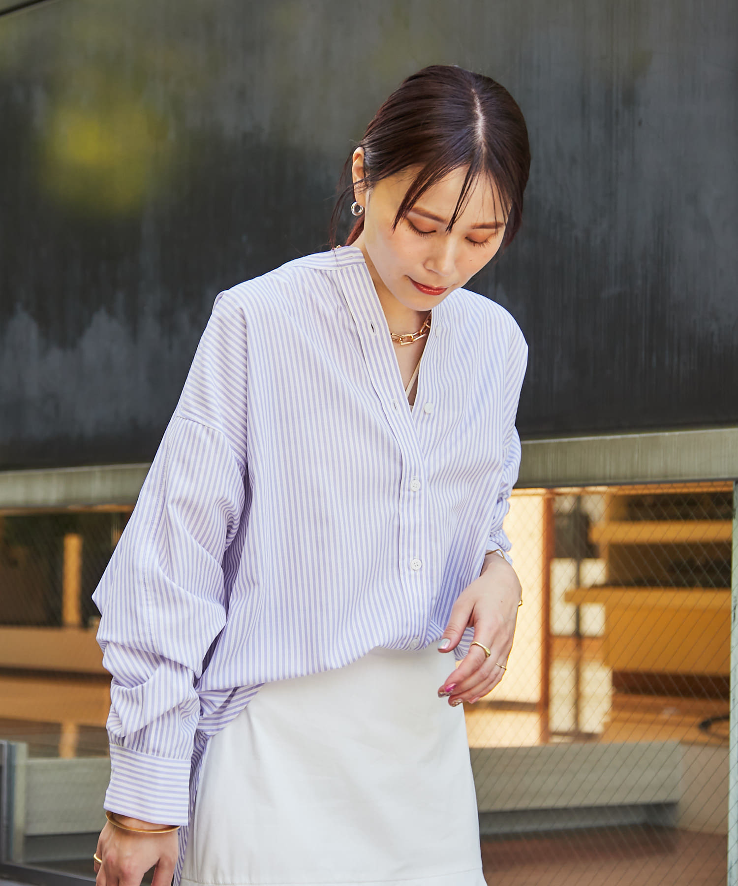 ・ノーカラーですっきりとした襟ぐりで着やすさも◎