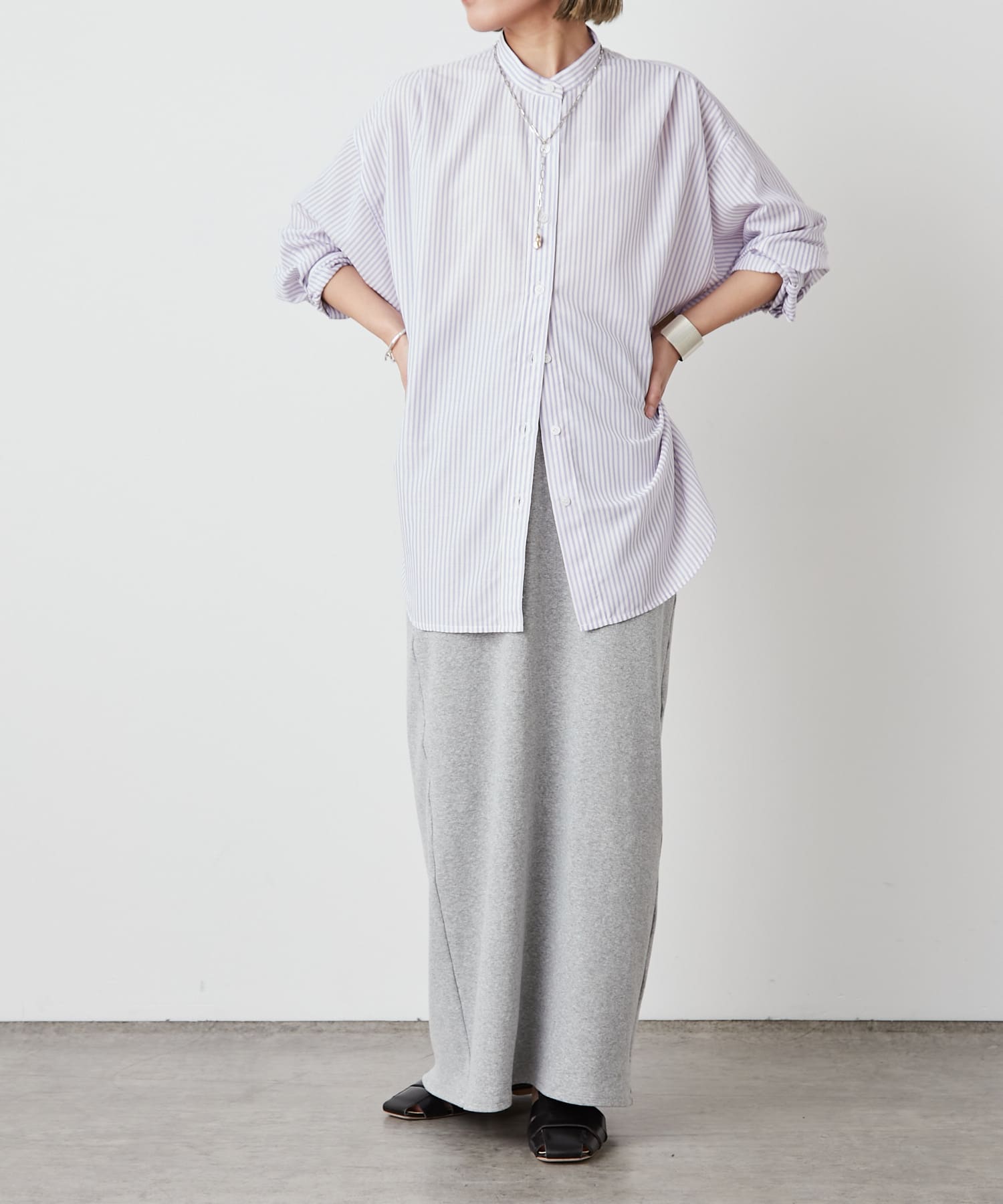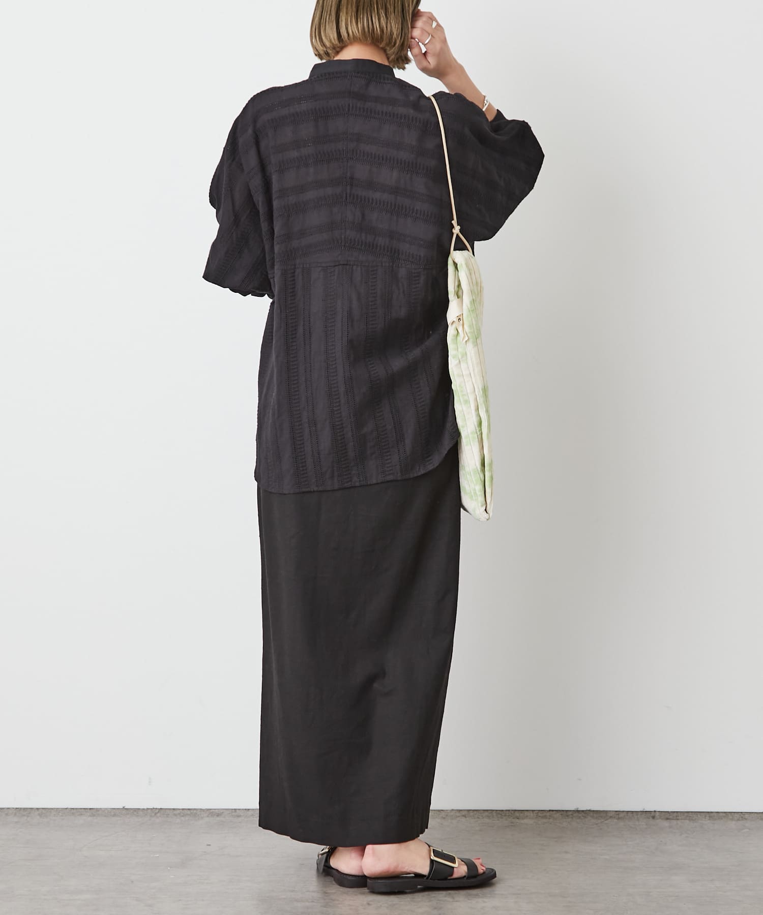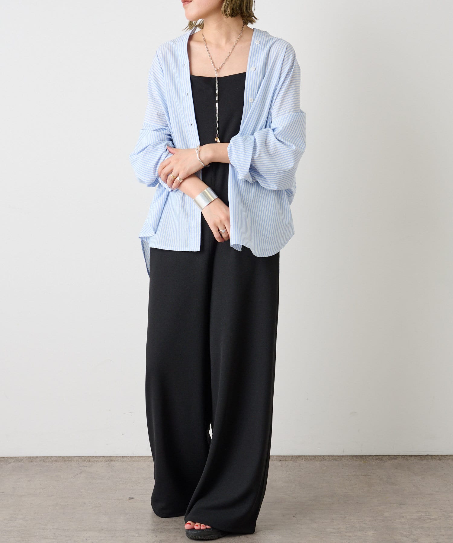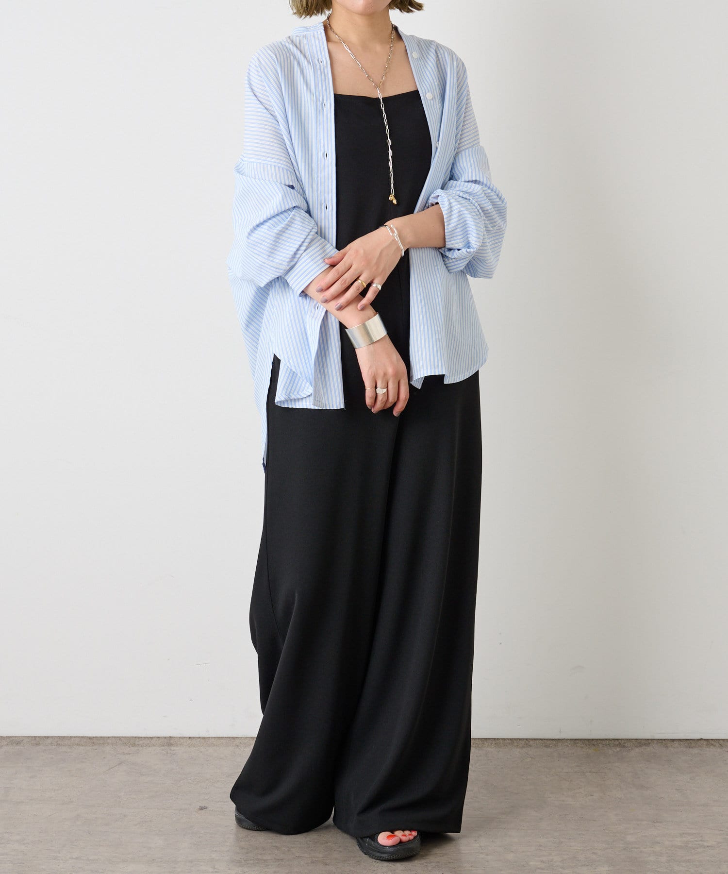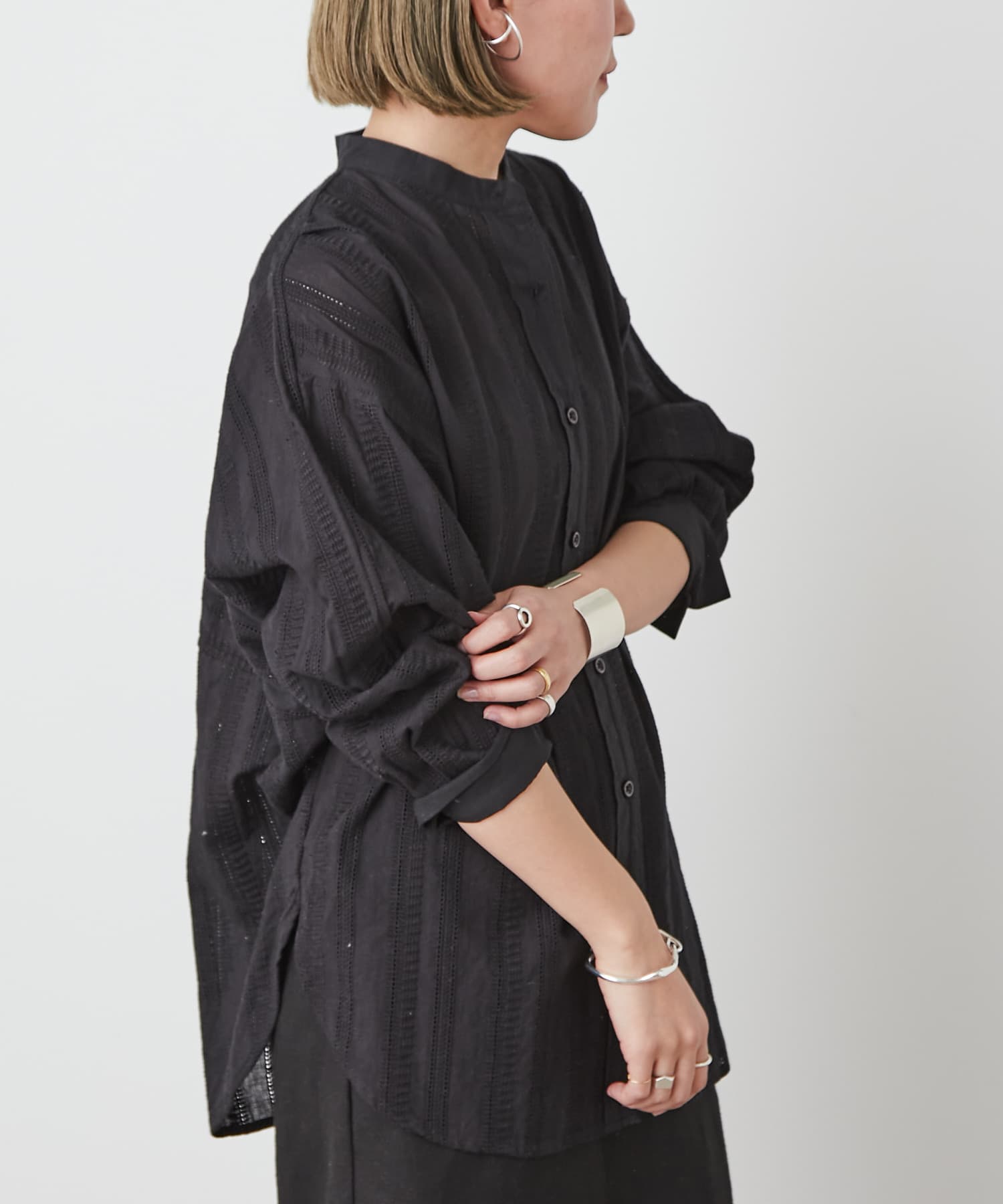 ・ノーカラーですっきりとした襟ぐりで着やすさも◎