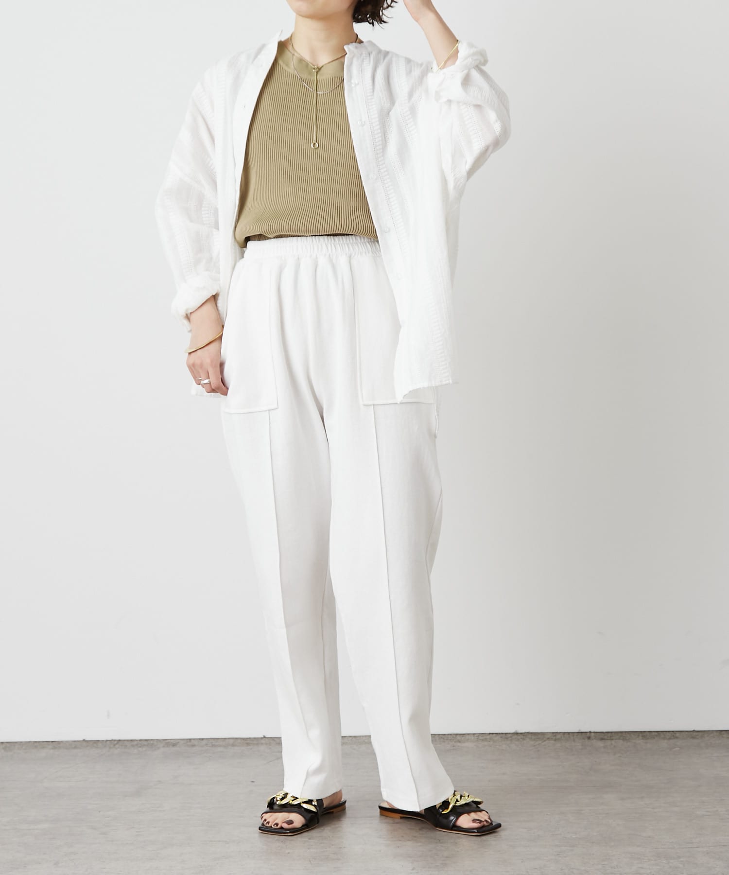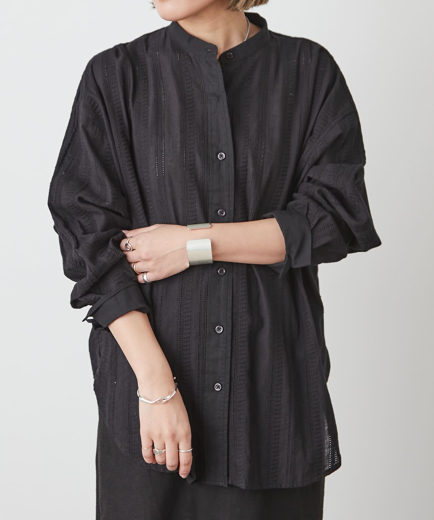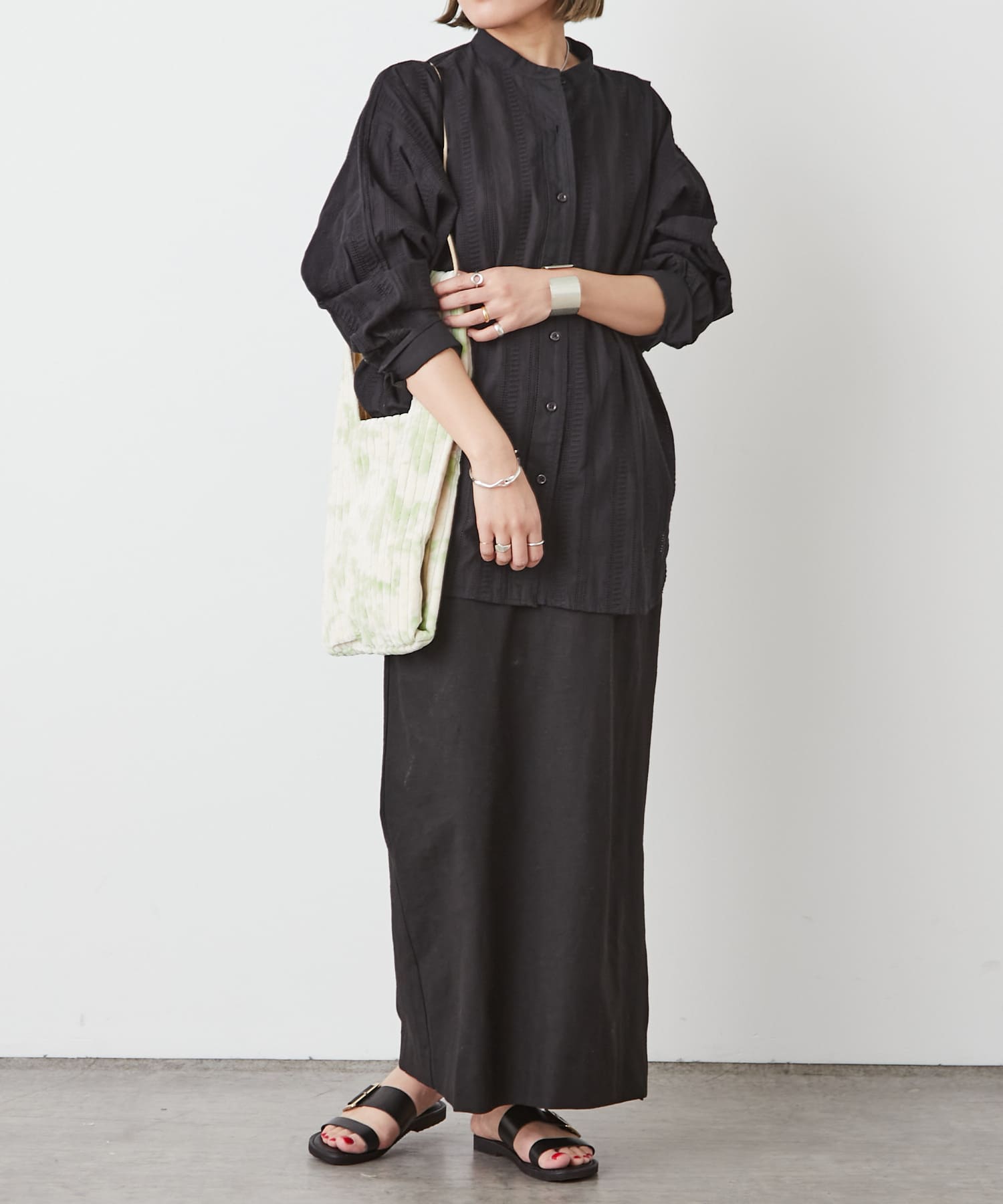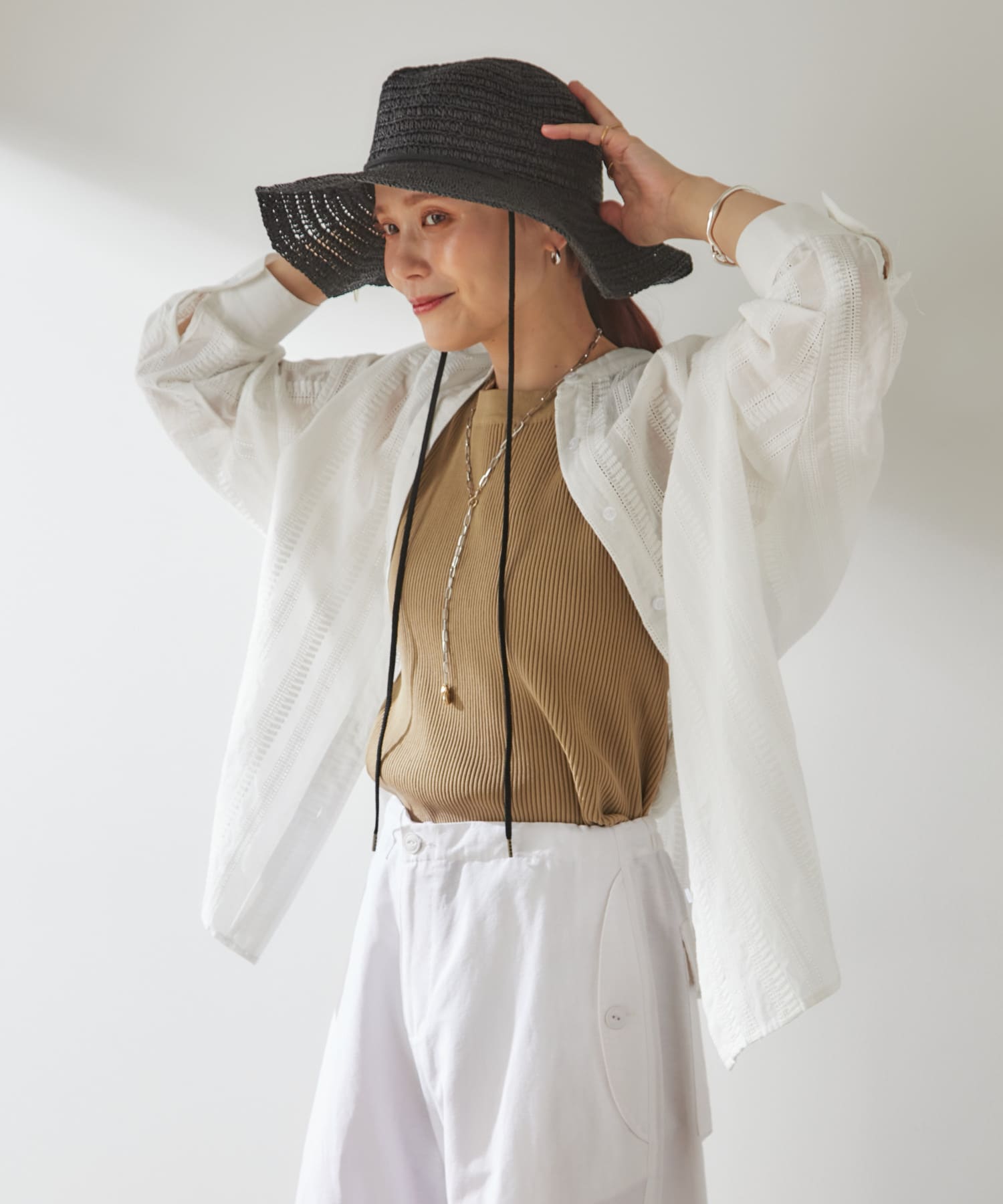 ・ノーカラーですっきりとした襟ぐりで着やすさも◎