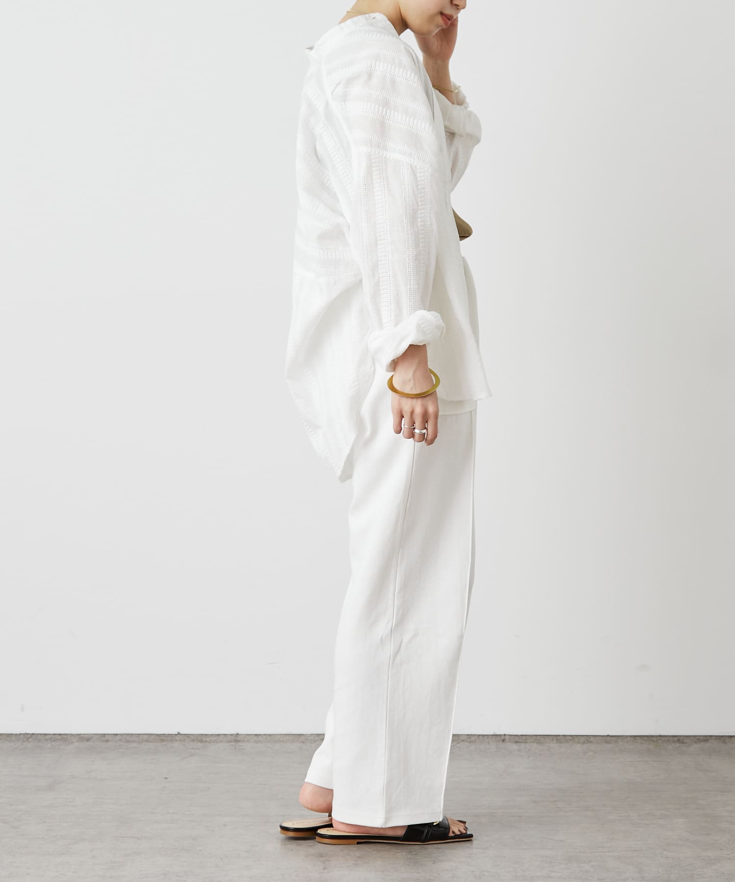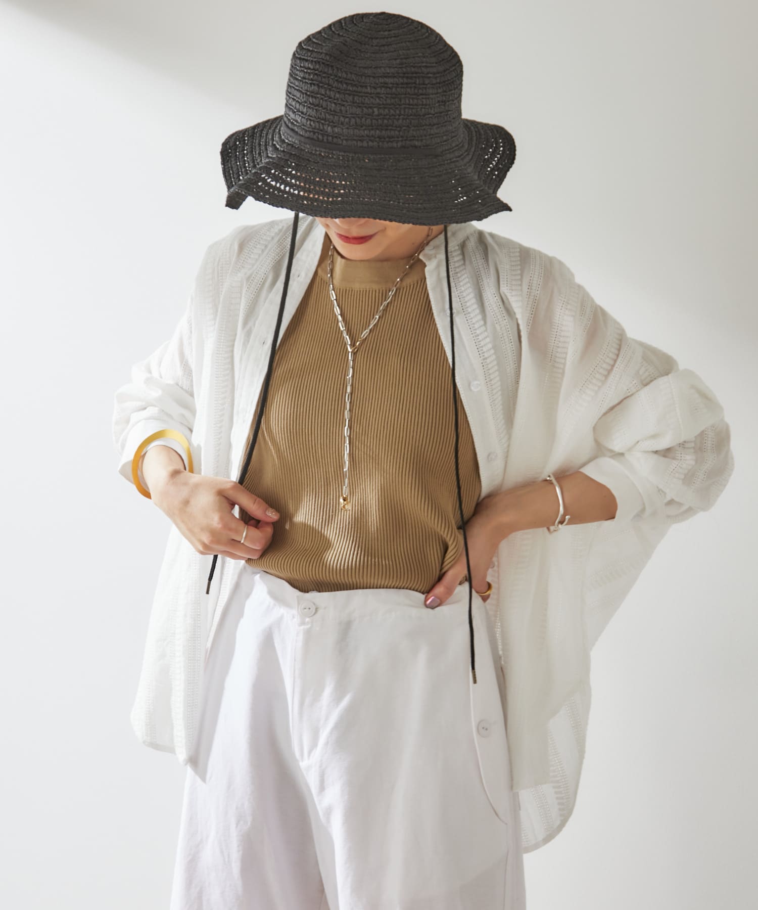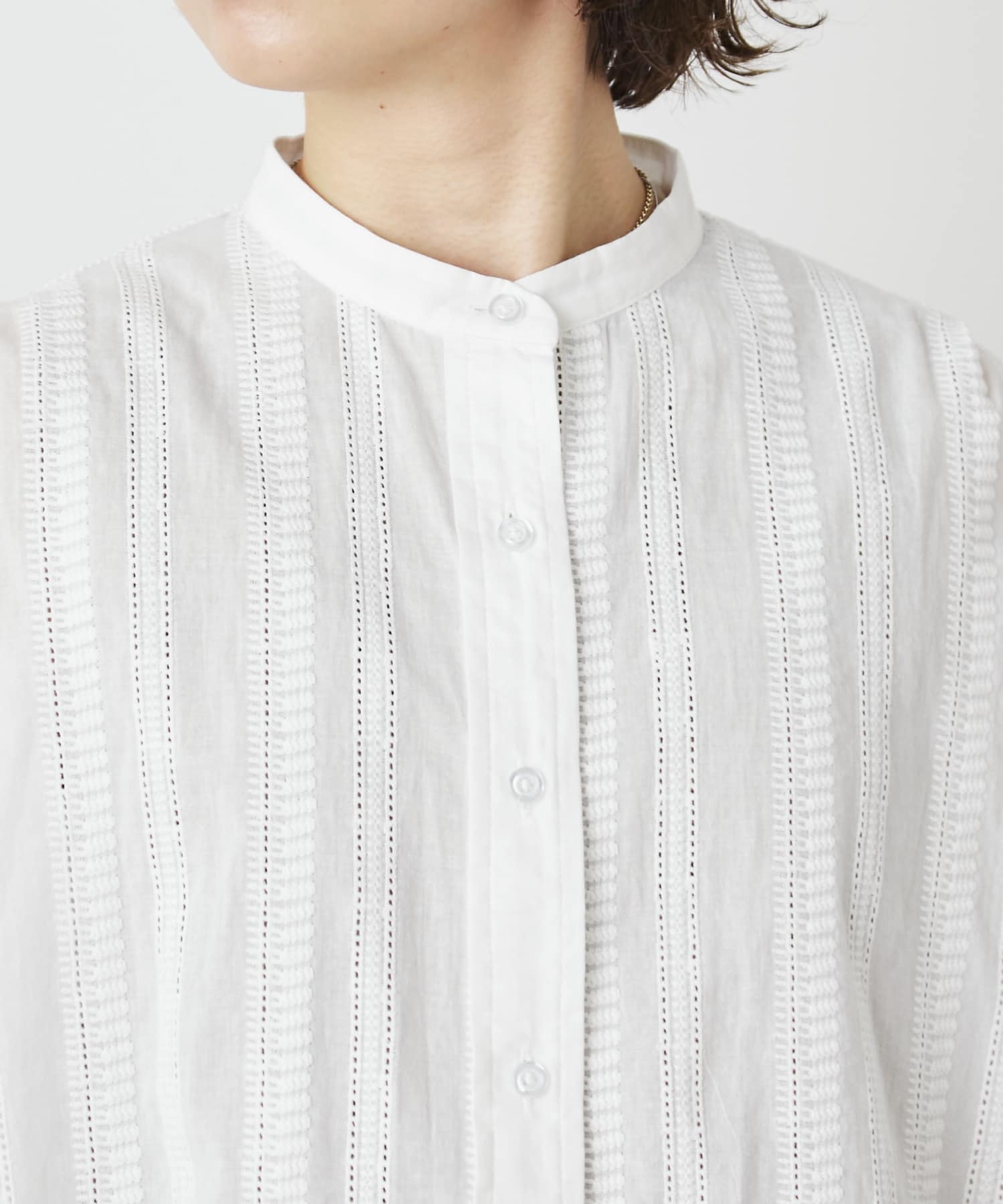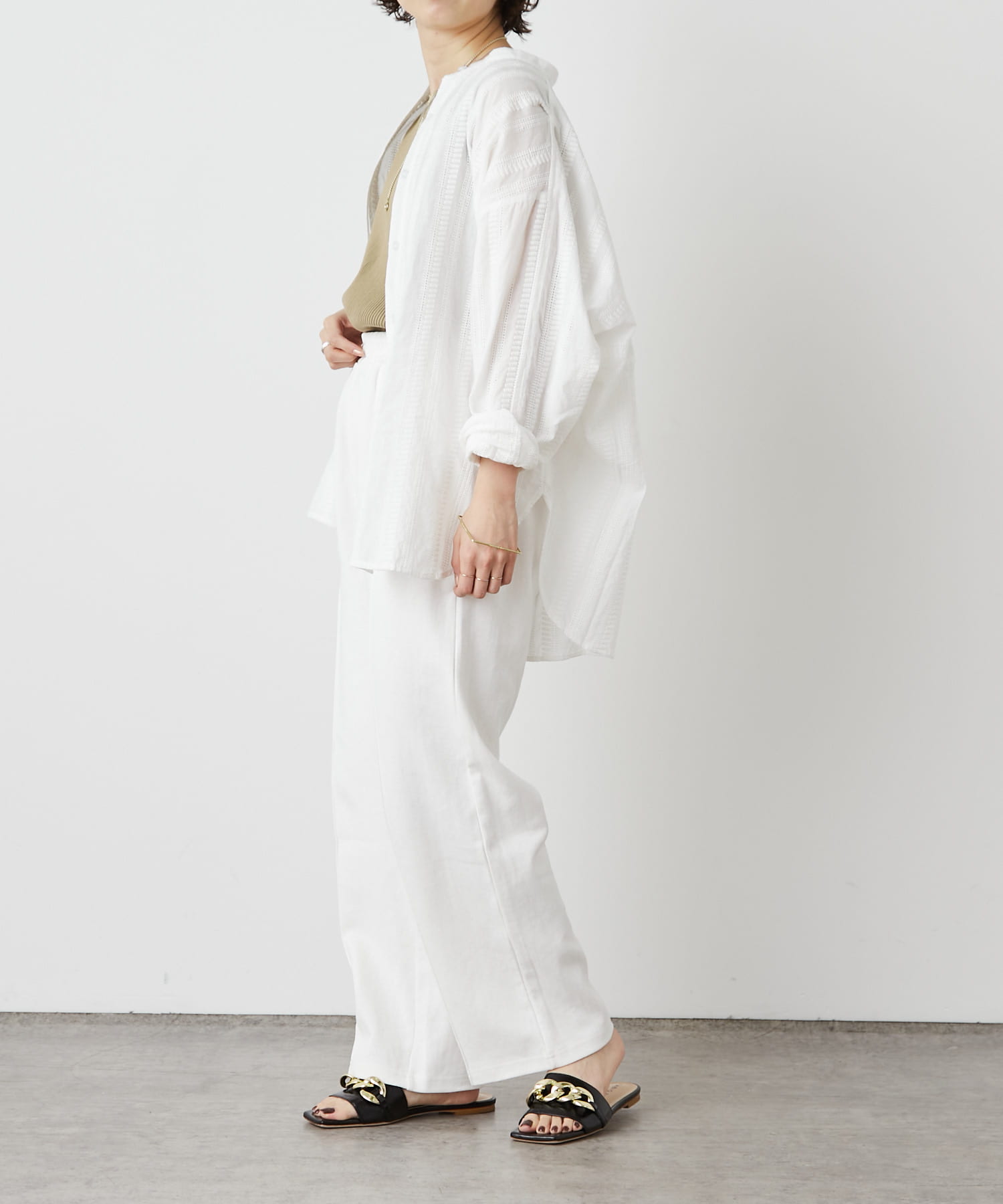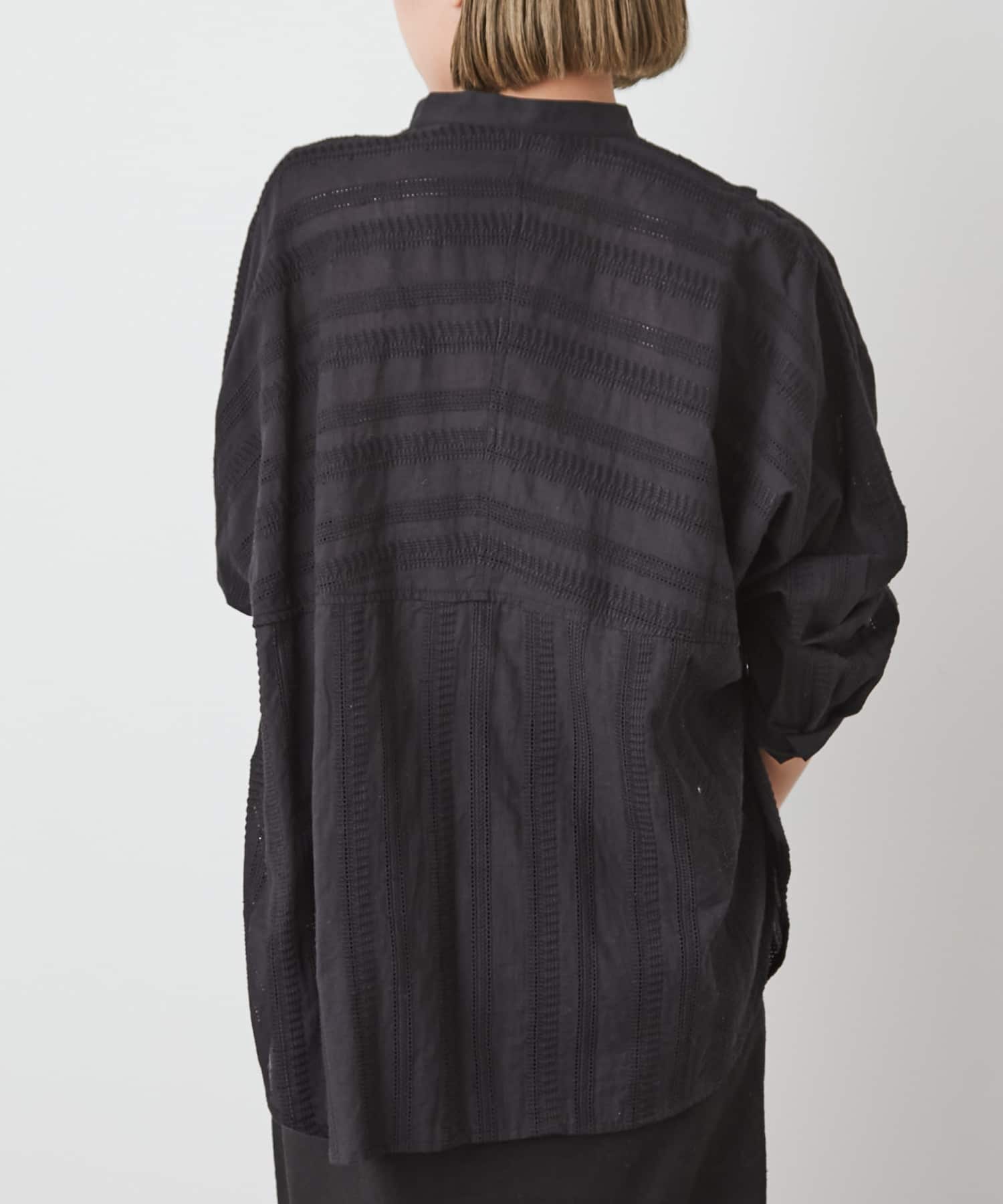 ・ノーカラーですっきりとした襟ぐりで着やすさも◎