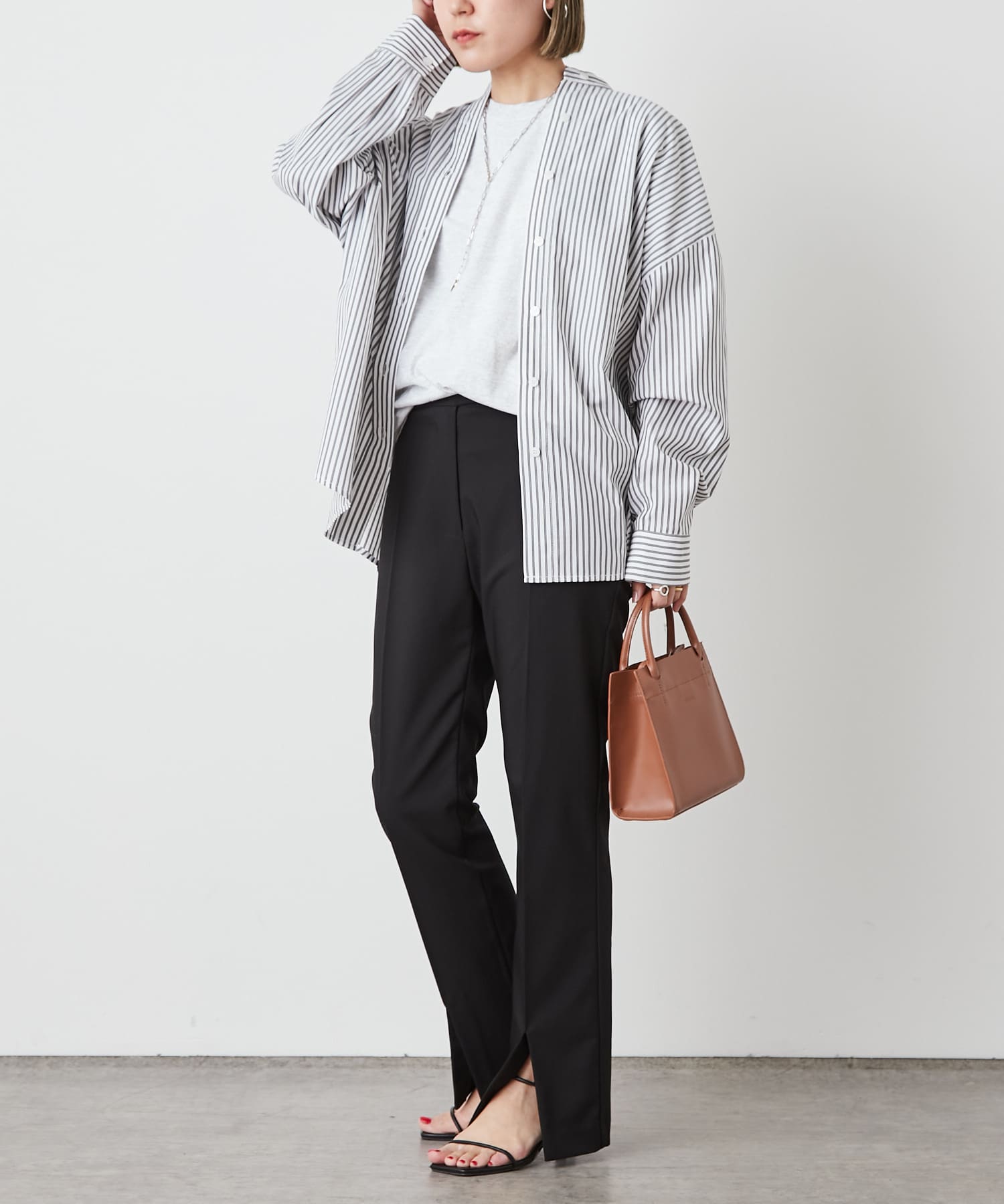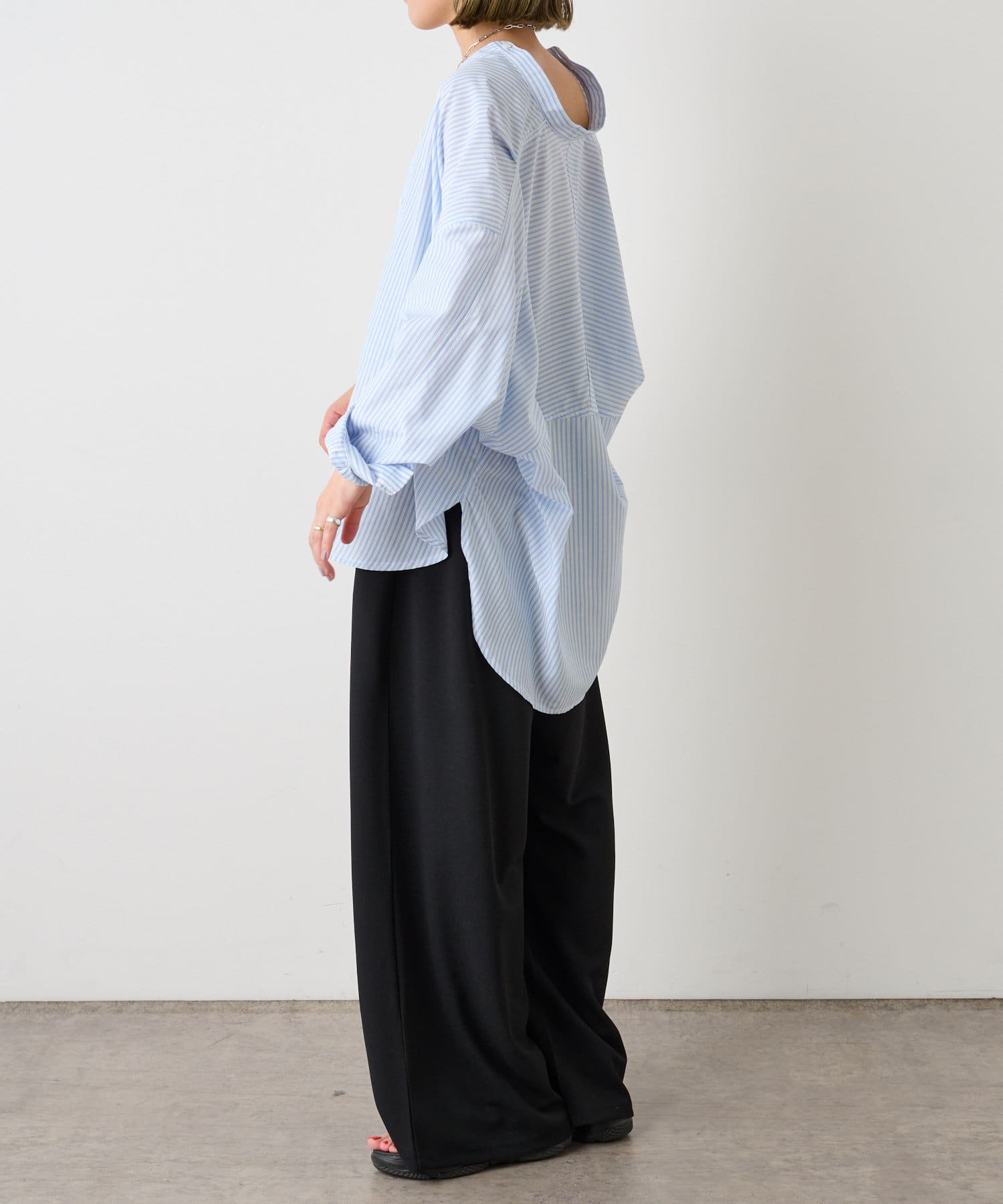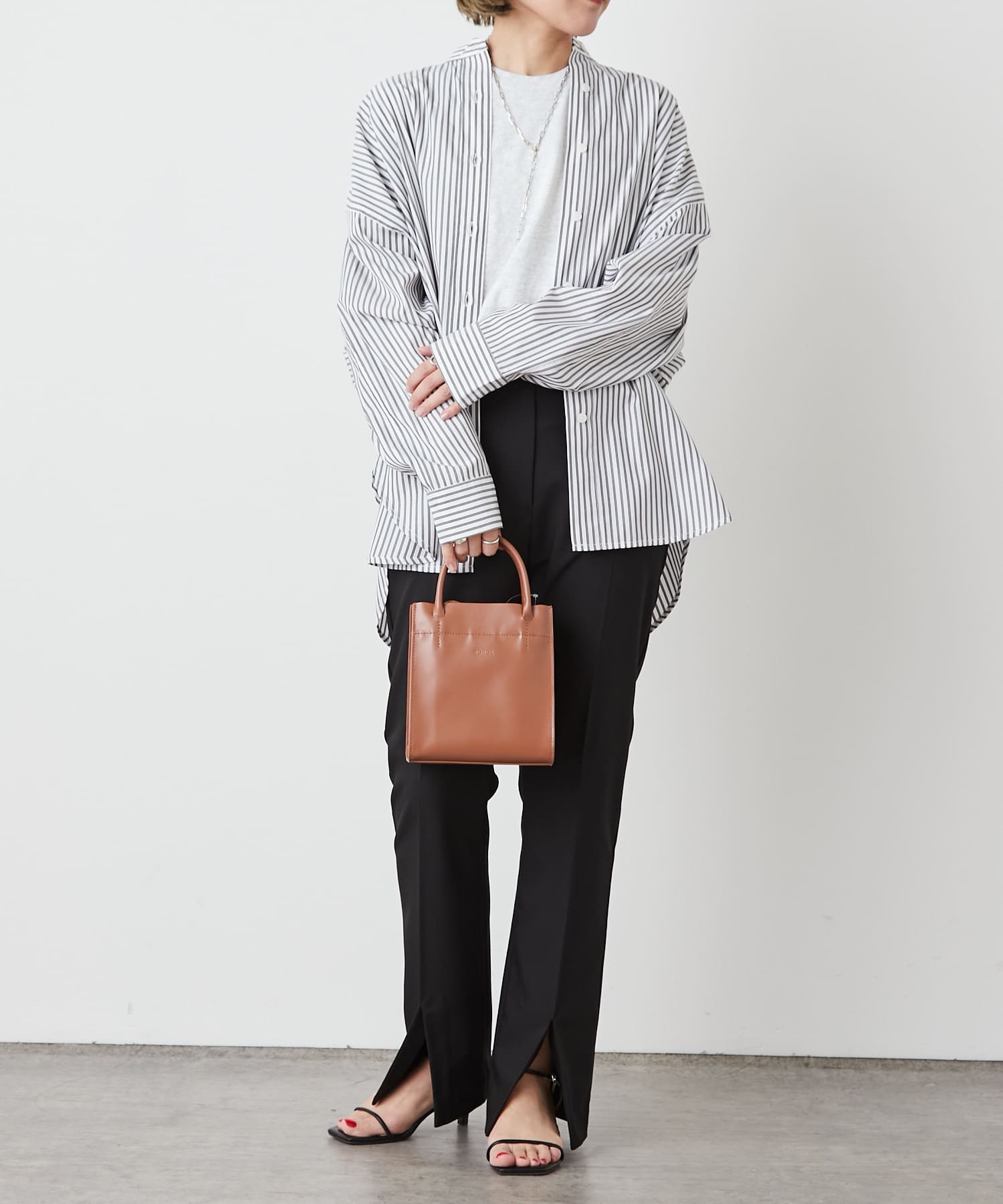 ・後ろはヒップが隠れるやや長めの丈感でタイトボトムとのスタイリングも◎