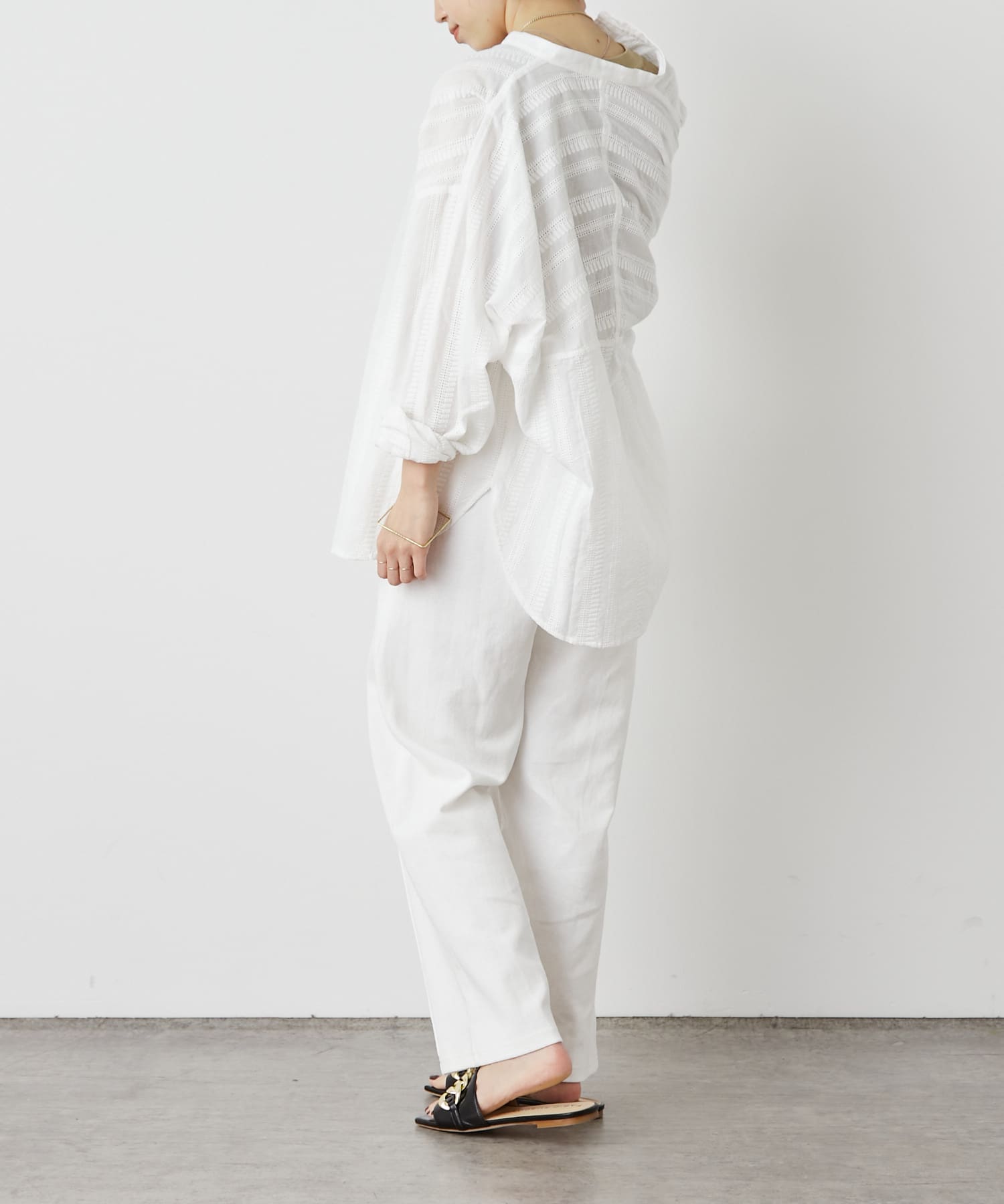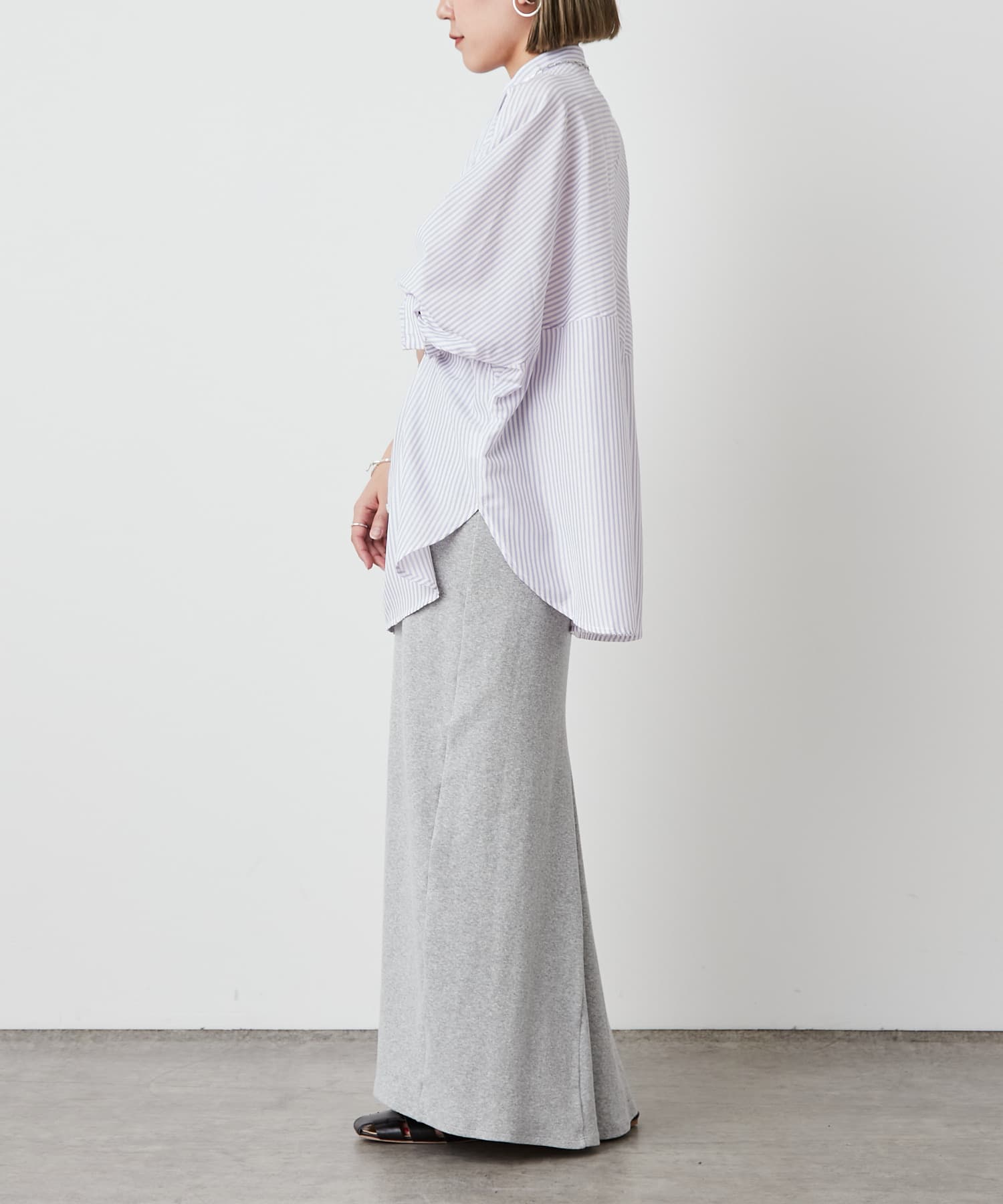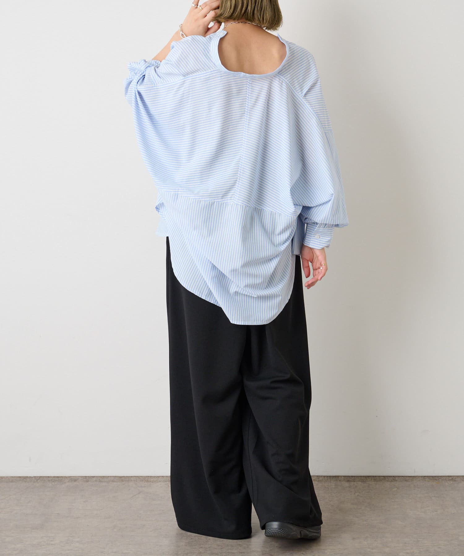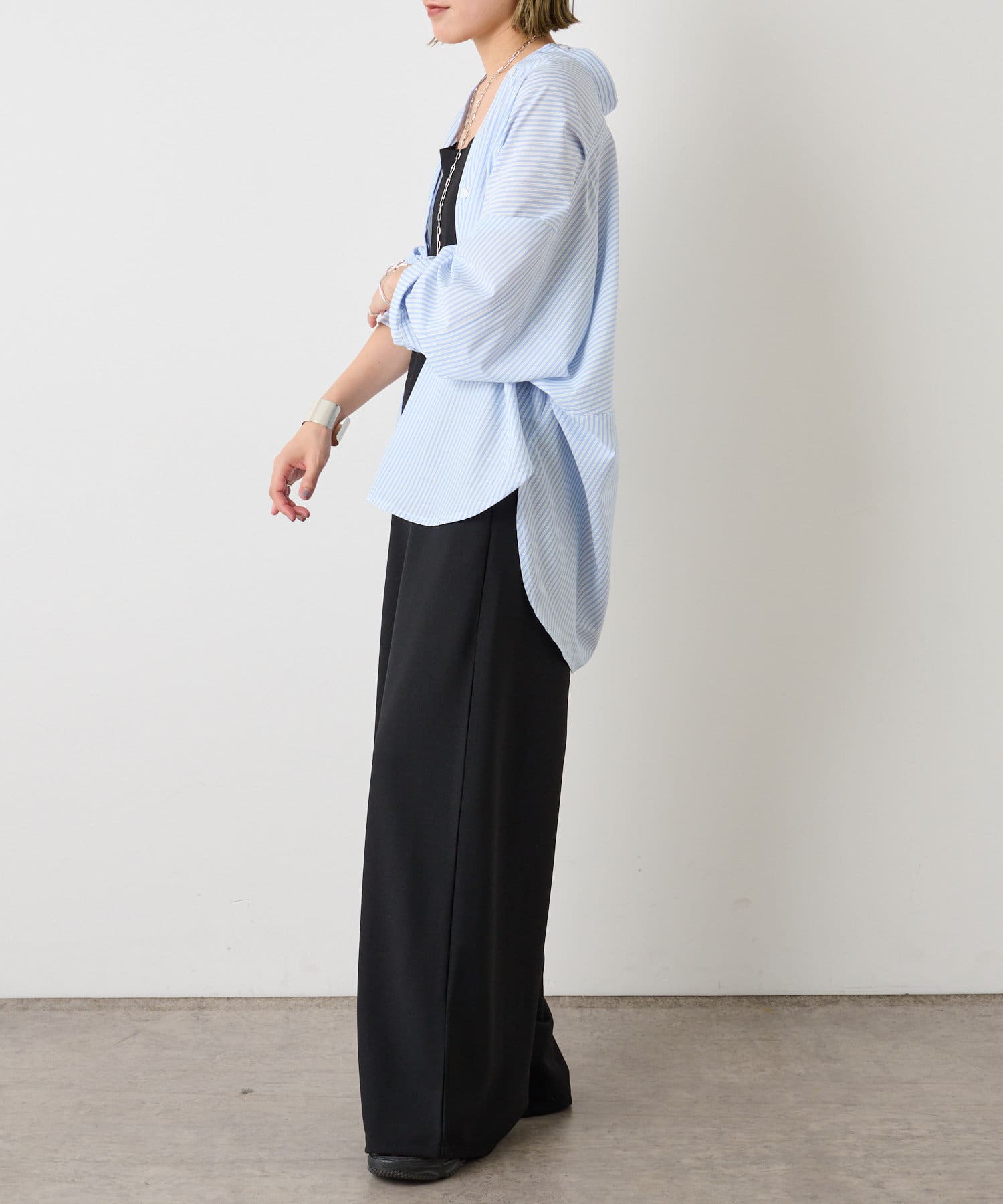 ・後ろはヒップが隠れるやや長めの丈感でタイトボトムとのスタイリングも◎