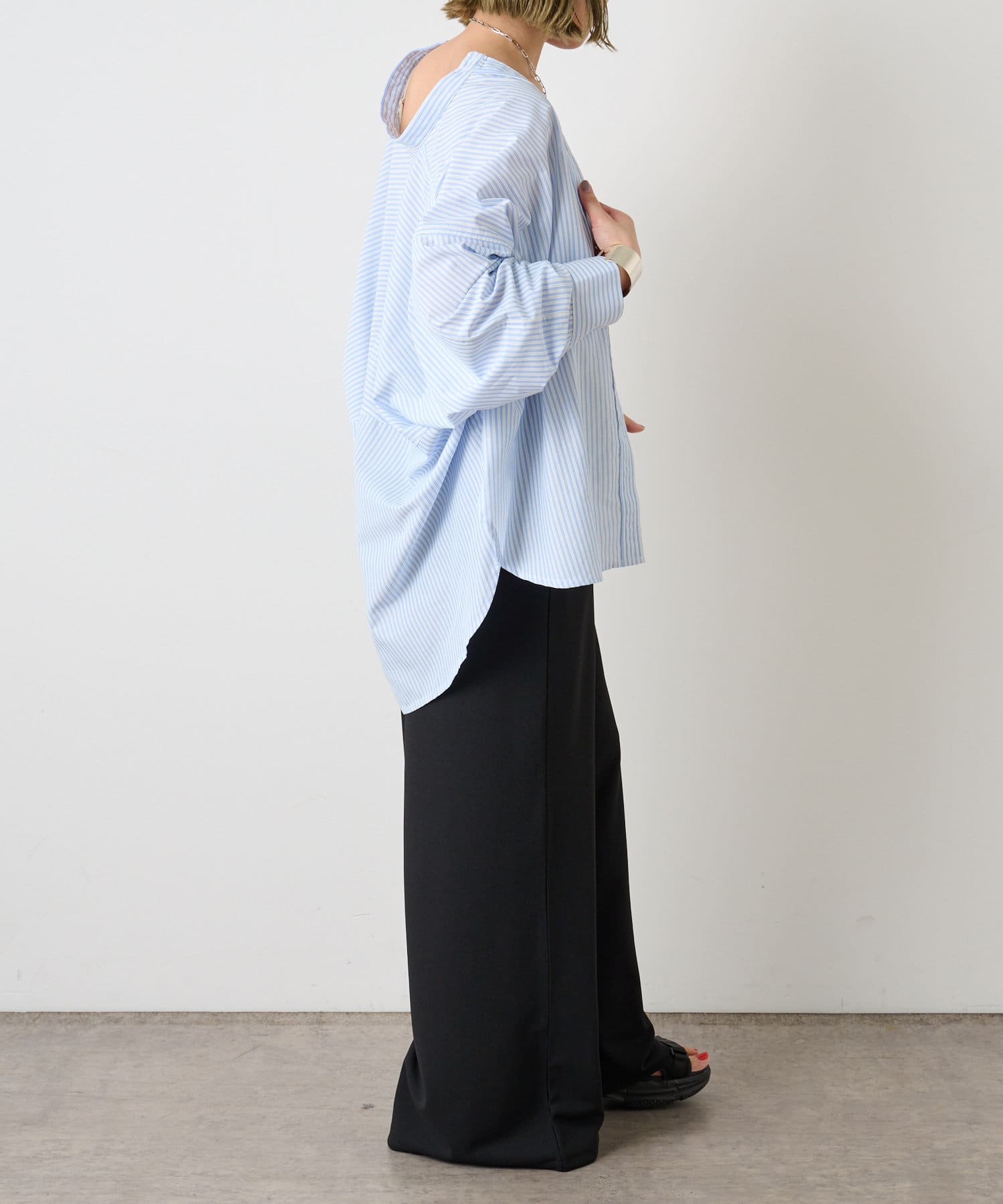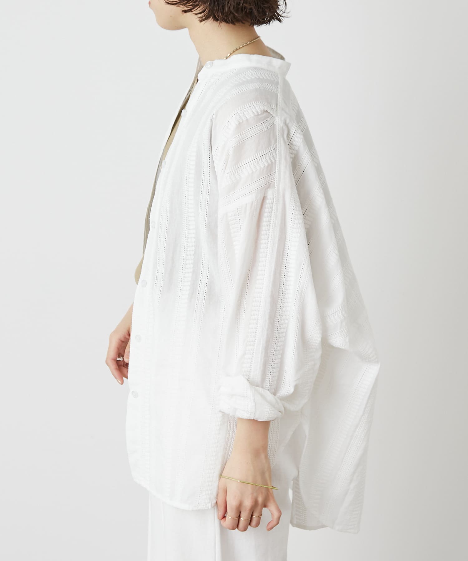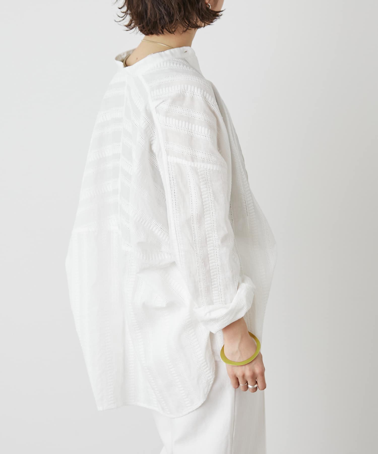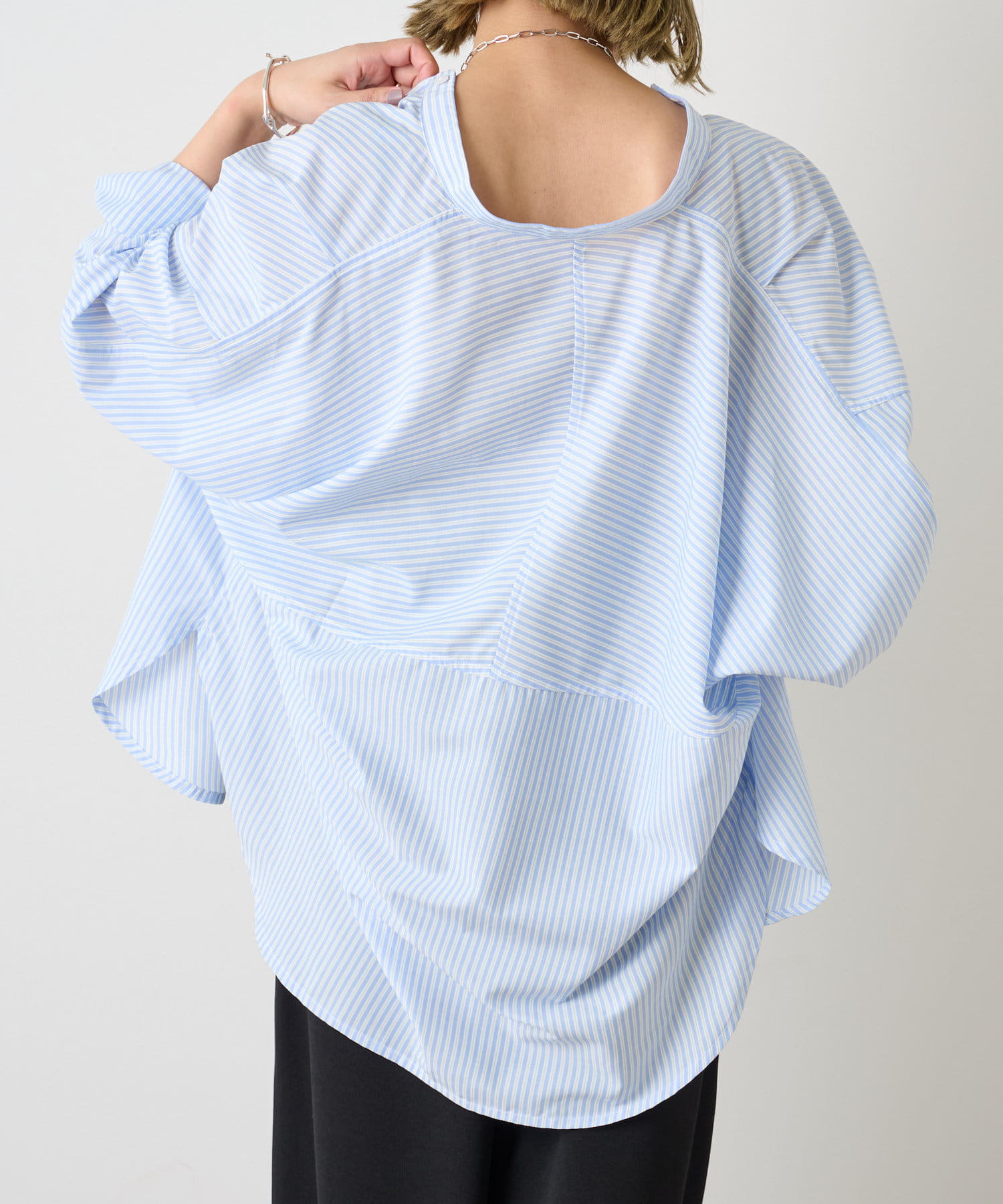 雰囲気の違うストライプとレースで作ったオーバーサイズシャツ