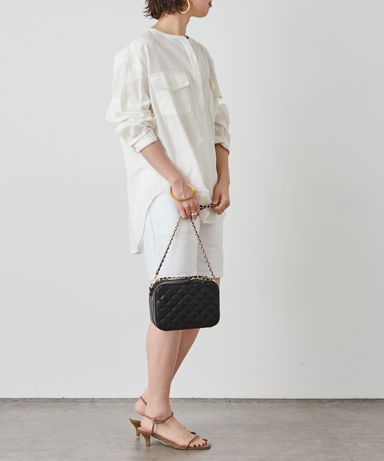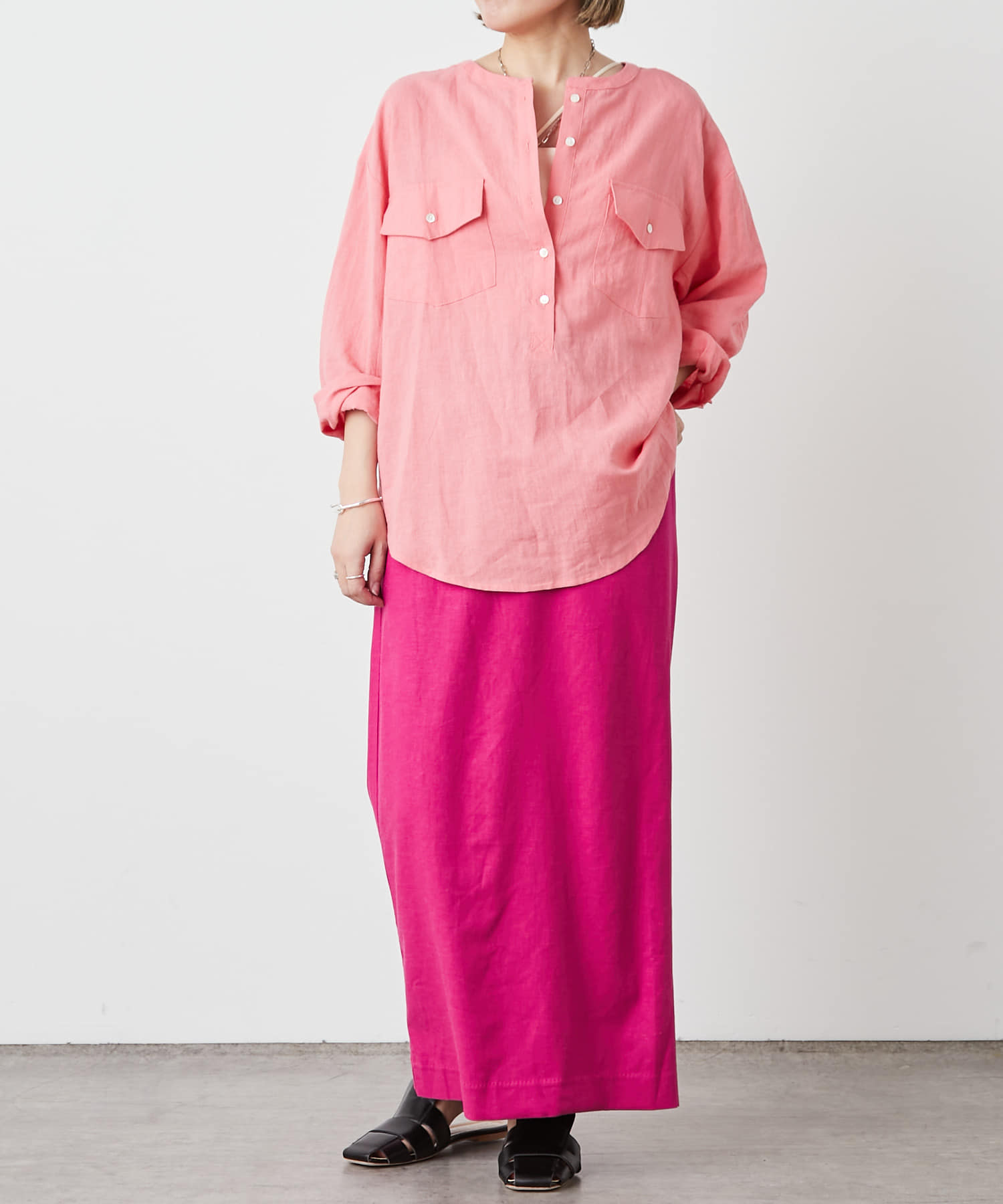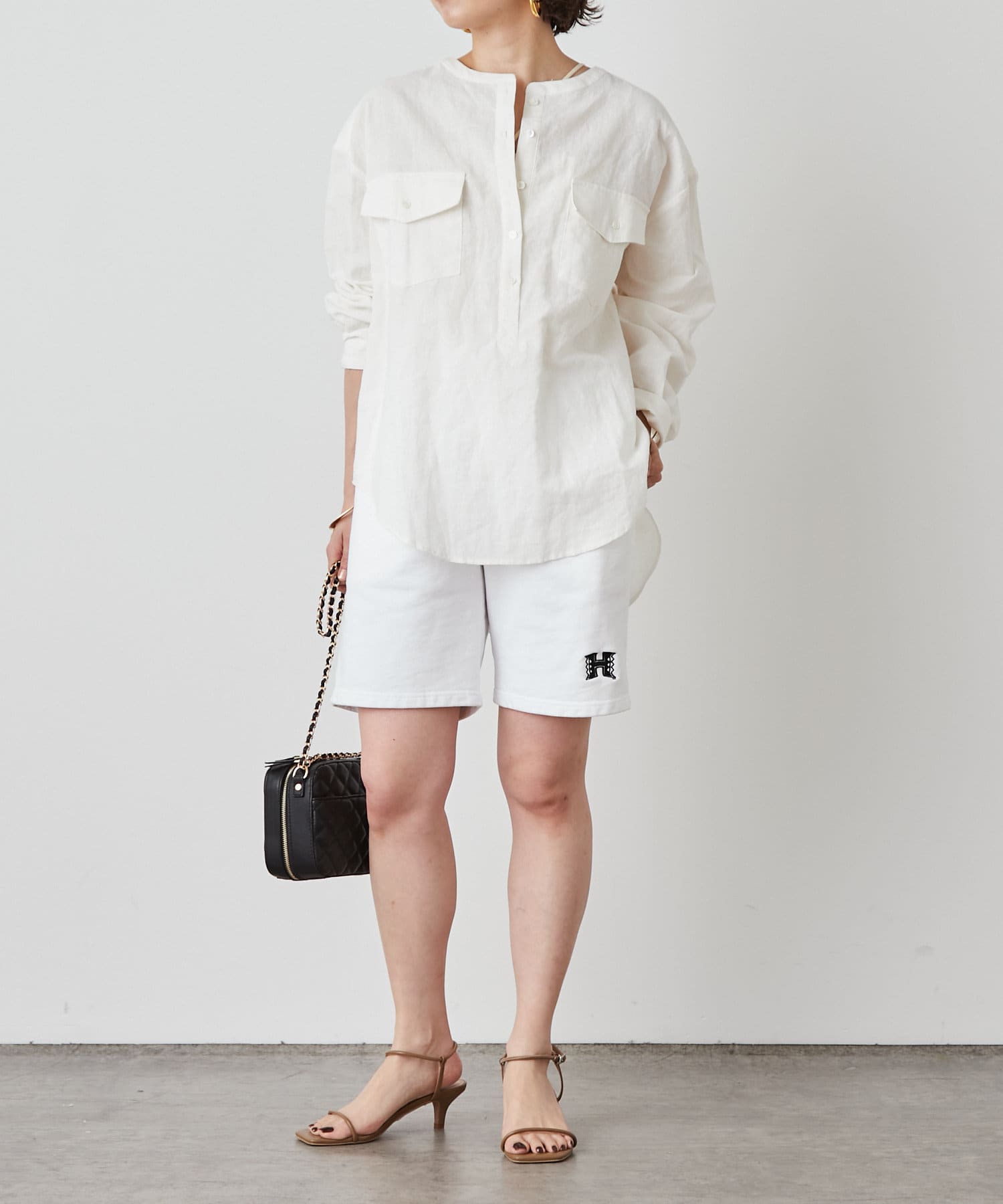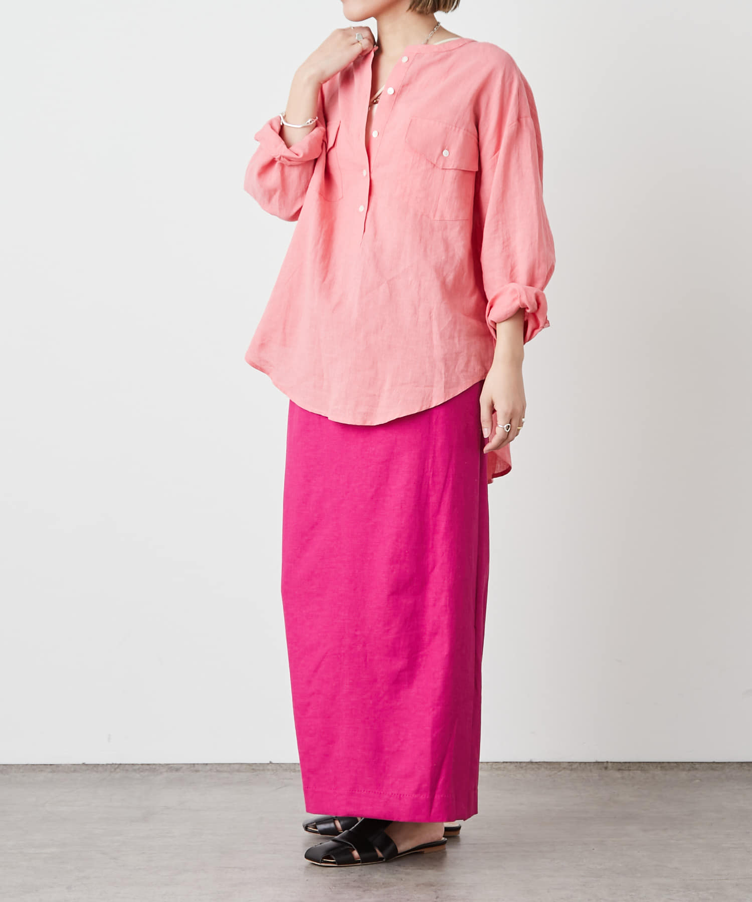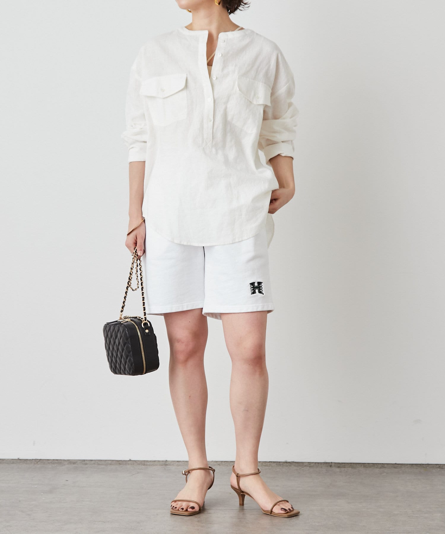 ・リネン素材でリラックス感がありつつ、カジュアルからキレイめまでコーディネートは幅広く楽しめるアイテム。