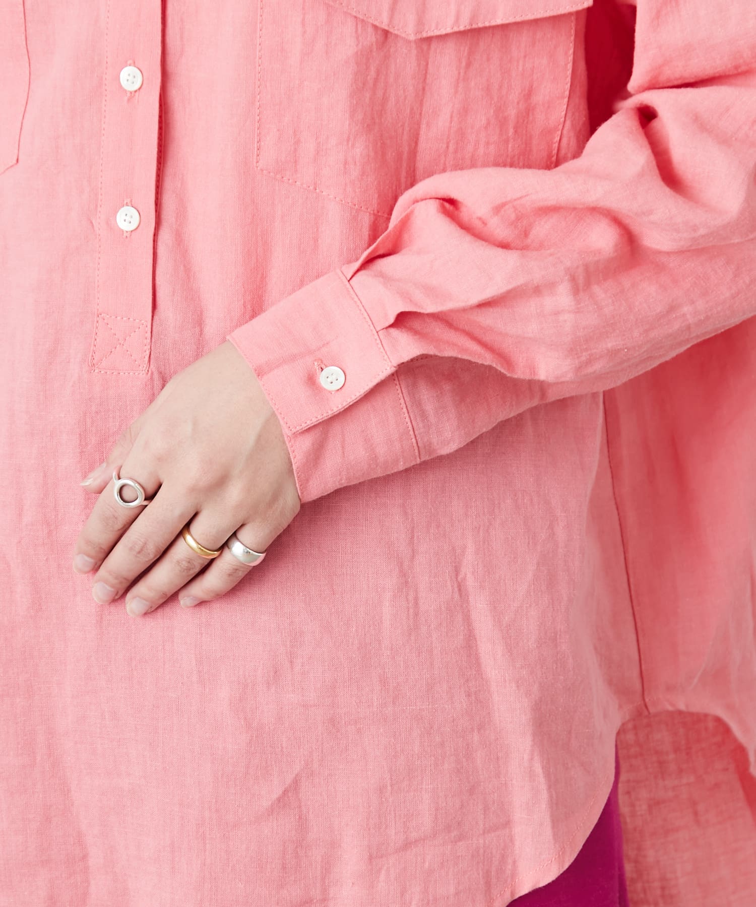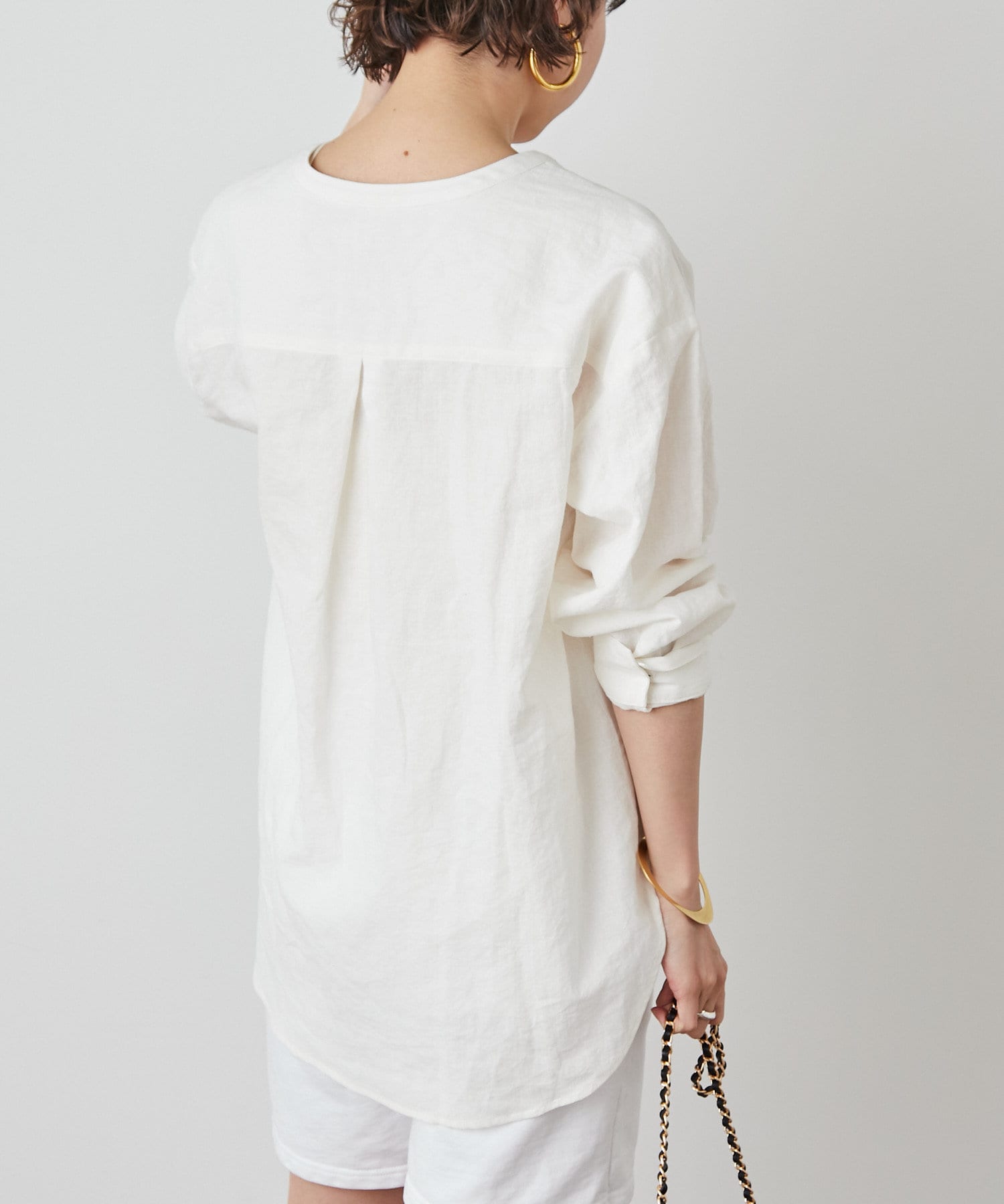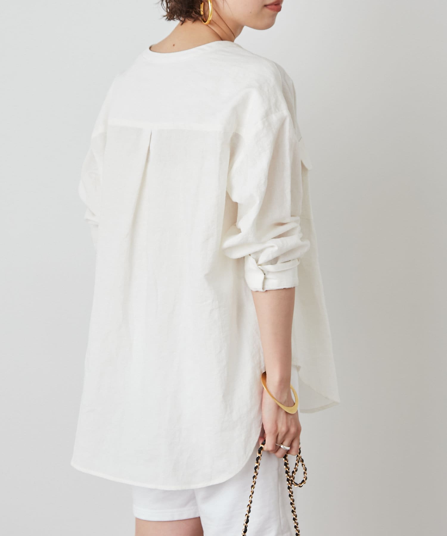 ・一枚ではもちろん、キャミソールなどの上にさらっと着こなしたり、中にロゴTなどを重ねて大人なカジュアルなコーデも◎ 着回し力も抜群です。