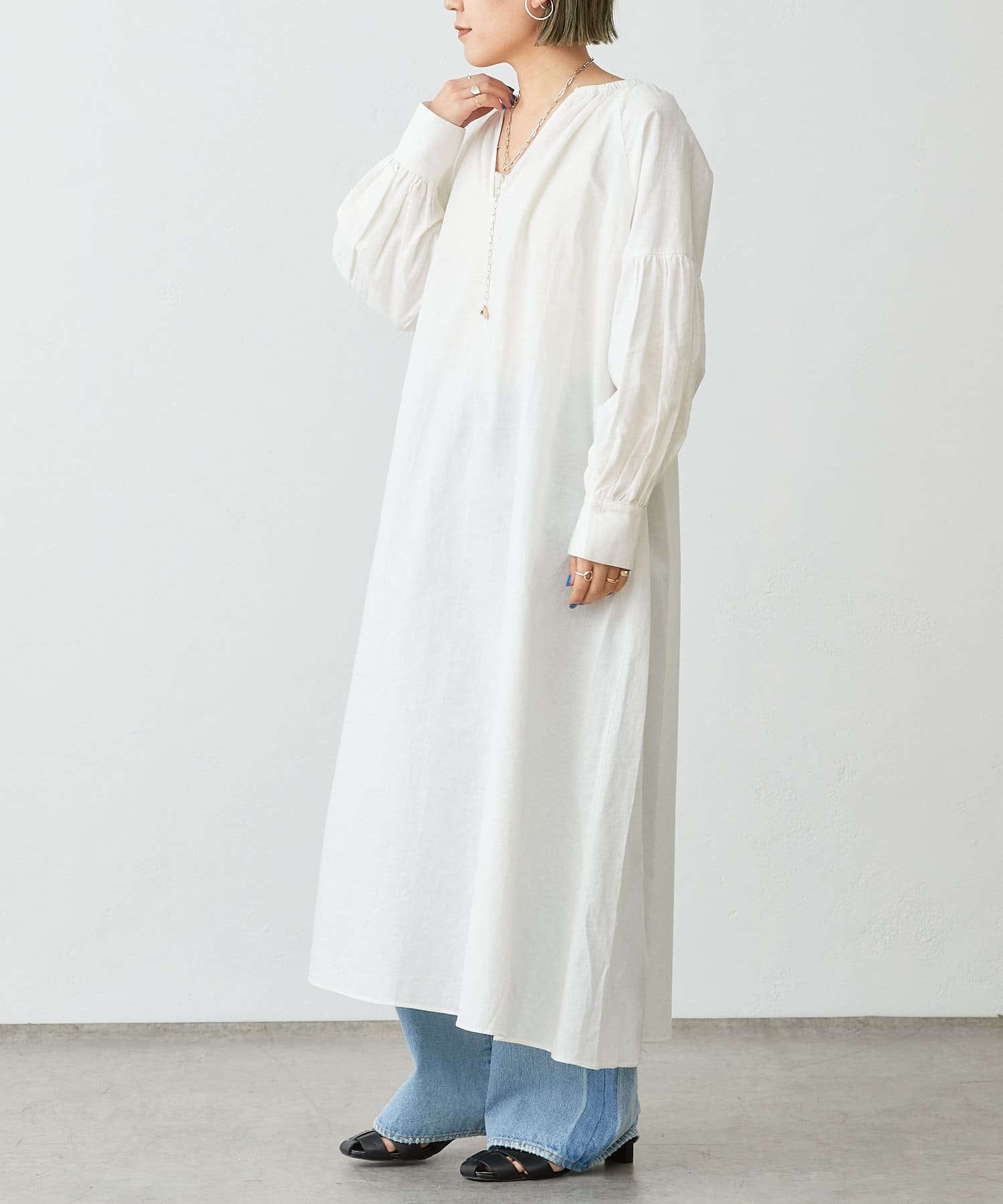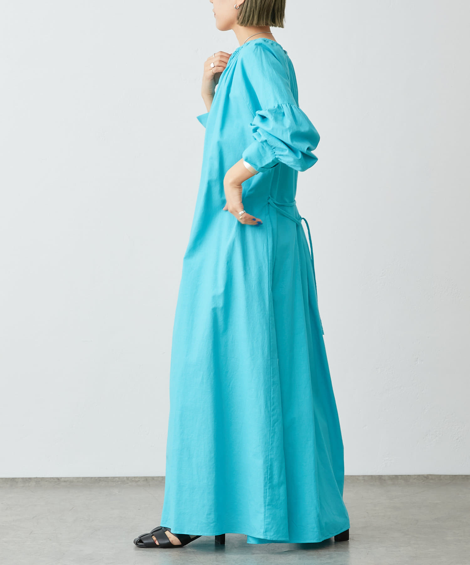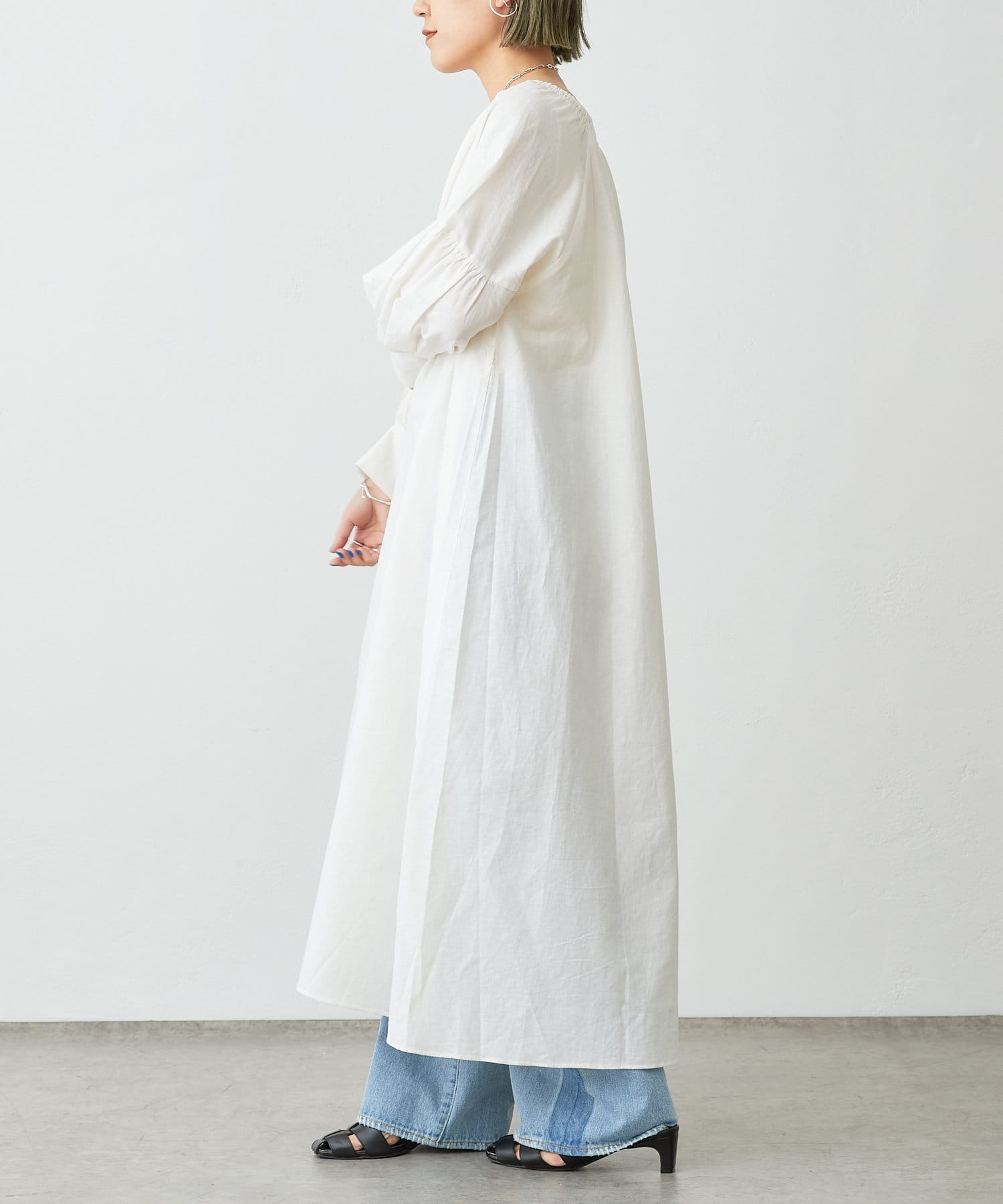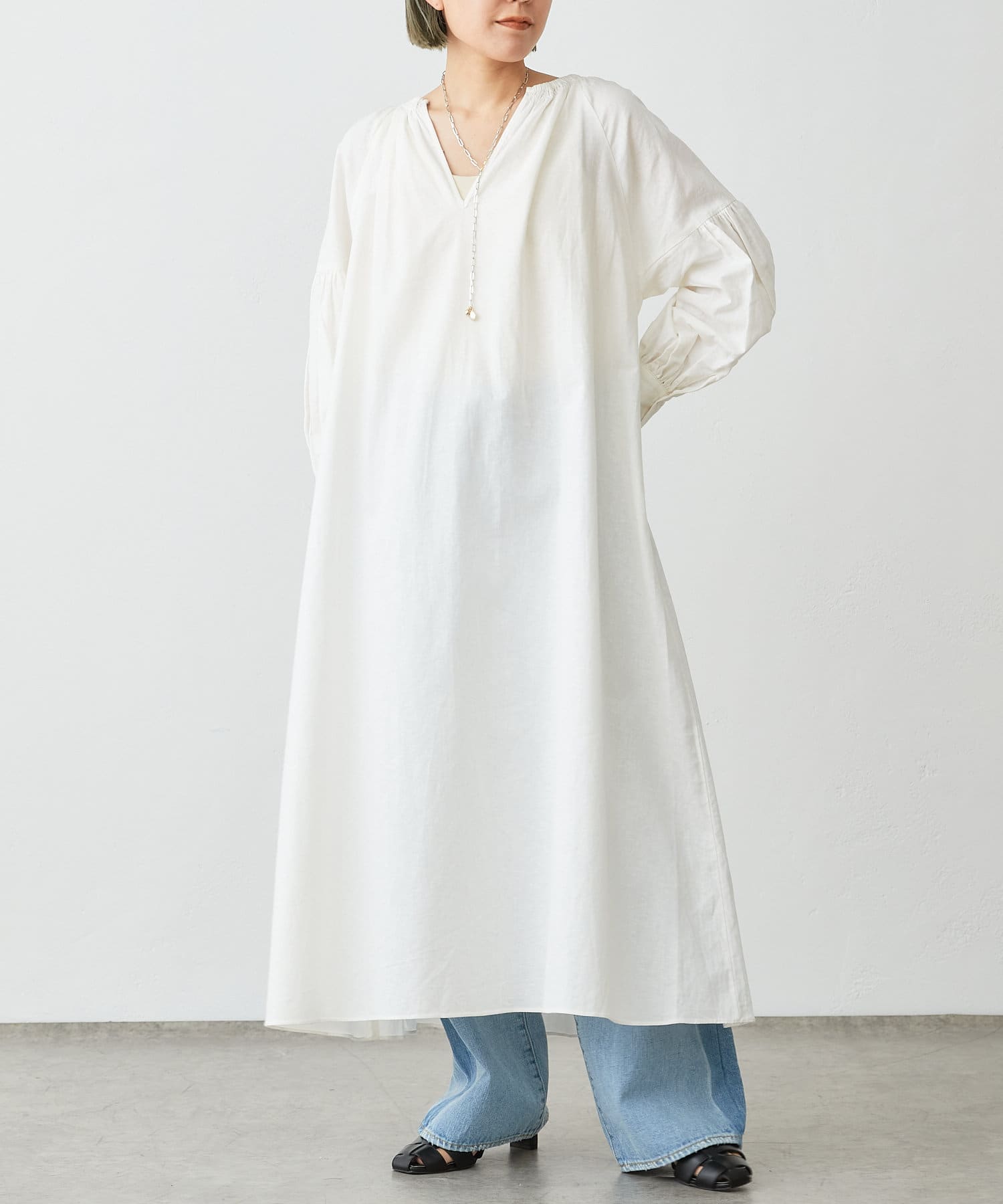 コットンリネンの素材が軽やかな印象で、これからの季節にぴったりなワンピース