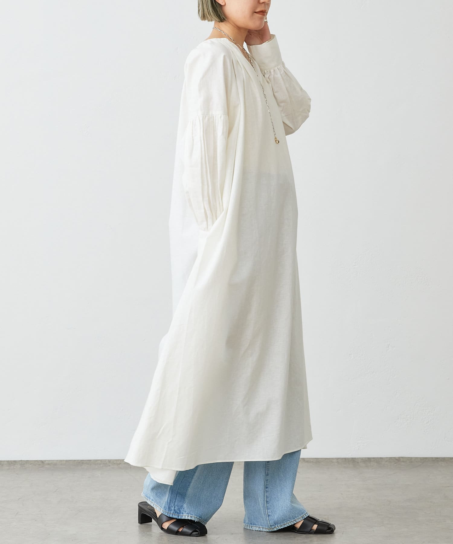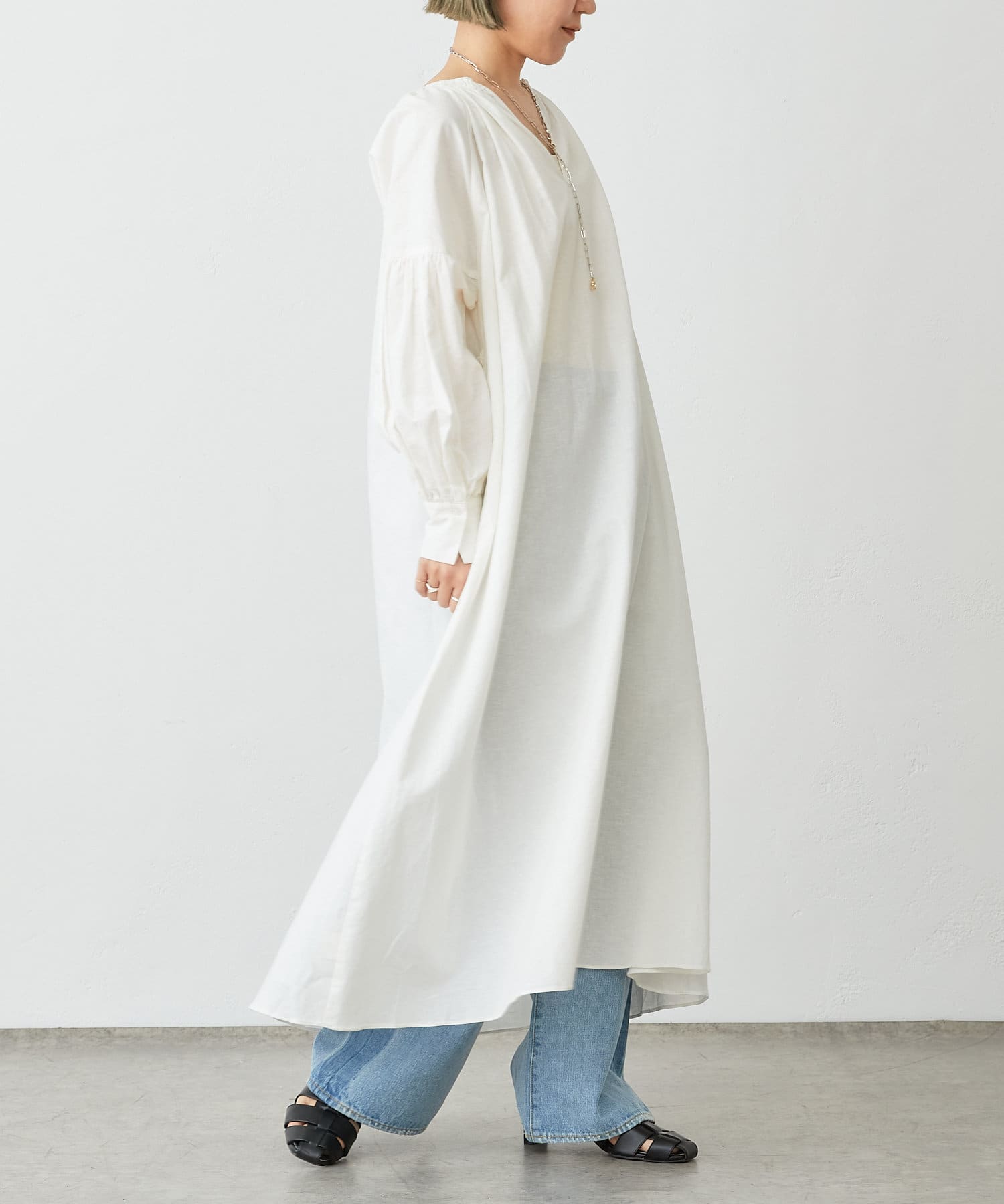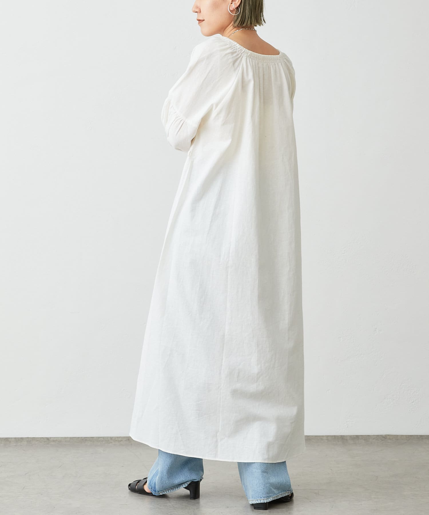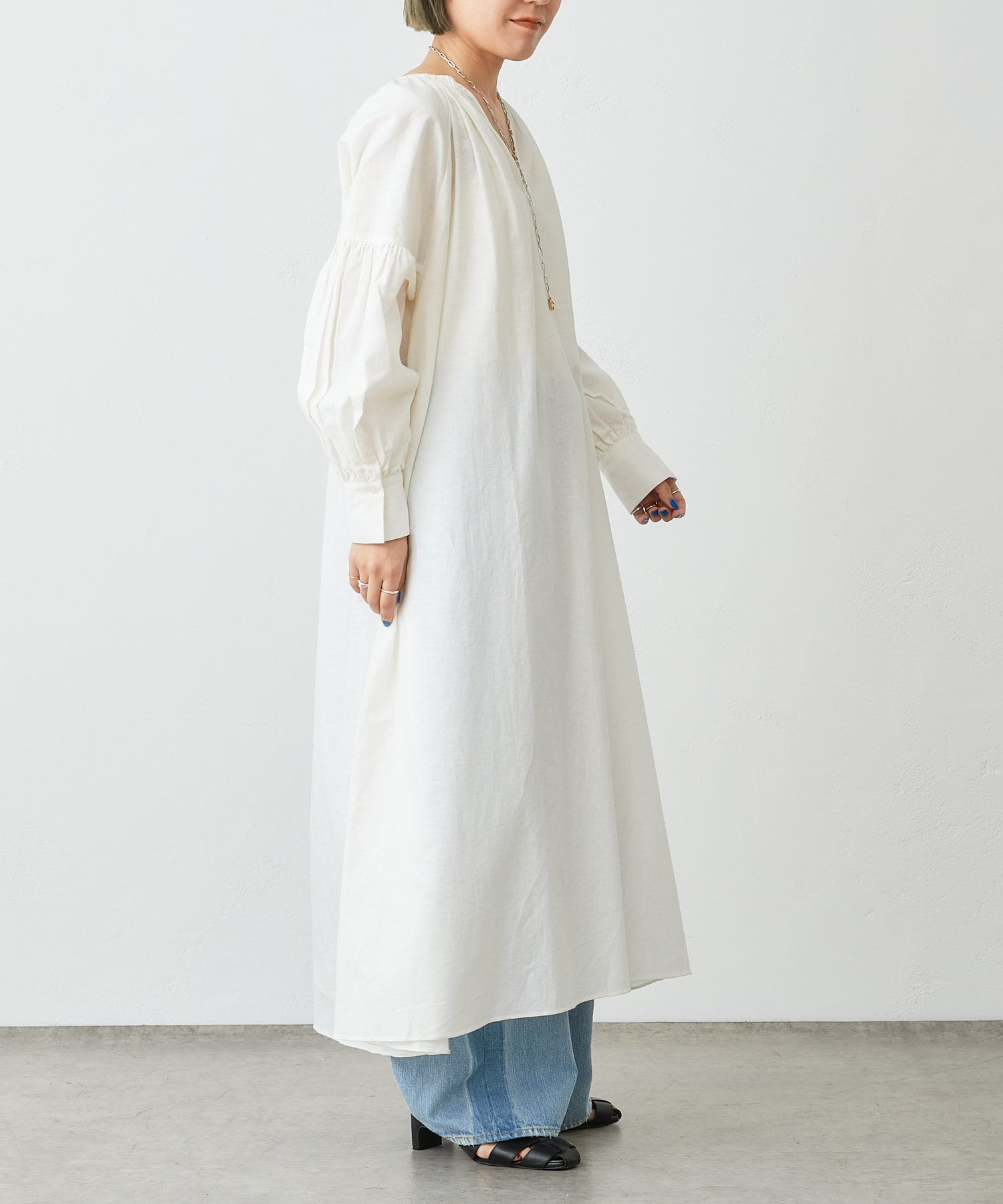 コットンリネンの素材が軽やかな印象で、これからの季節にぴったりなワンピース