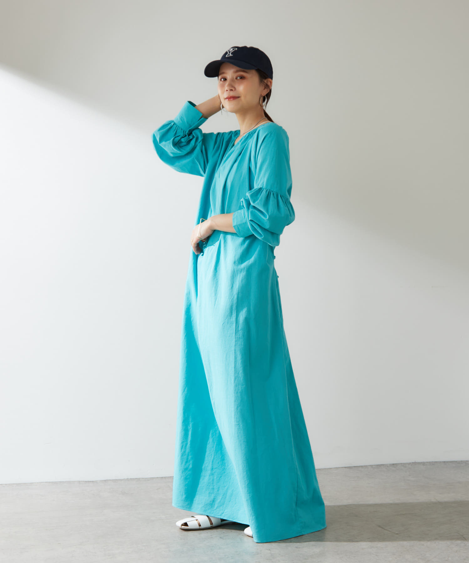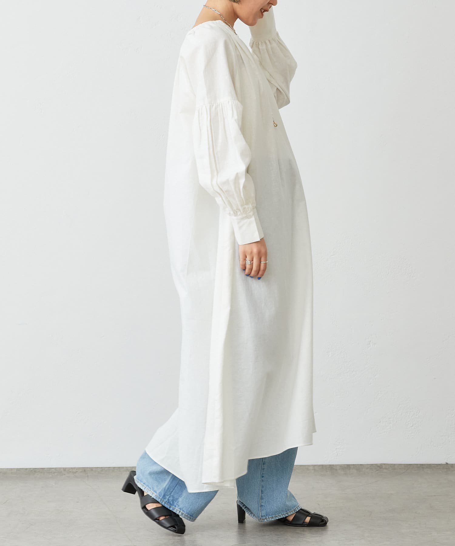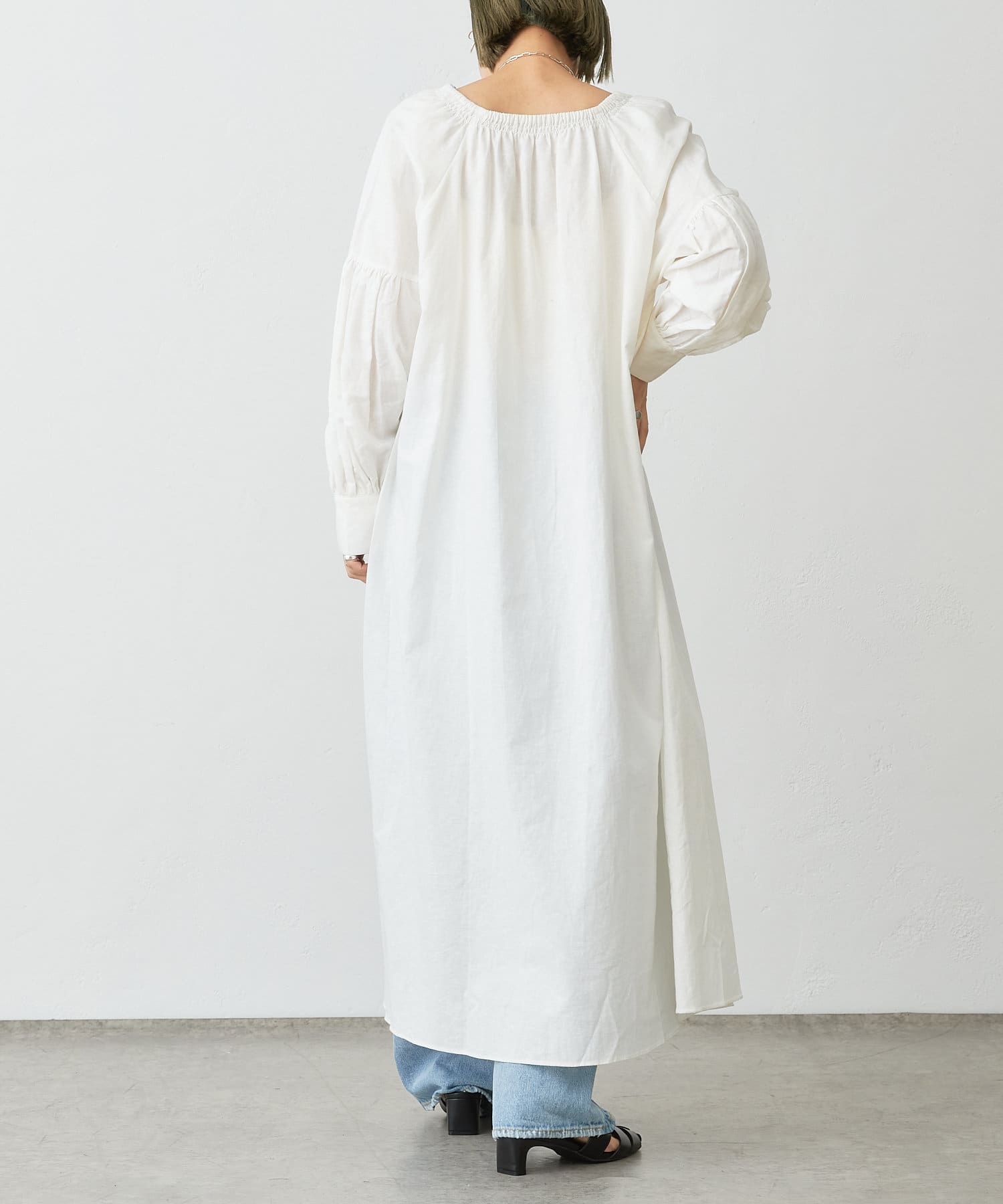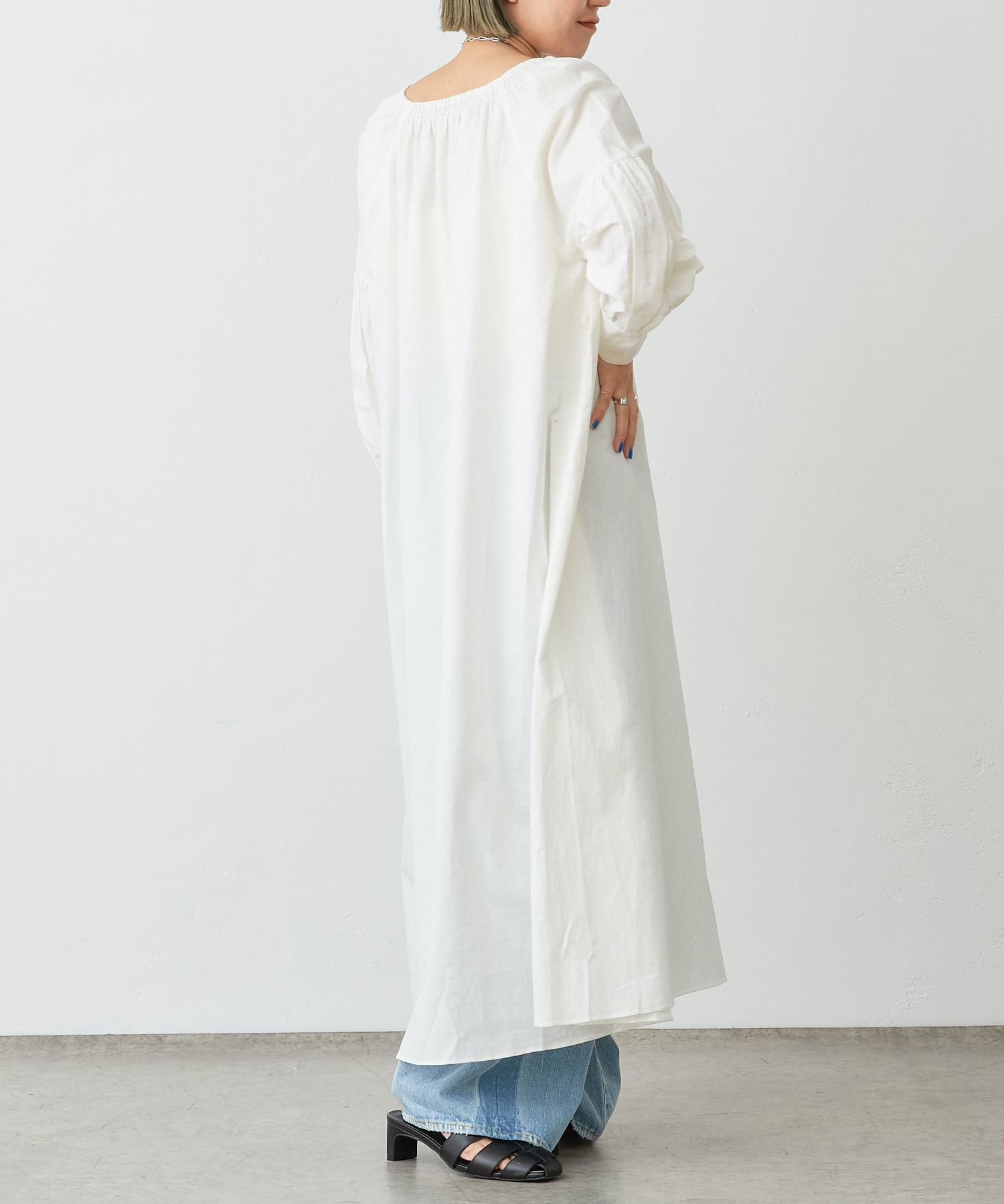 コットンリネンの素材が軽やかな印象で、これからの季節にぴったりなワンピース