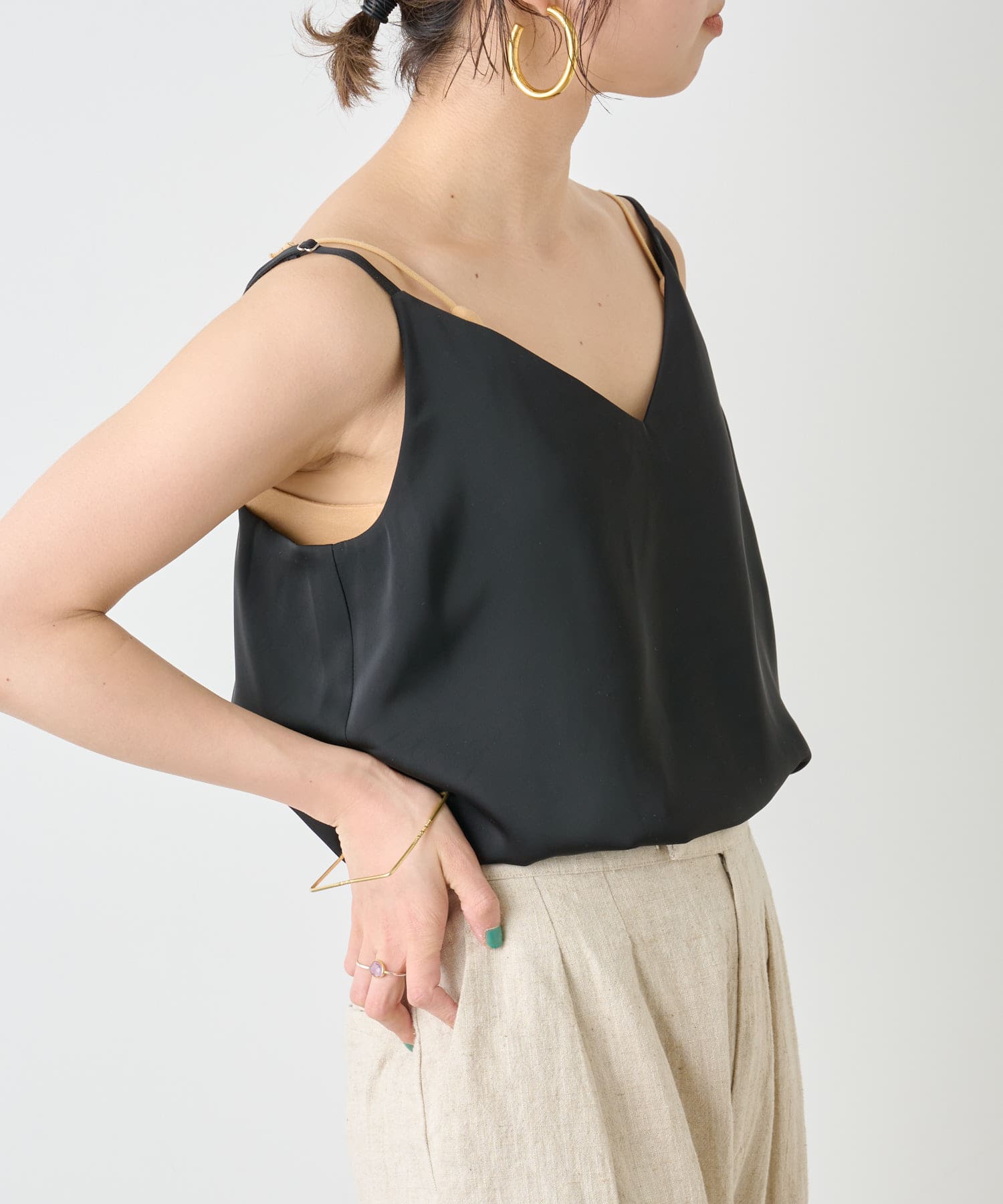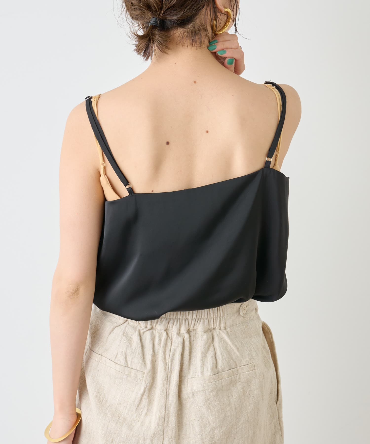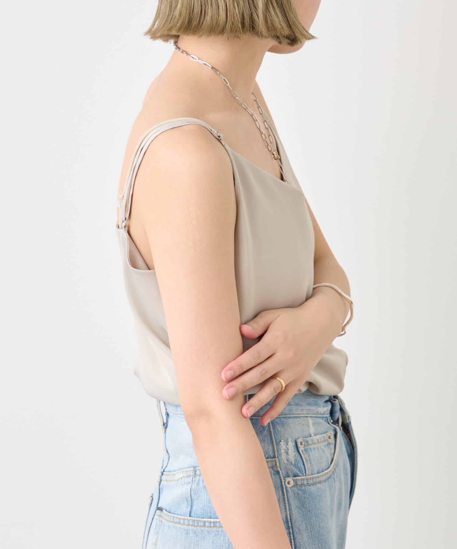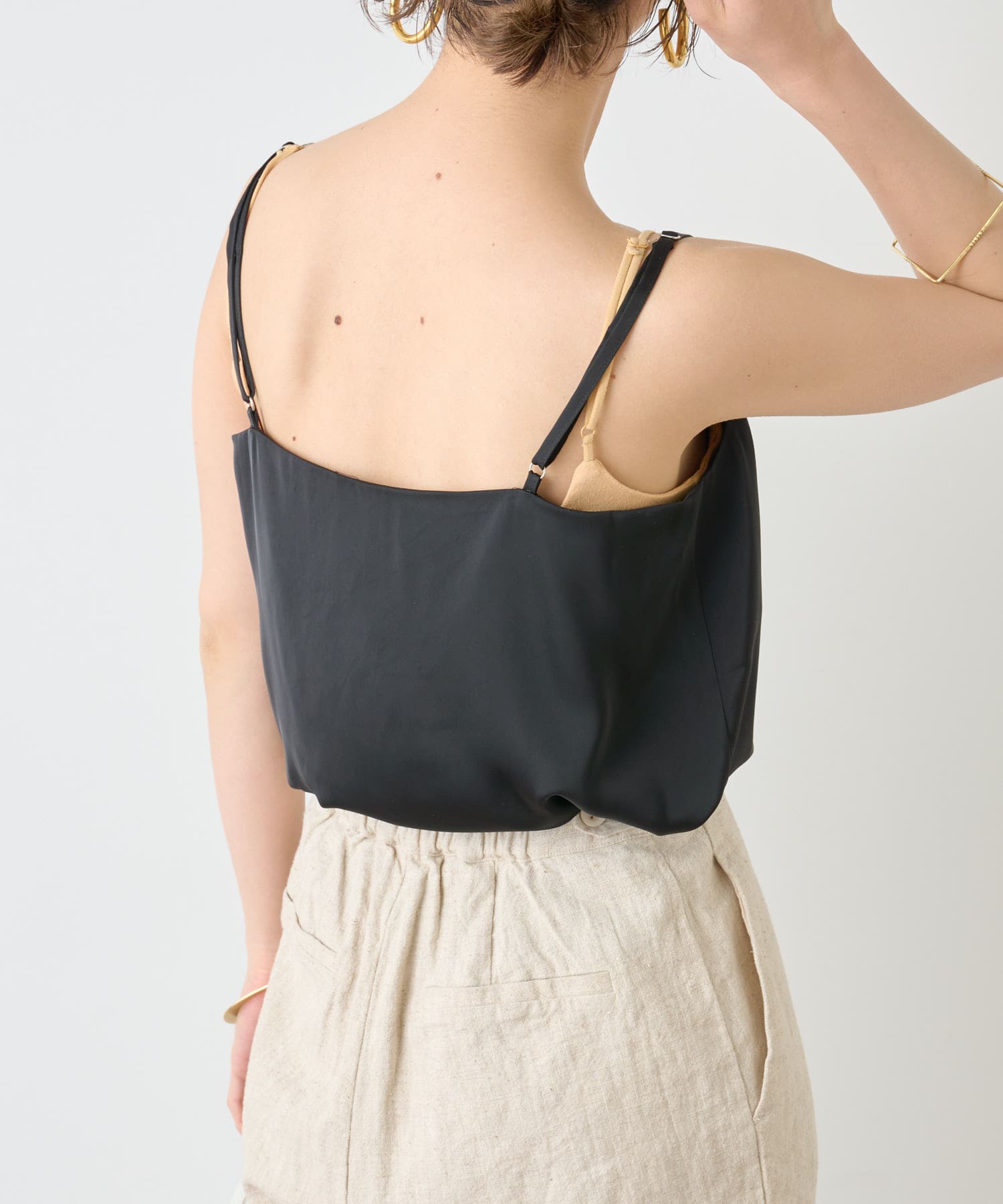 華奢な肩紐で女性らしいサテン地のキャミソール