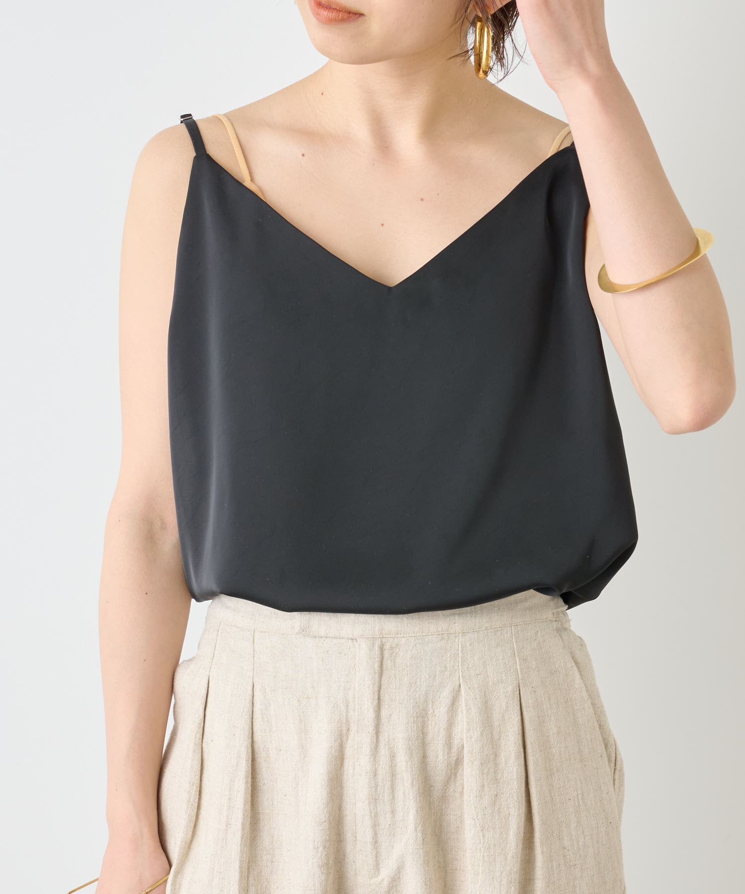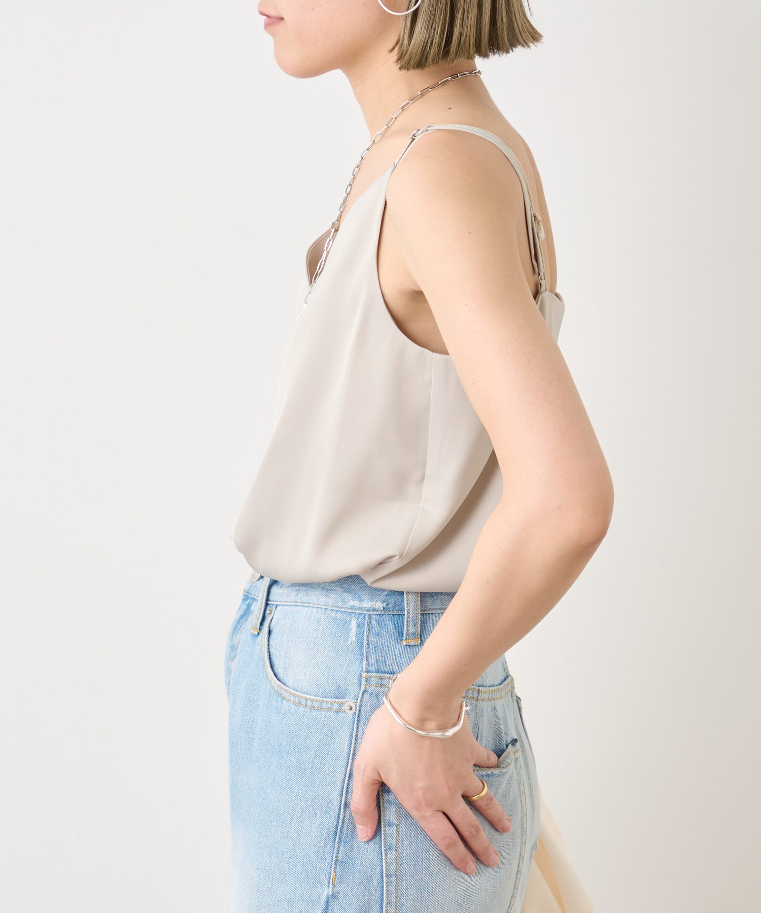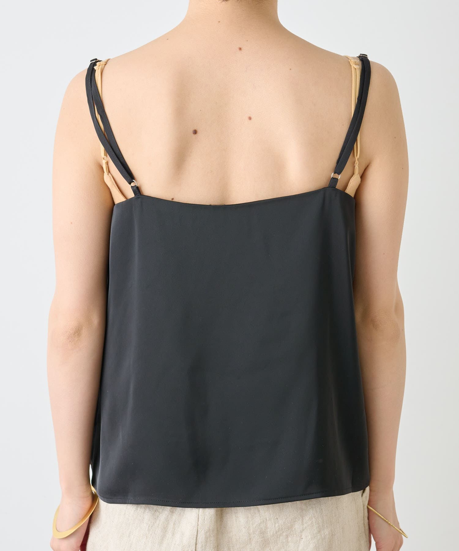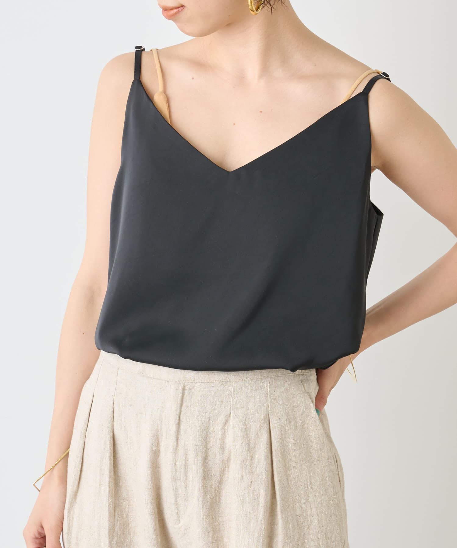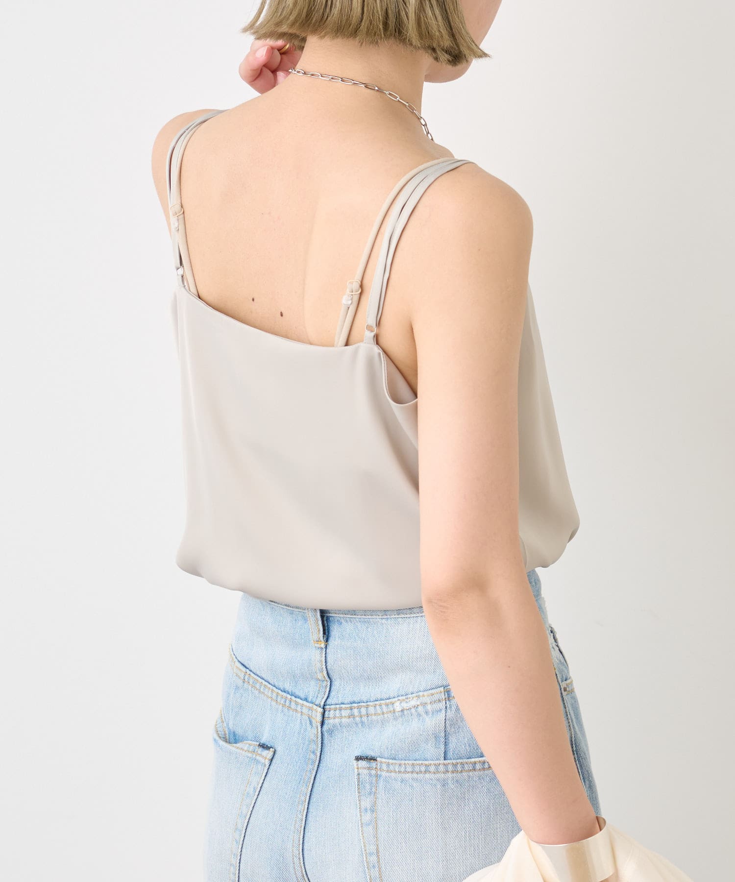 華奢な肩紐で女性らしいサテン地のキャミソール