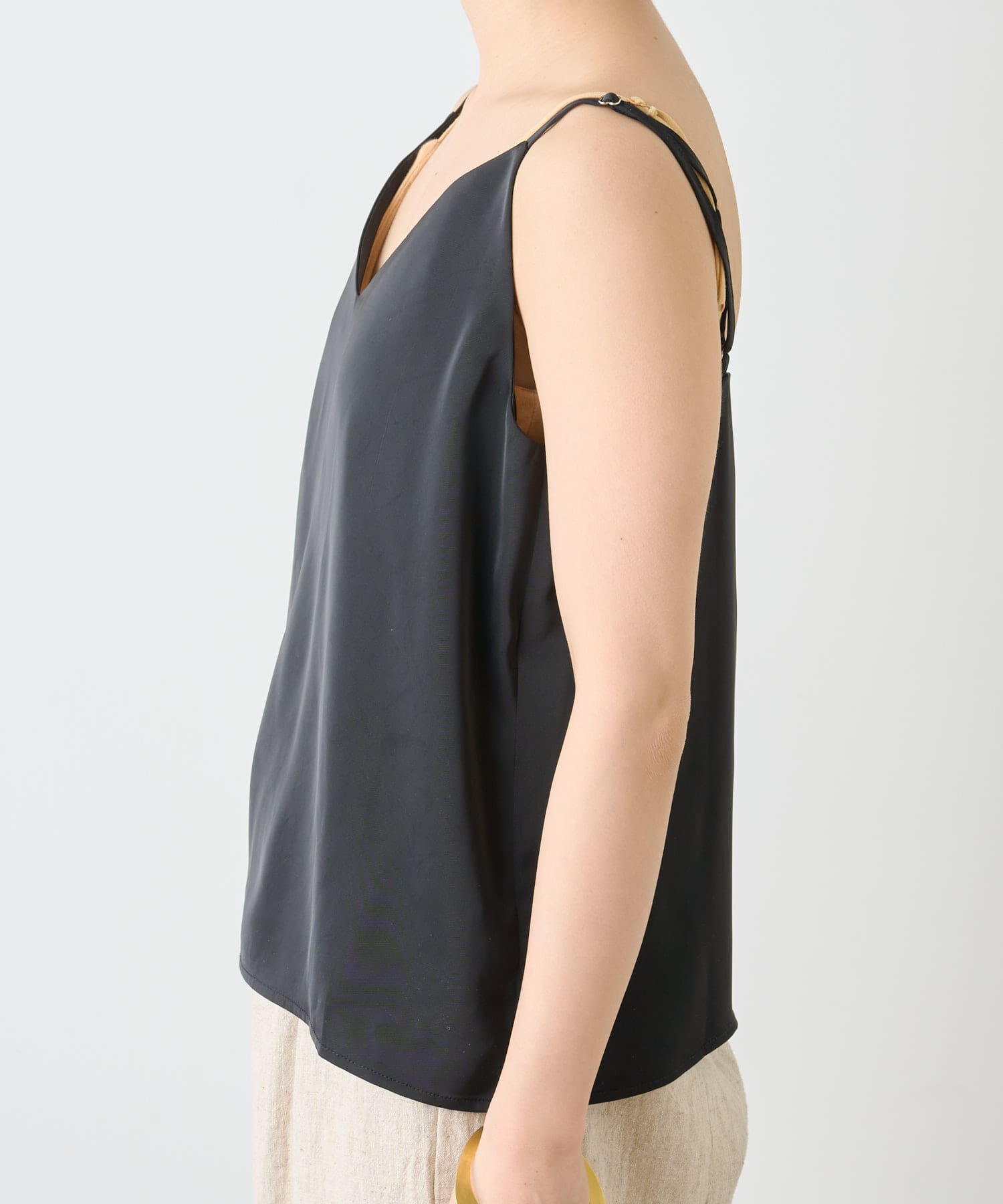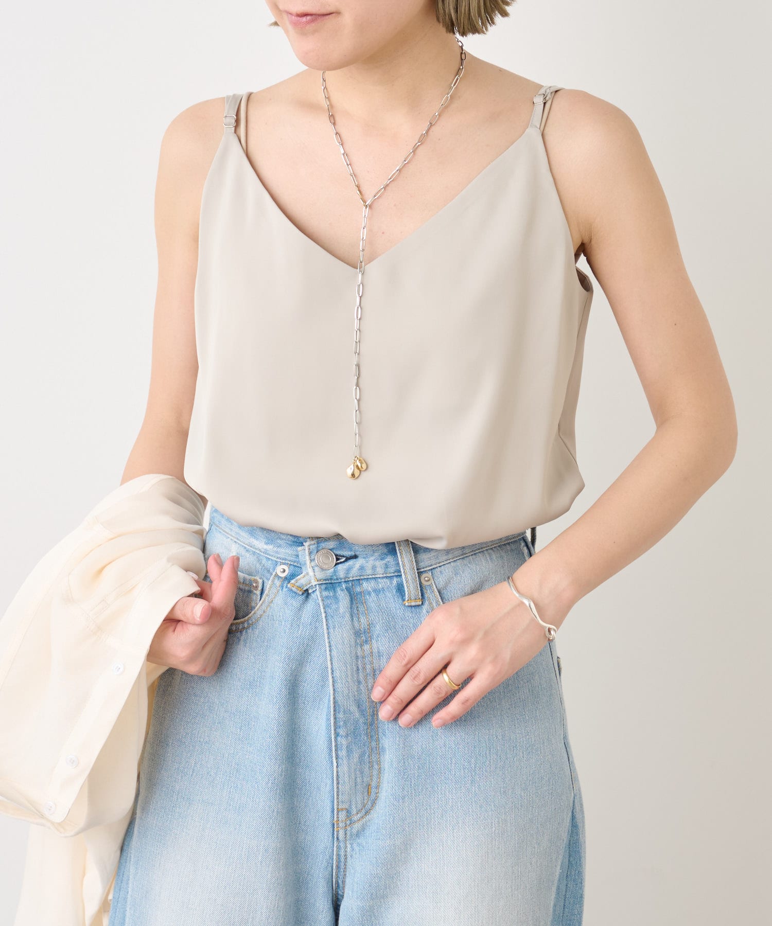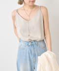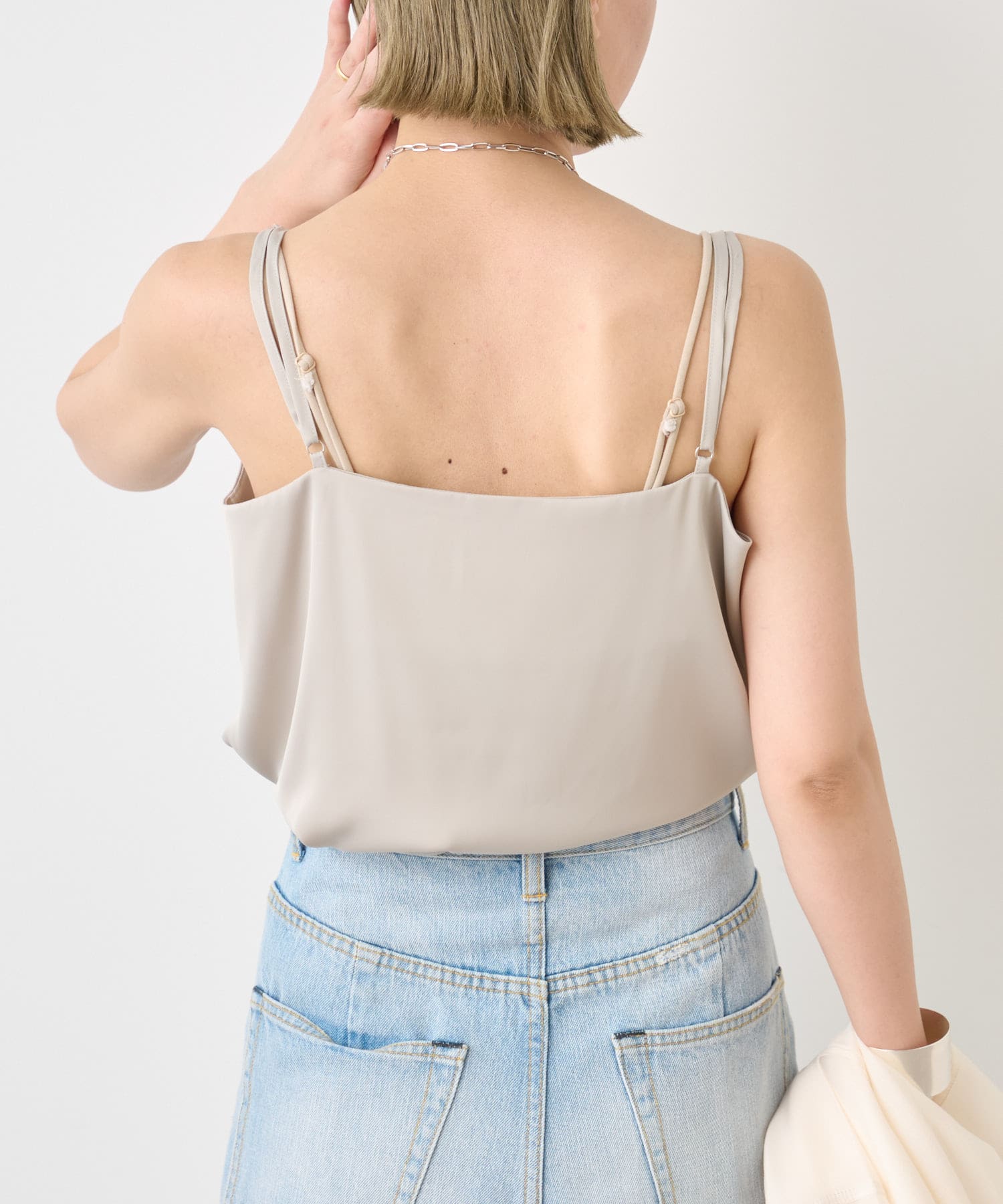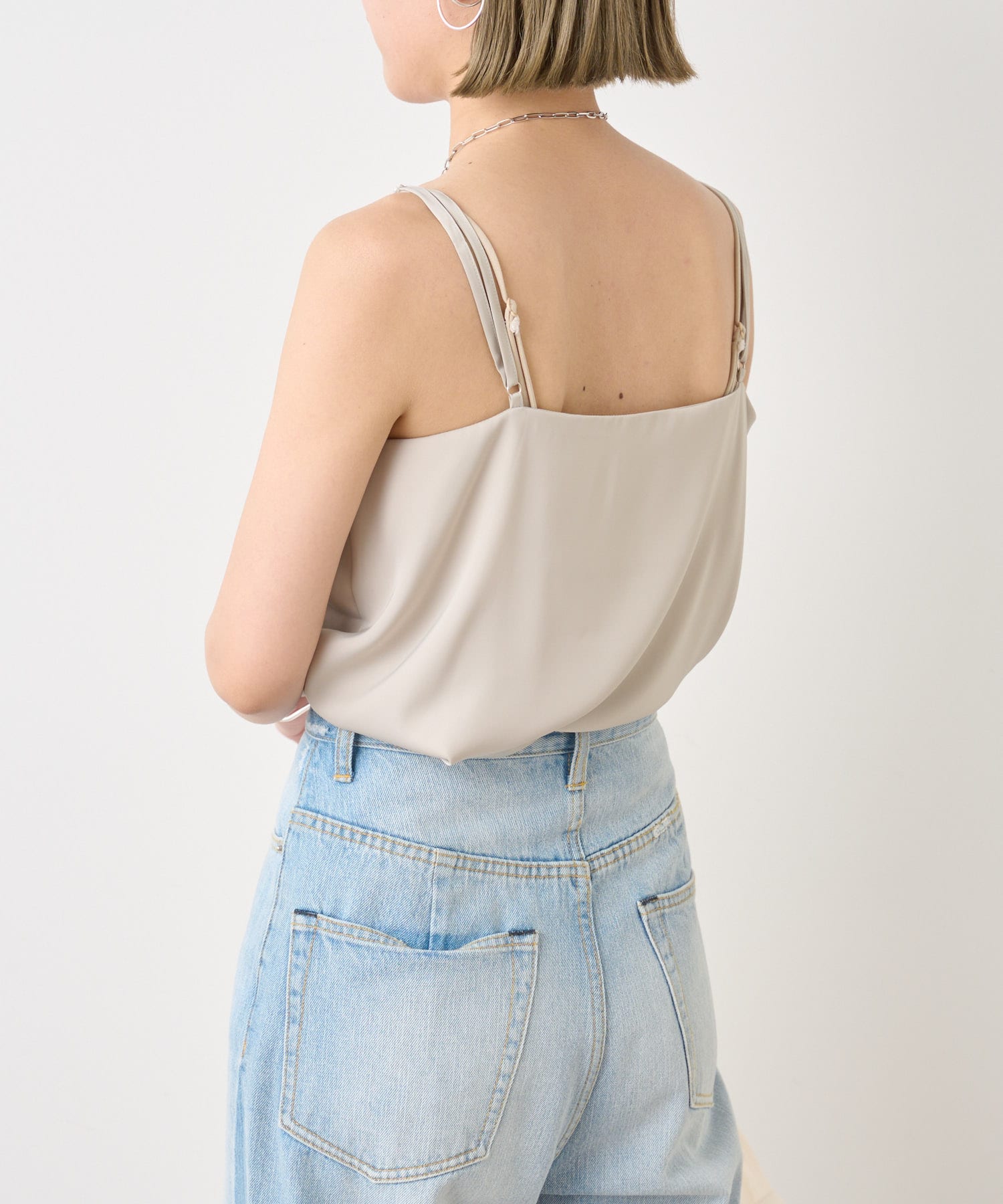 華奢な肩紐で女性らしいサテン地のキャミソール