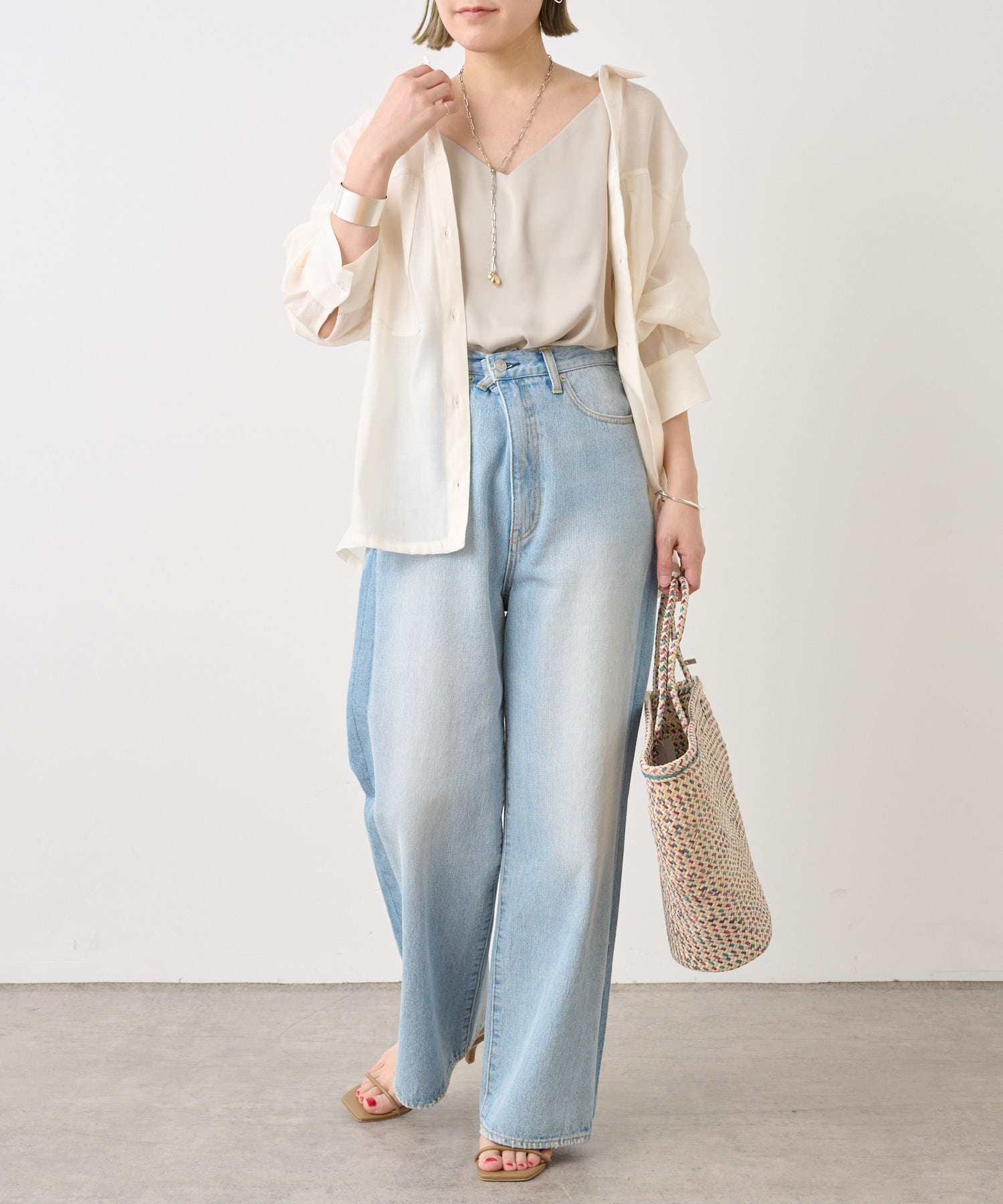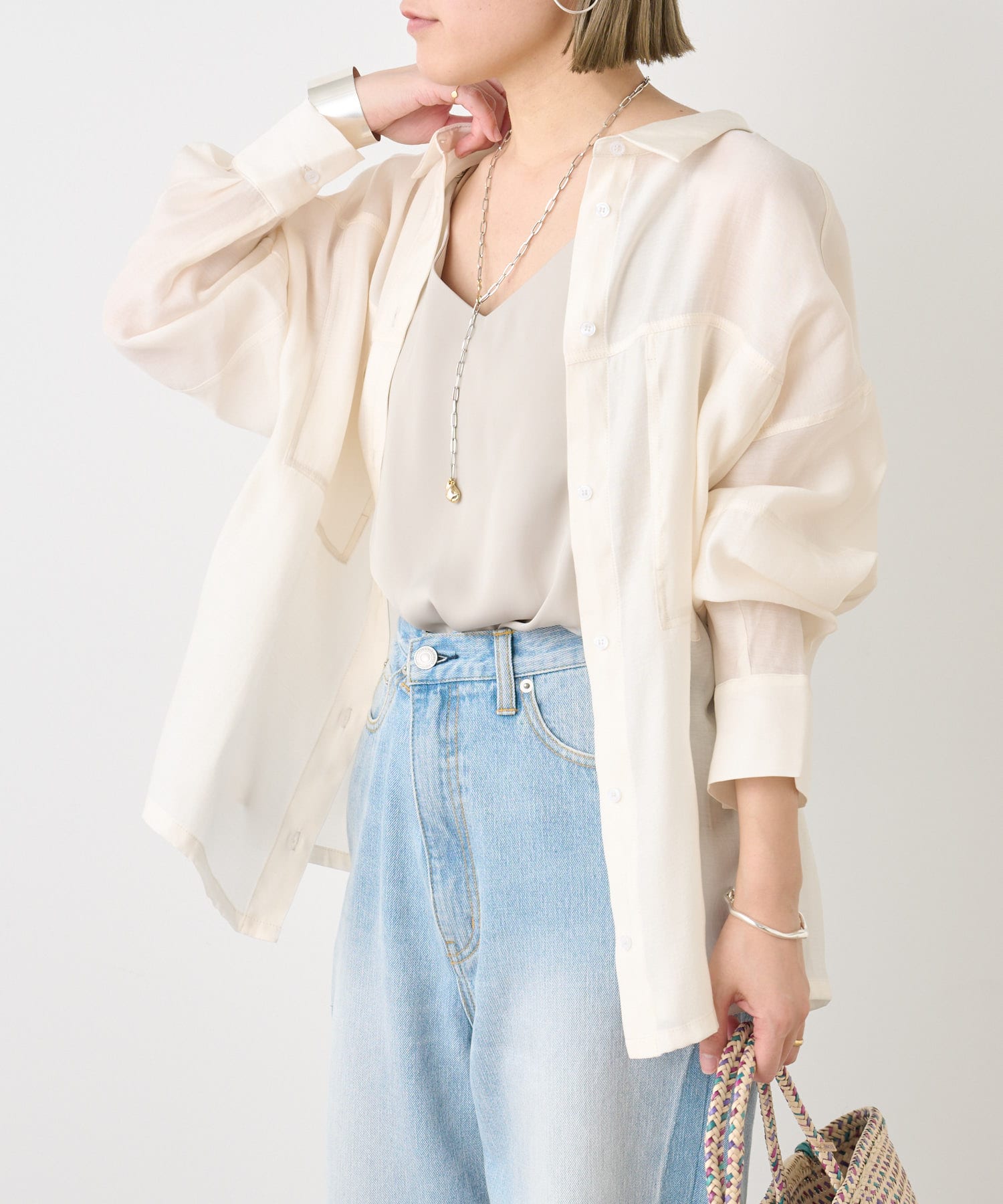 ・滑らかな落ち感と微光沢なサテン素材感が大人な雰囲気の一枚。