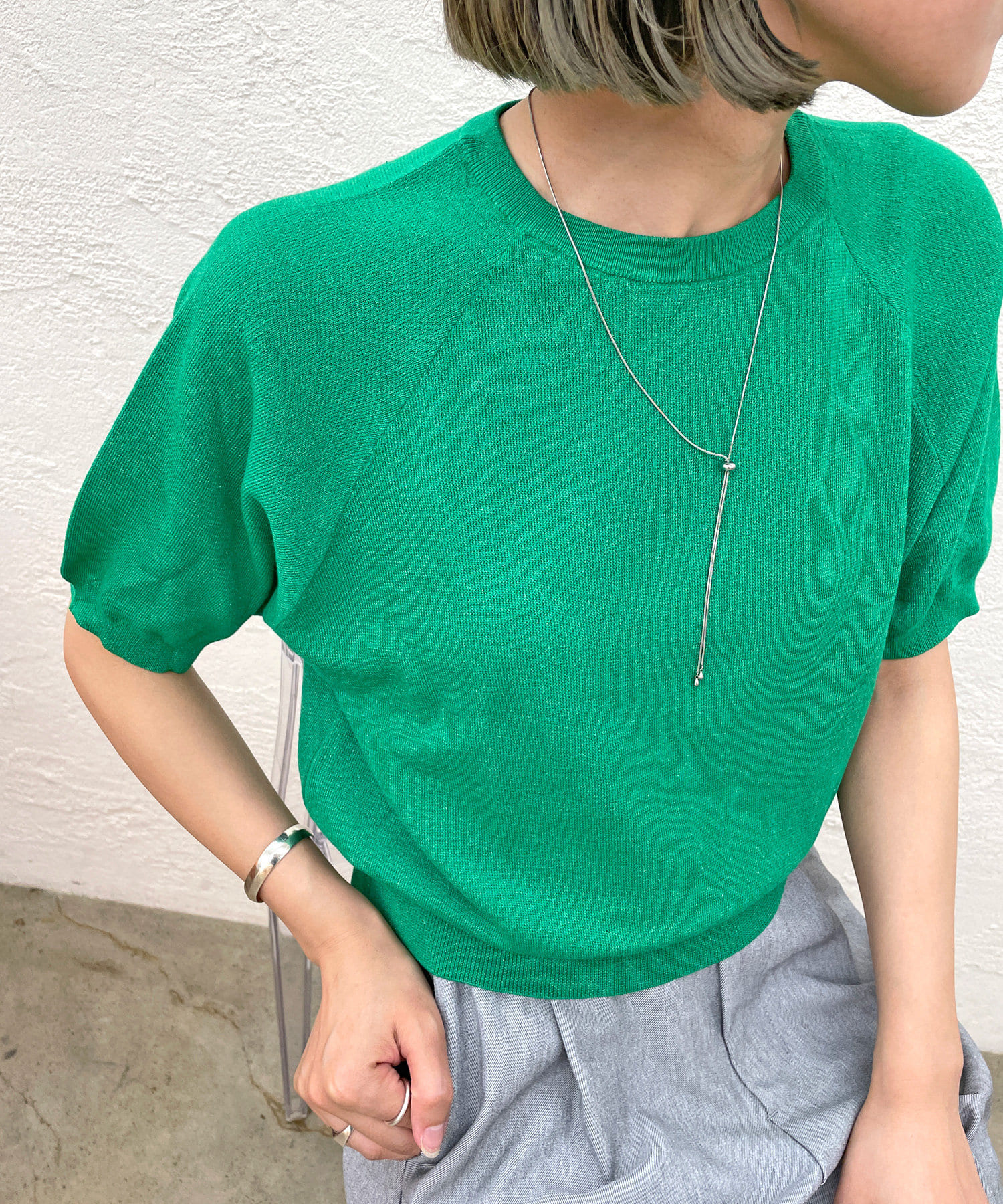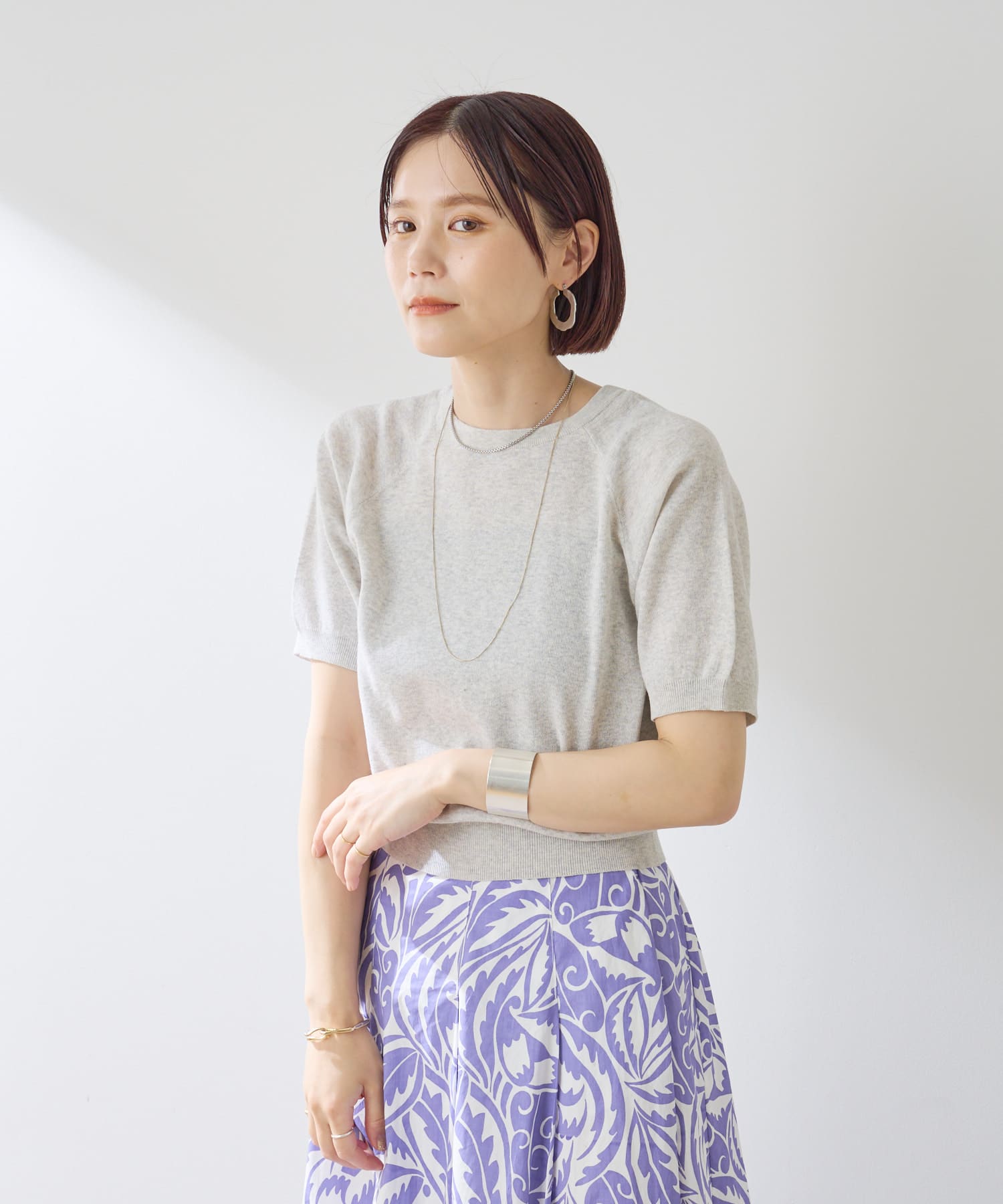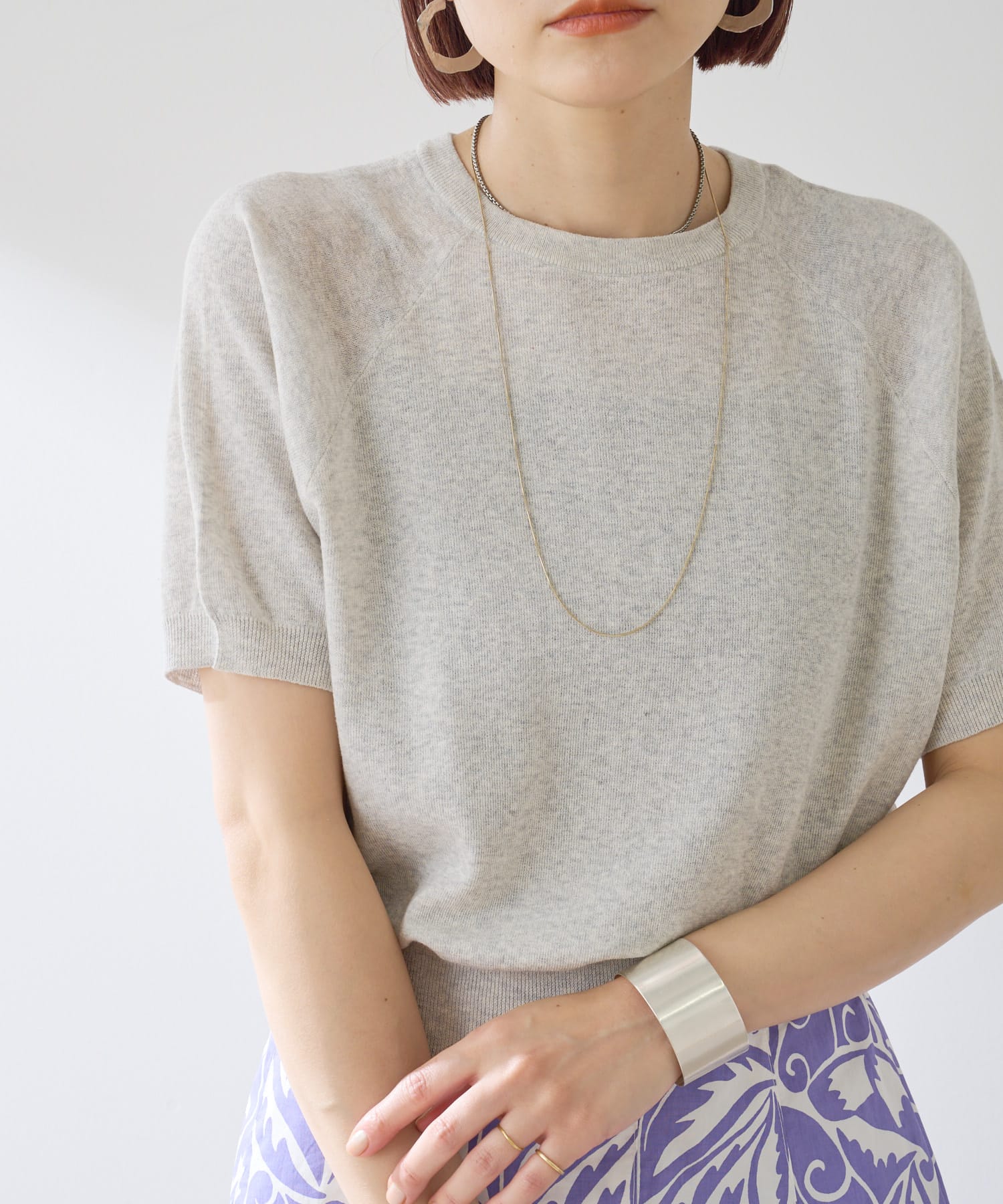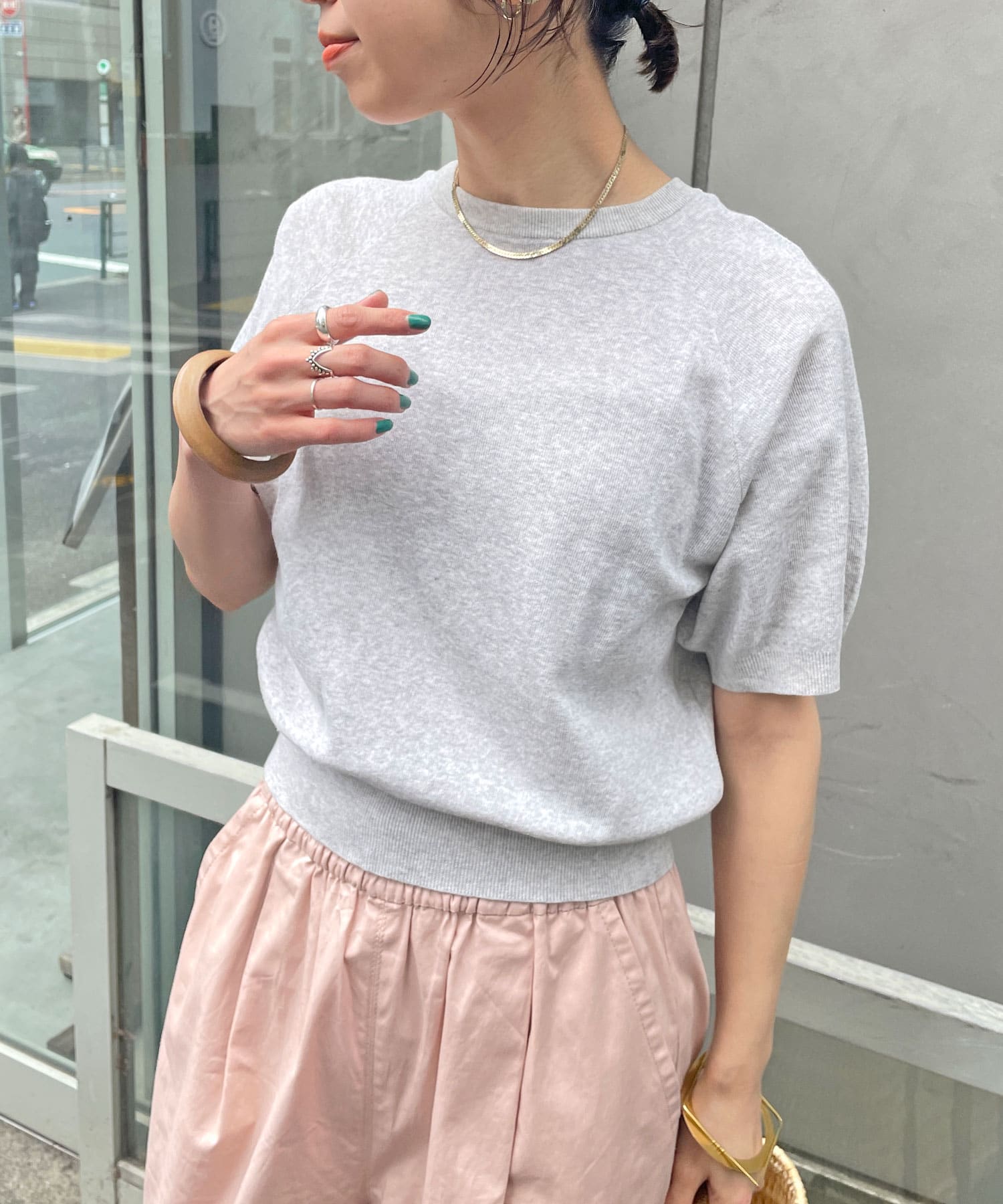 ・程よく身体に馴染むサイズ感とラグランスリーブで華奢見えも叶うストレスフリーな着心地の一枚。