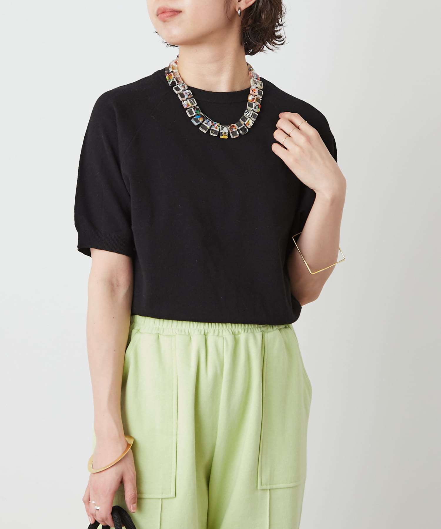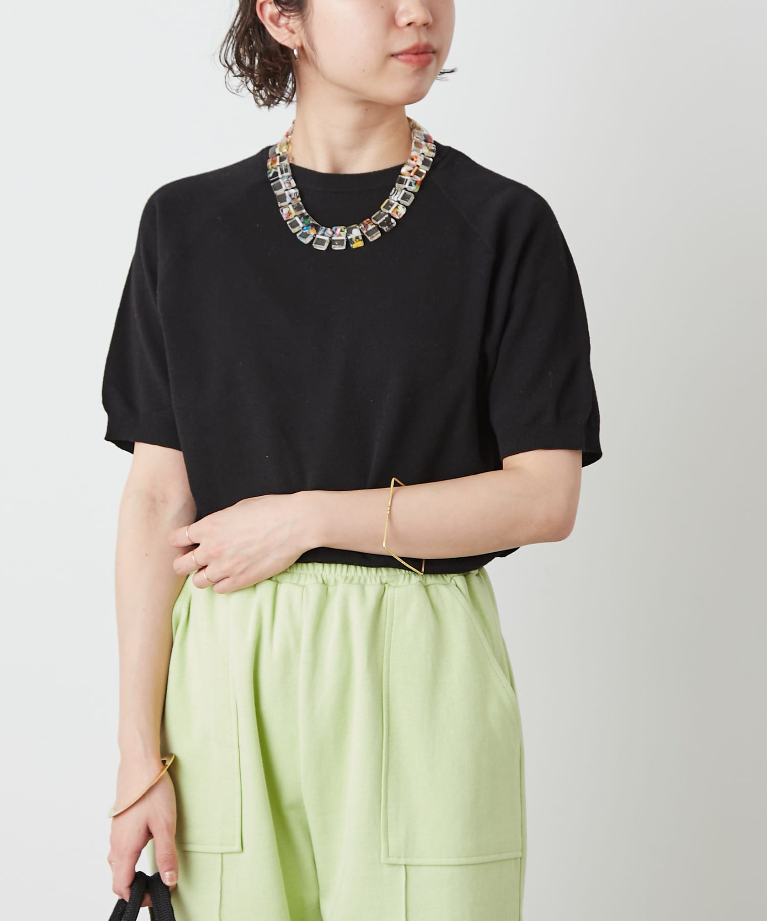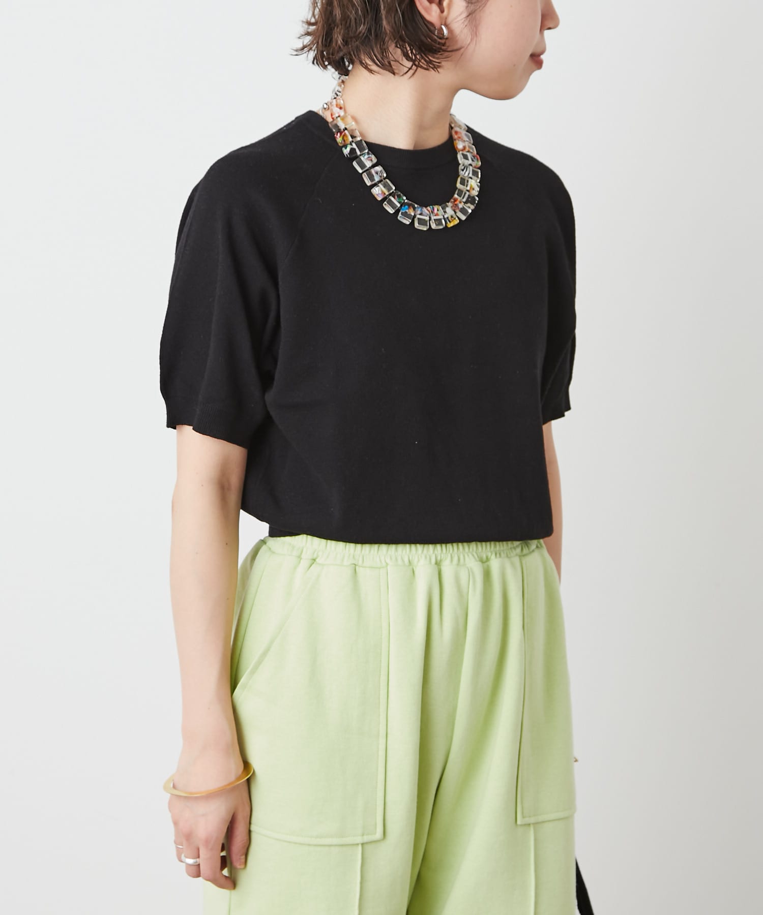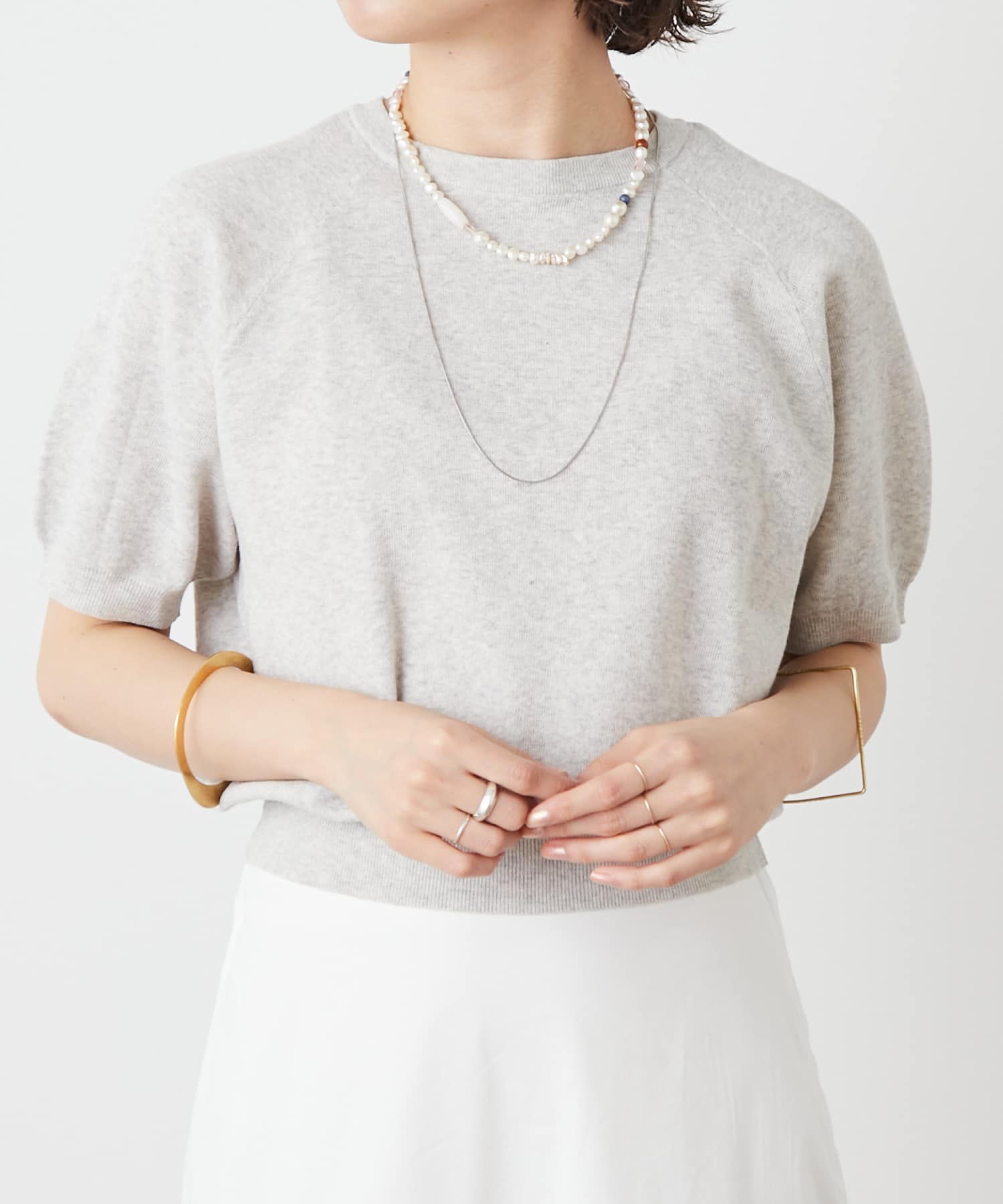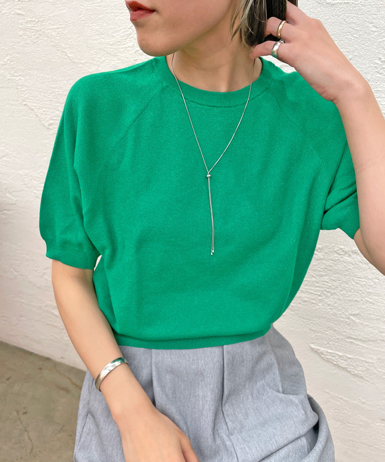 ・程よく身体に馴染むサイズ感とラグランスリーブで華奢見えも叶うストレスフリーな着心地の一枚。