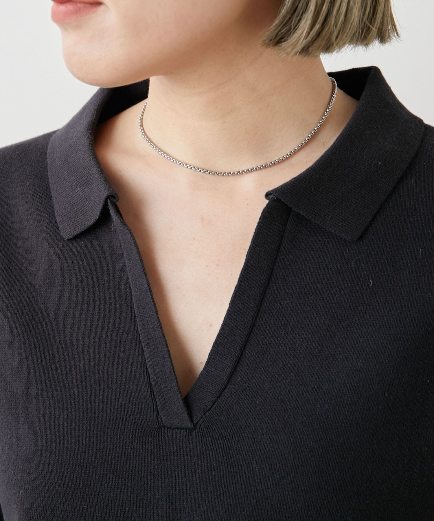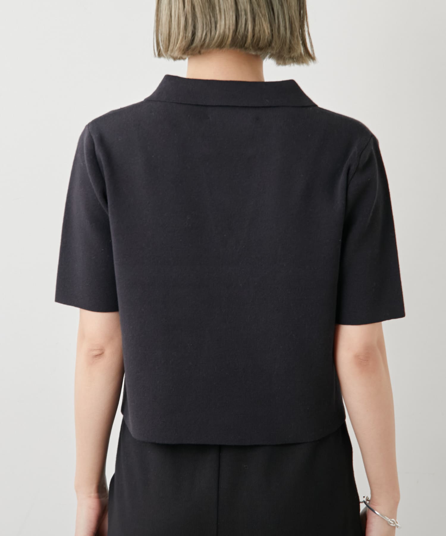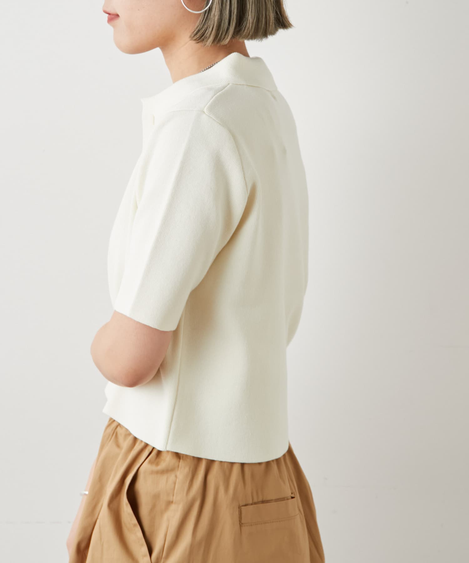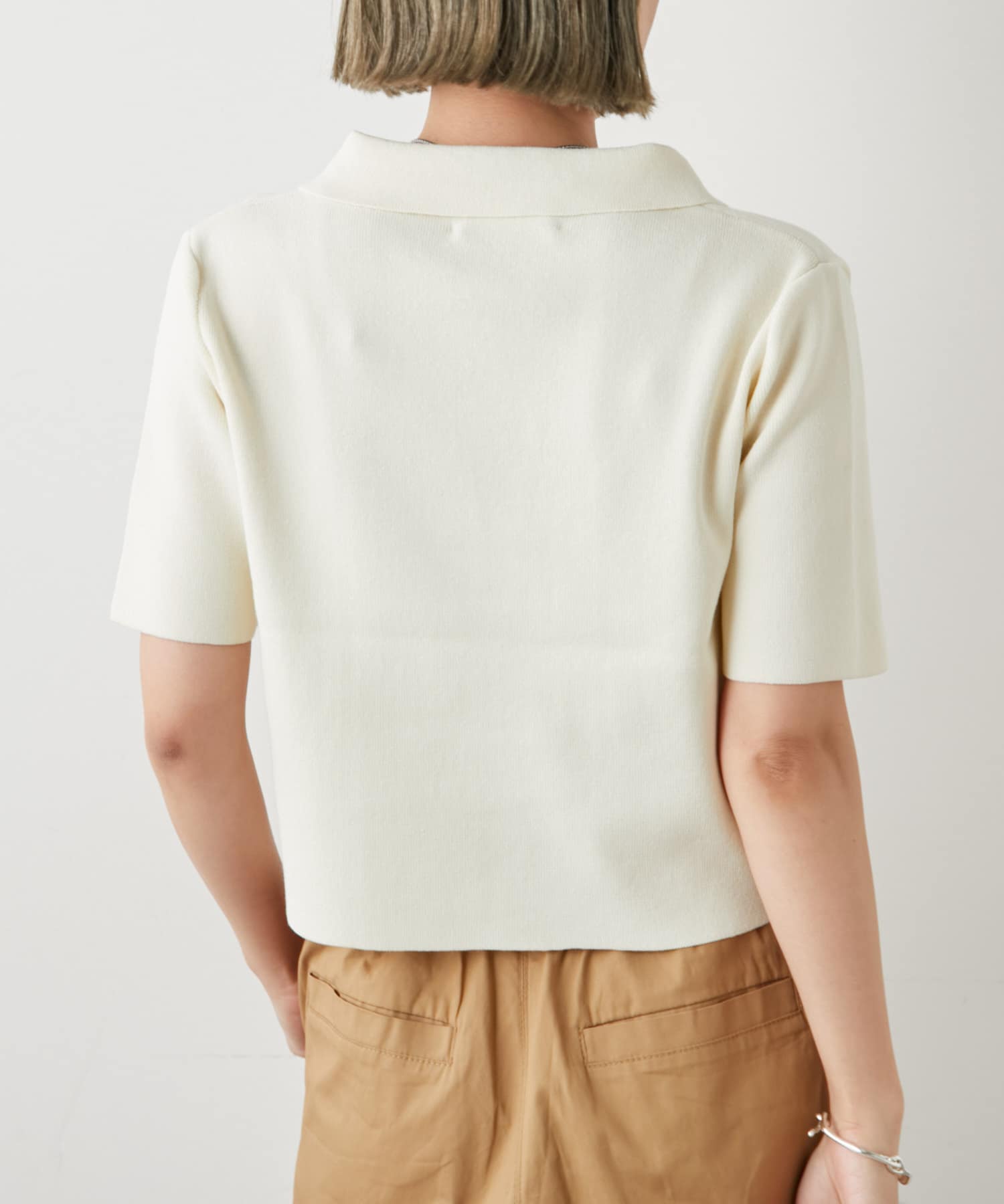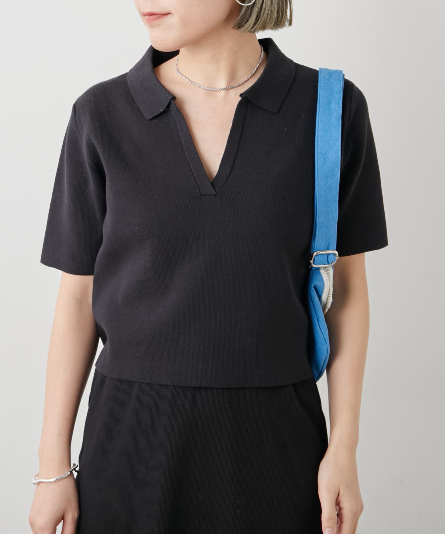 ・ヘルシーな大人の肌見せを叶えるVネックラインと、程よく短めな着丈がポイントの衿付きニット。