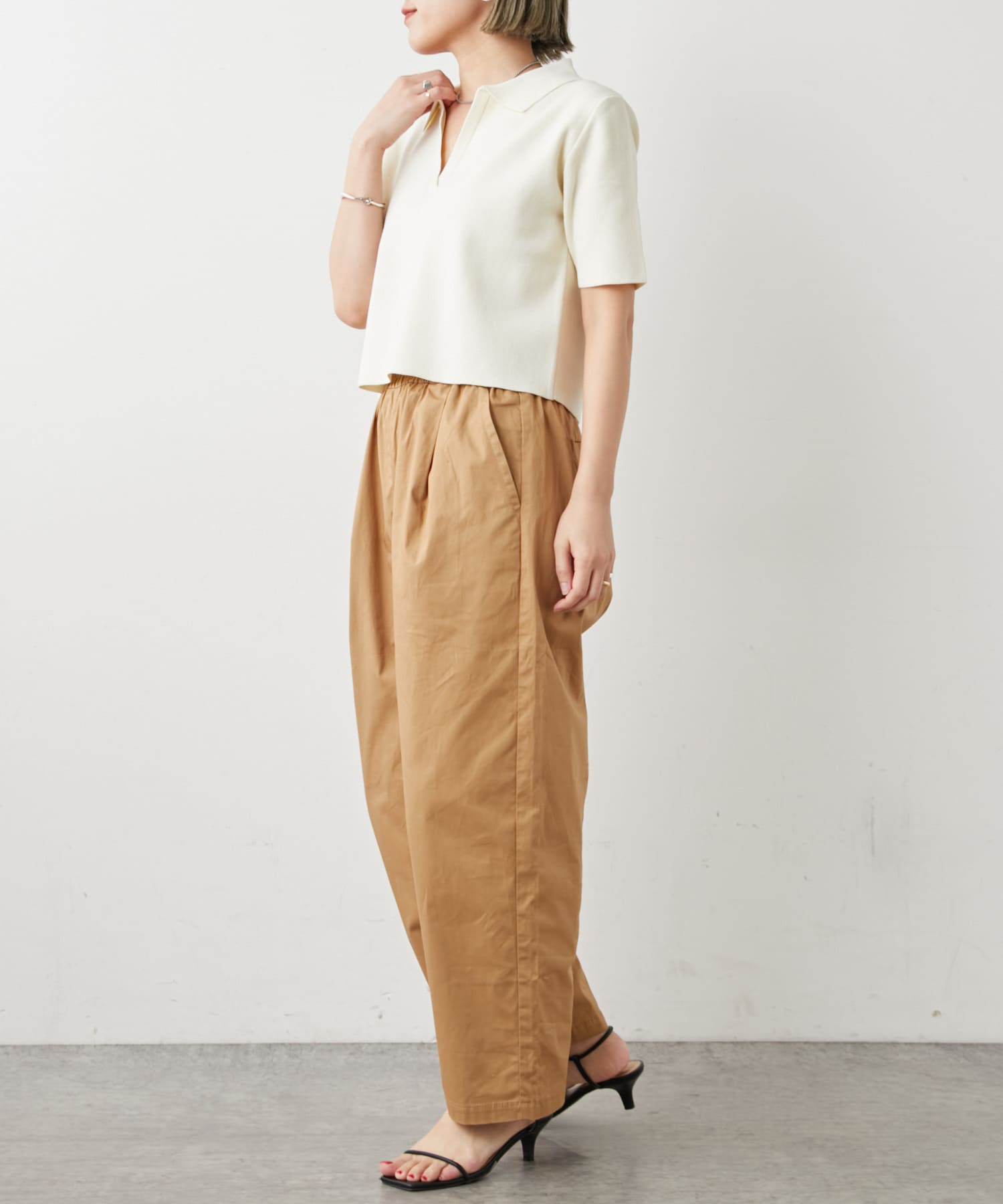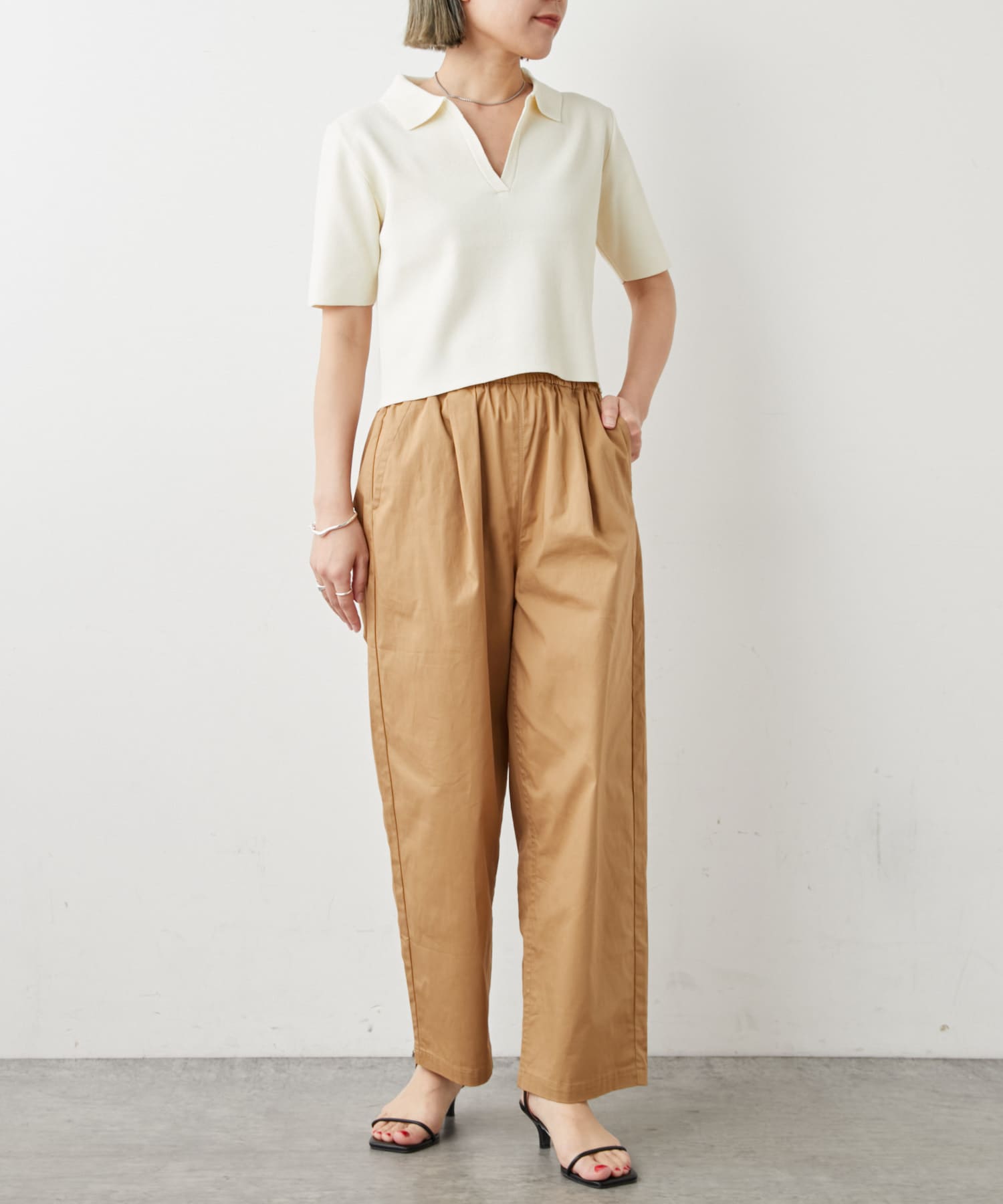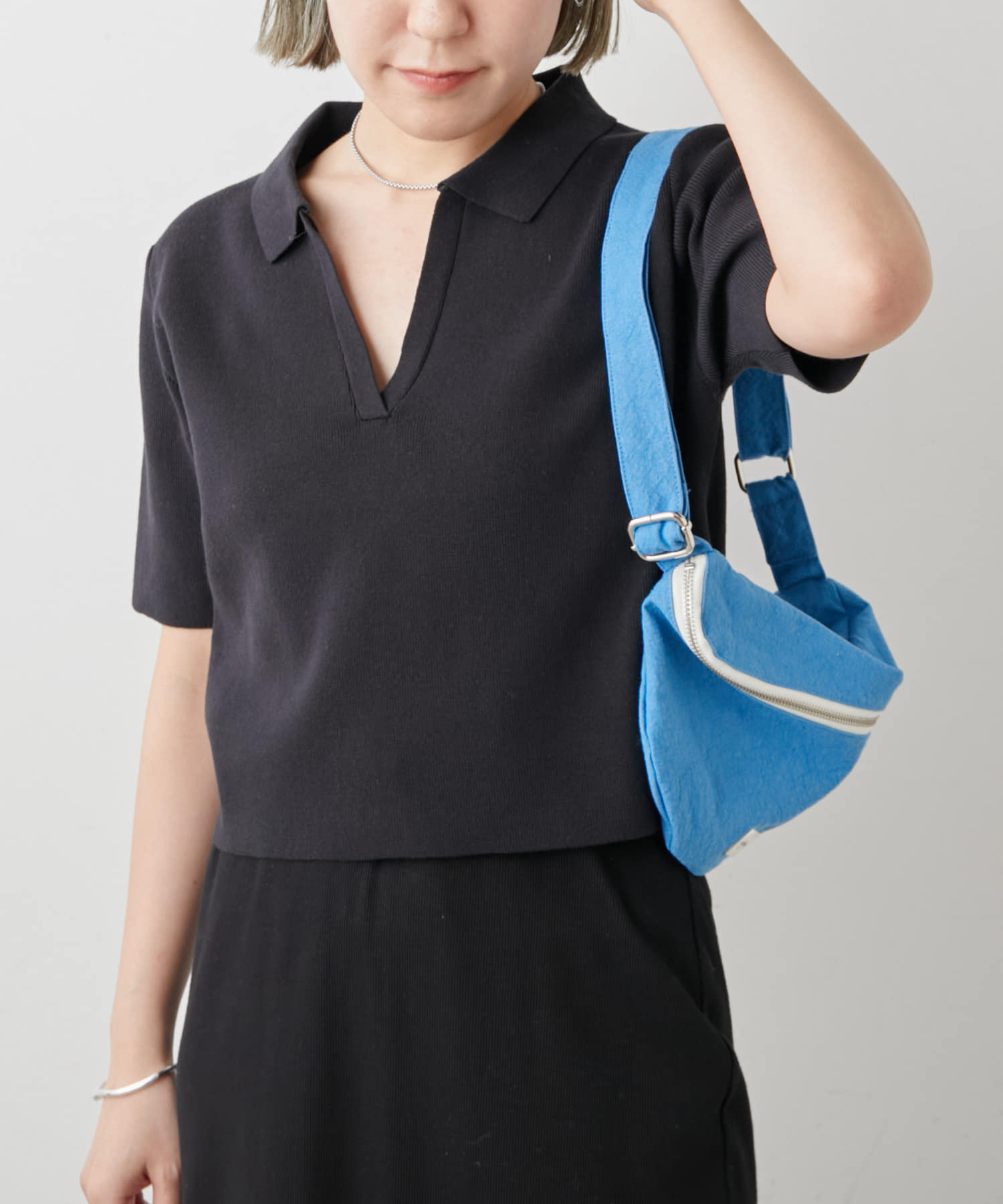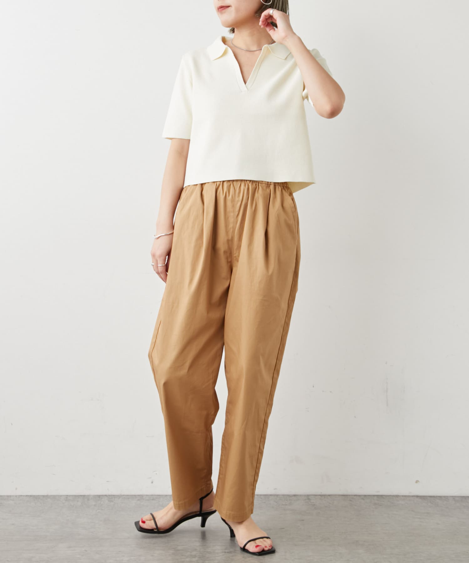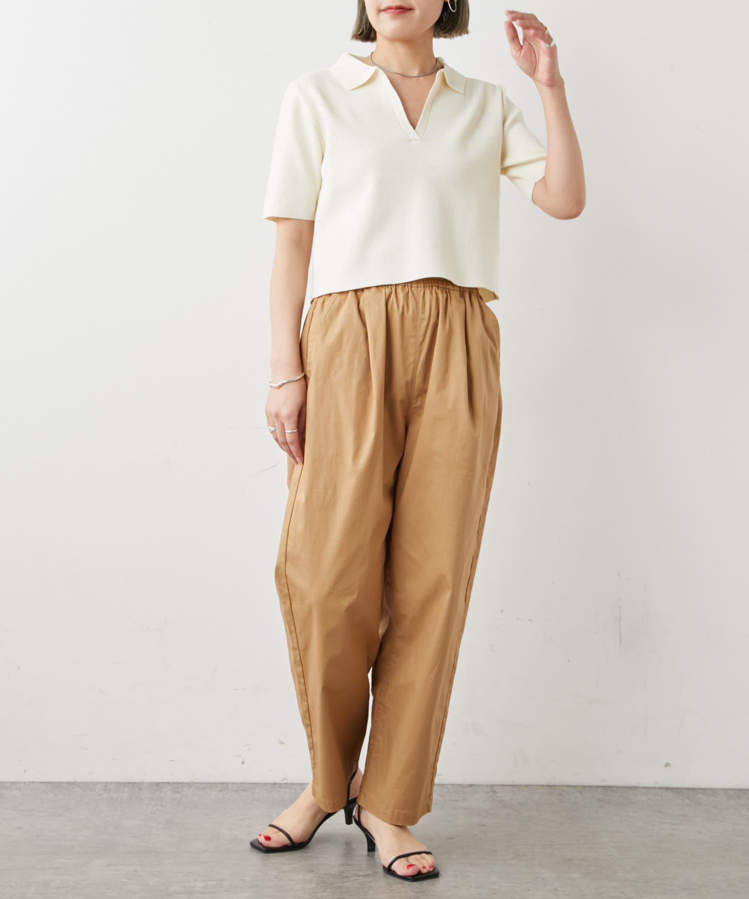 ・ヘルシーな大人の肌見せを叶えるVネックラインと、程よく短めな着丈がポイントの衿付きニット。