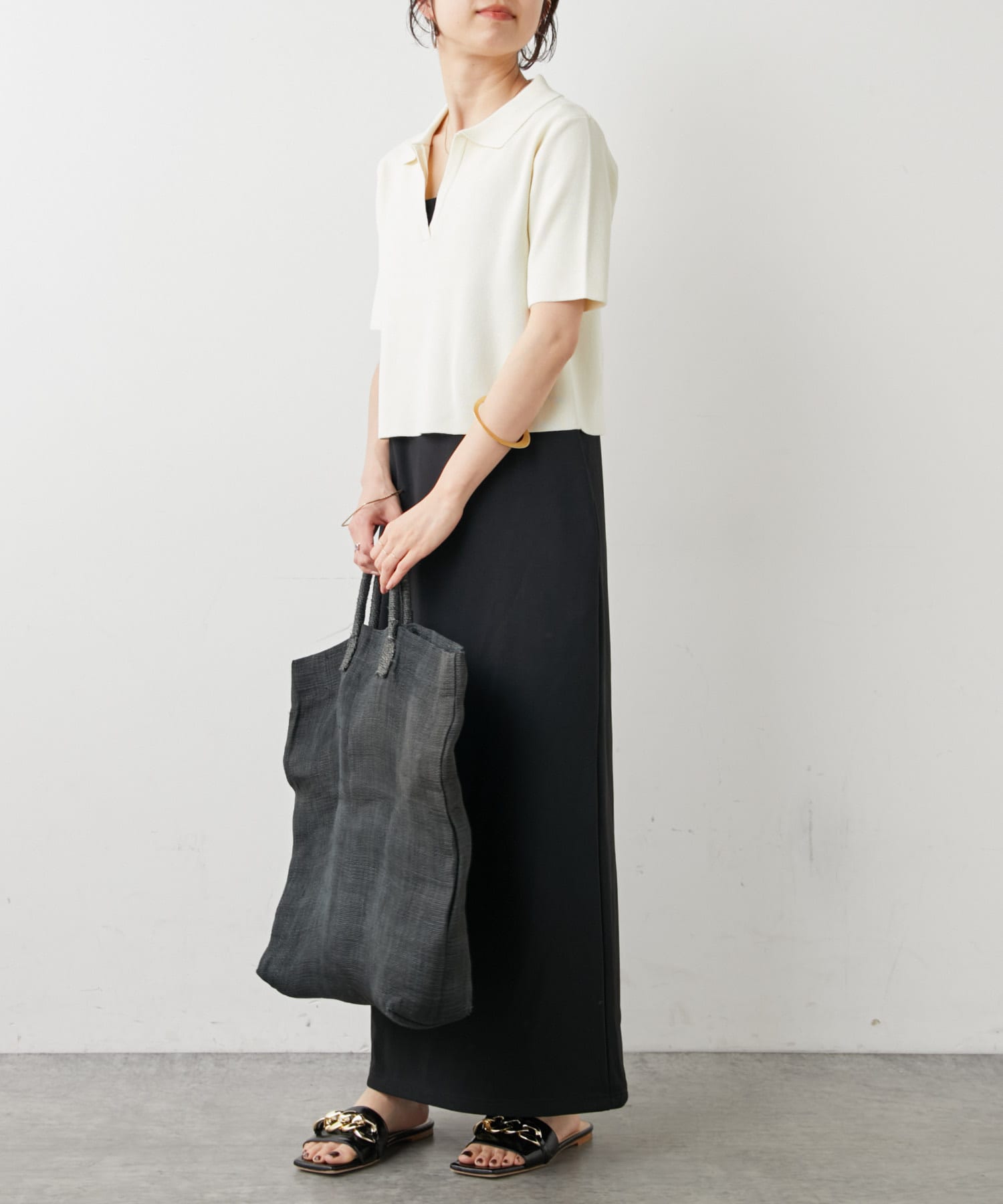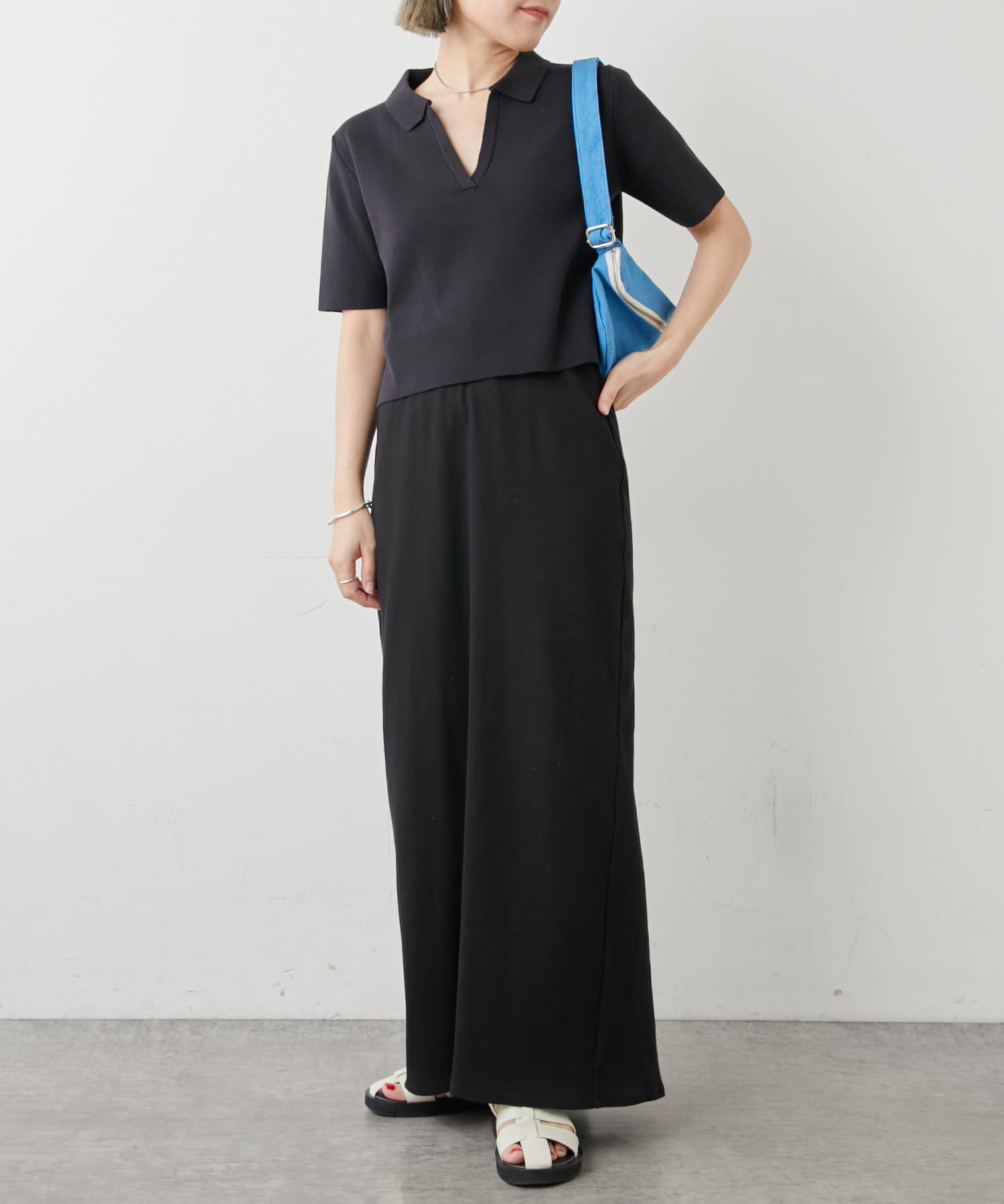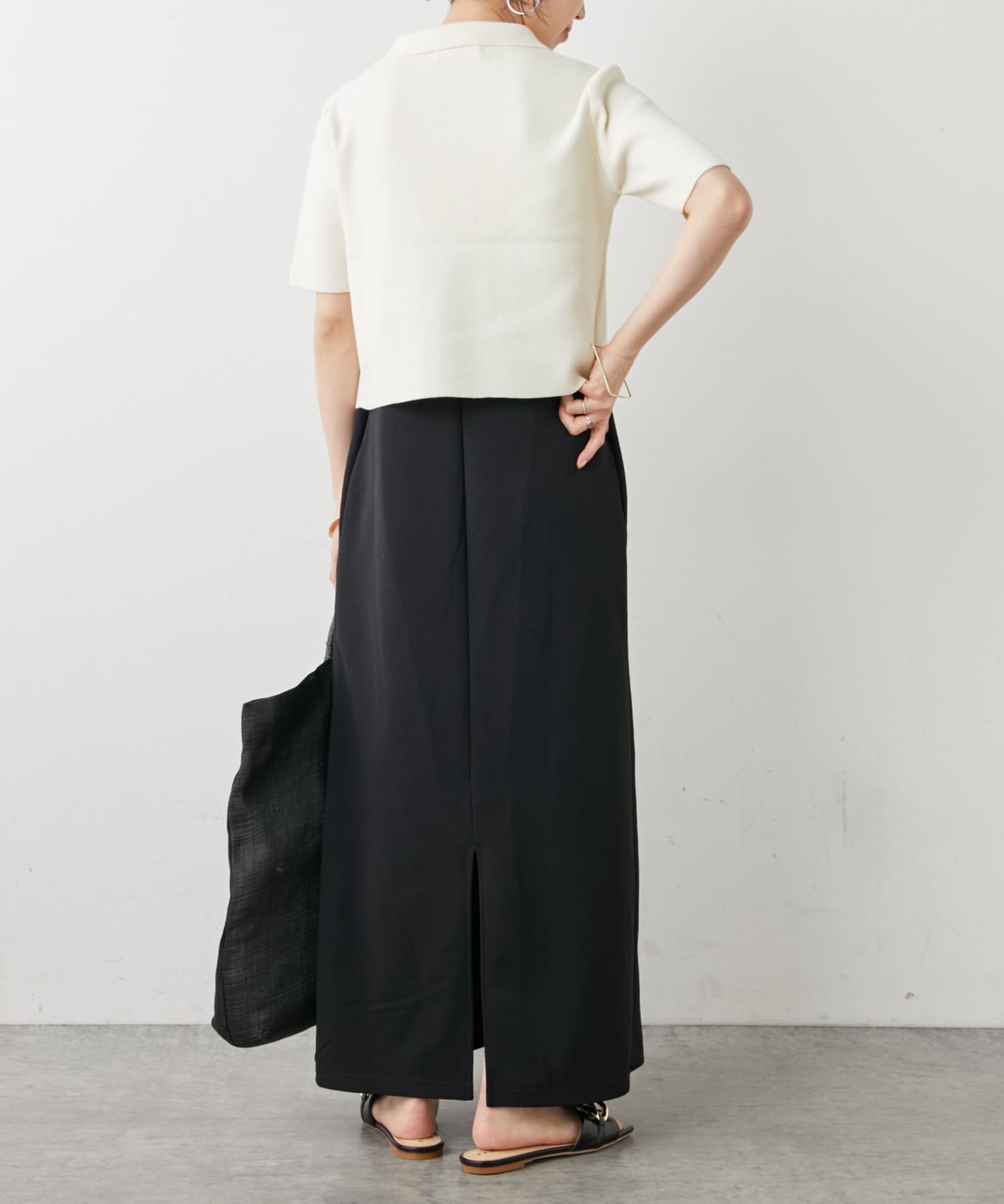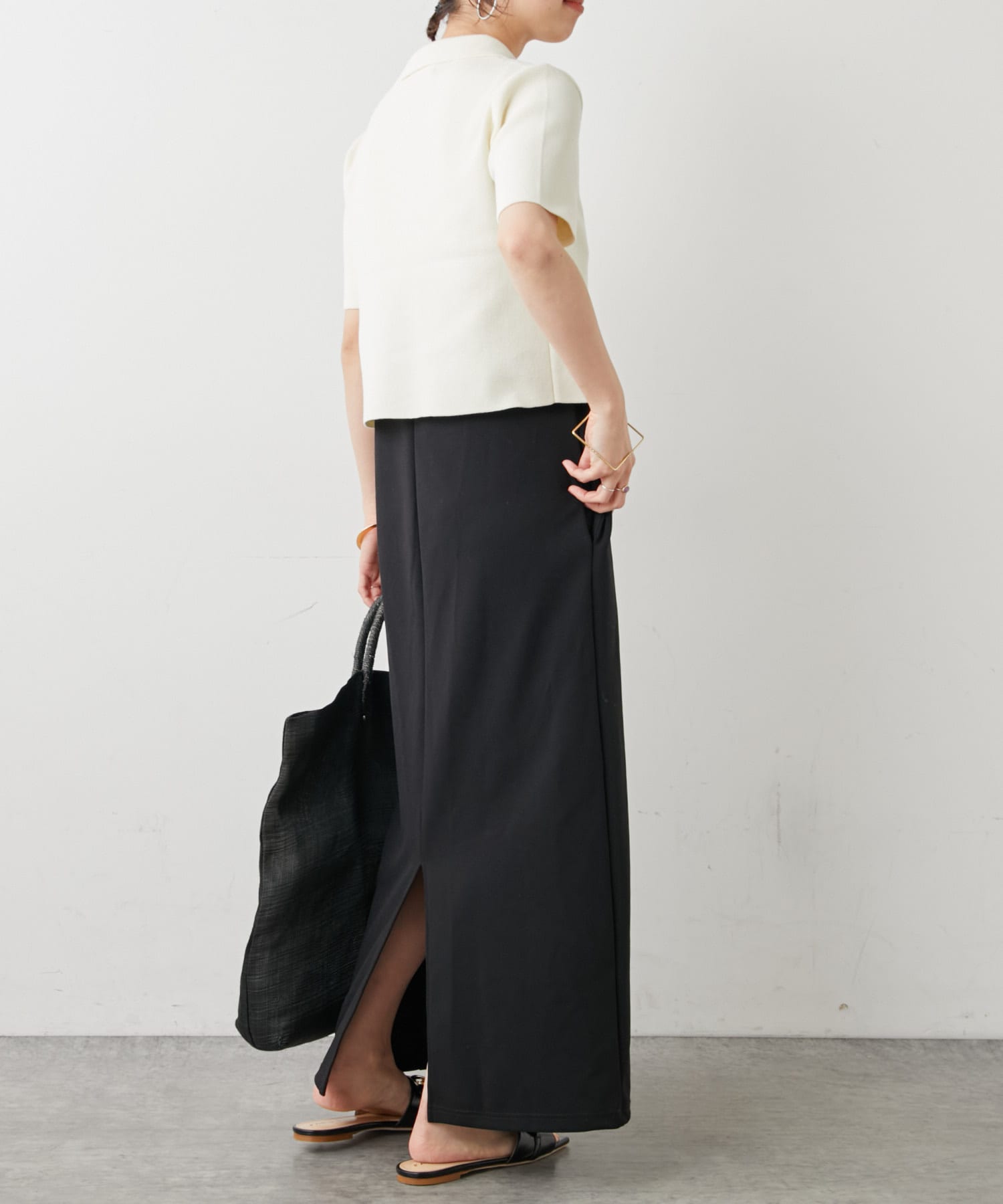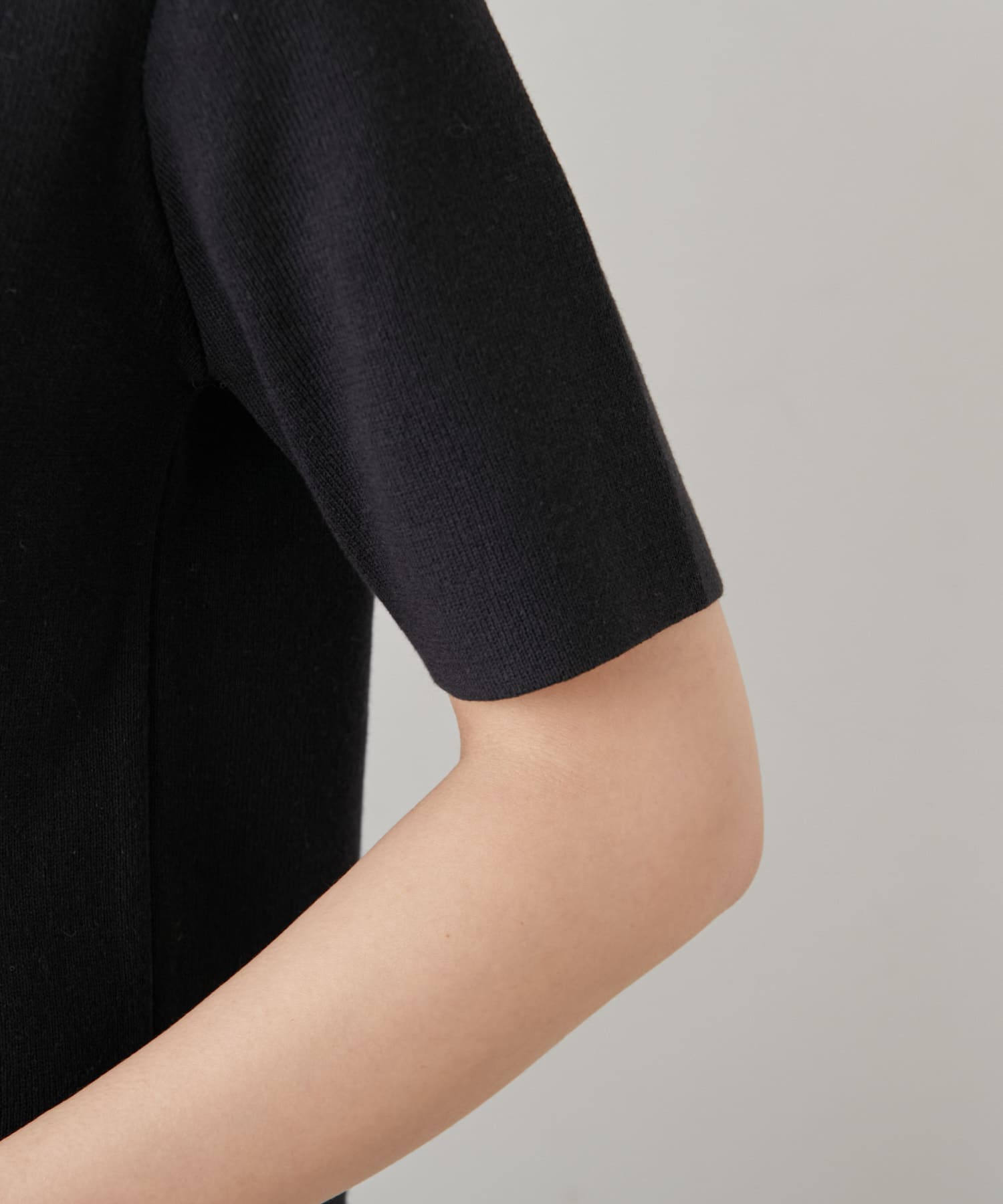 ・伸縮性のあるリブの編地がボディラインに程よくフィット。上半身をすっきりと見せてくれます。