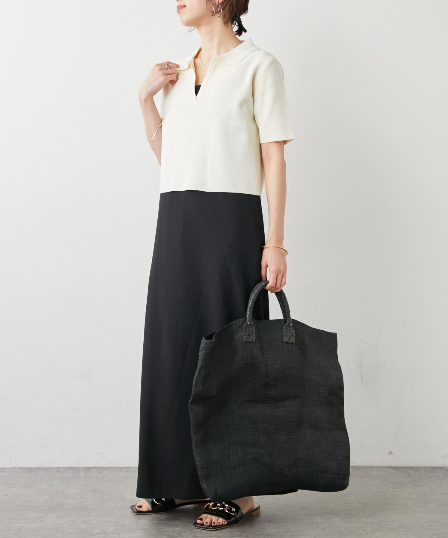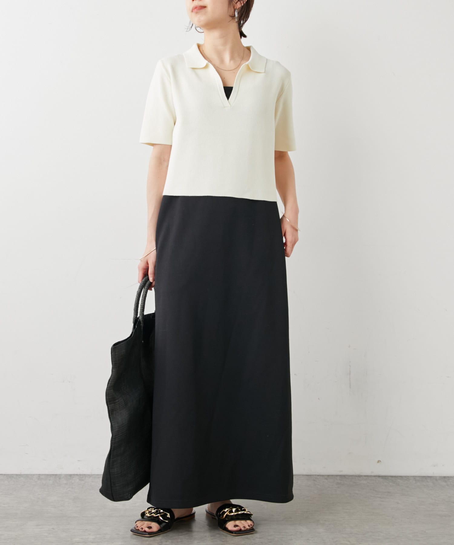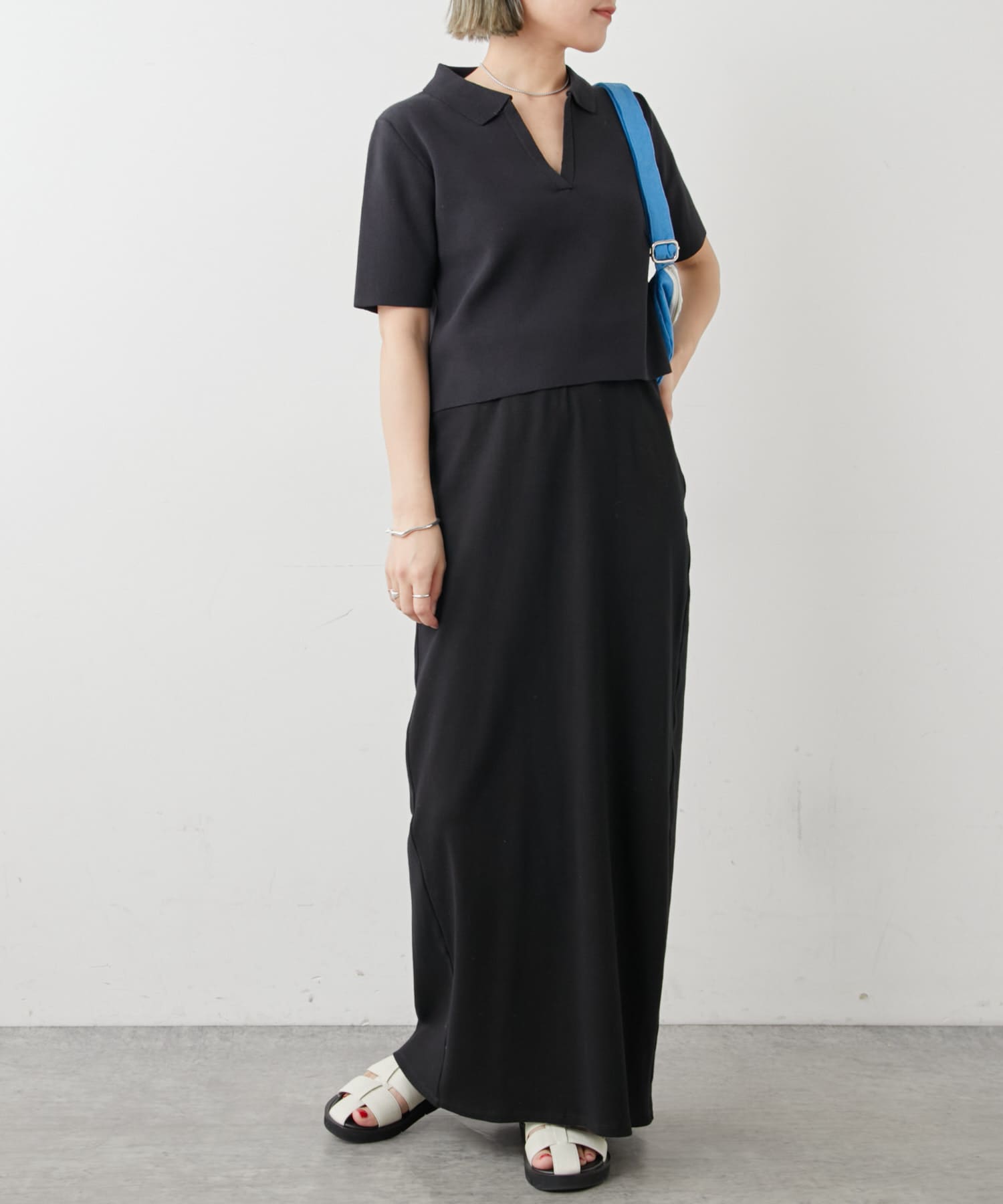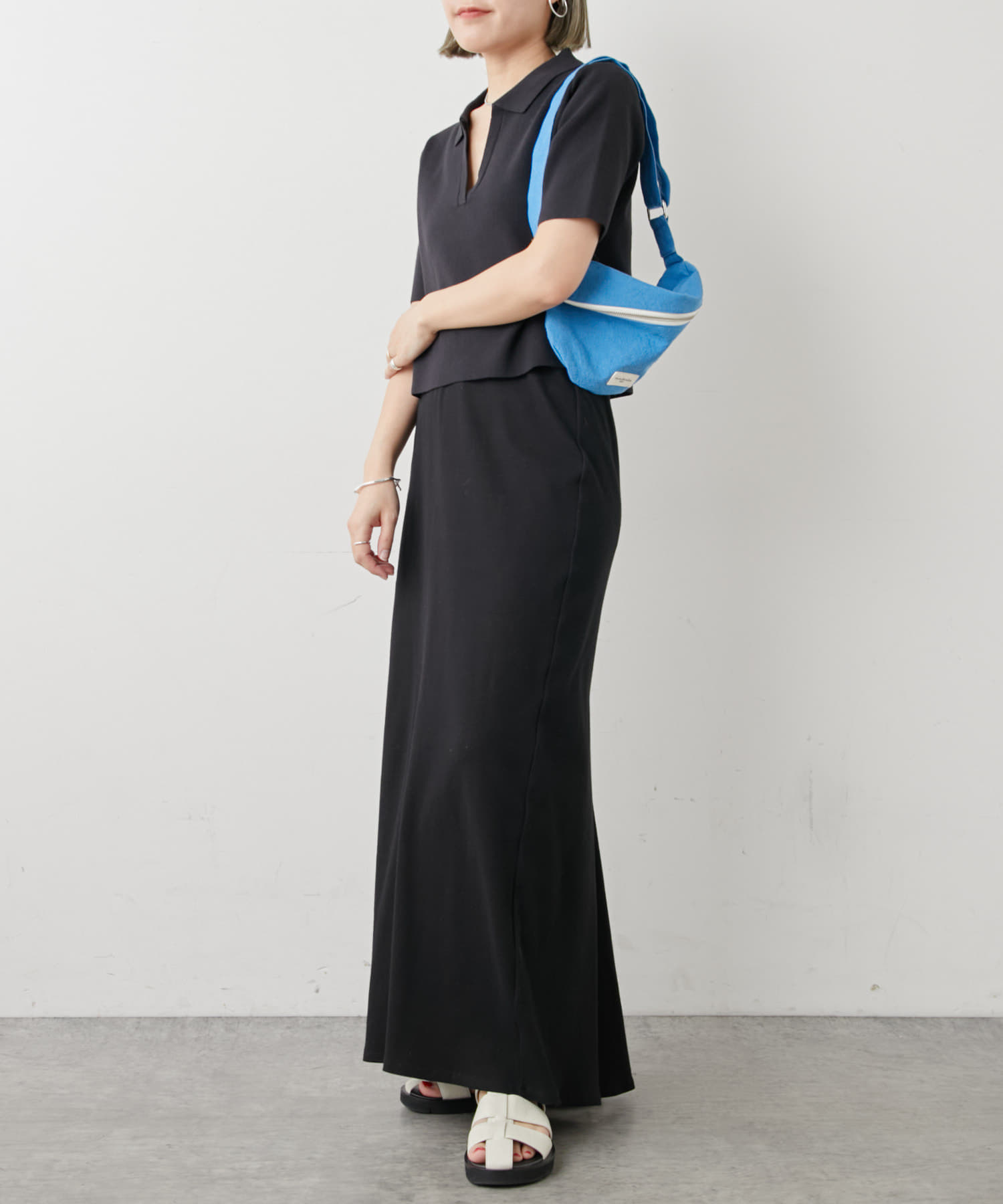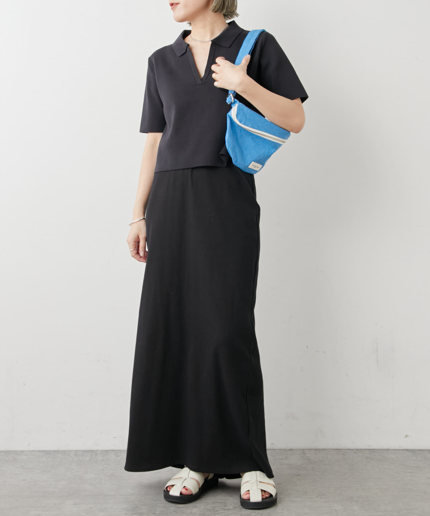 ・伸縮性のあるリブの編地がボディラインに程よくフィット。上半身をすっきりと見せてくれます。