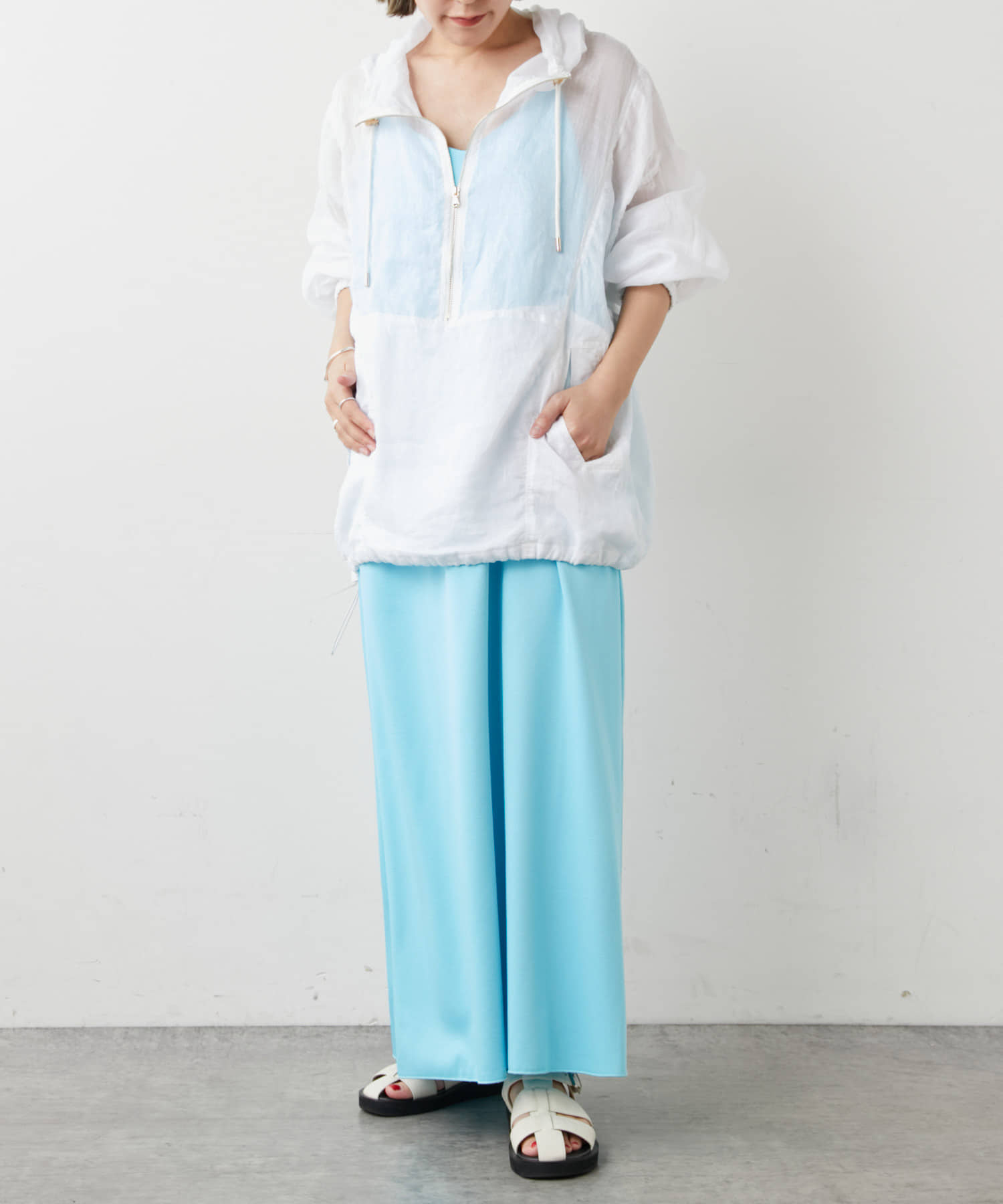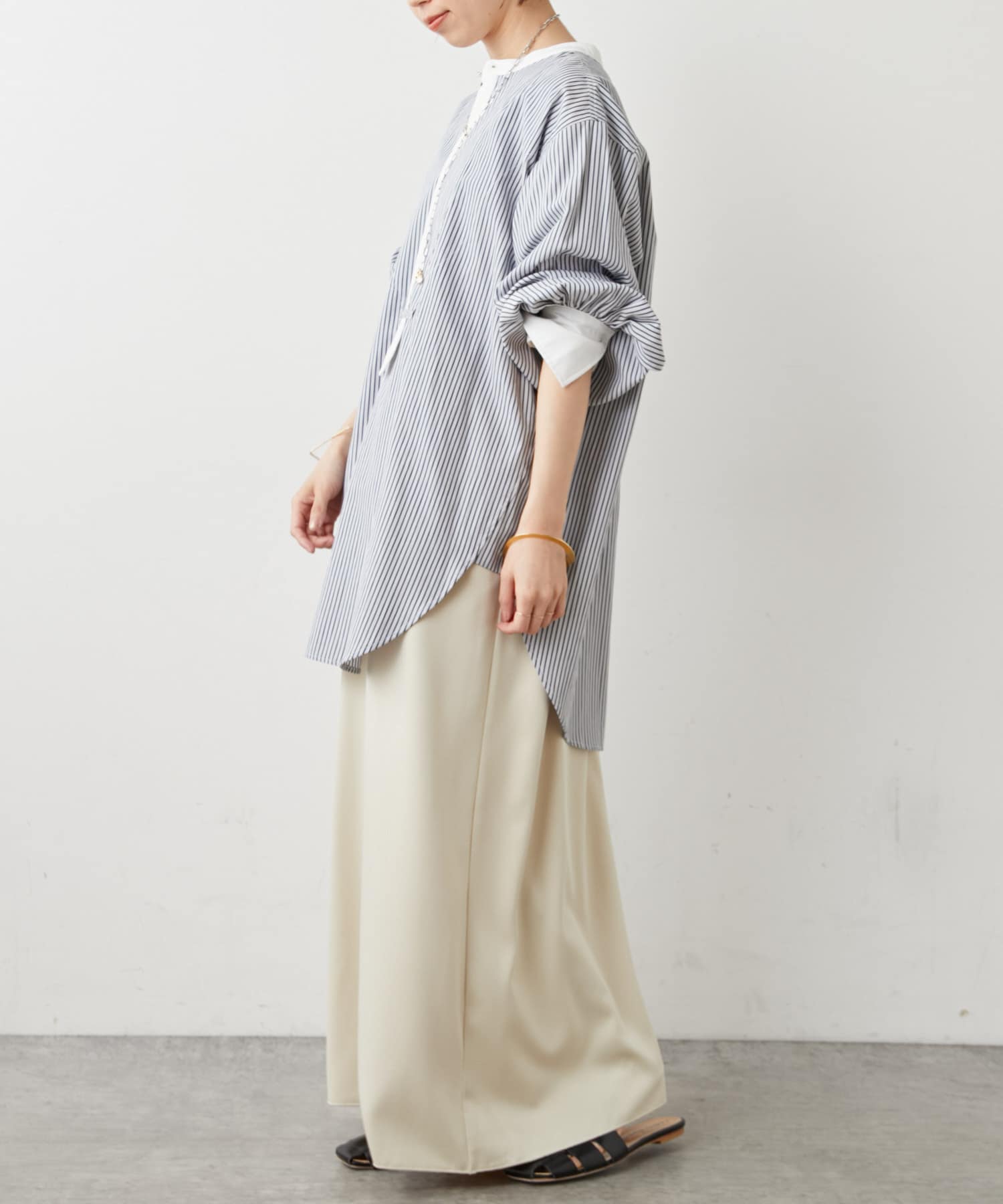 ・キャミソールの上に着てシャツを羽織ったヘルシーな肌見せスタイルや、ノースリーブやTシャツに合わせたカジュアルなスタイリングがオススメです。