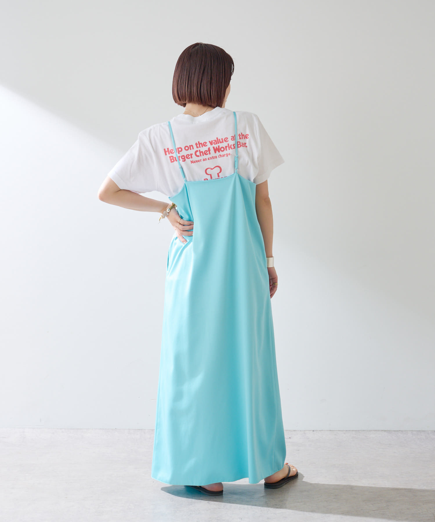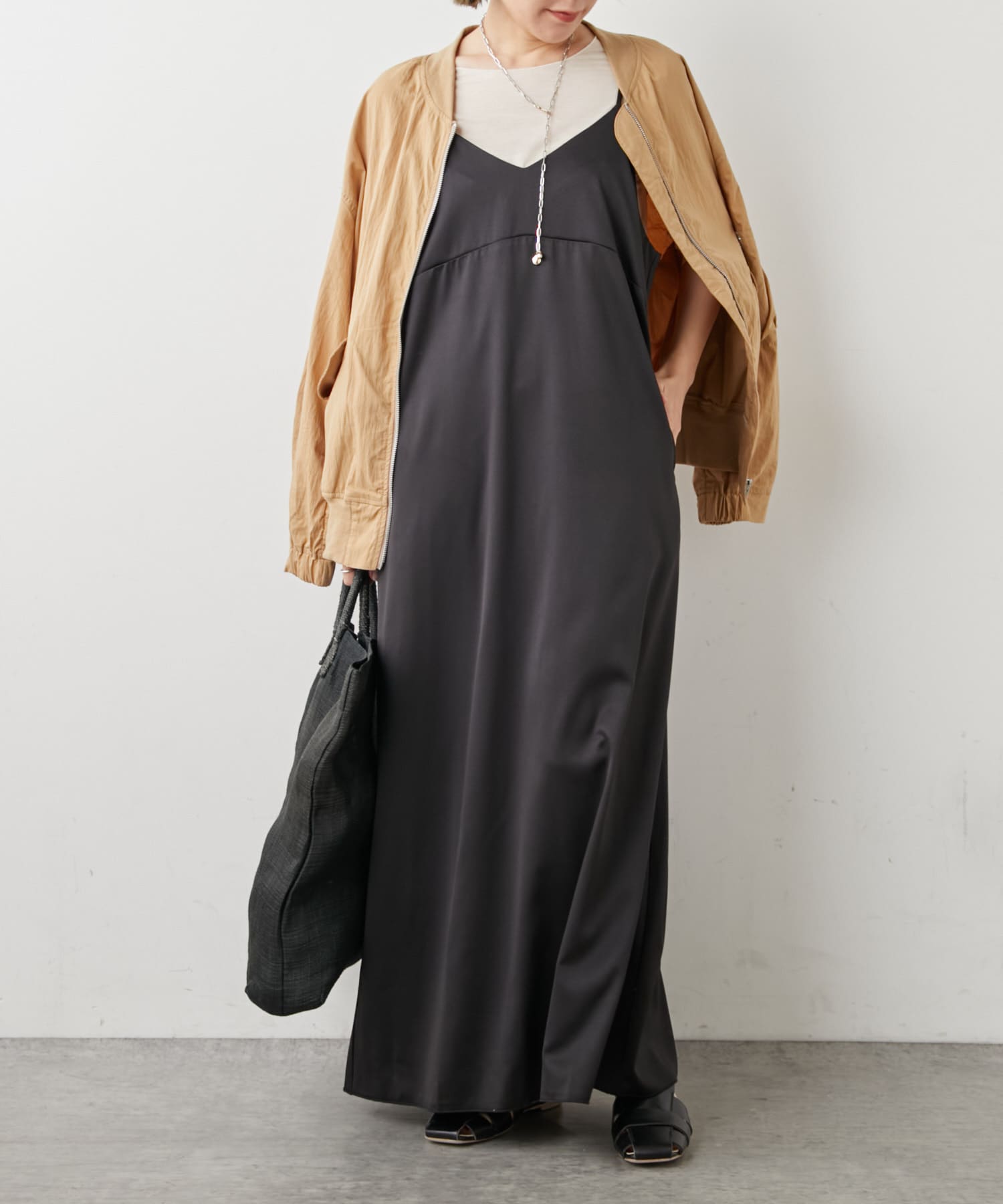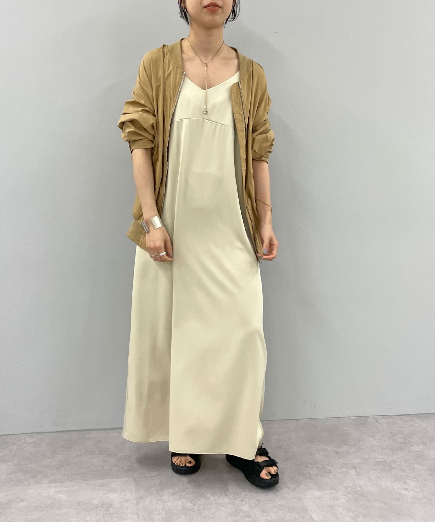 ・柔らかなつや感が派手になり過ぎず、上品な雰囲気を演出してくれるサテンワンピース。