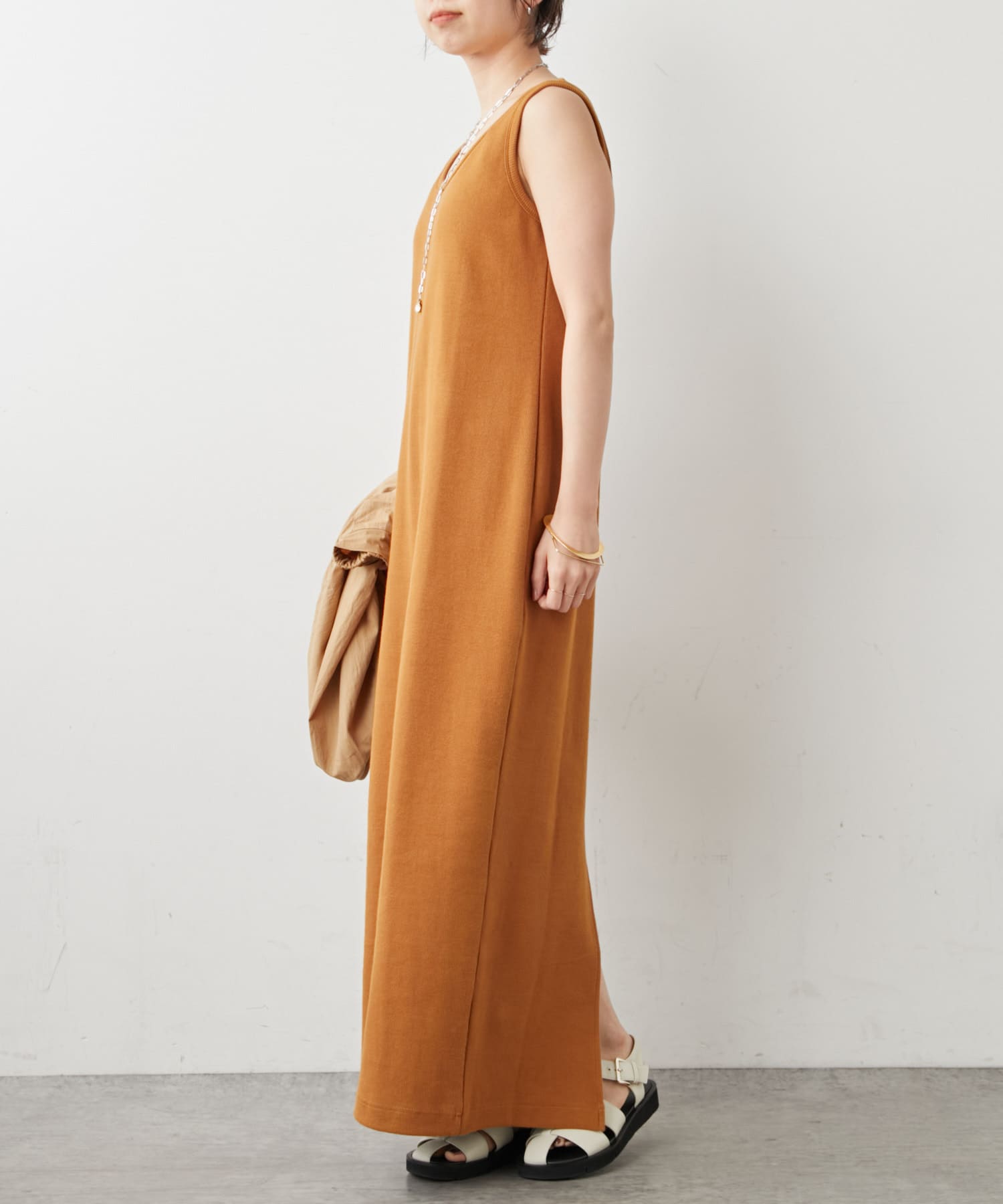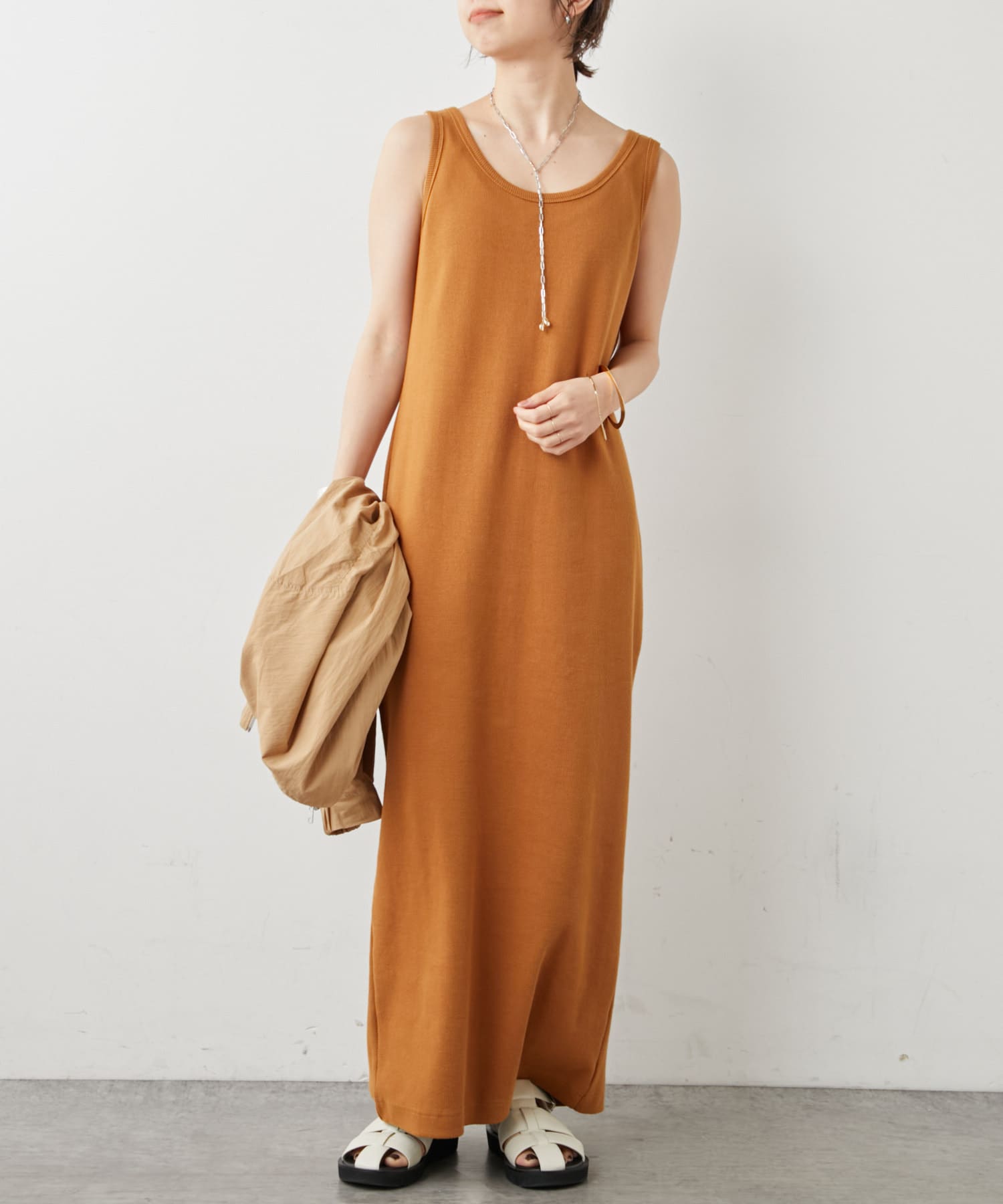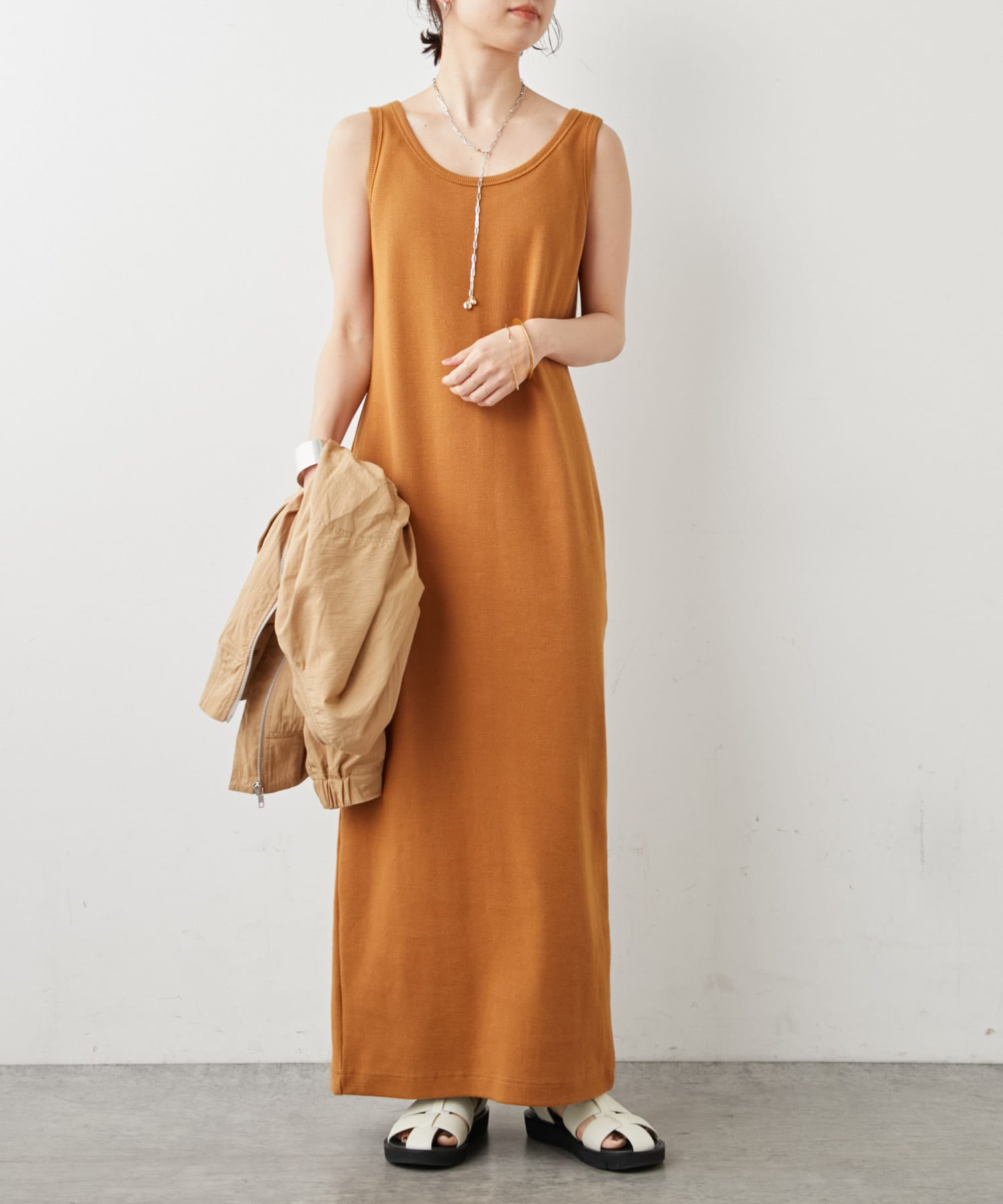 ラクなのに自然とこなれた着こなしにが叶うテレコノースリーブワンピース