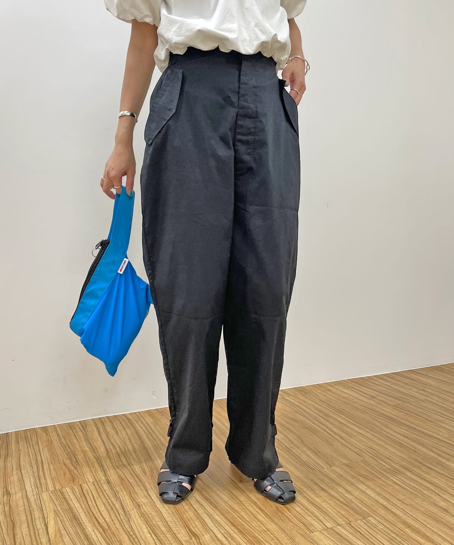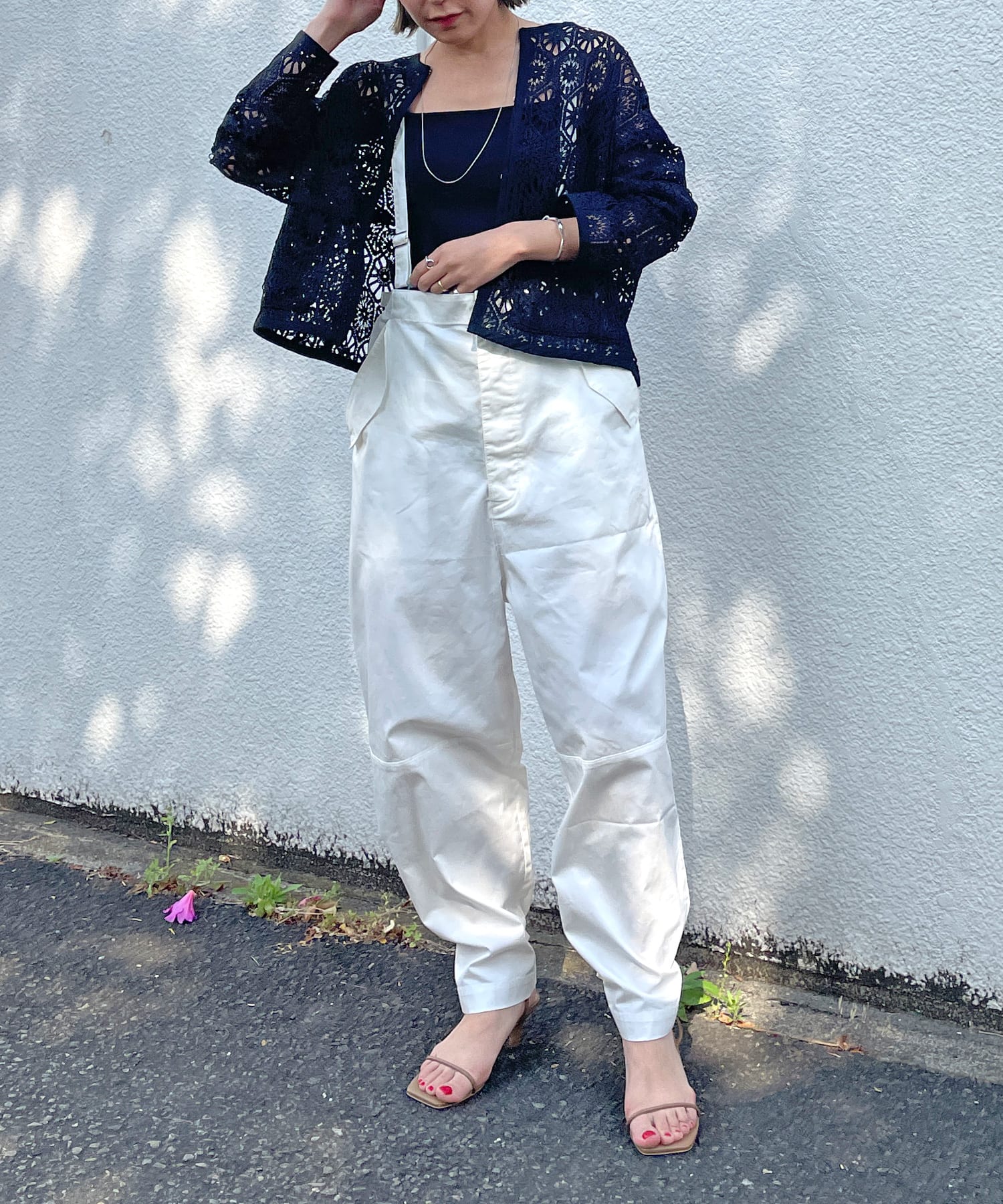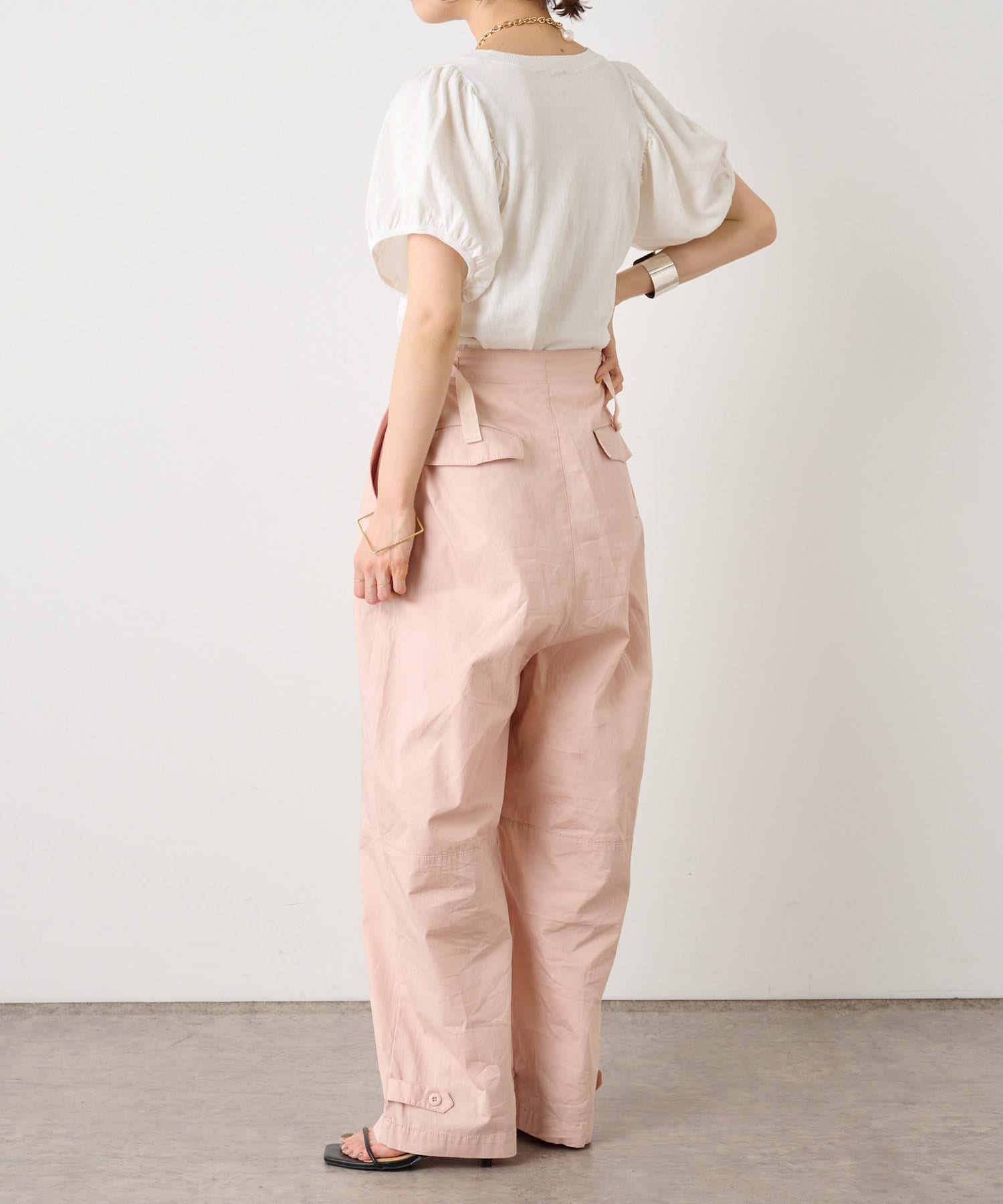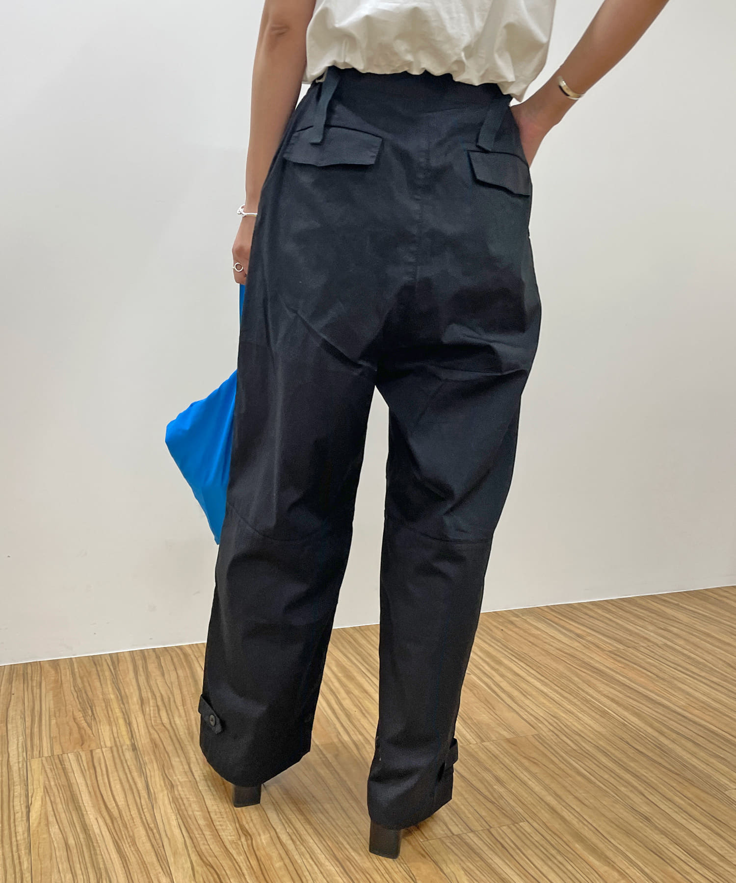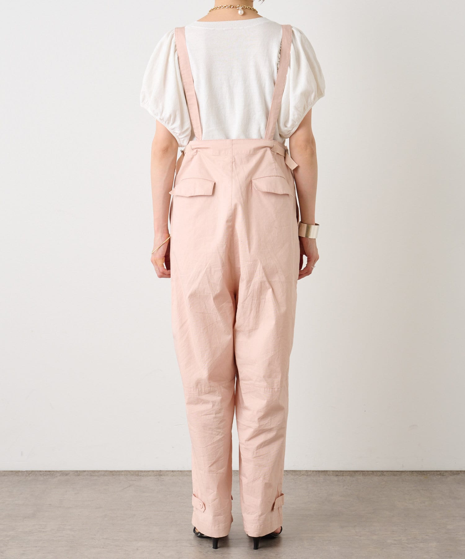 ・サスペンダーと裾のボタン、ウエストのサイドベルトで気分によっていろんなアレンジが出来る優秀アイテム。