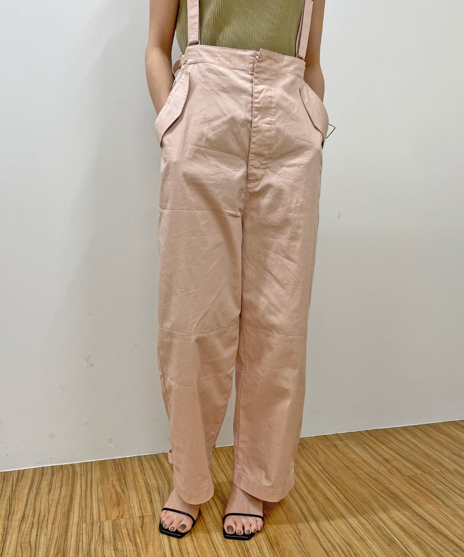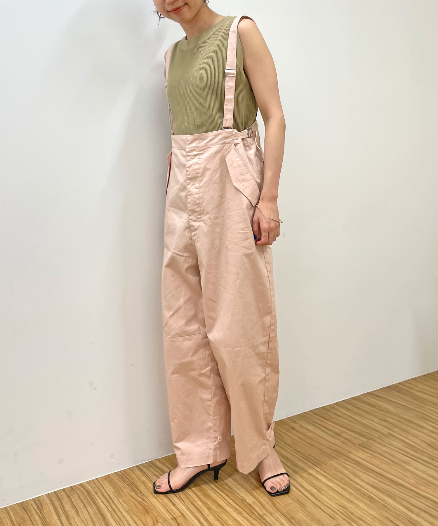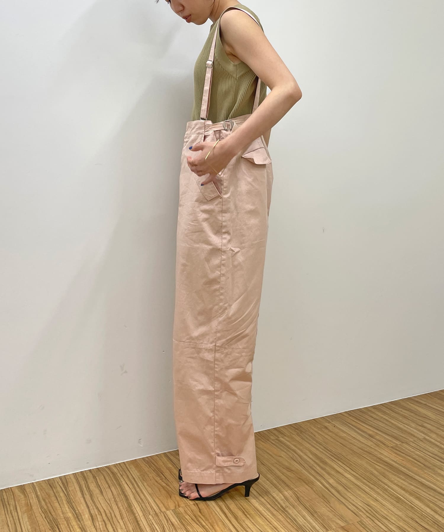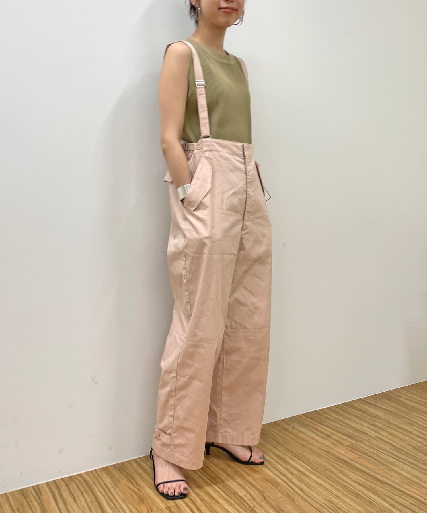 ゆったりシルエットで抜け感がある大人カジュアルなサスペンダーパンツ