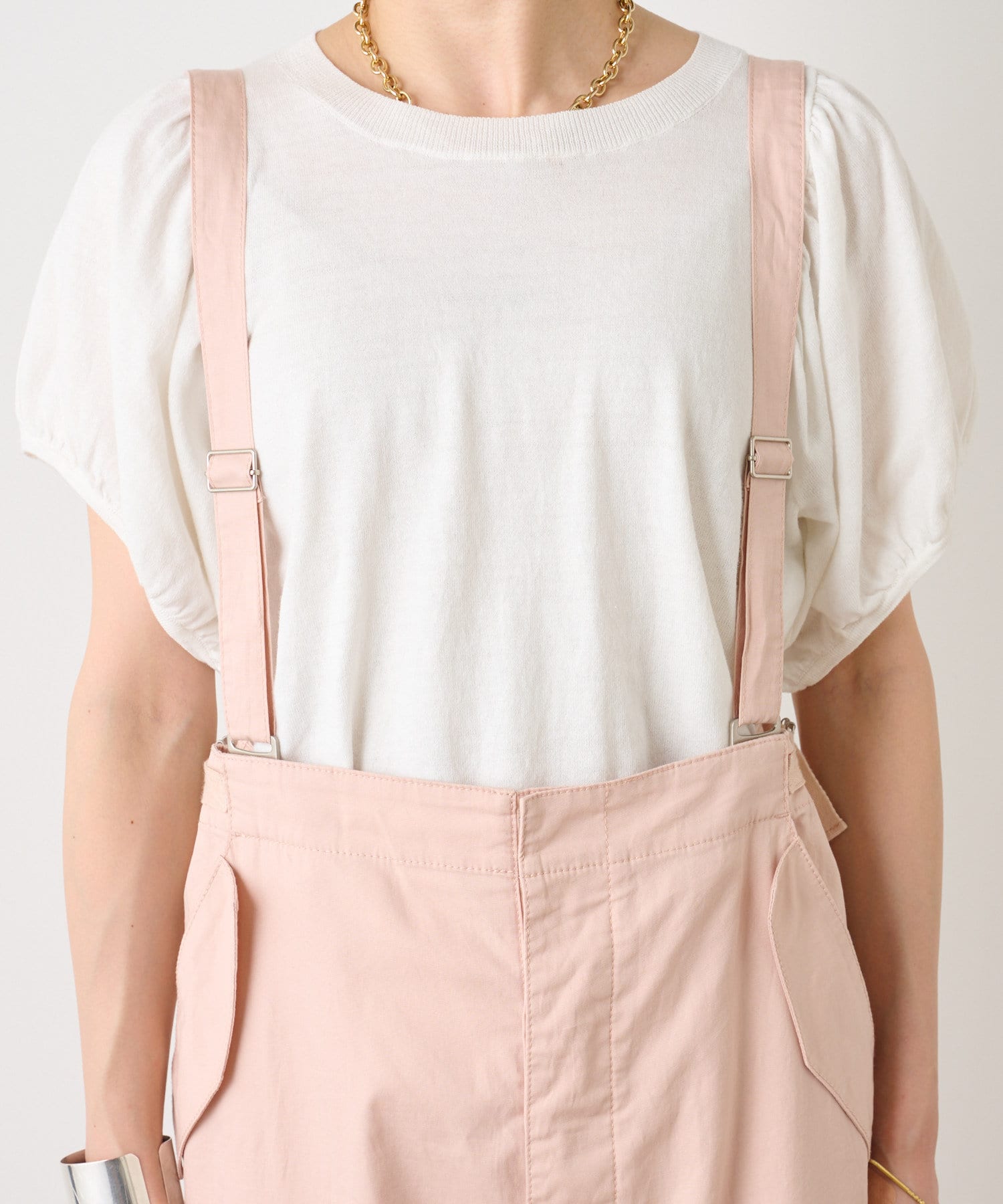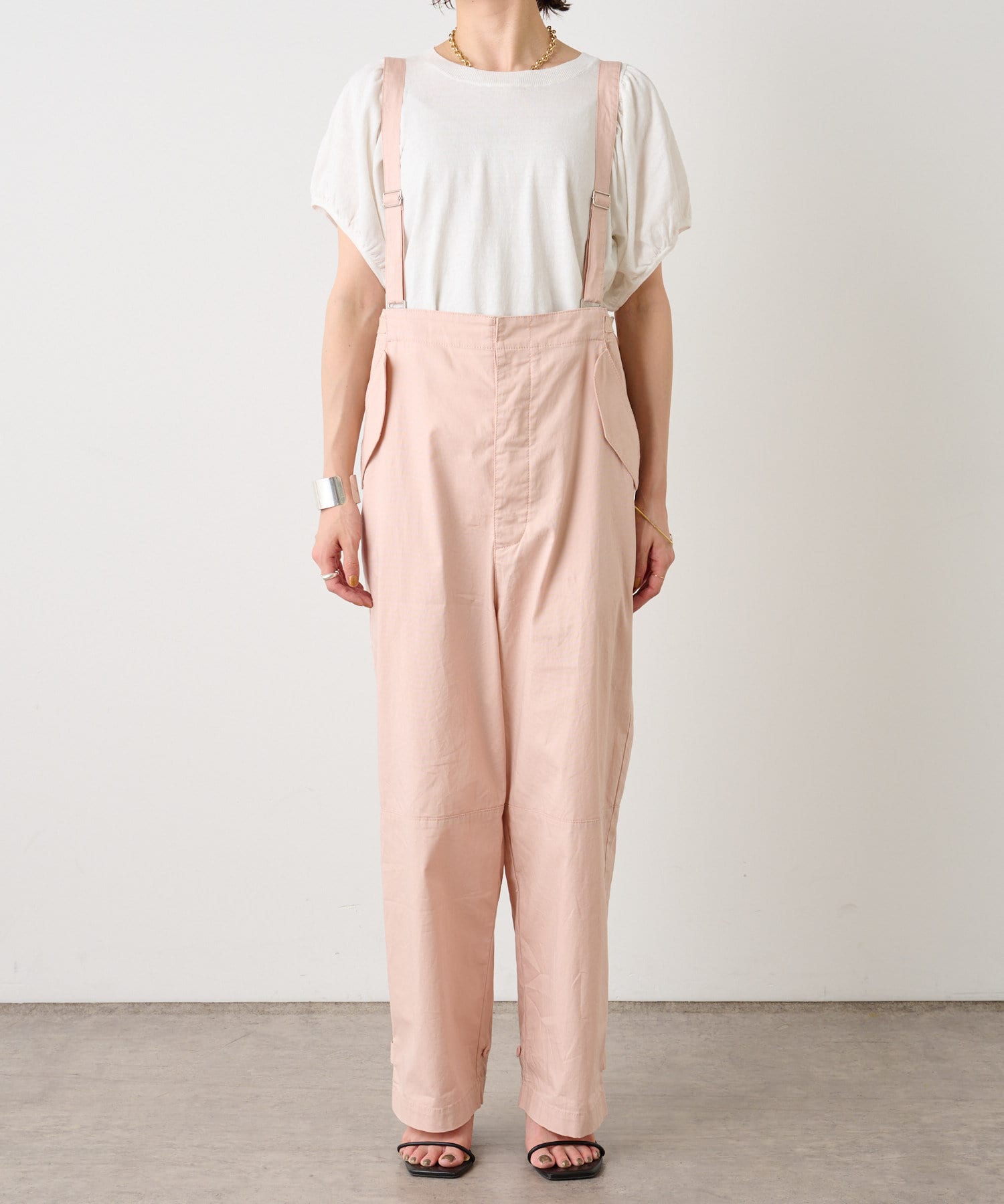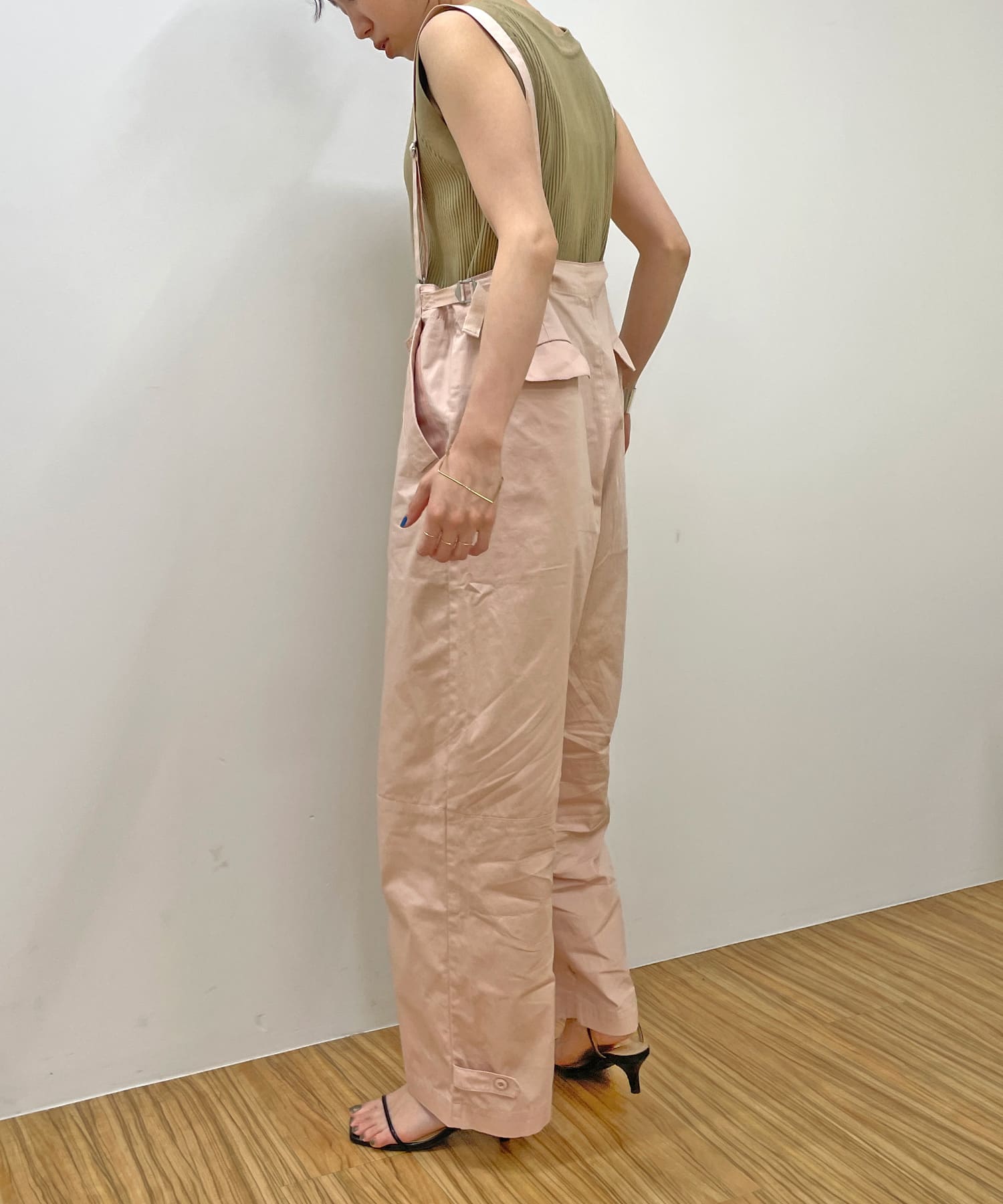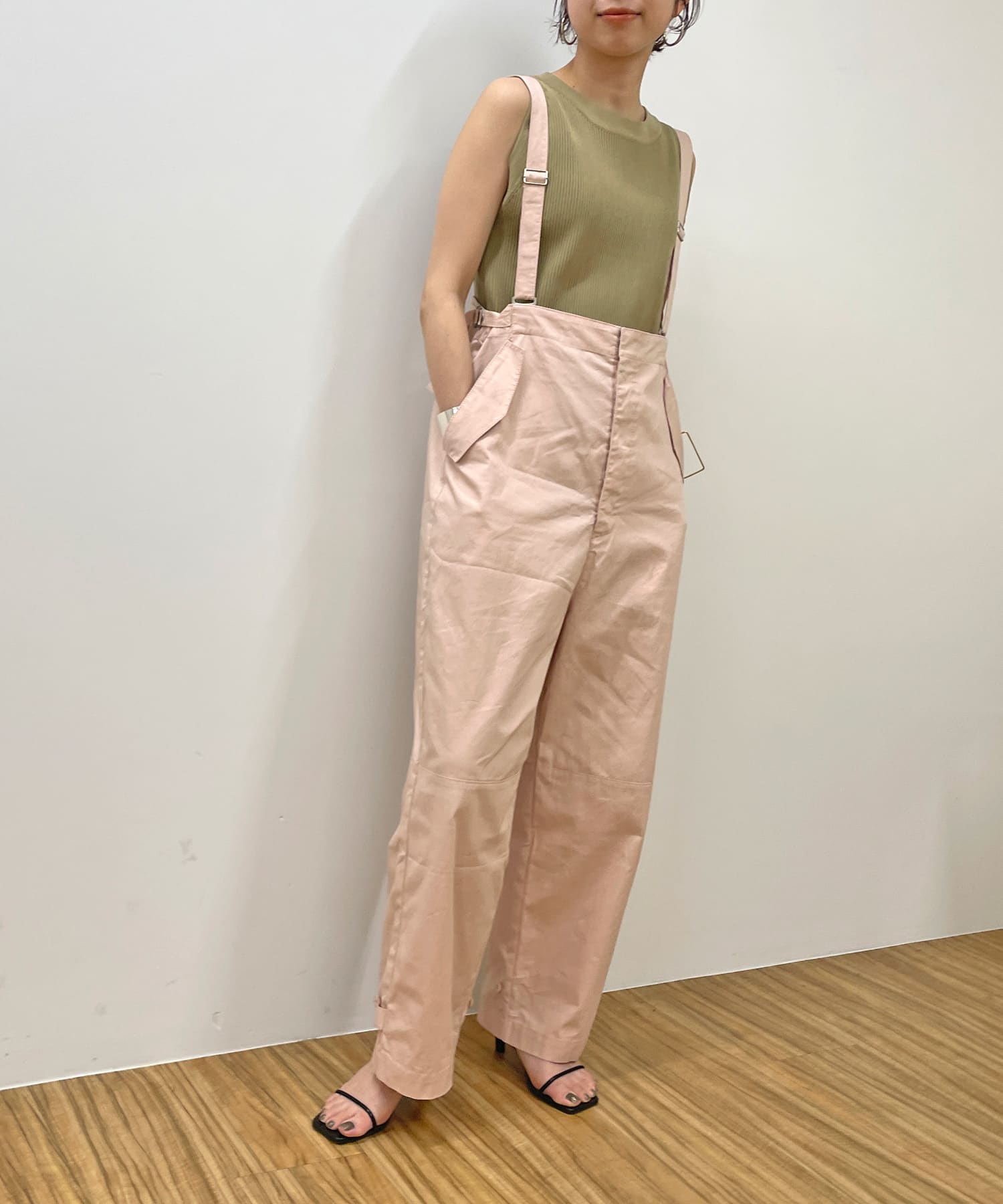 ゆったりシルエットで抜け感がある大人カジュアルなサスペンダーパンツ