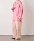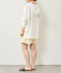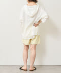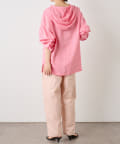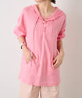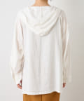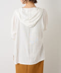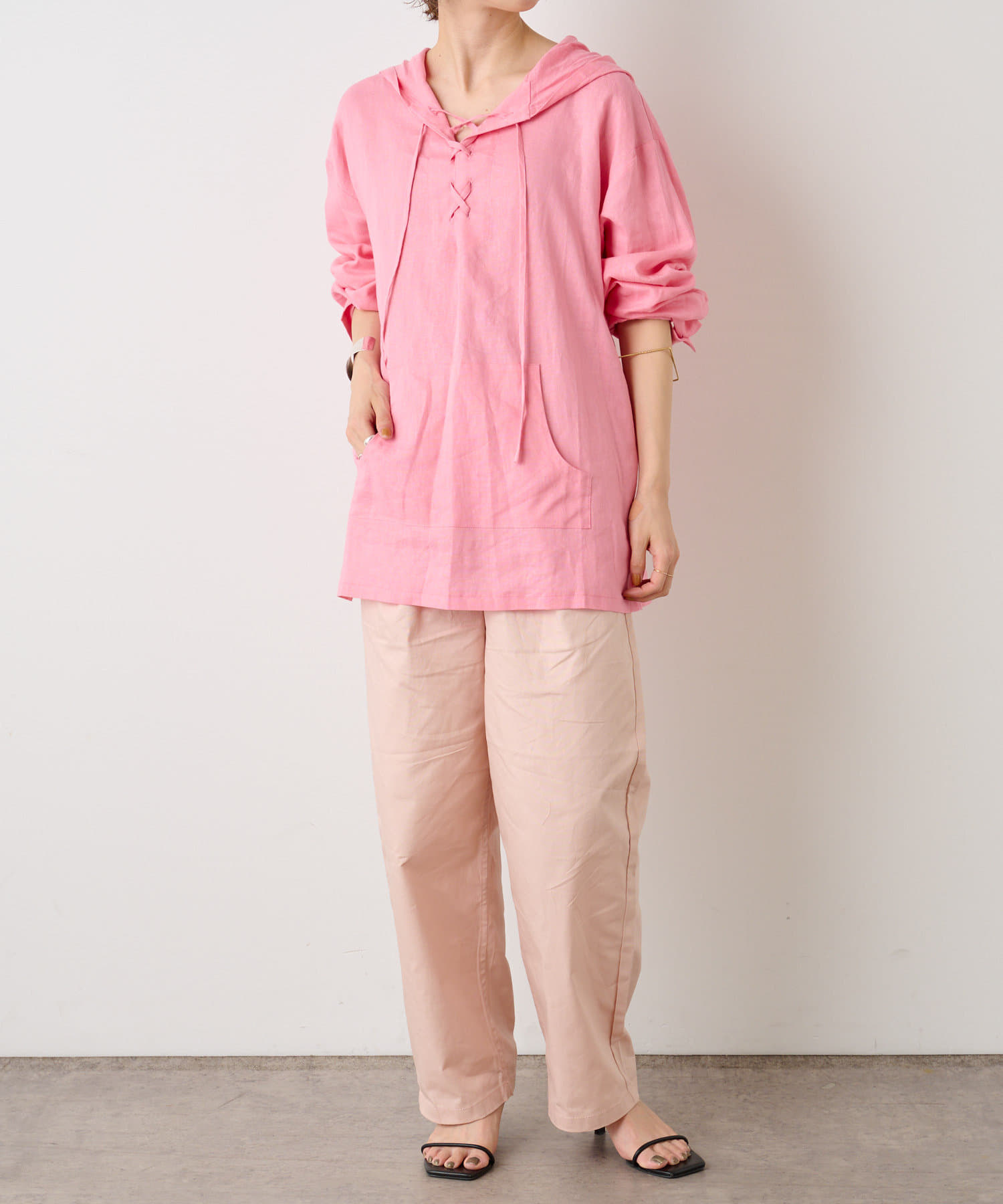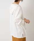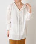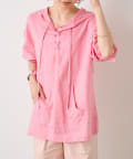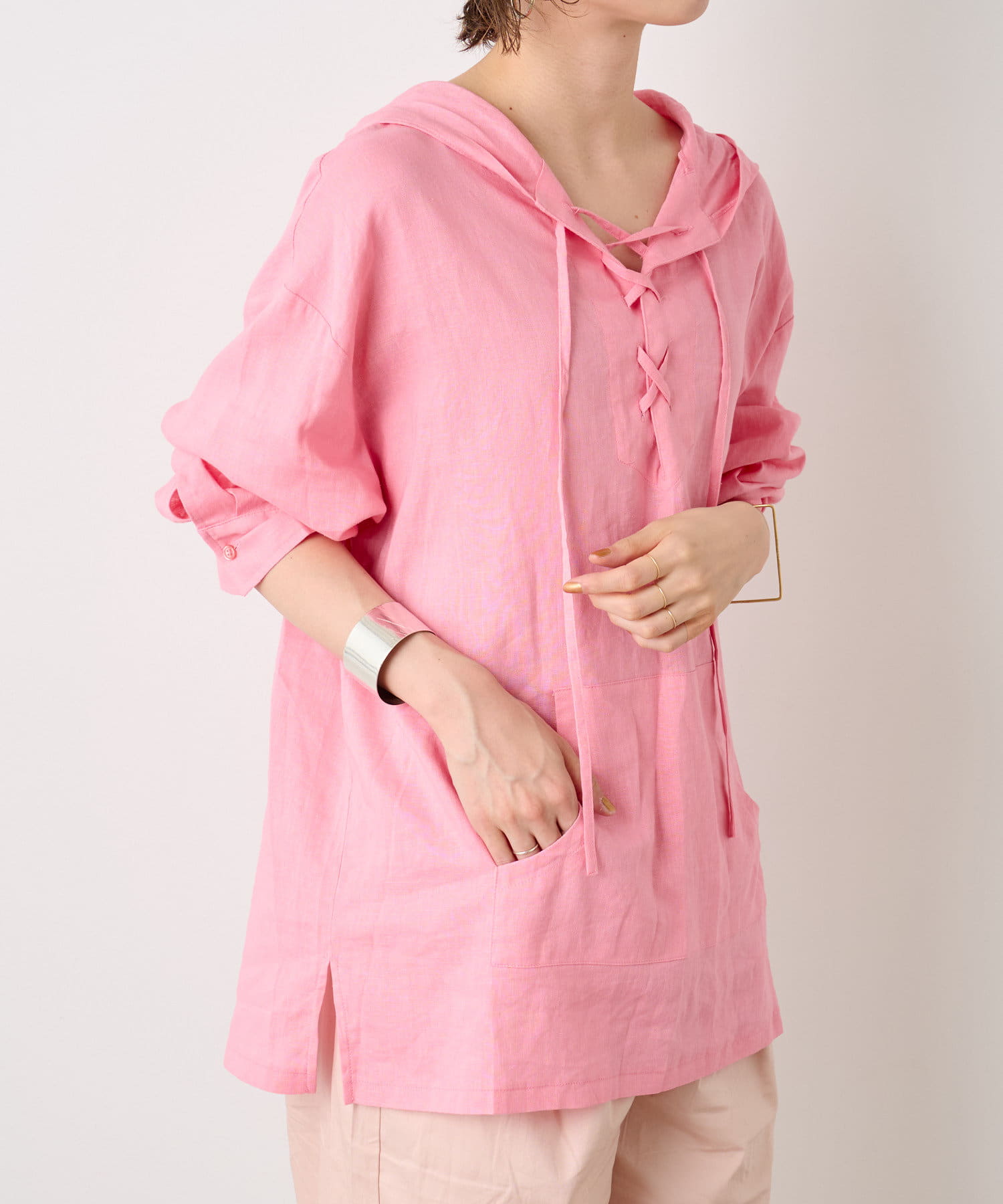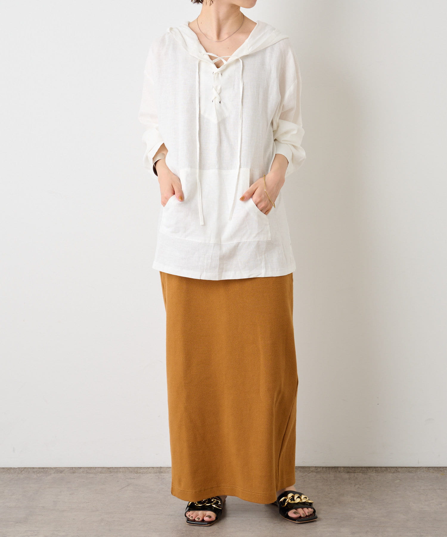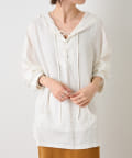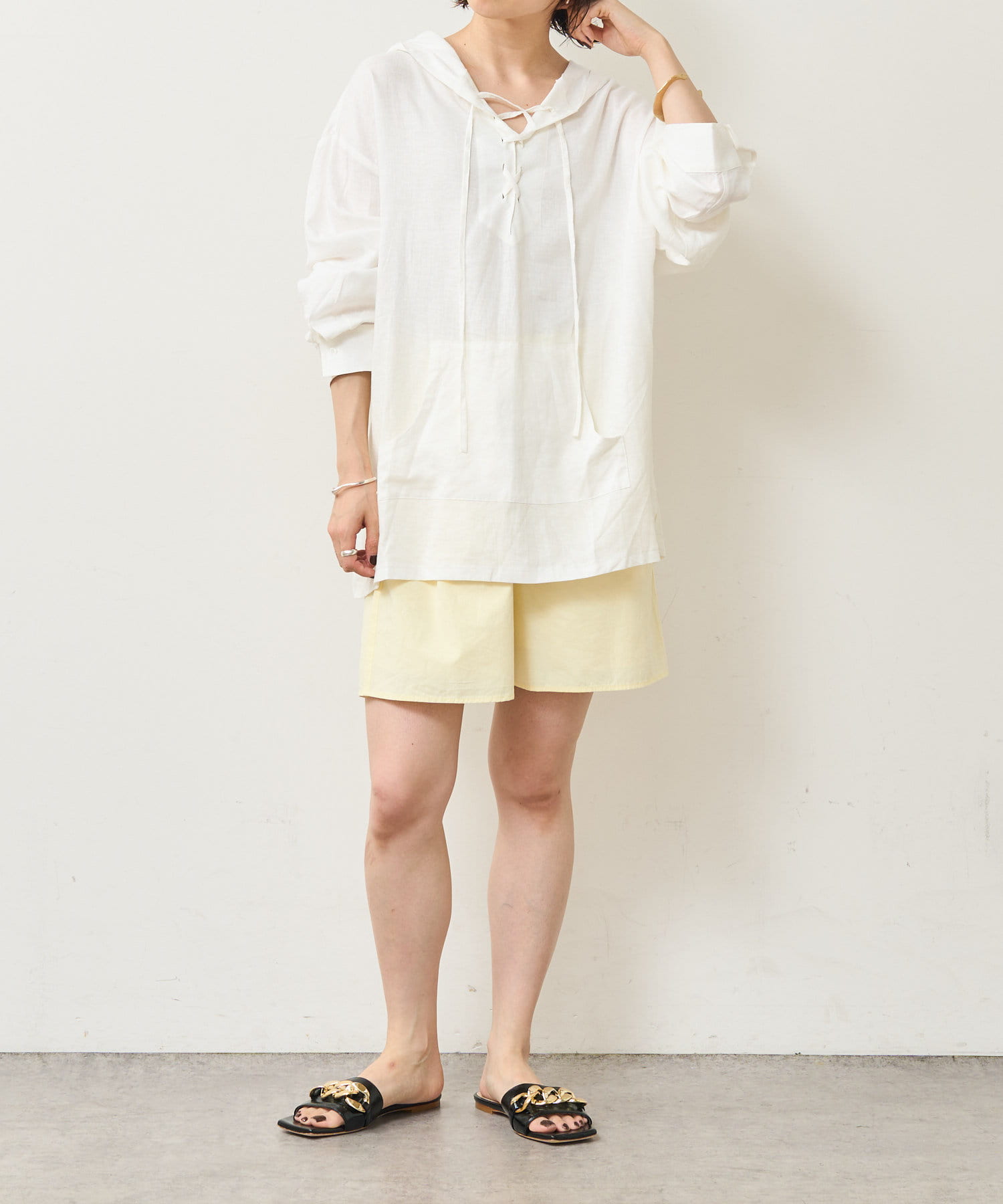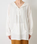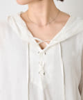 ・首元のレースアップが女性らしく、一枚で様になるフーディーシャツ