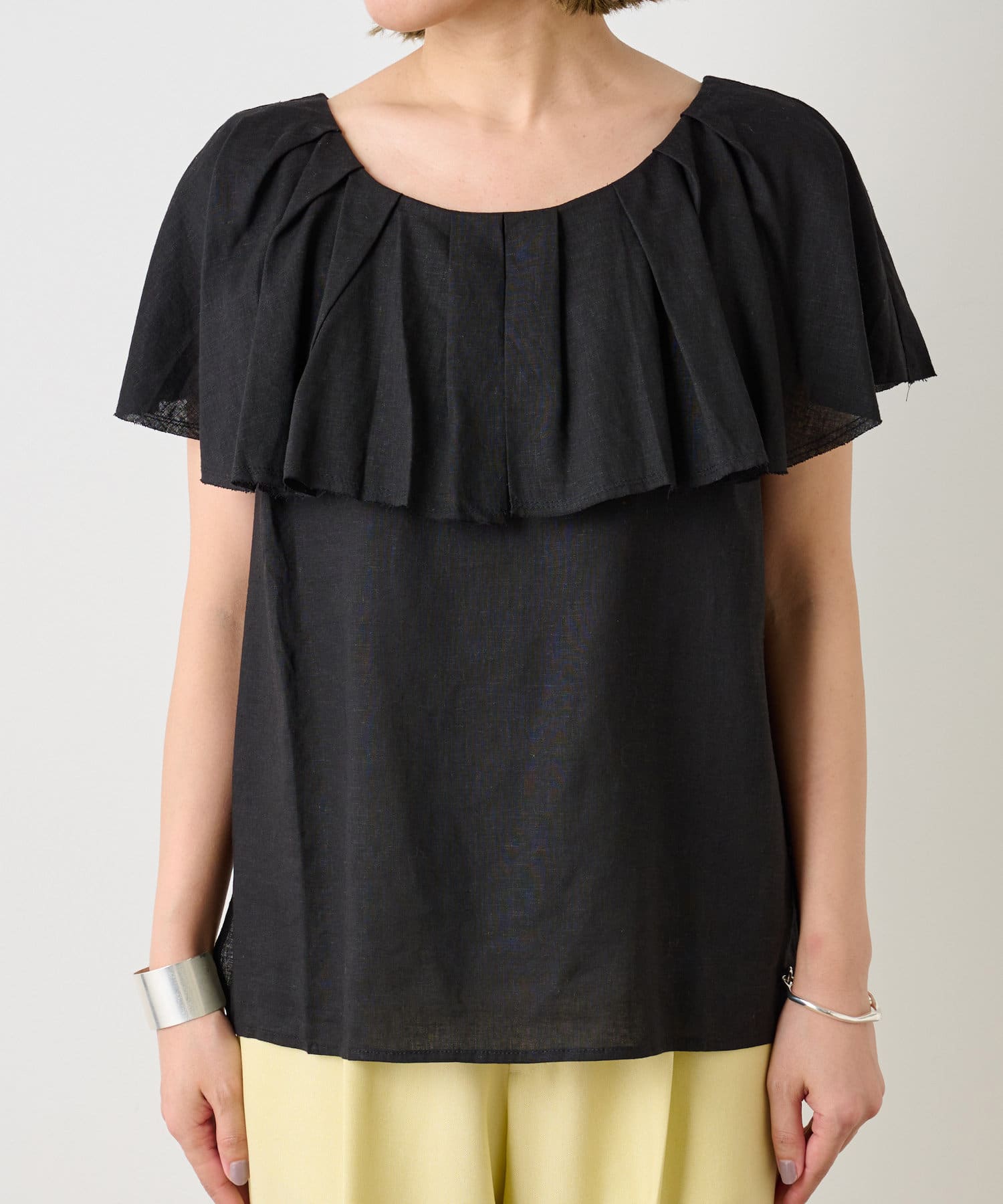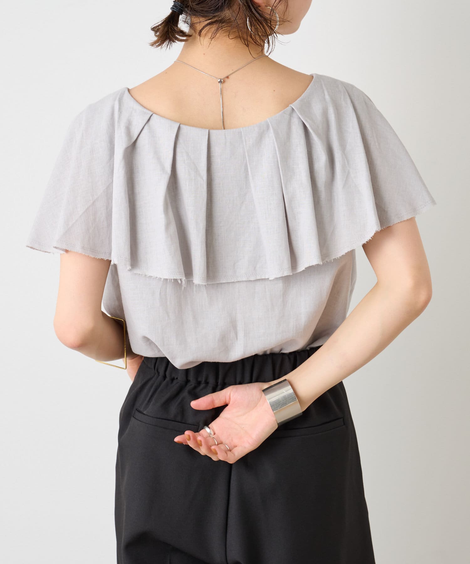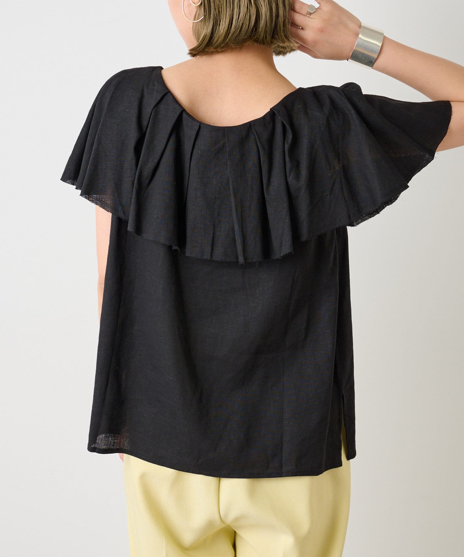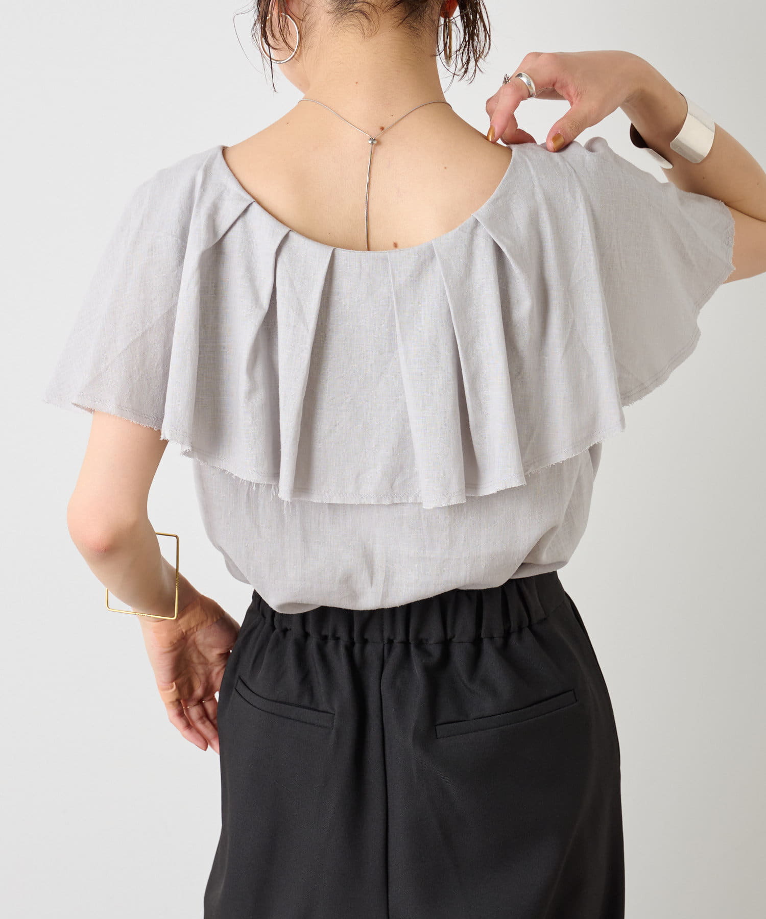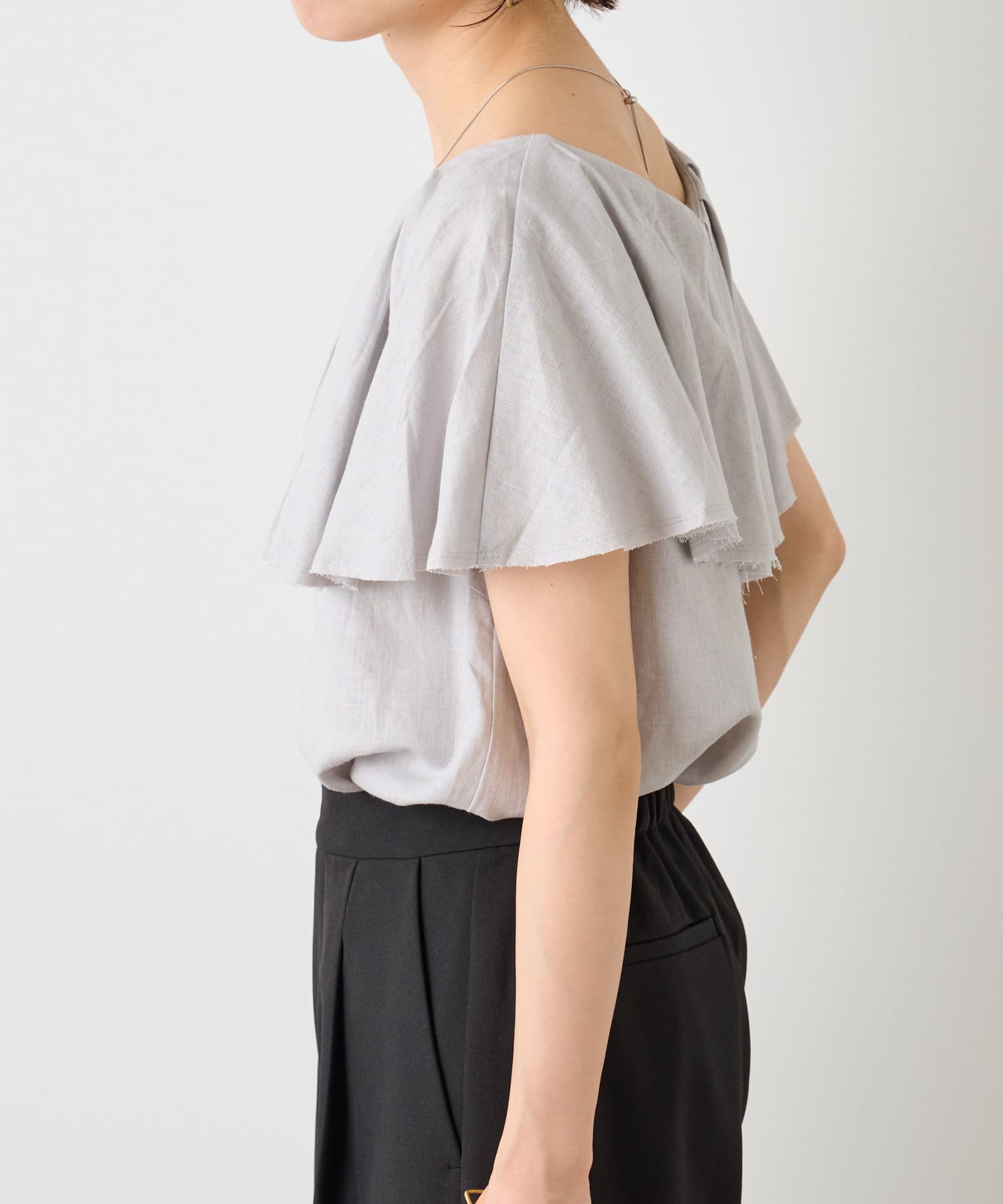 リネンラッフルブラウス