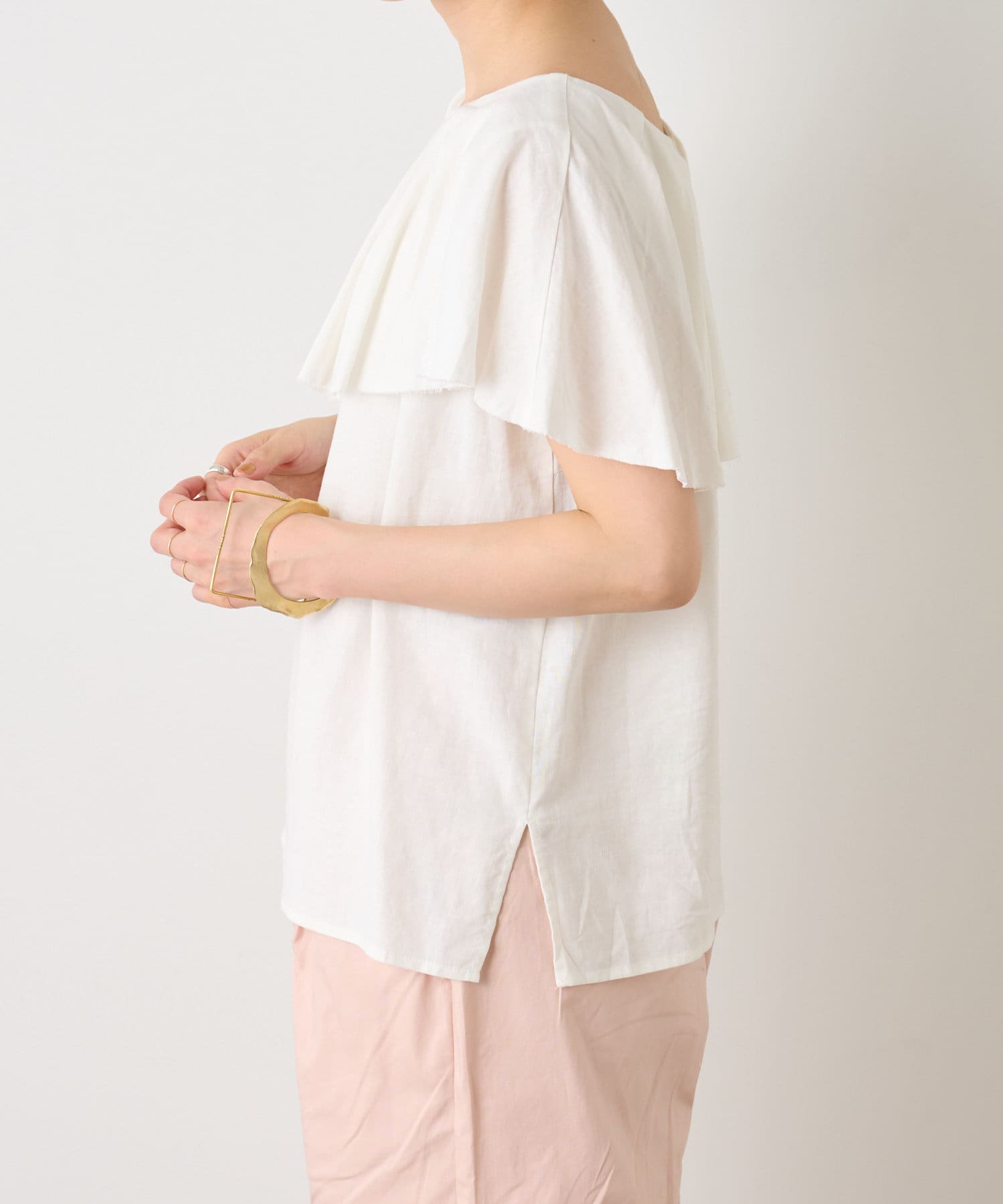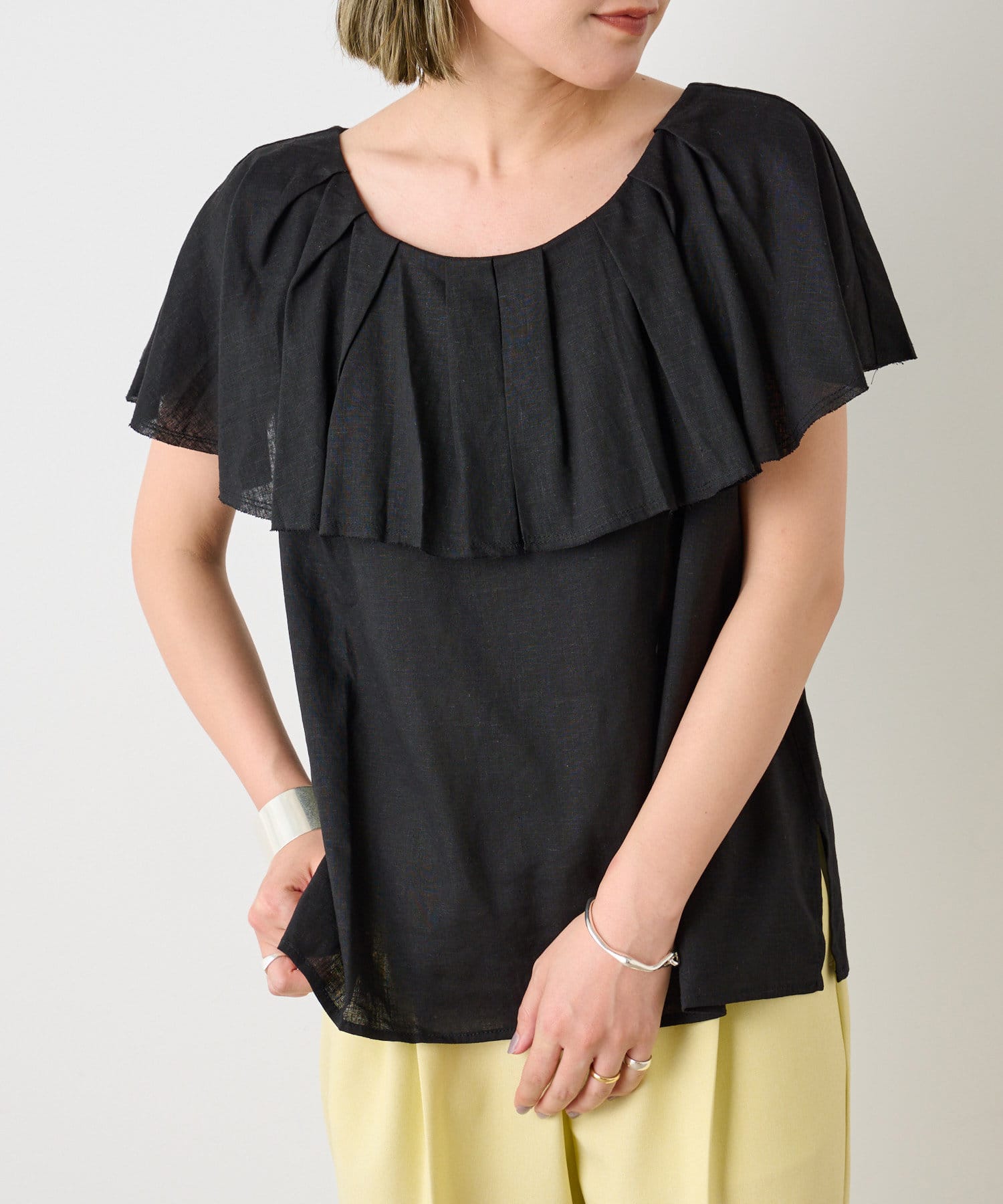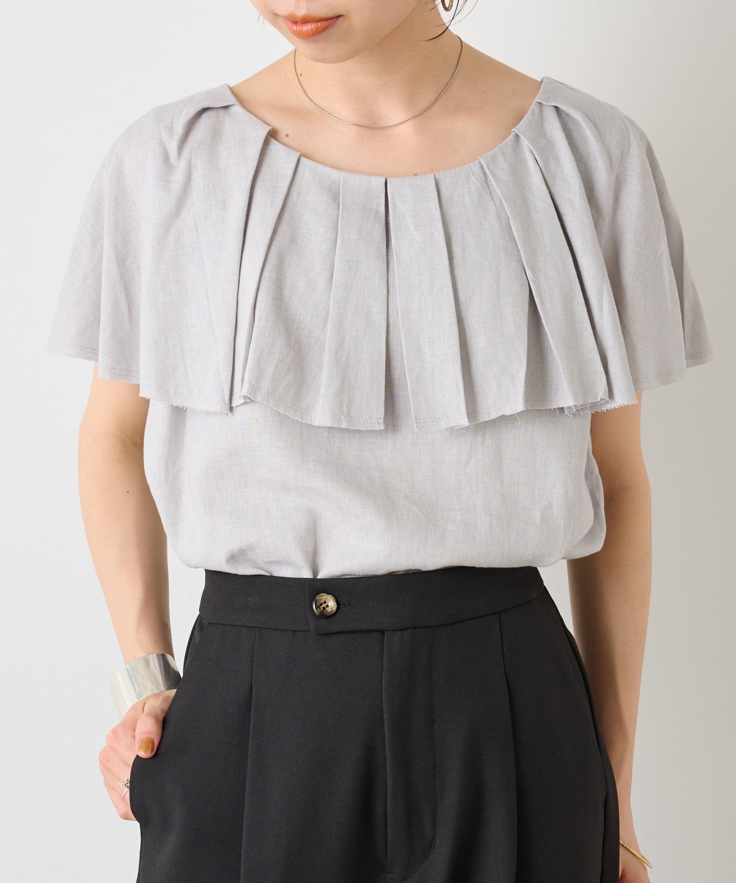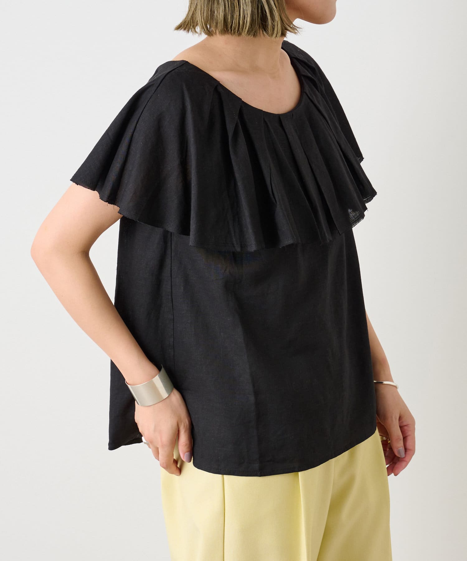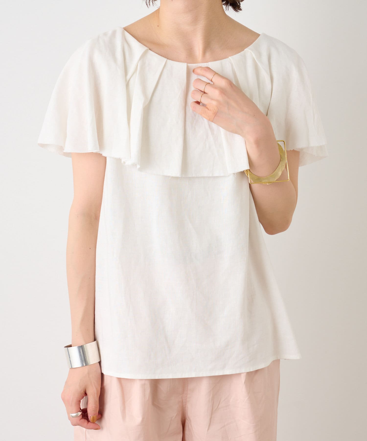 リネンラッフルブラウス