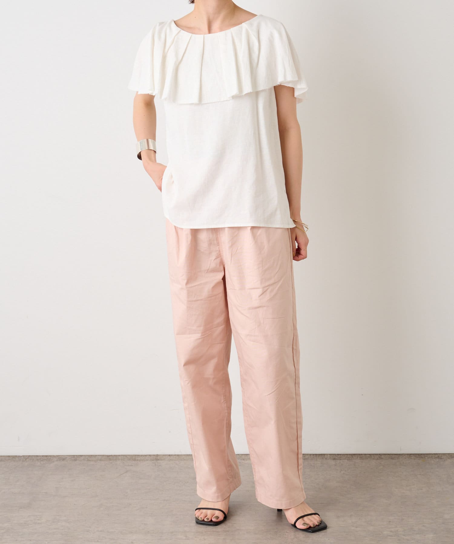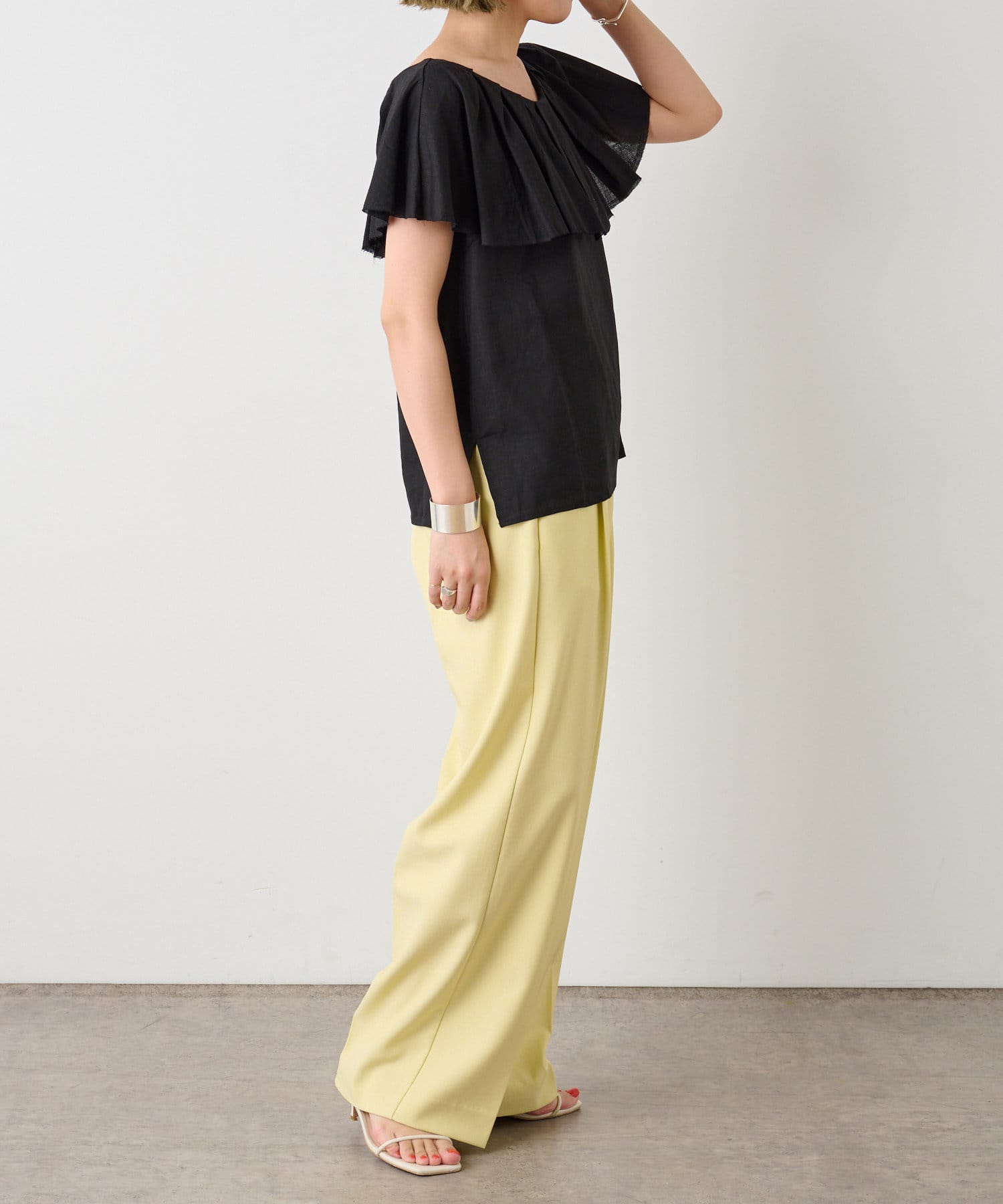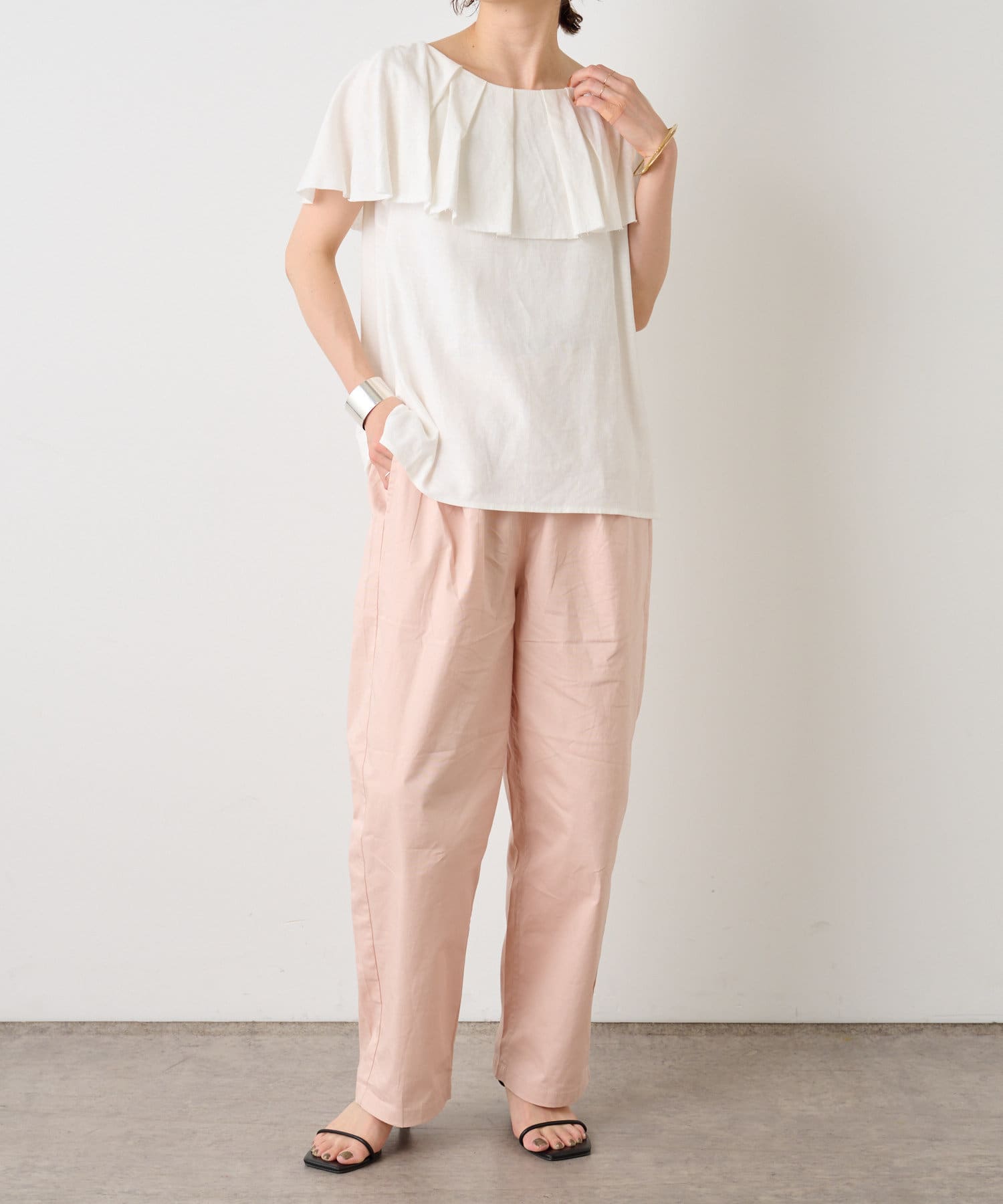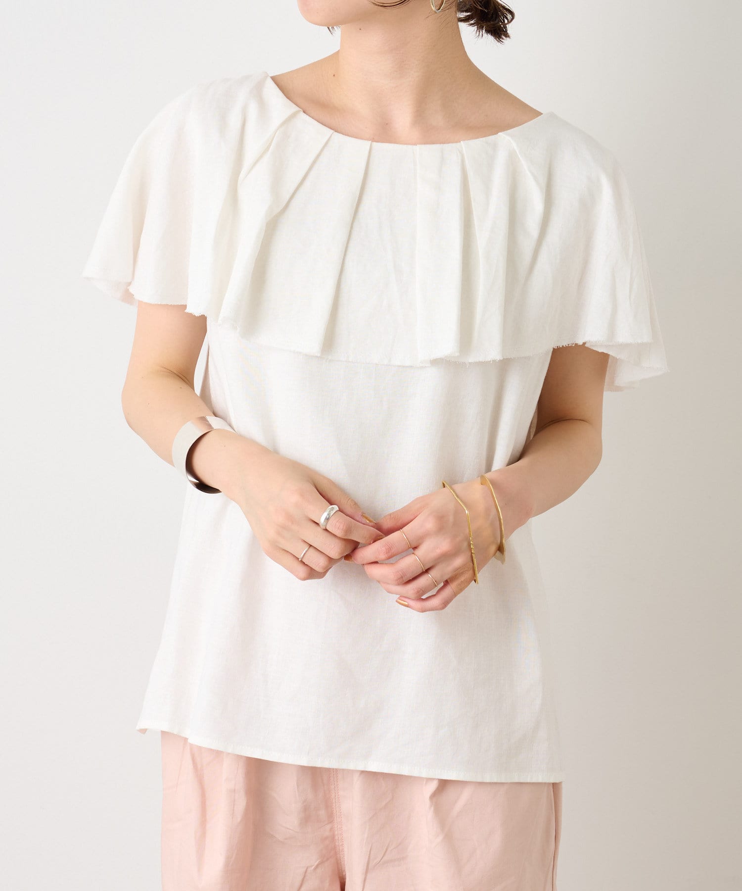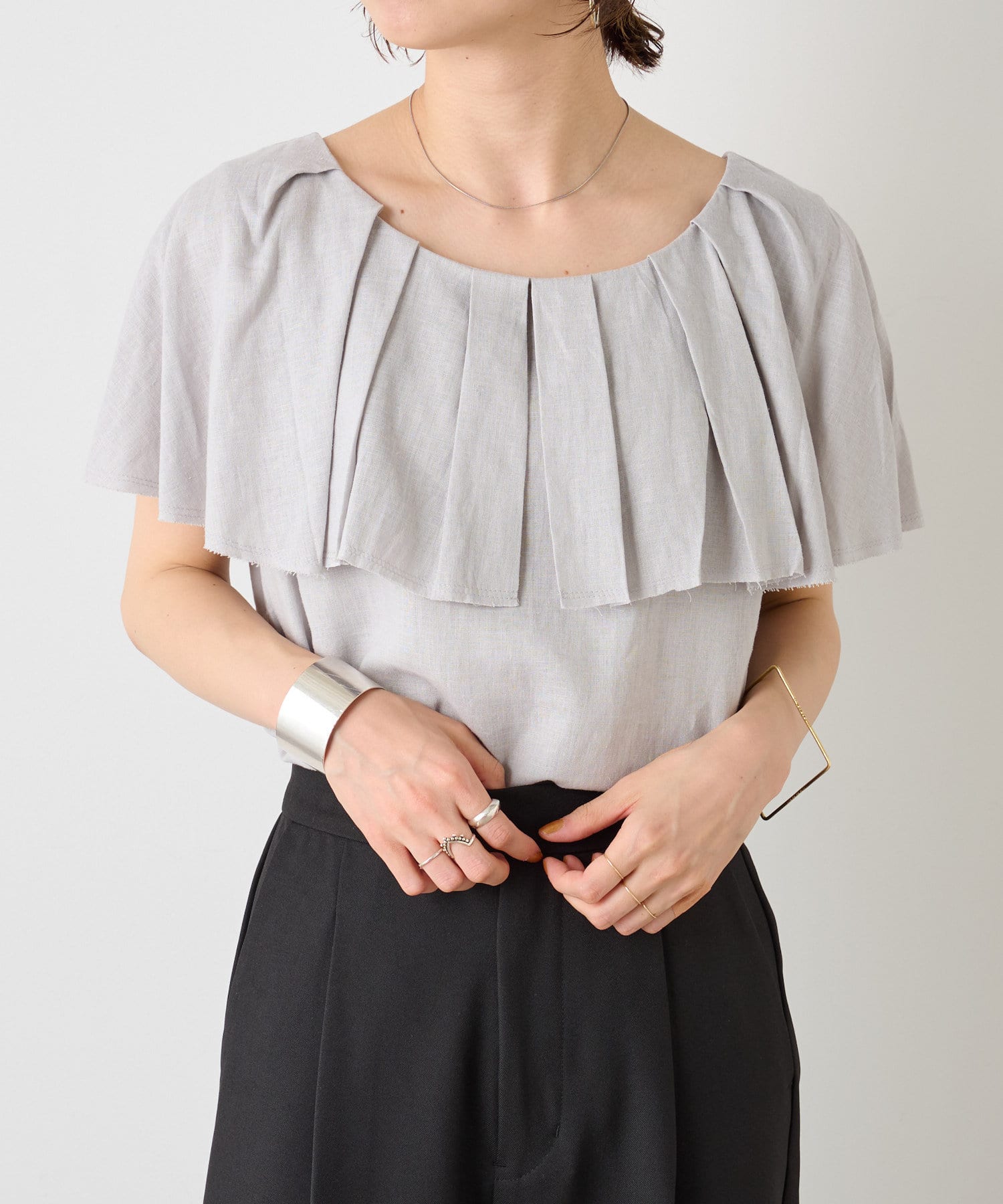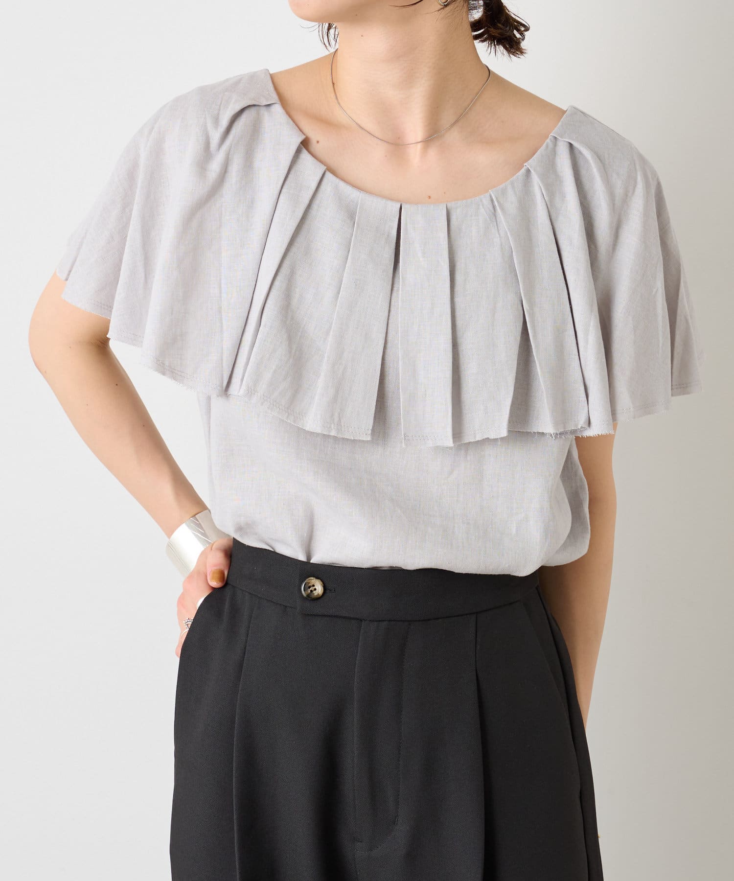 リネンラッフルブラウス
