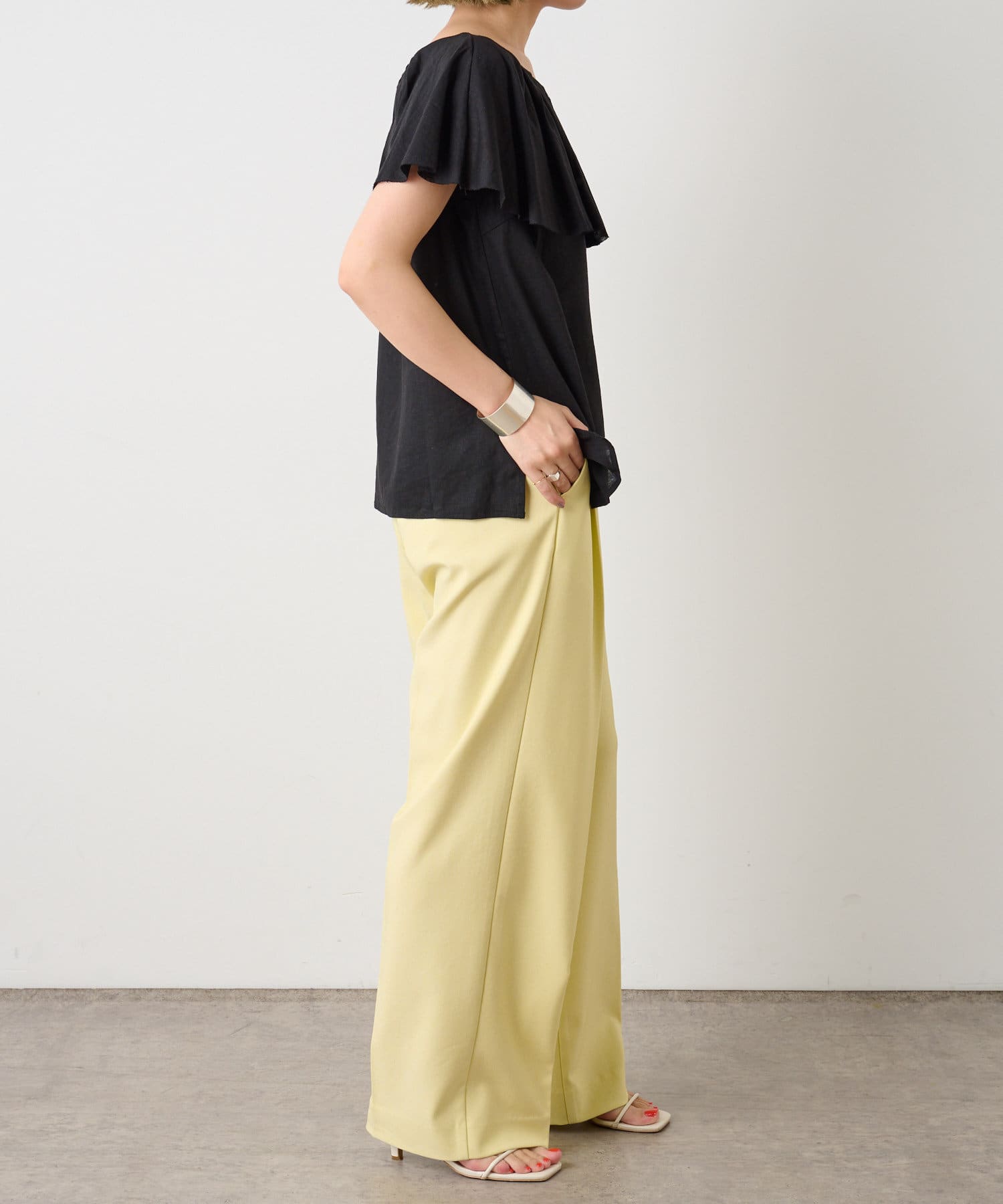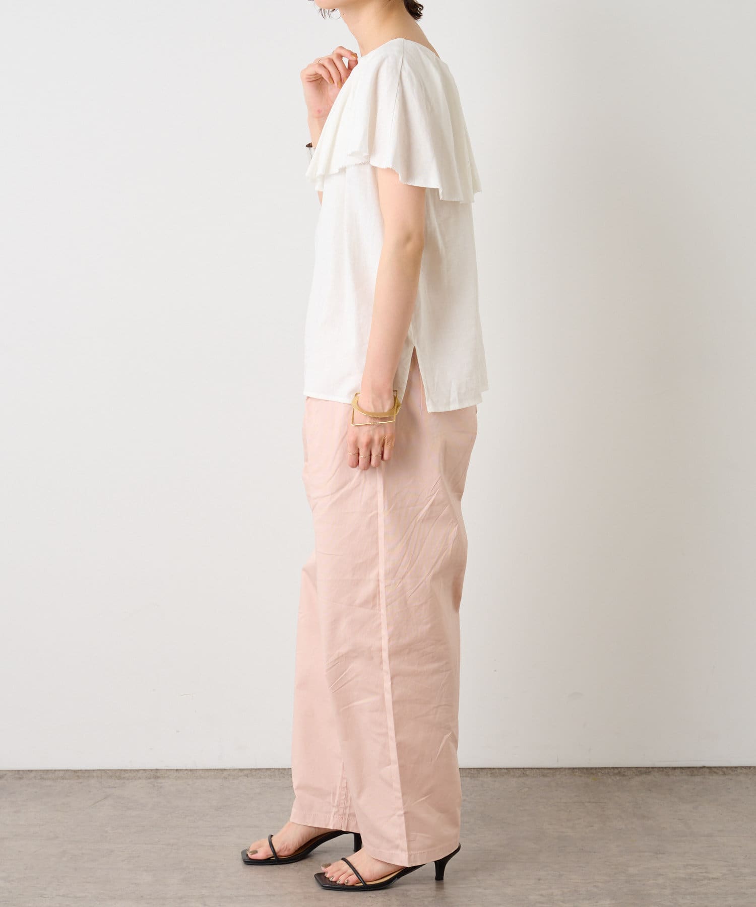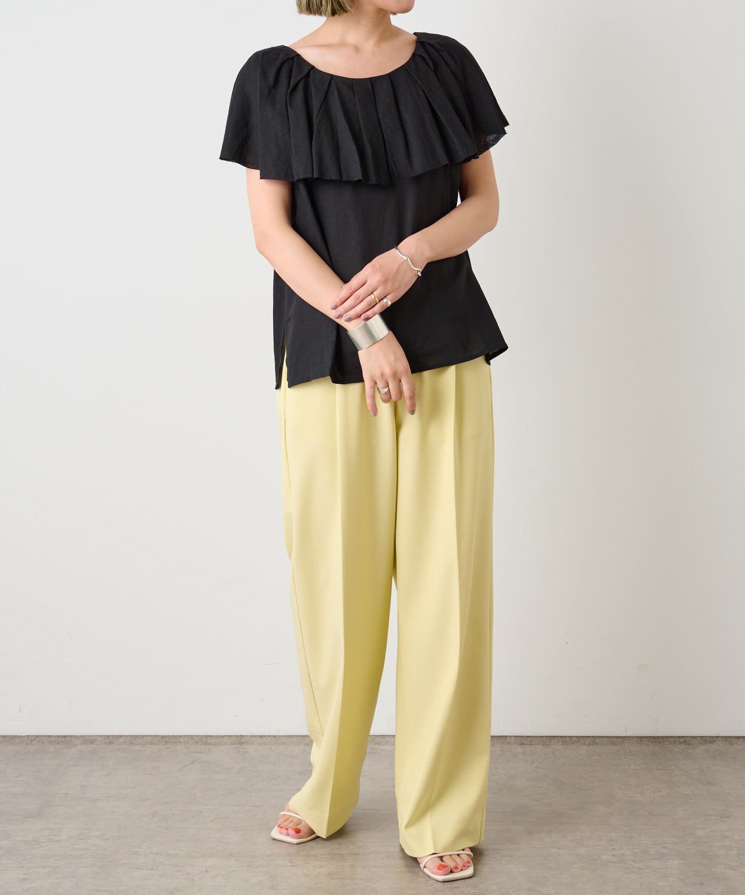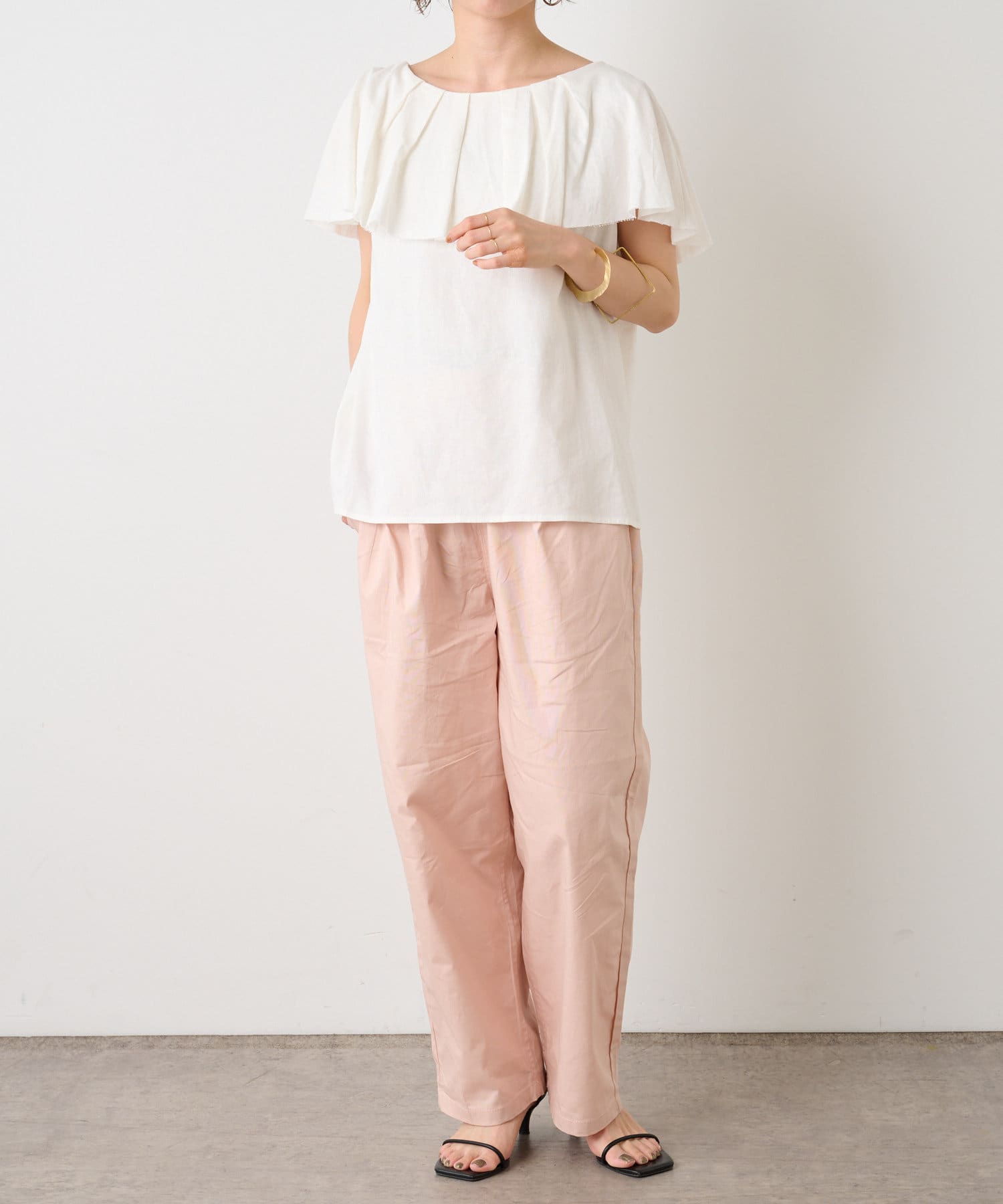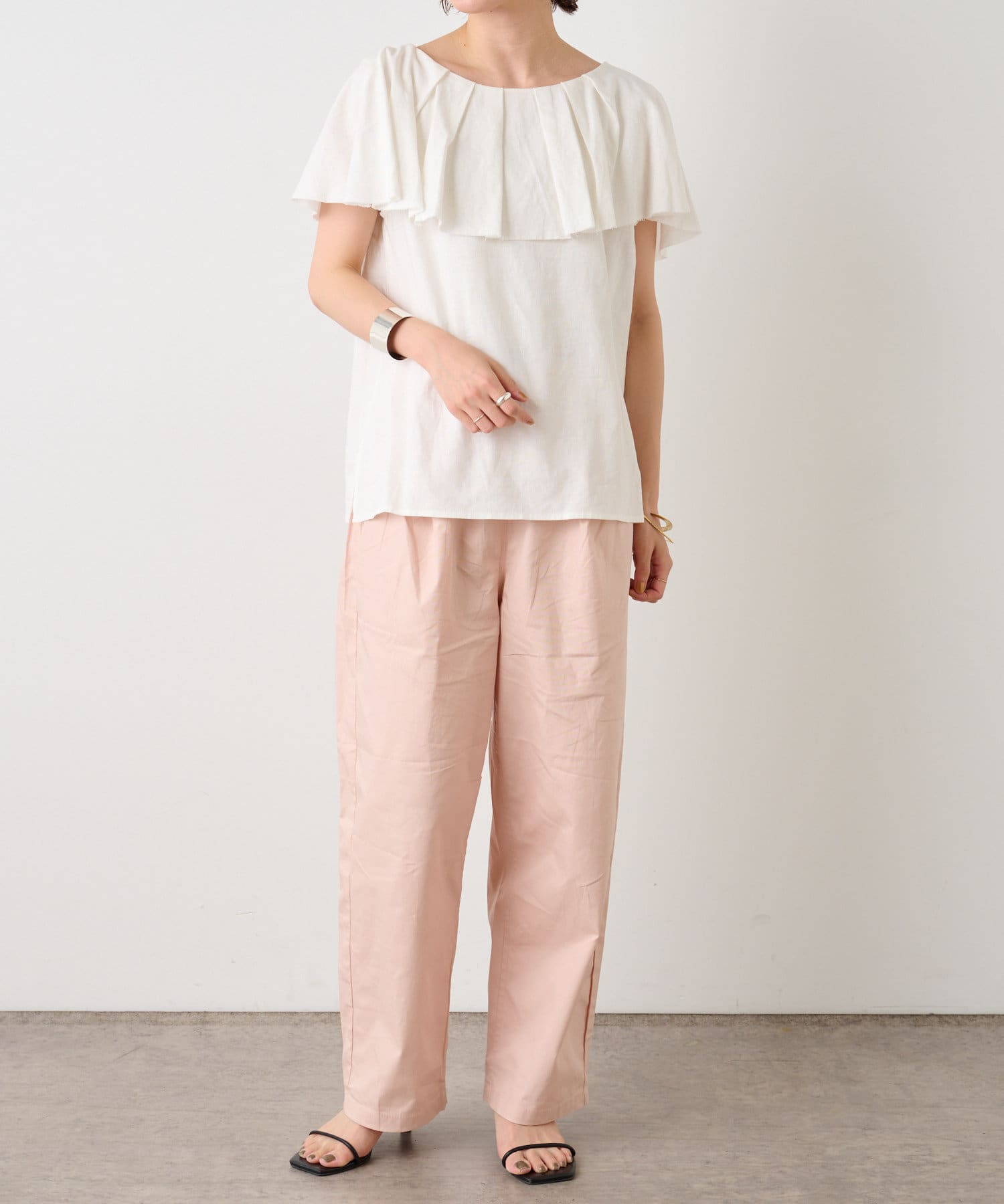 リネンラッフルブラウス