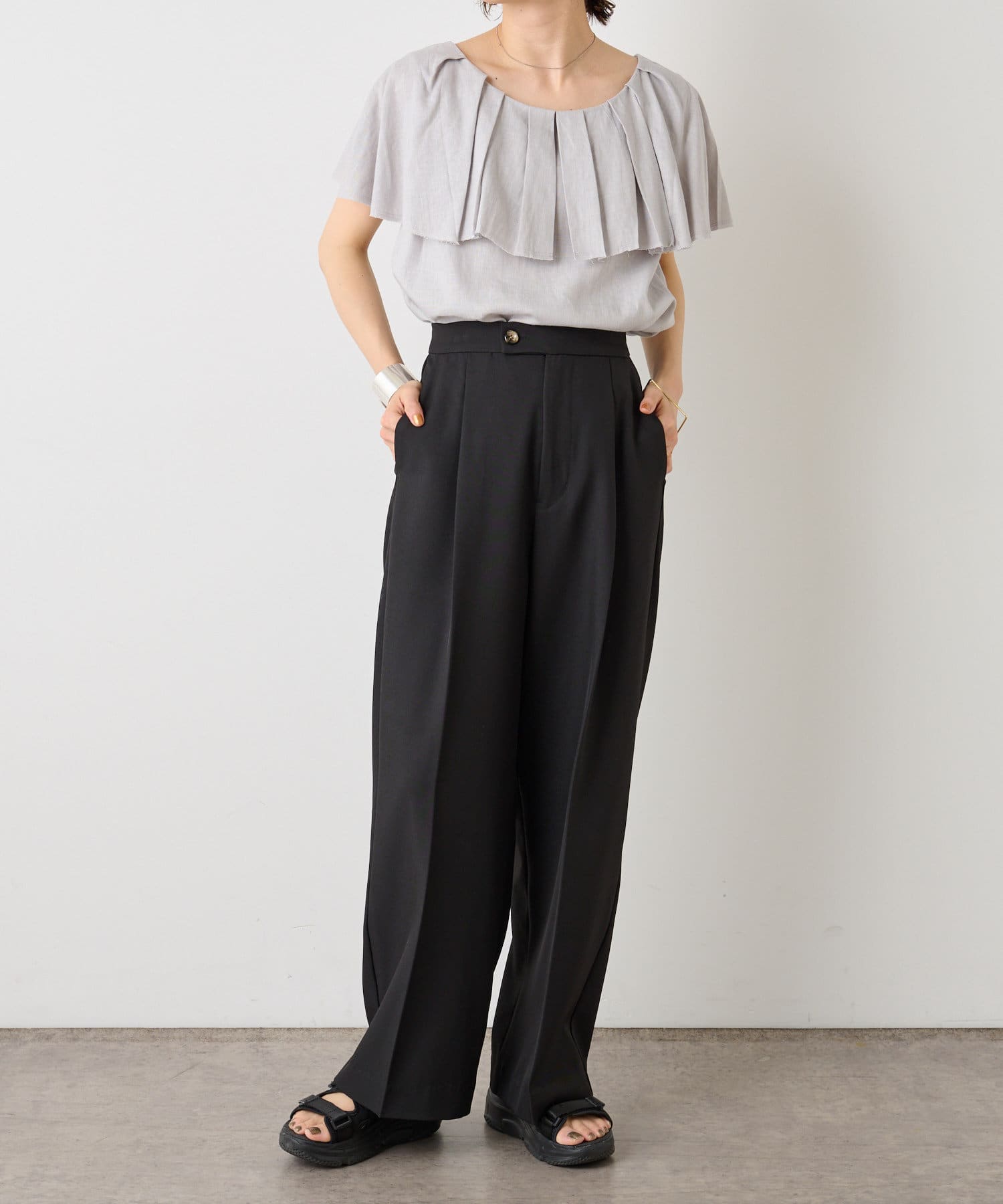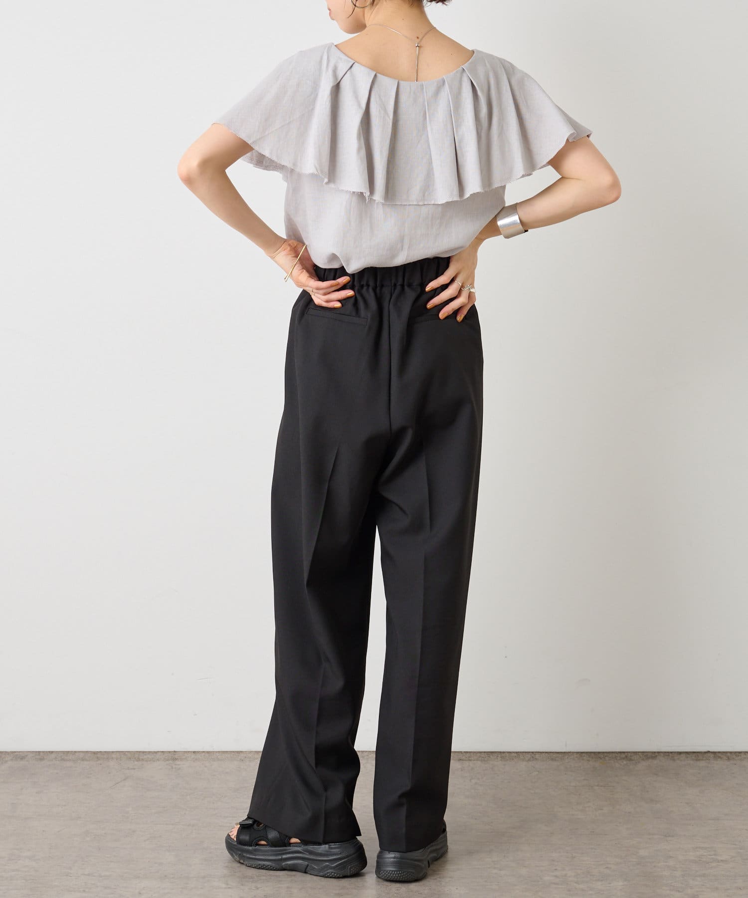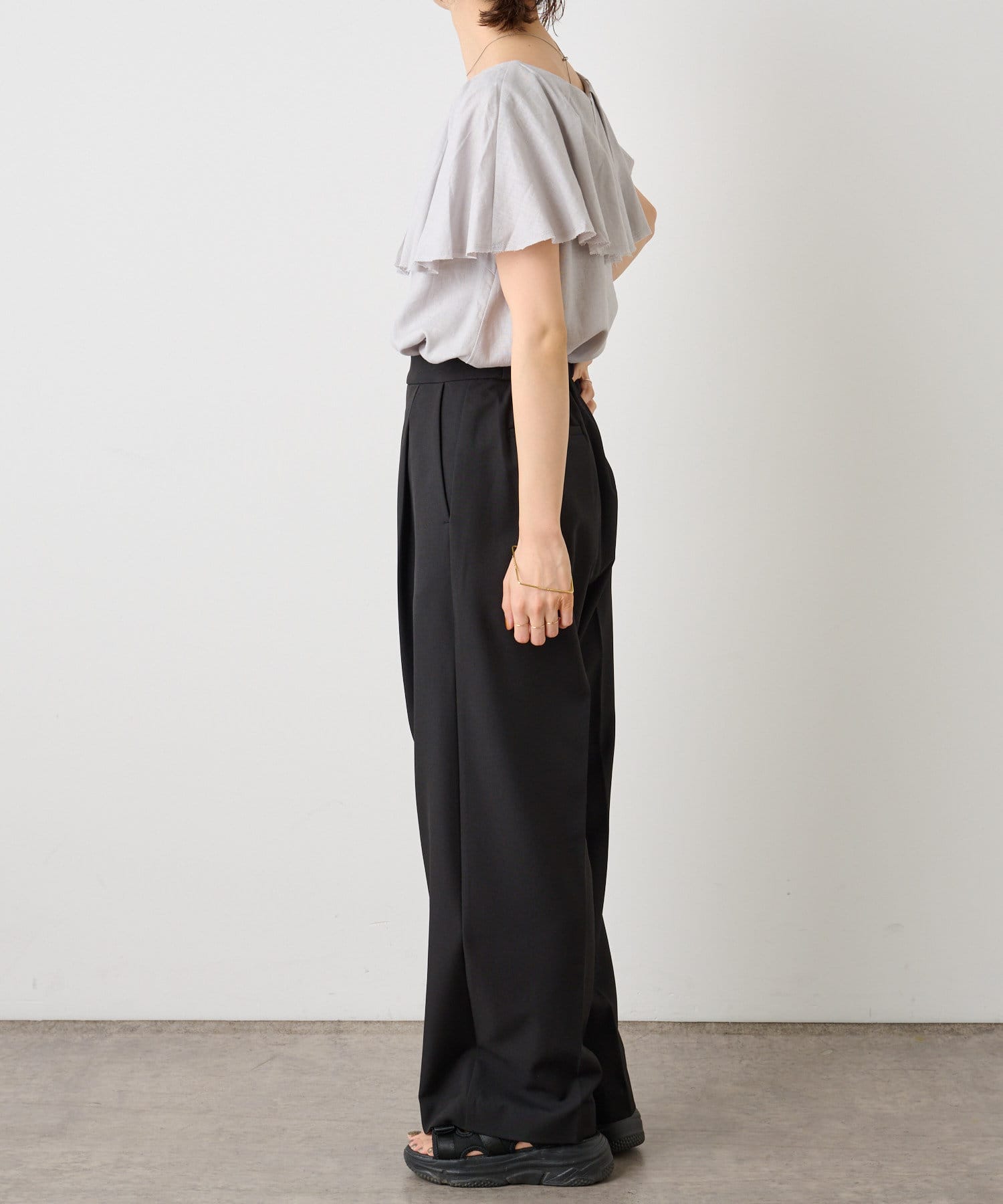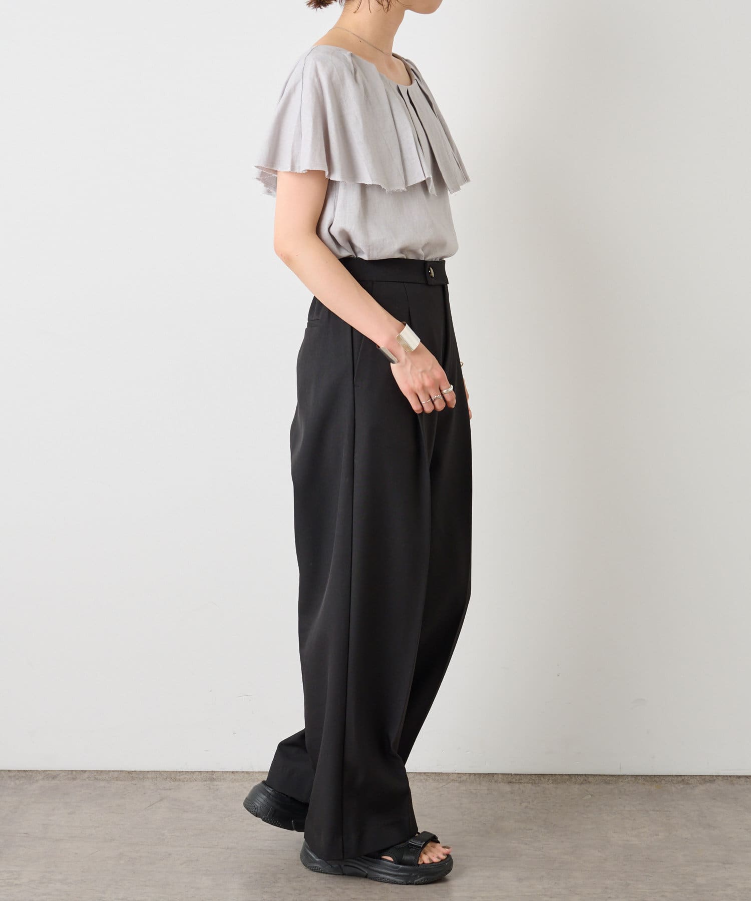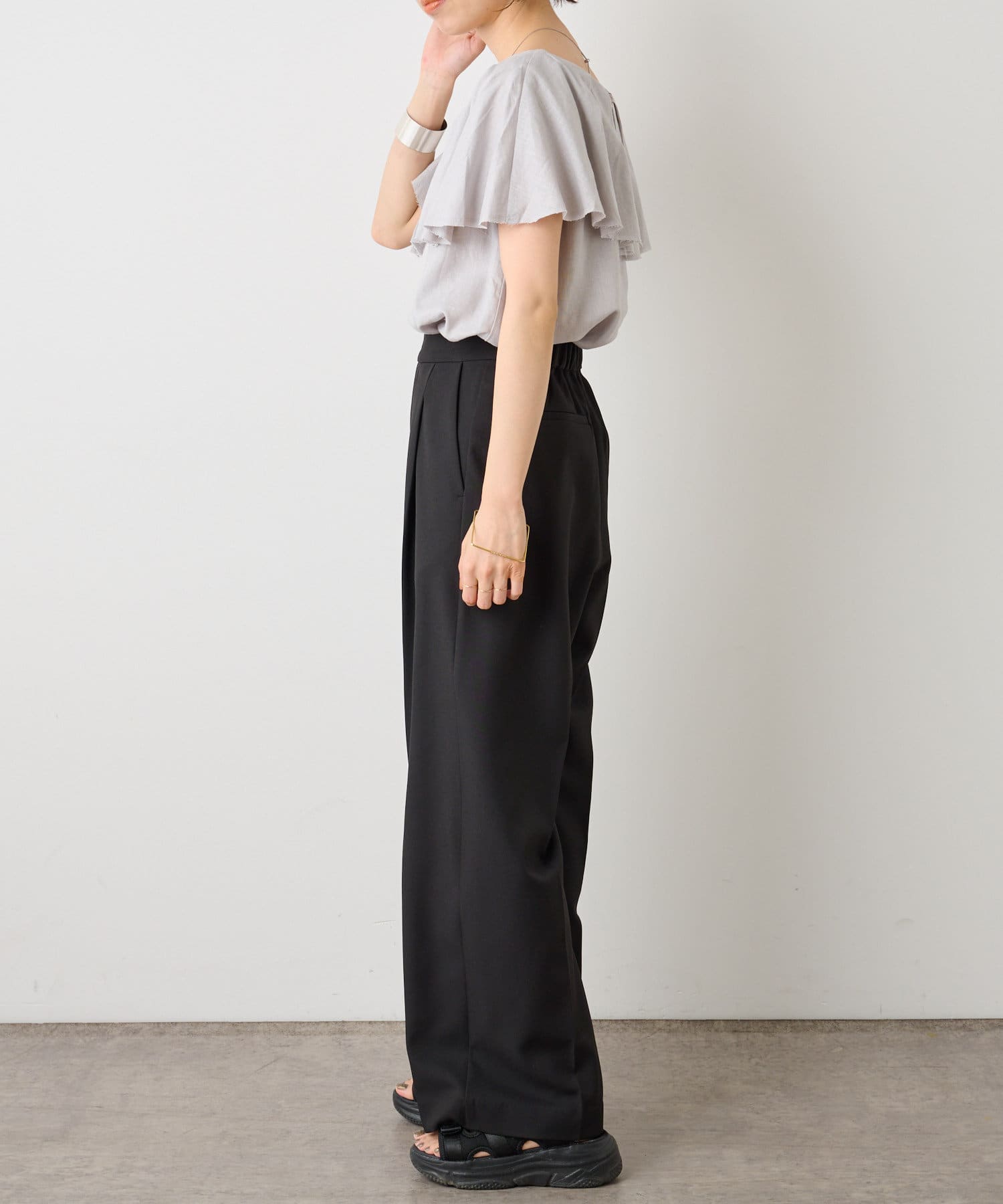 リネンラッフルブラウス