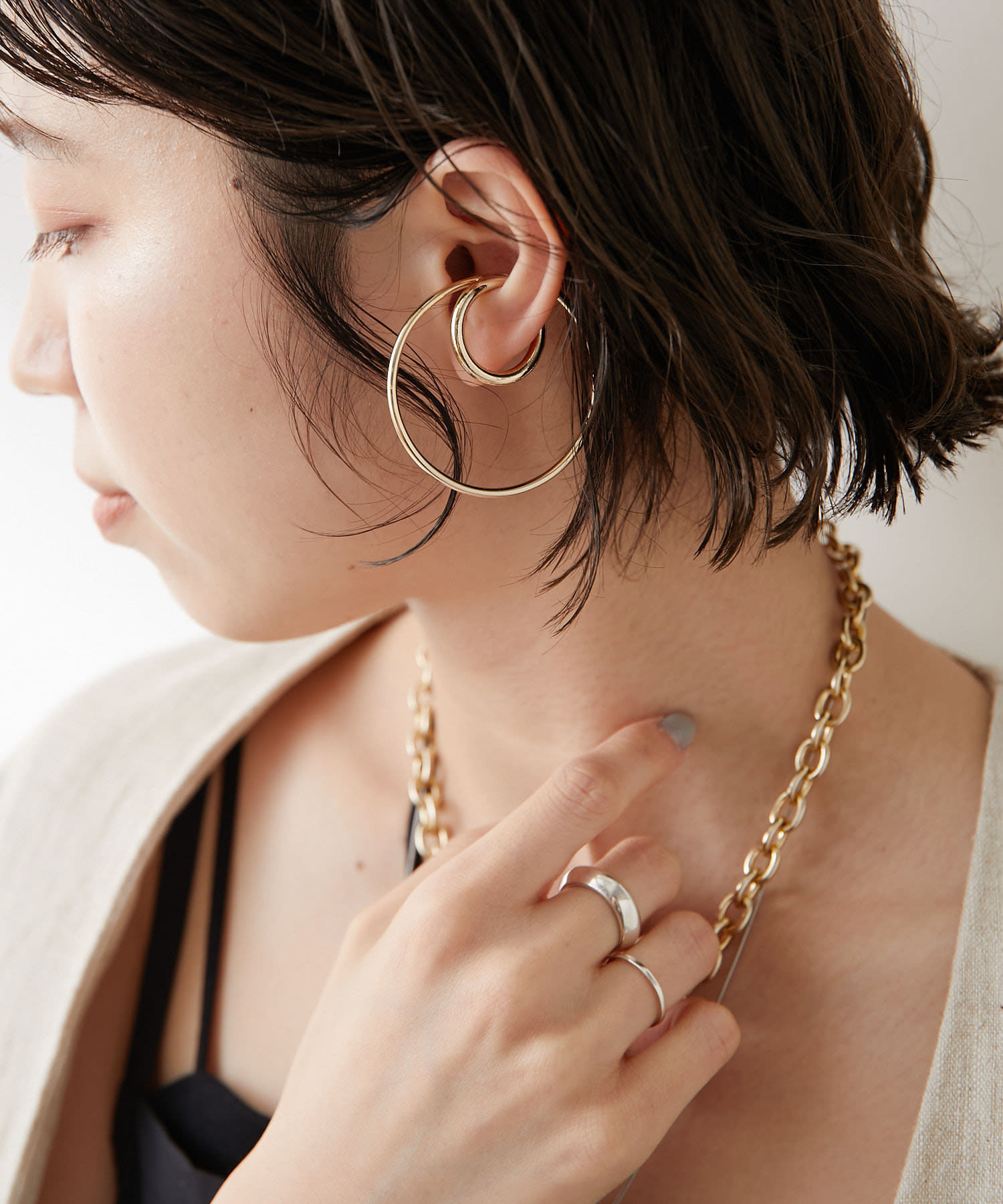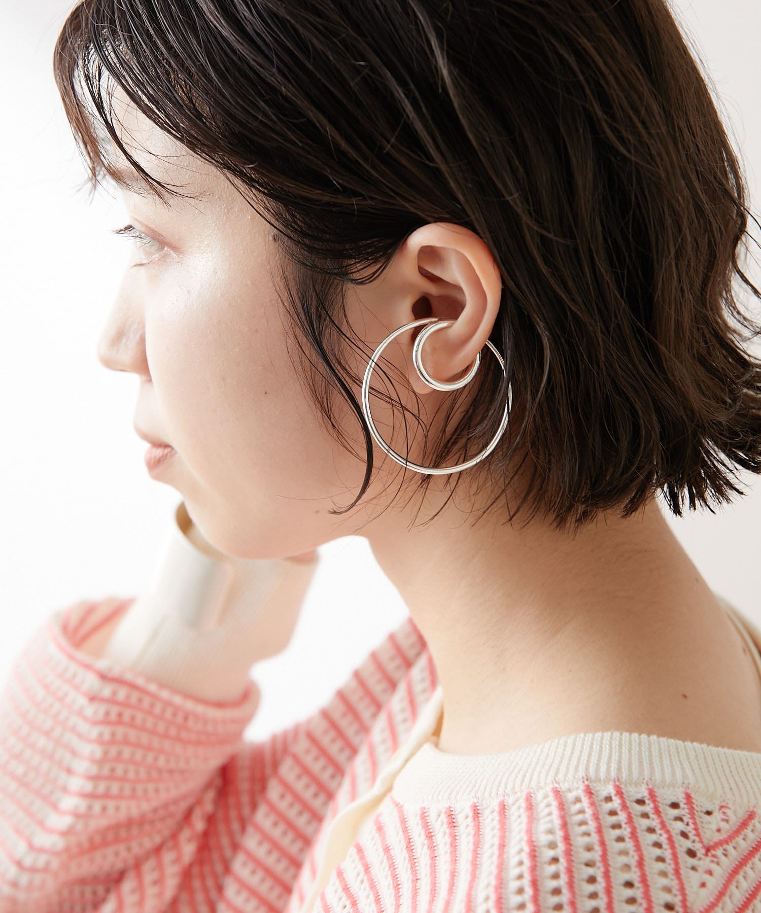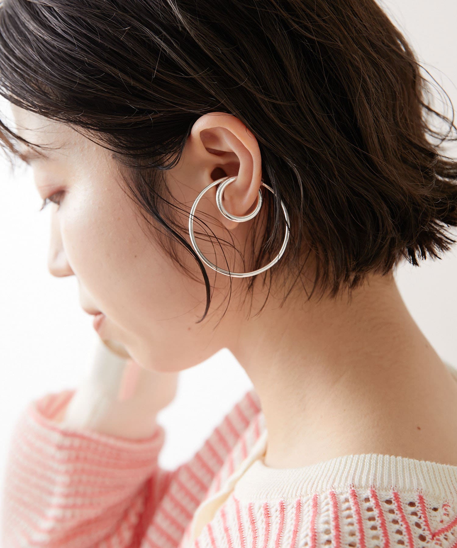 ・大ぶりの2連デザインで、華奢なラインながらも存在感のあるイヤカフ。