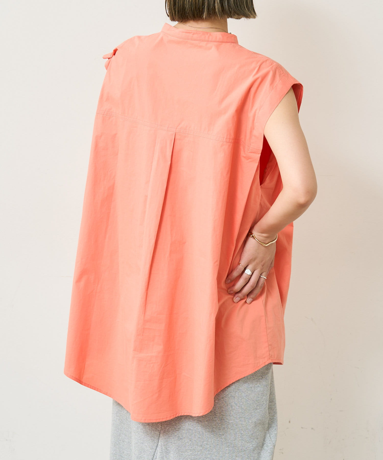 袖が取り外し可能でアレンジ次第で着回し出来る、2WAYショルダーシャツ