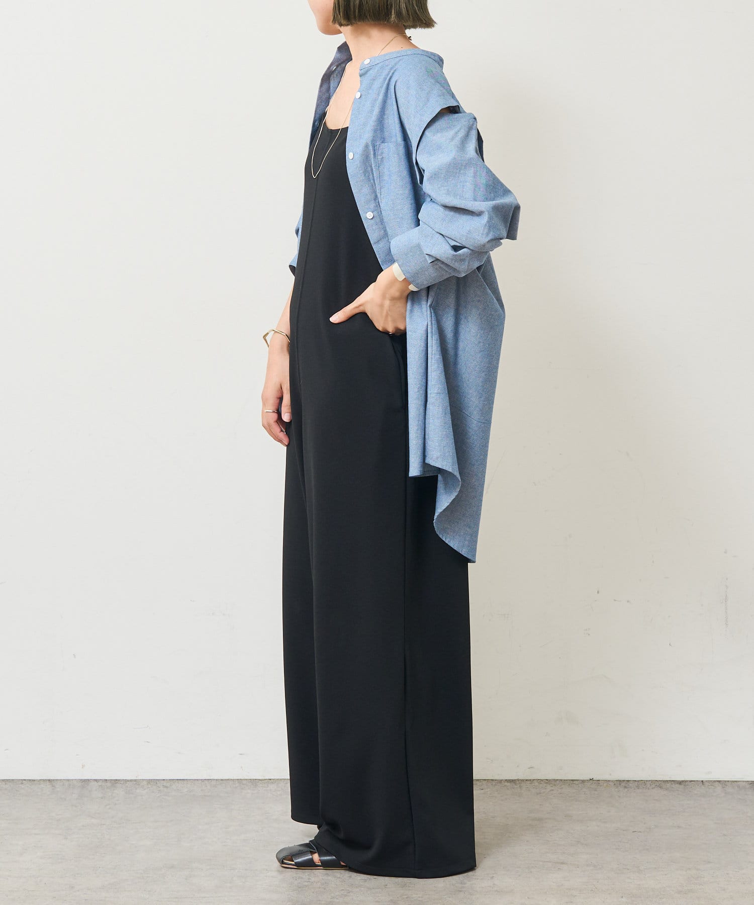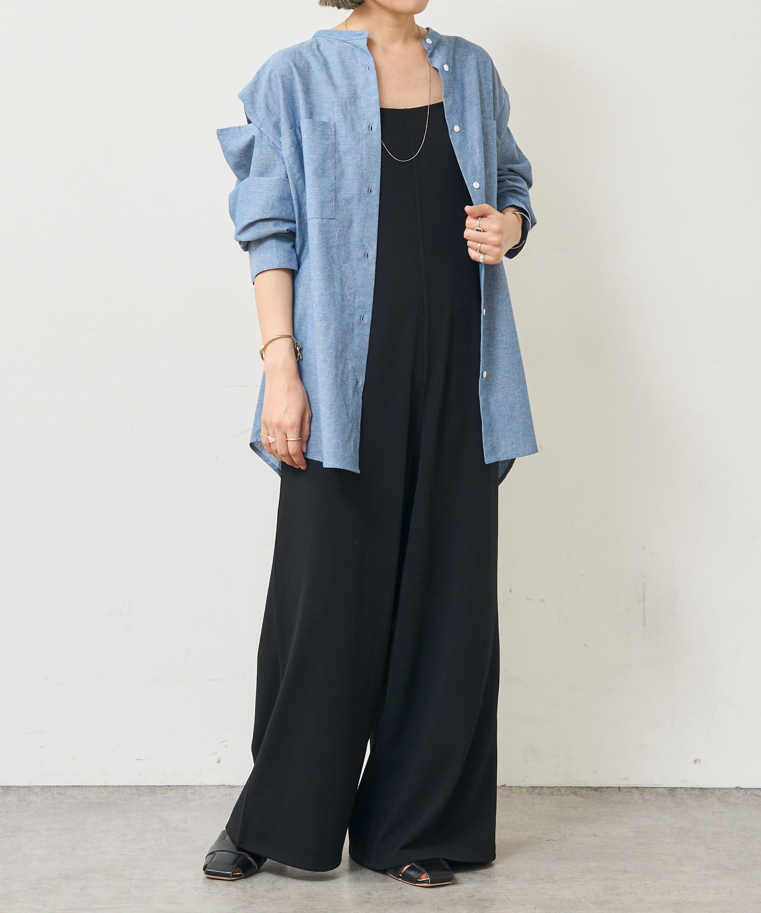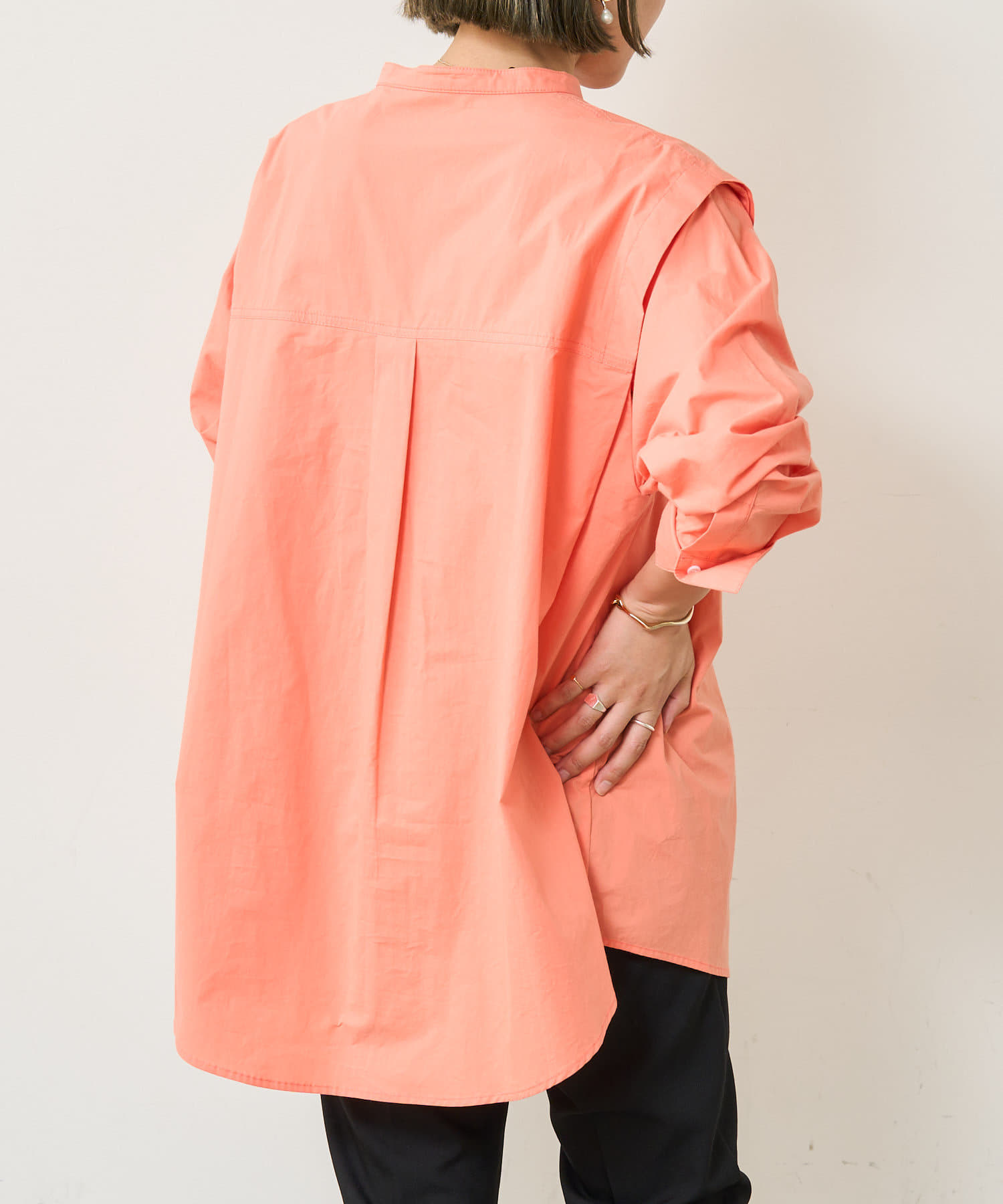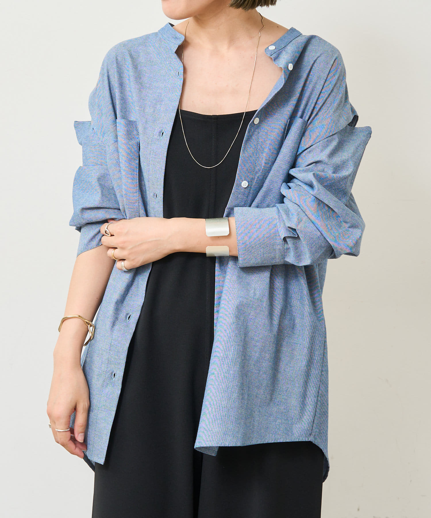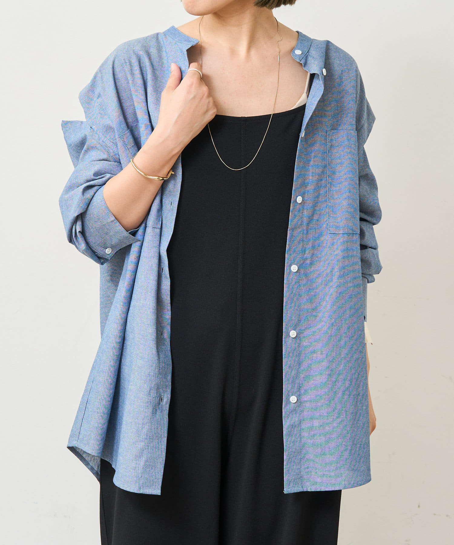 ・1年通して着まわせる程よい厚みのある素材です。一枚で着たり、羽織として着たり、レイヤードとしても幅広くお洒落に着こなせる万能アイテム。