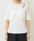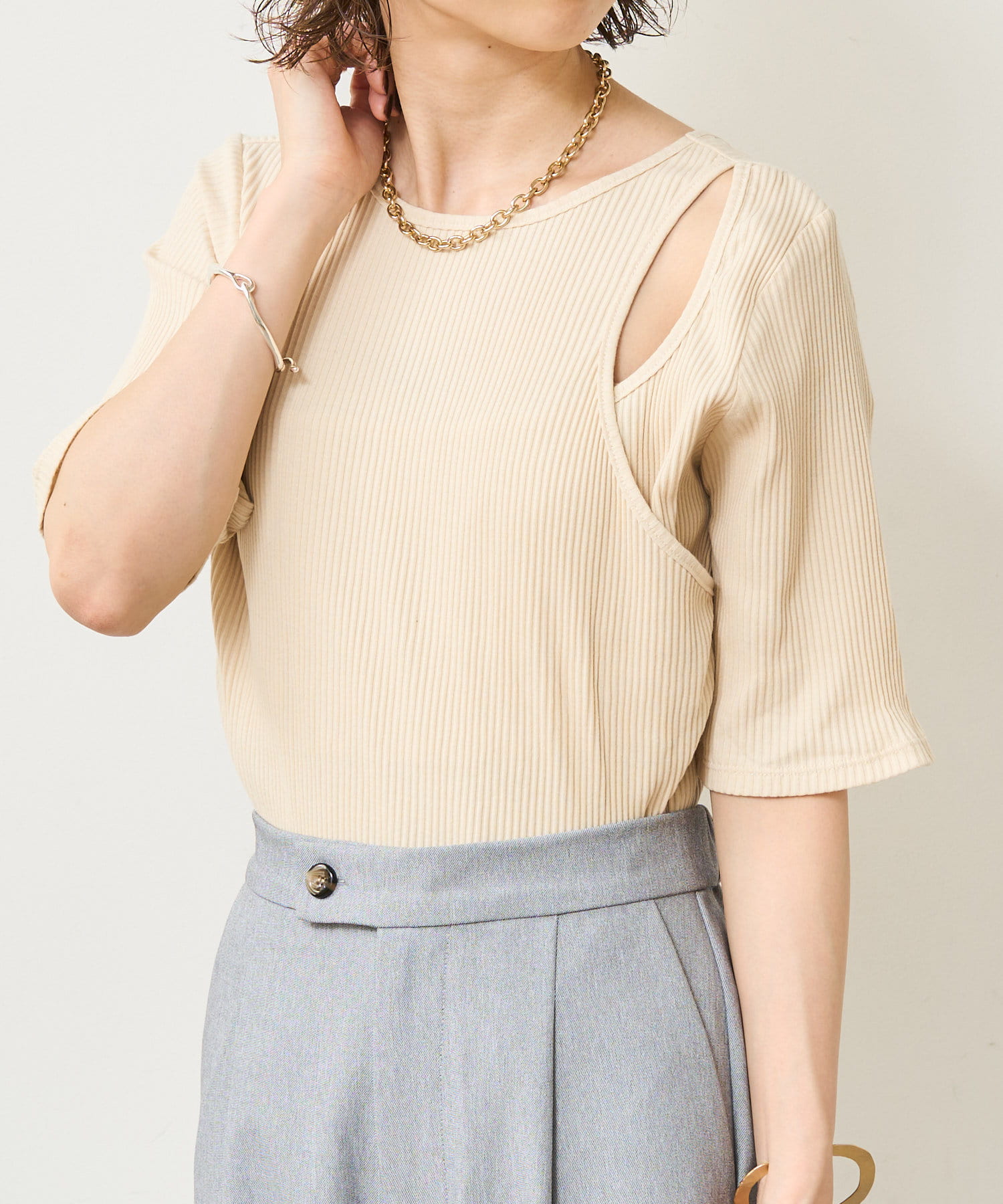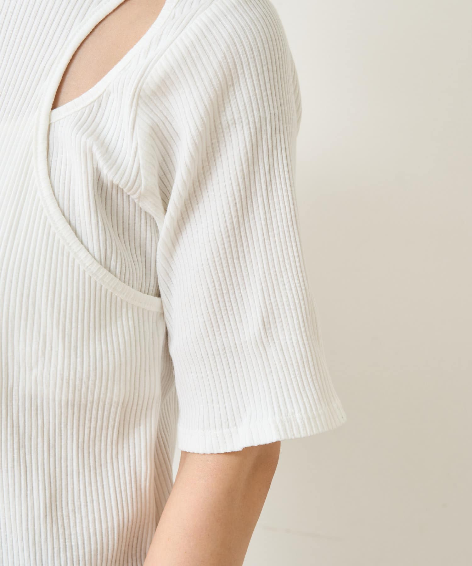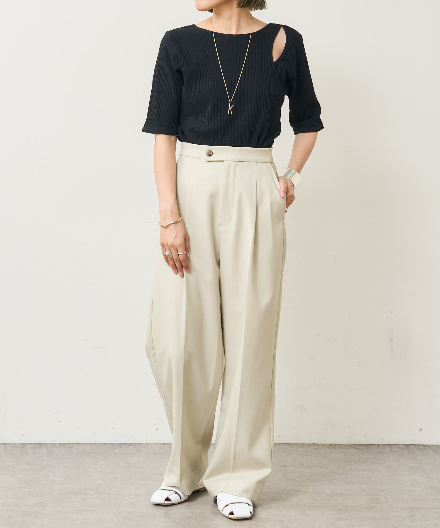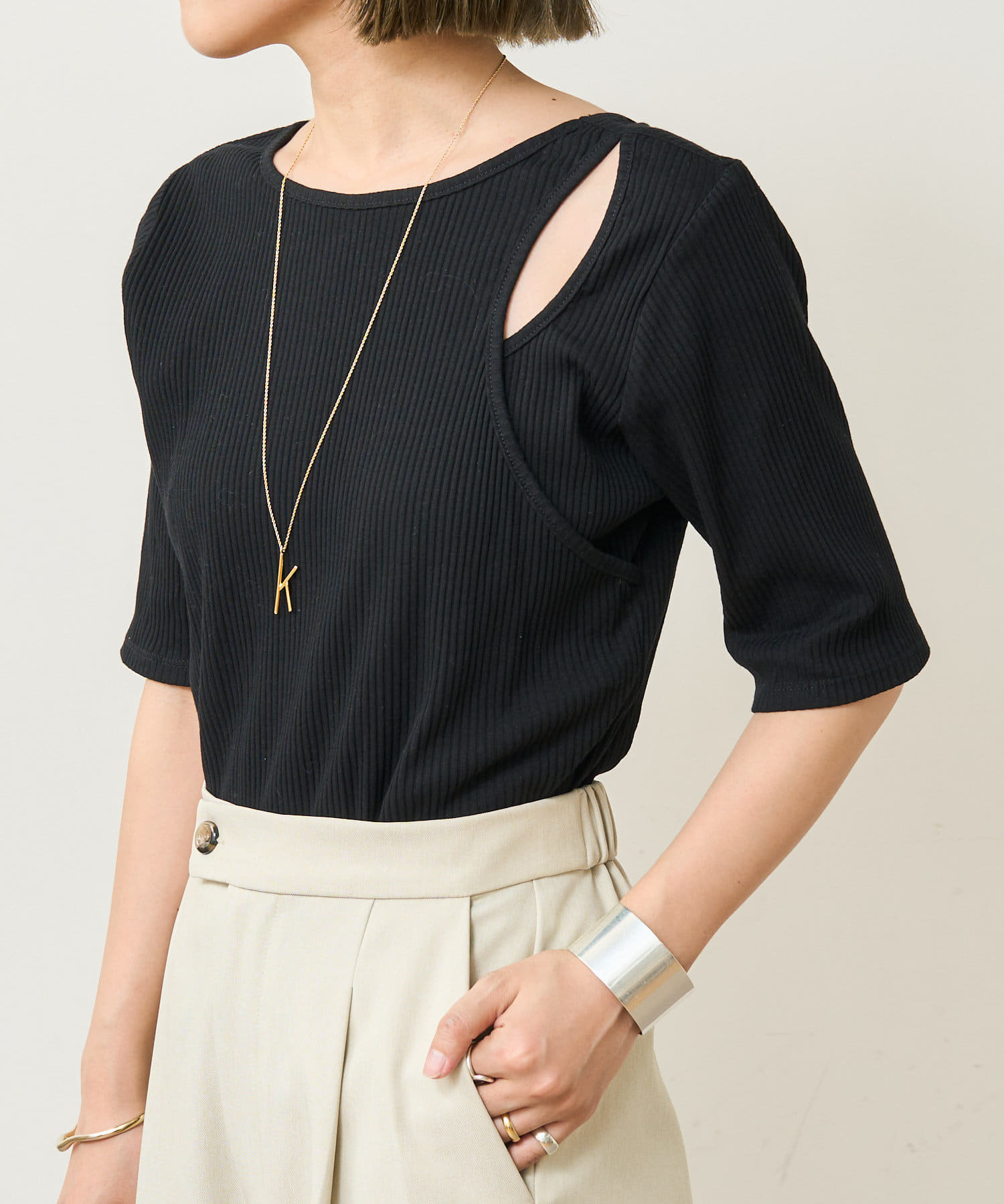さり気ない肌見せが女性らしいアシンメトリーなリブTシャツ